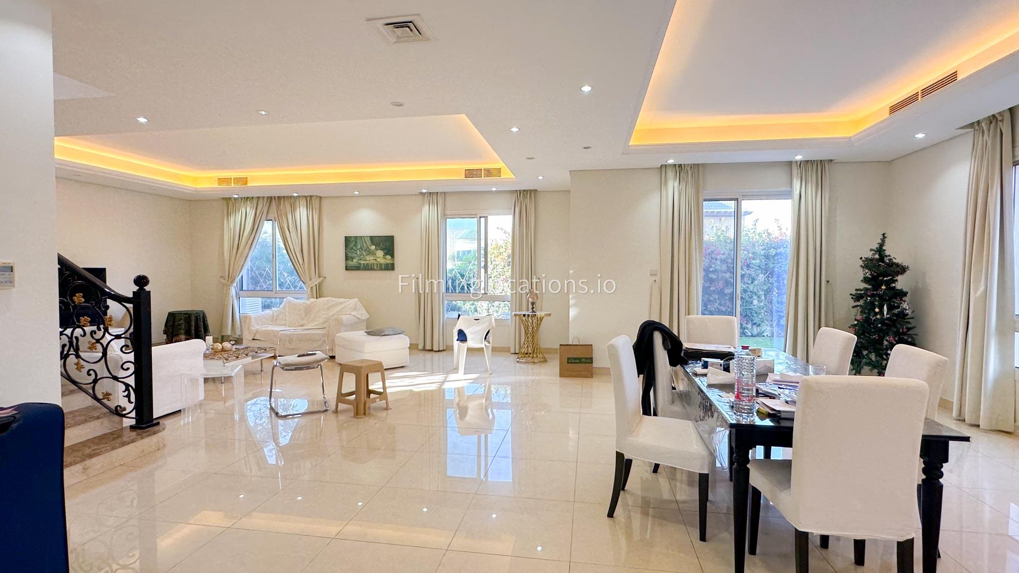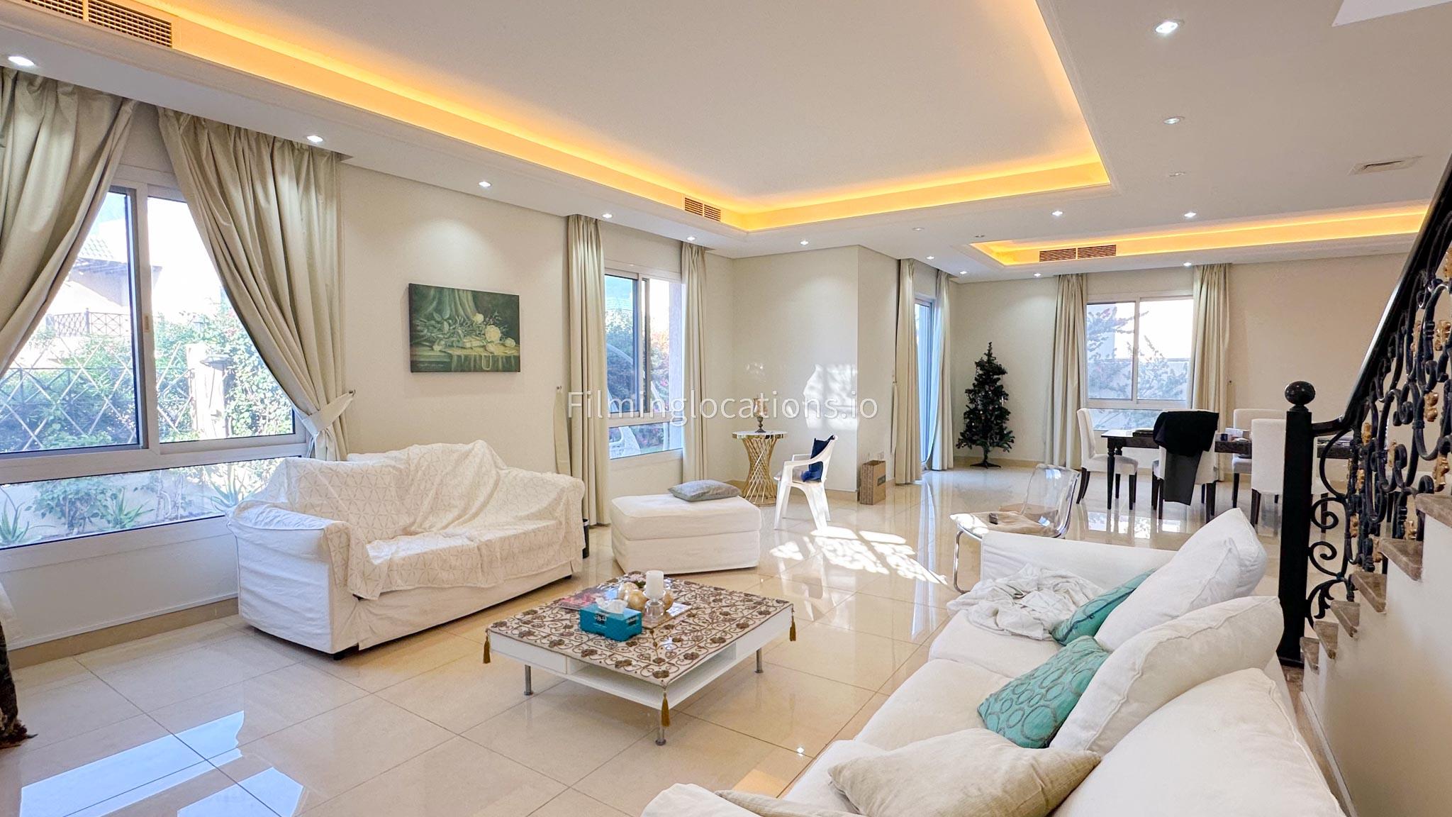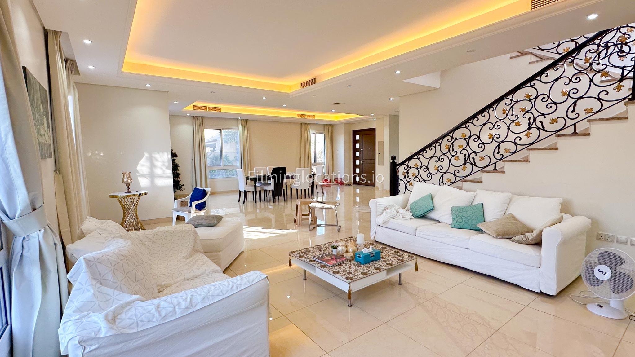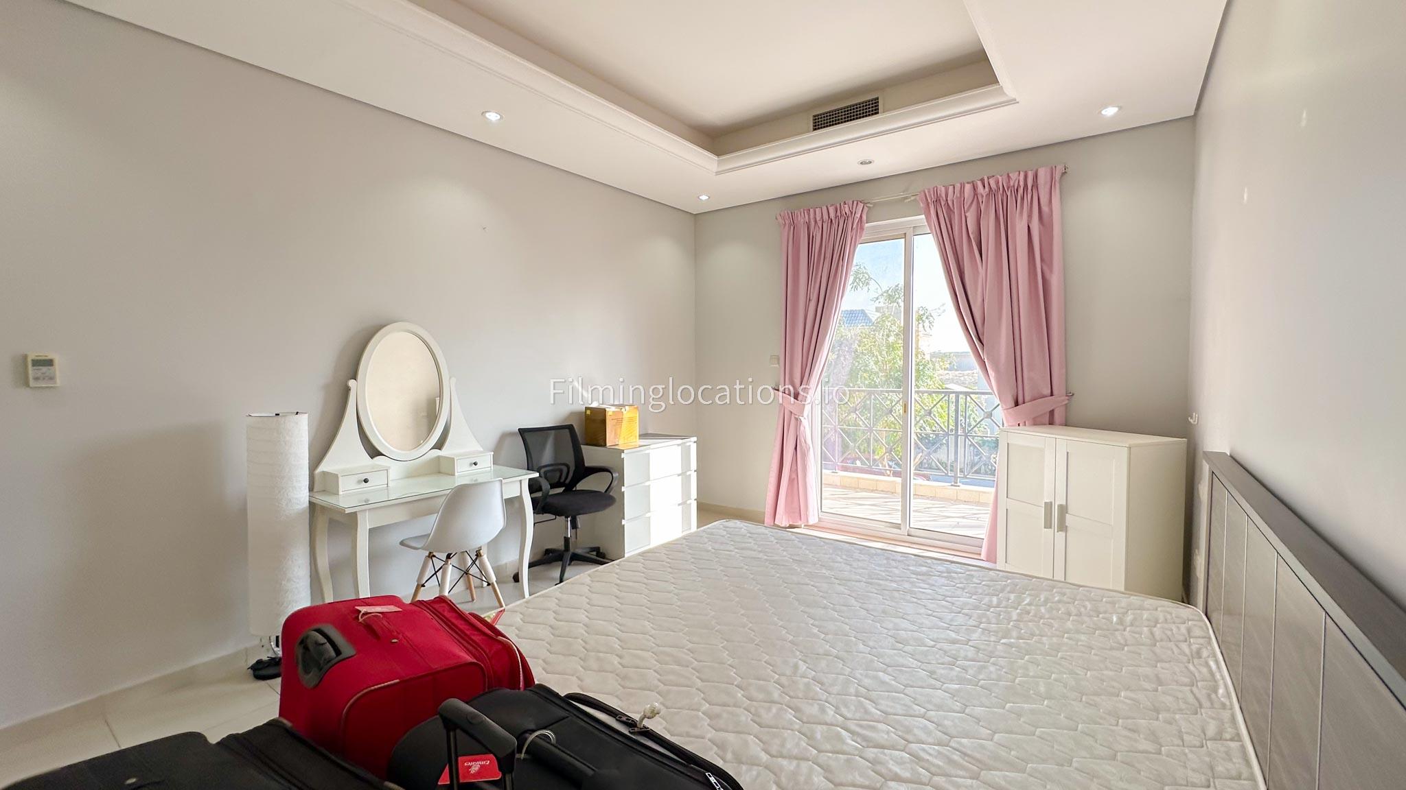 This two-story villa features a spacious living room along with a dining space, ideal for diverse scenes, while an adjoining office space offers a versatile setting for professional narratives. With five bedrooms designed for functionality, the villa meets various storytelling needs. A balcony provides scenic views, and the quaint backyard features outdoor seating and a garden. The simplicity in the layout make this villa a filmmaker's choice, offering a versatile backdrop for both indoor and outdoor scenes.