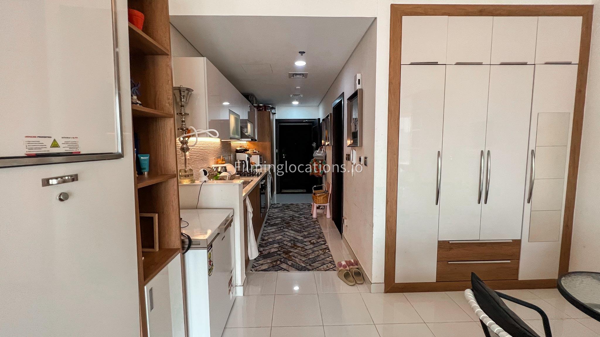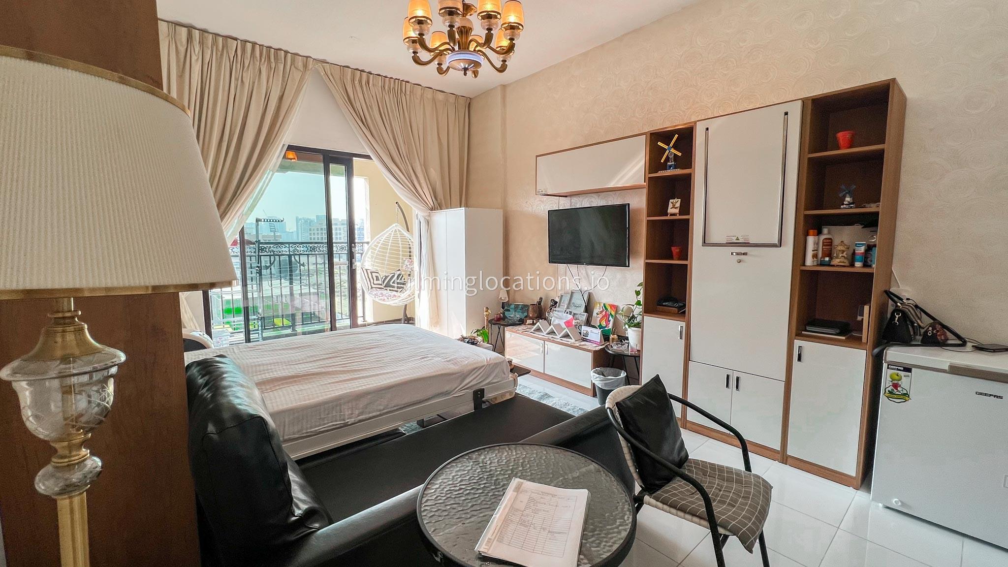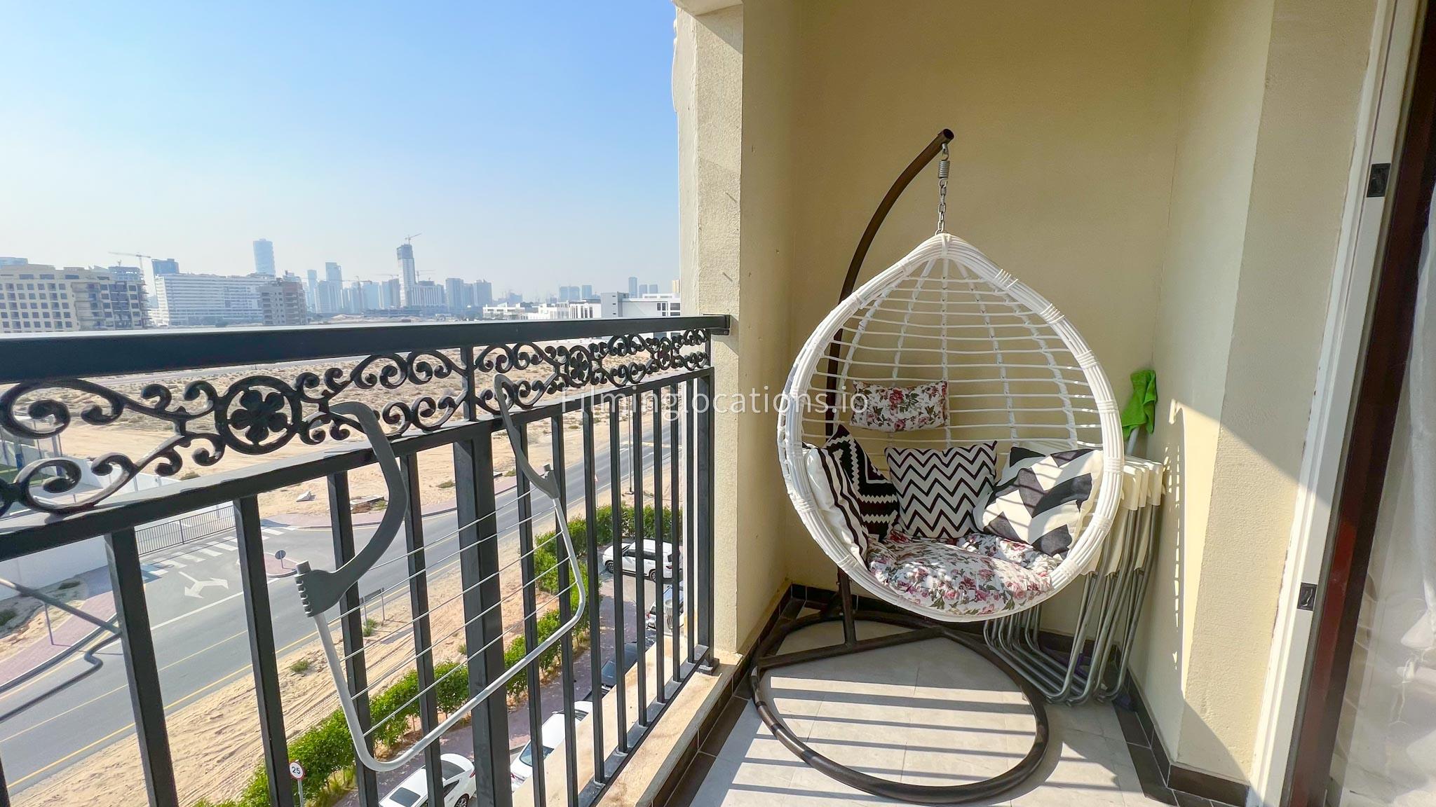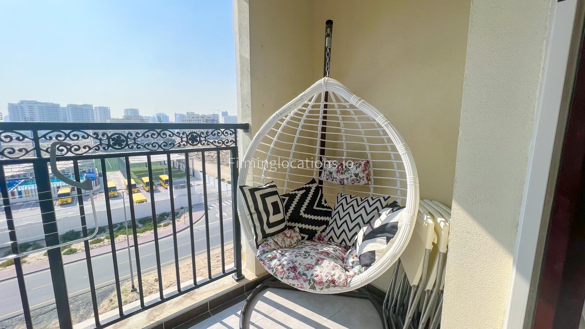 Our studio boasts a well-appointed setting, complete with a versatile sofa, foldable bed, and adjustable table. The combination of white, black, and wooden furniture lends an air of sophistication to the space. Notably, the studio features a charming balcony adorned with a delightful white wicker swing, providing a picturesque backdrop for filmmakers to capture unique and visually appealing scenes.