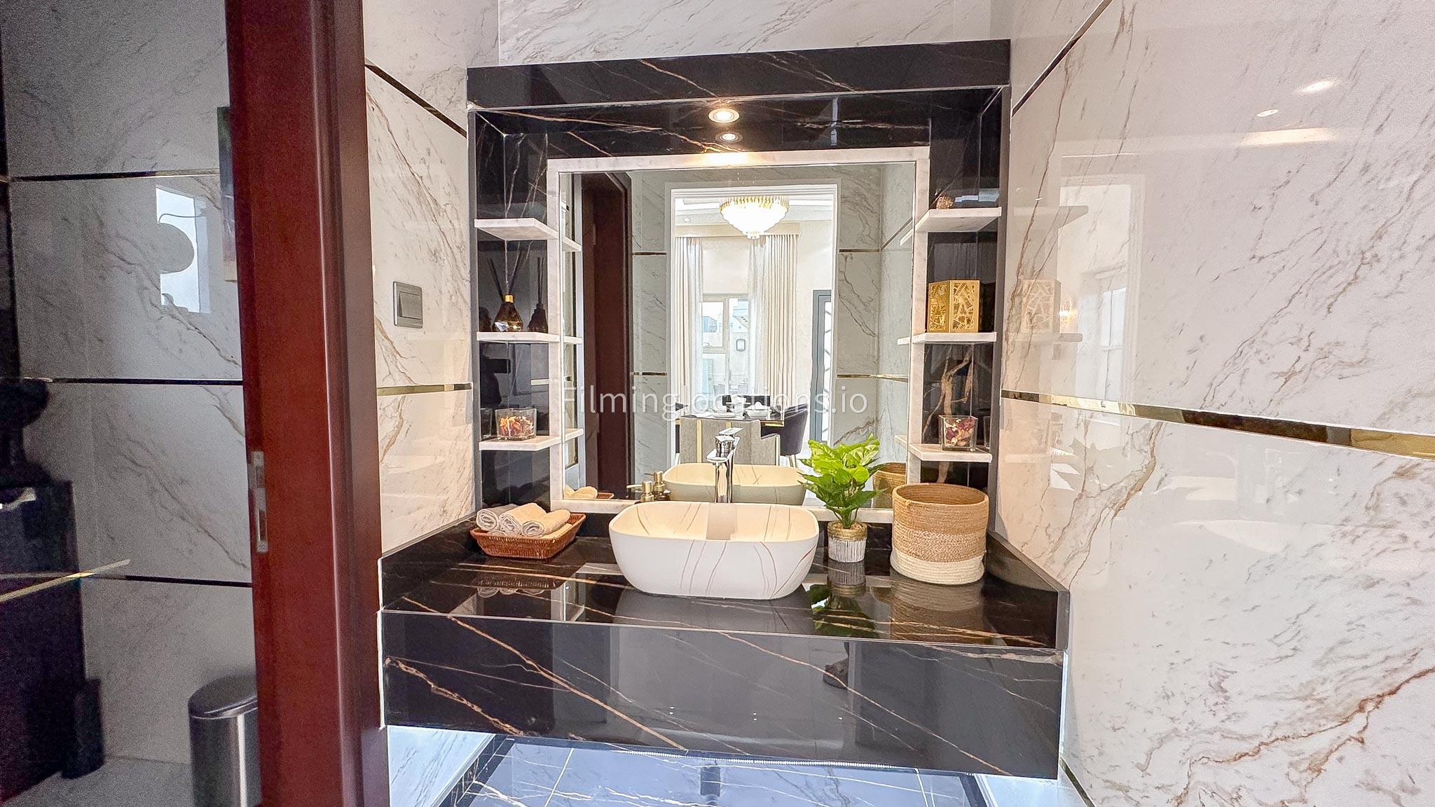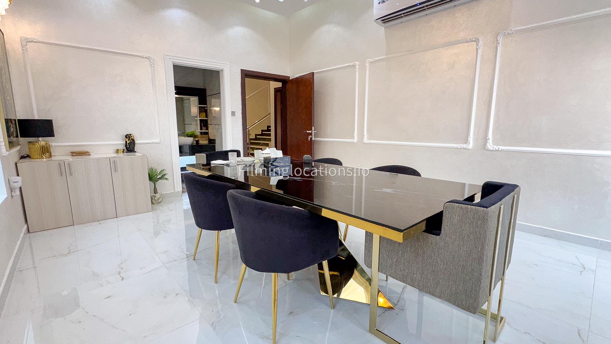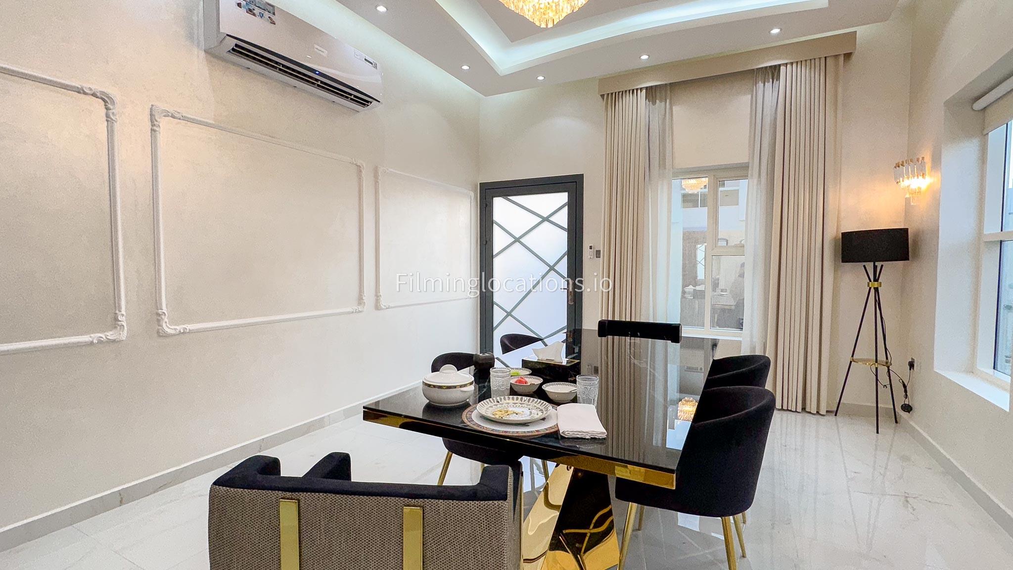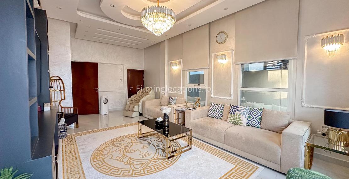 Our villa offers an exquisite backdrop for filmmakers with its stunning living and dining room, three beautifully appointed bedrooms, and an exclusive dressing room, all adorned with luxurious marble, gold, and black furnishings. The allure extends outdoors with a pool and rooftop seating, complete with a fireplace for BBQ. Our villa offers convenient street access and enough parking make it a versatile and visually appealing location, providing filmmakers with both luxury aesthetics and practical elements for a variety of scenes.