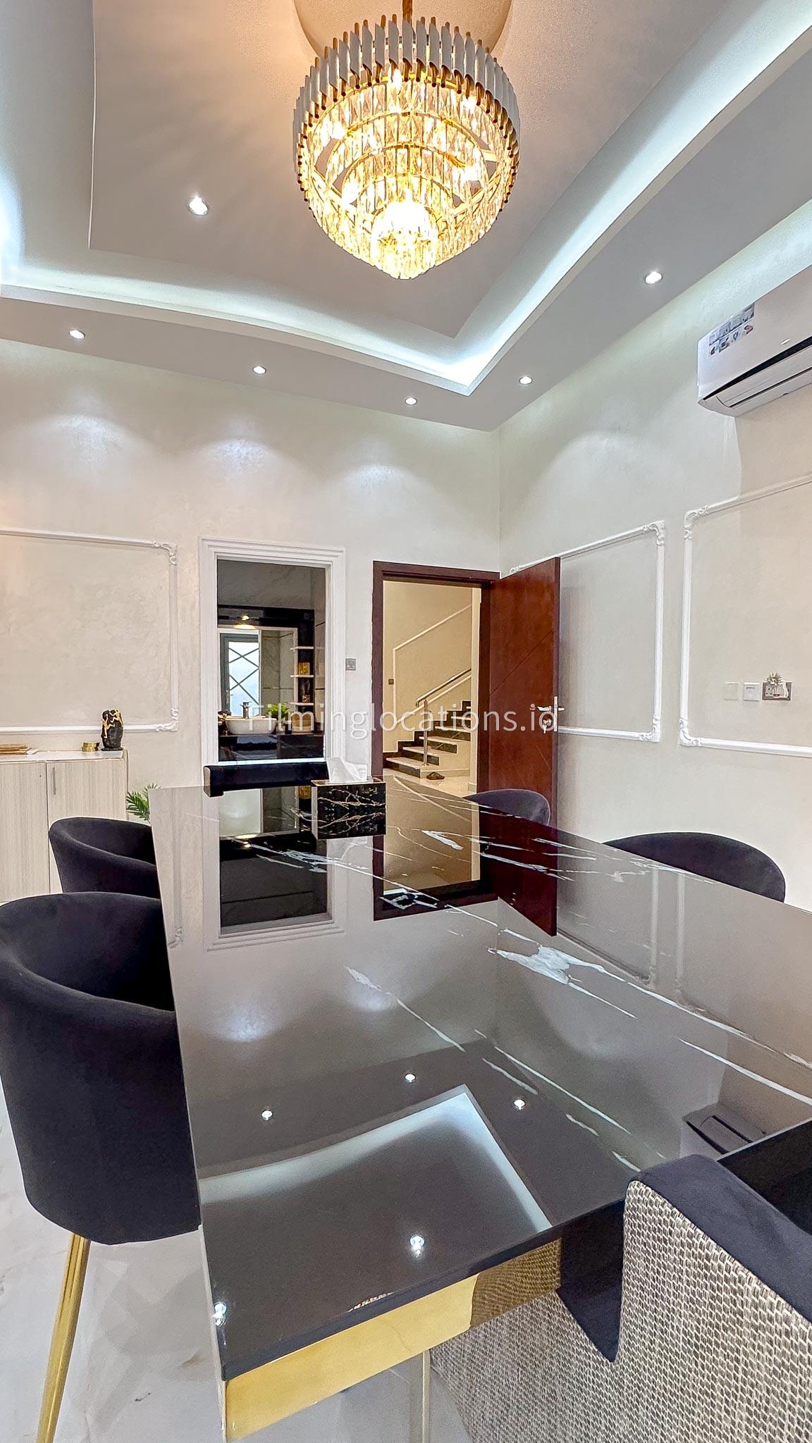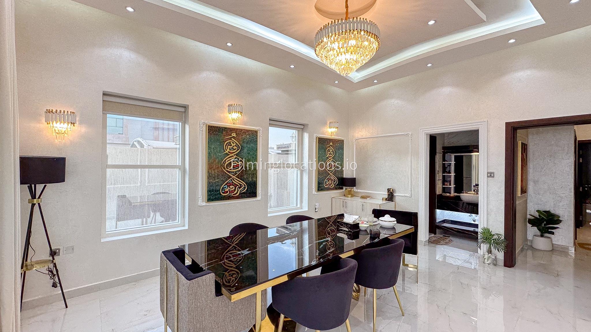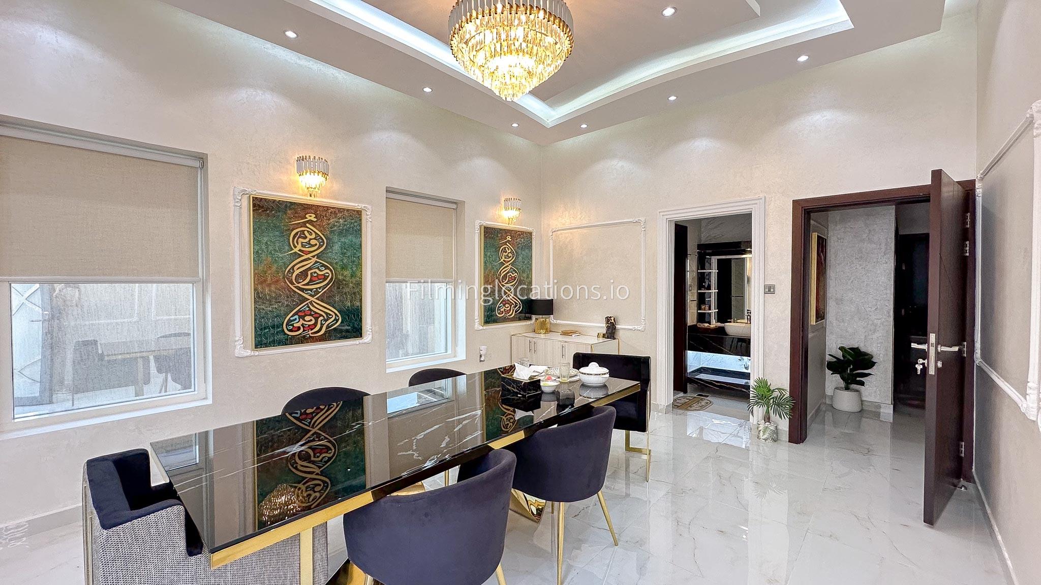 Our villa offers an exquisite backdrop for filmmakers with its stunning living and dining room, three beautifully appointed bedrooms, and an exclusive dressing room, all adorned with luxurious marble, gold, and black furnishings. The allure extends outdoors with a pool and rooftop seating, complete with a fireplace for BBQ. Our villa offers convenient street access and enough parking make it a versatile and visually appealing location, providing filmmakers with both luxury aesthetics and practical elements for a variety of scenes.
