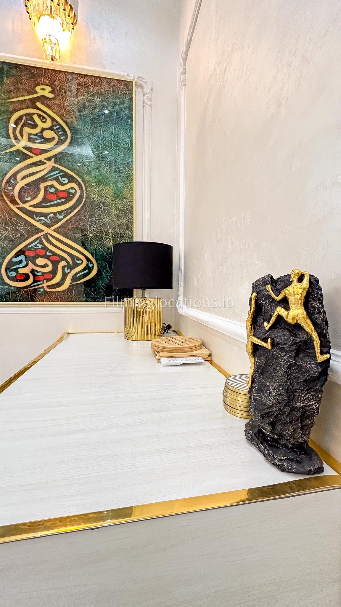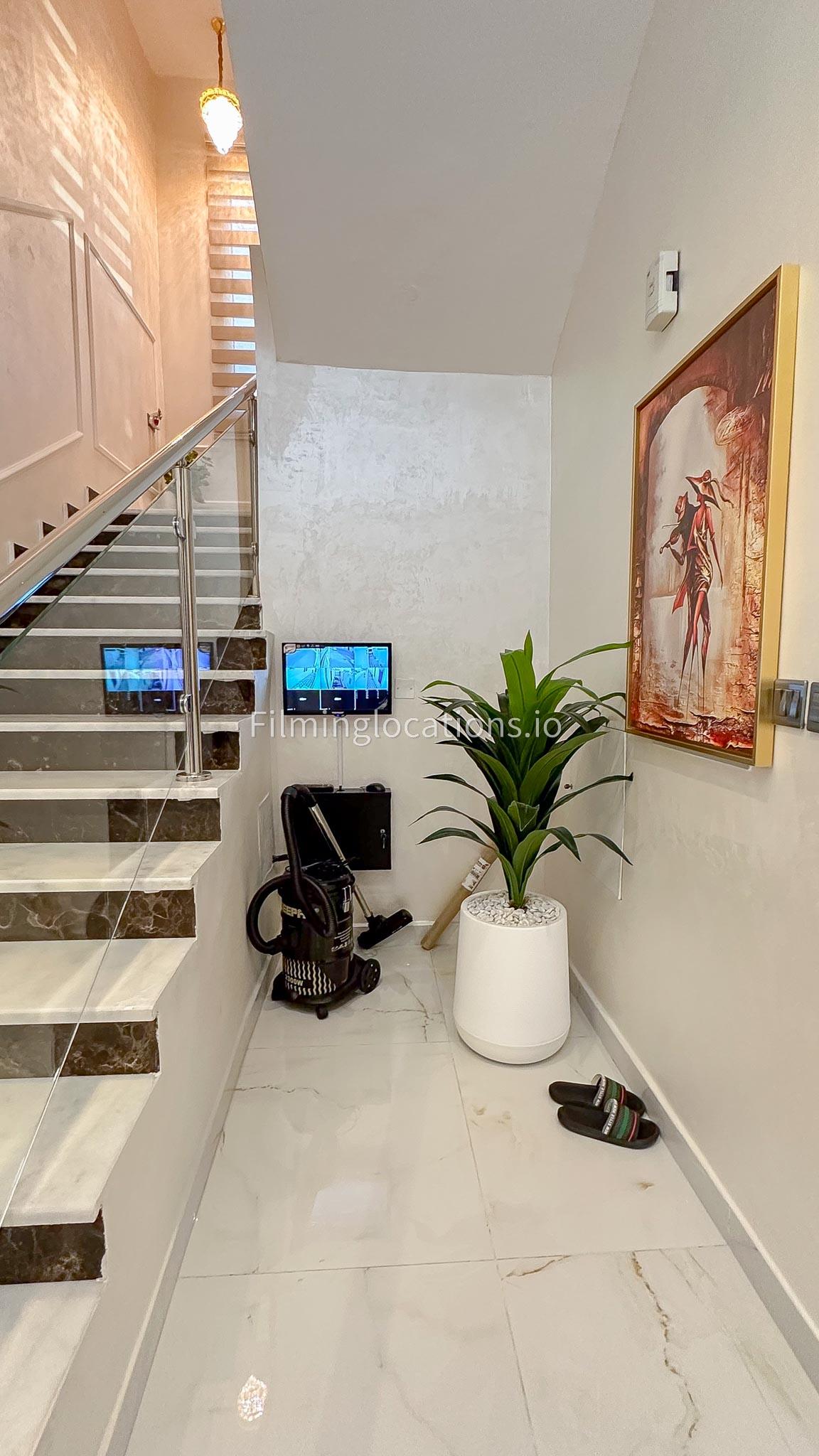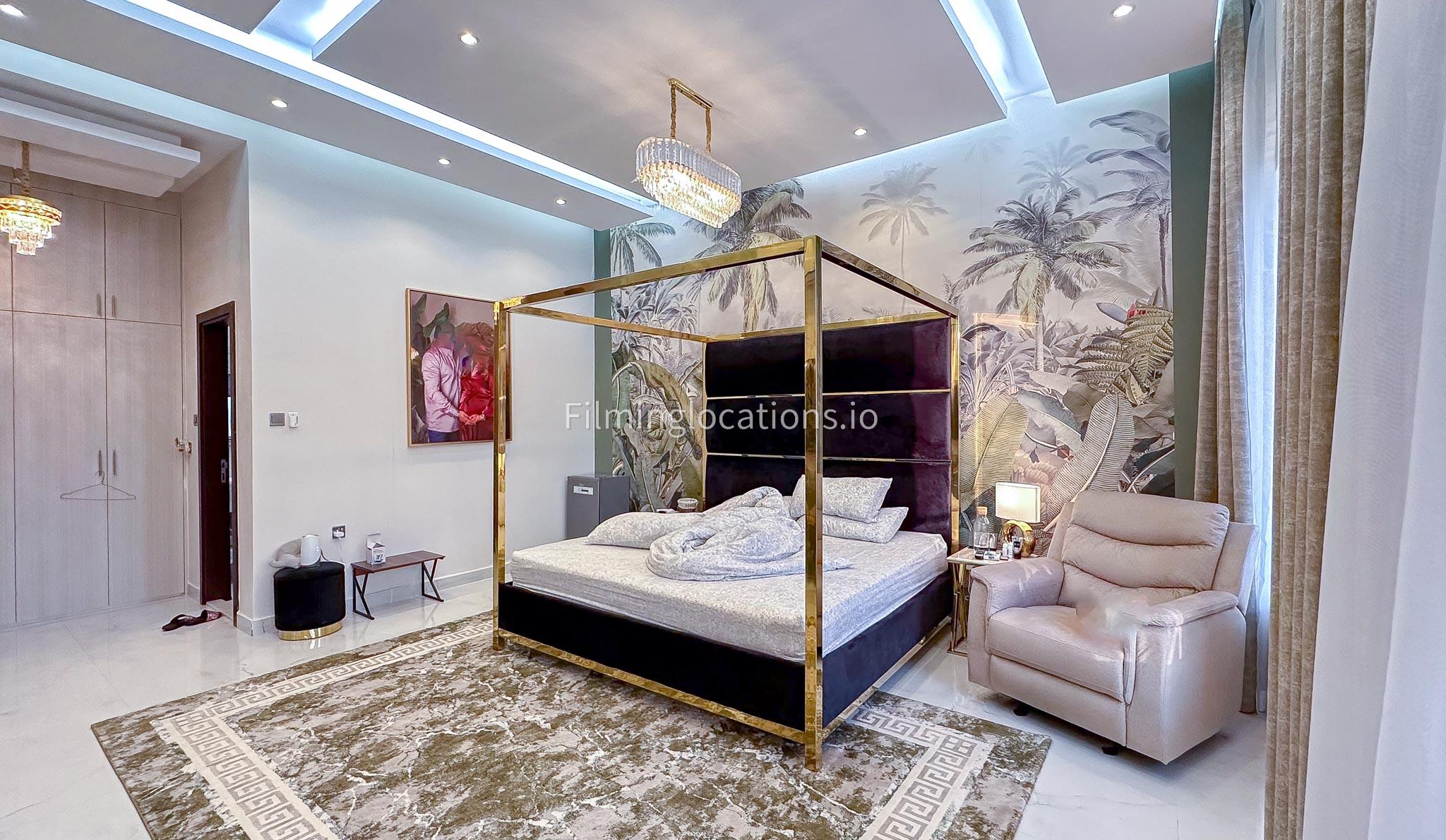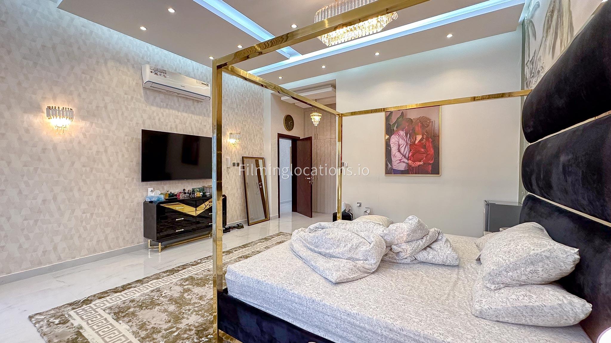 Our villa offers an exquisite backdrop for filmmakers with its stunning living and dining room, three beautifully appointed bedrooms, and an exclusive dressing room, all adorned with luxurious marble, gold, and black furnishings. The allure extends outdoors with a pool and rooftop seating, complete with a fireplace for BBQ. Our villa offers convenient street access and enough parking make it a versatile and visually appealing location, providing filmmakers with both luxury aesthetics and practical elements for a variety of scenes.