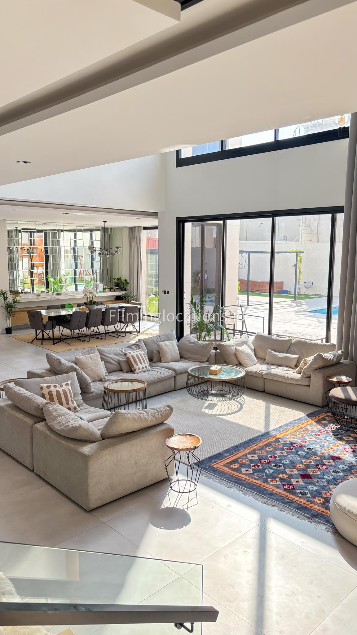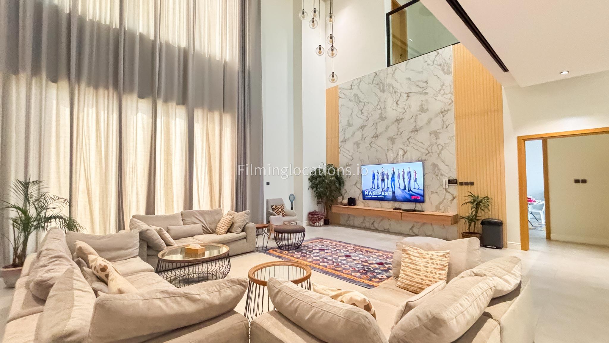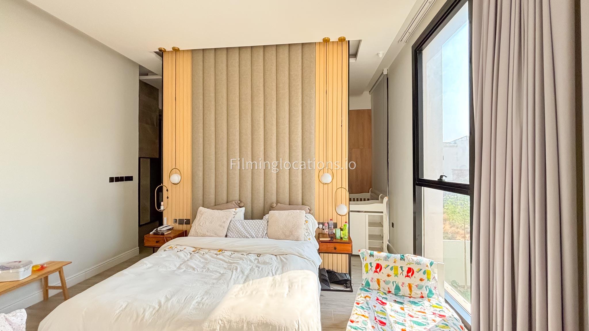 Our grand villa is designed with simplicity and elegance in mind. With high ceilings and expansive window walls, the interiors are bathed in natural light. The large living room serves as a central hub, providing ample space for various scenes. An office space offers filmmakers a setting for professional narratives, while thoughtfully designed bedrooms contribute to the villa's cinematic allure. Venture outdoors to a sprawling backyard, complete with a pool, outdoor seating, and a charming garden. Our Villa provides filmmakers with an ideal canvas to capture both intimate indoor moments and captivating outdoor scenes.