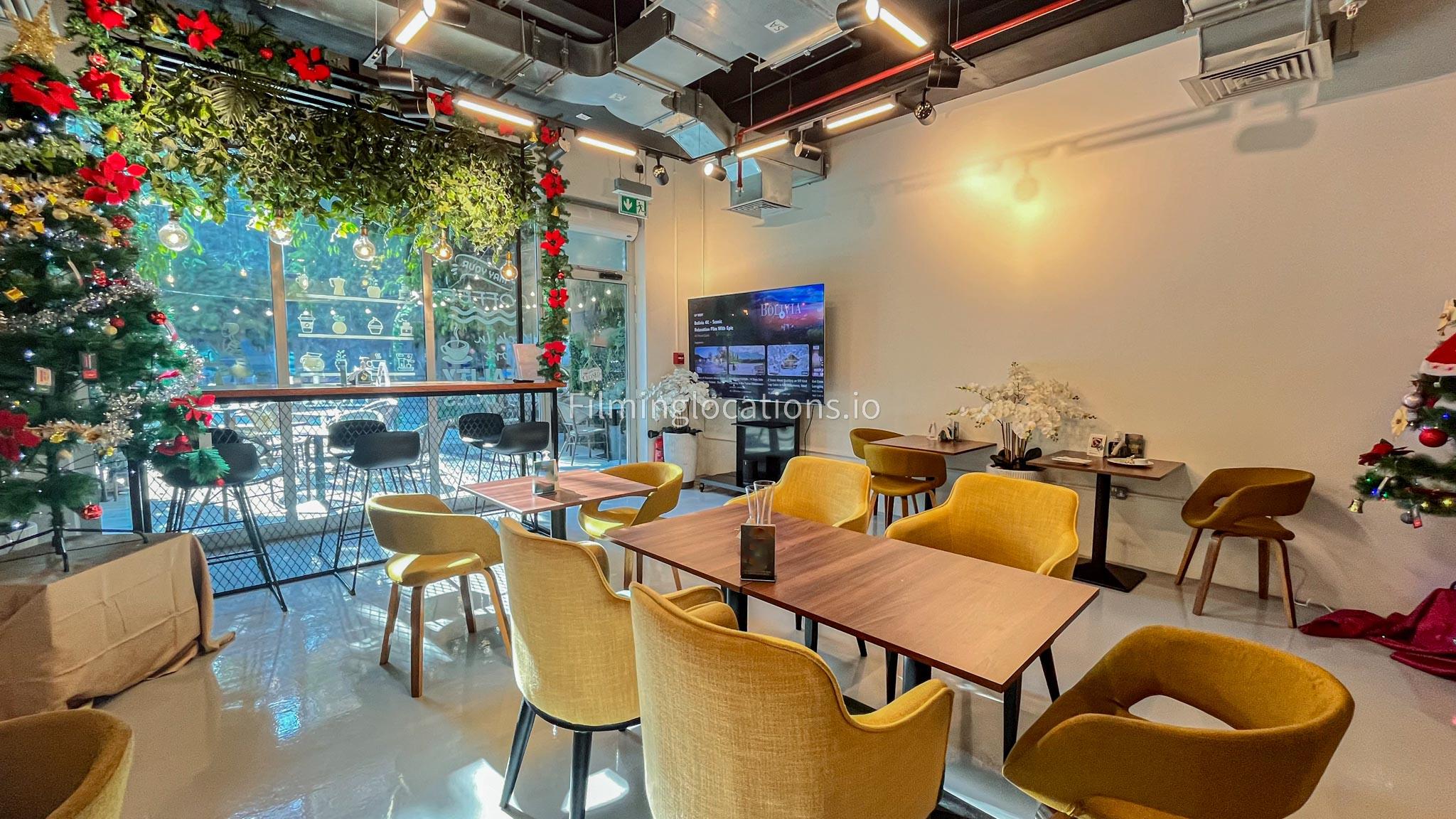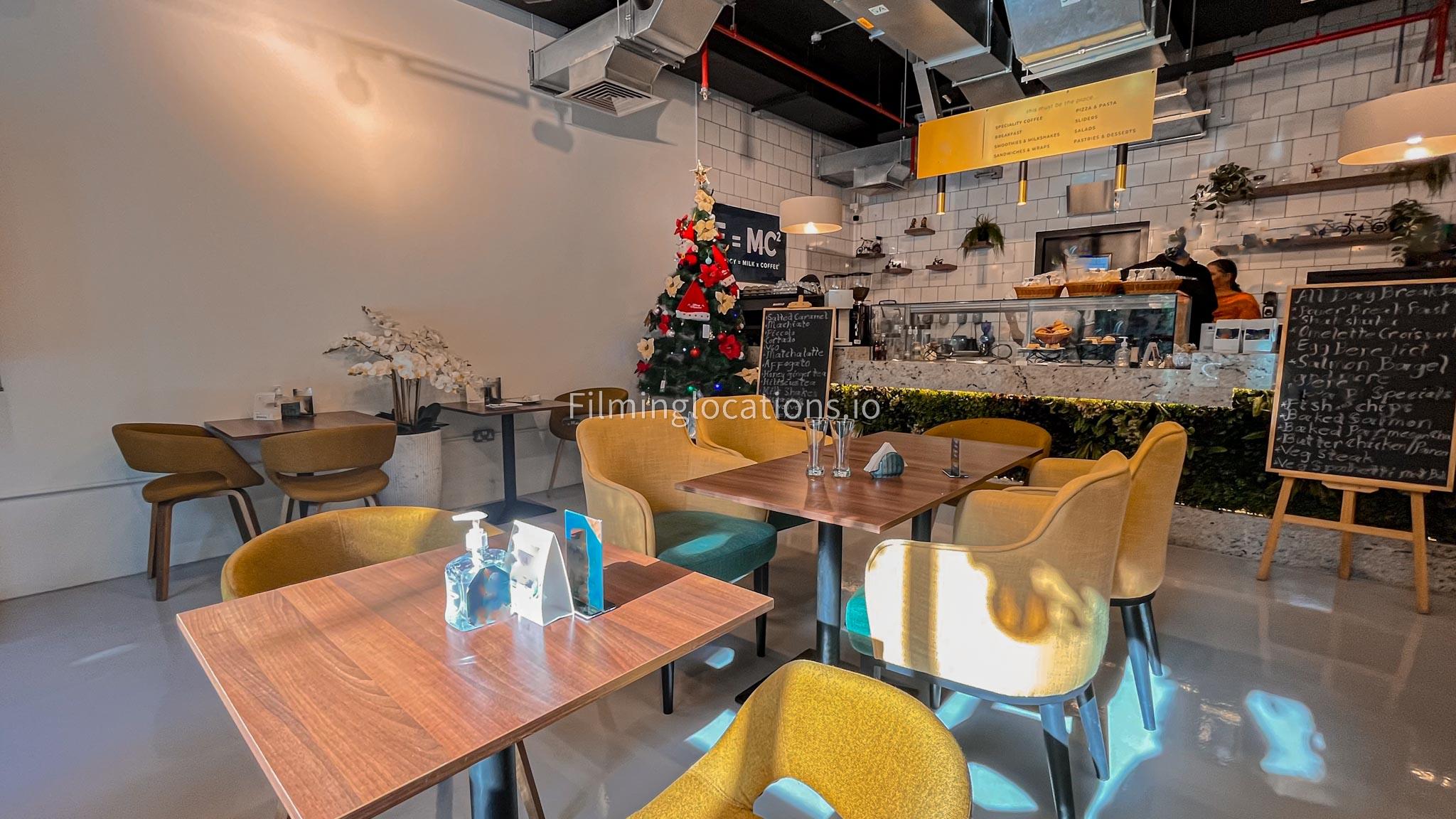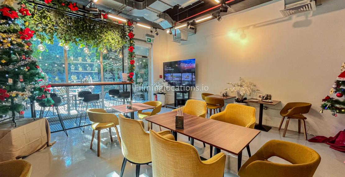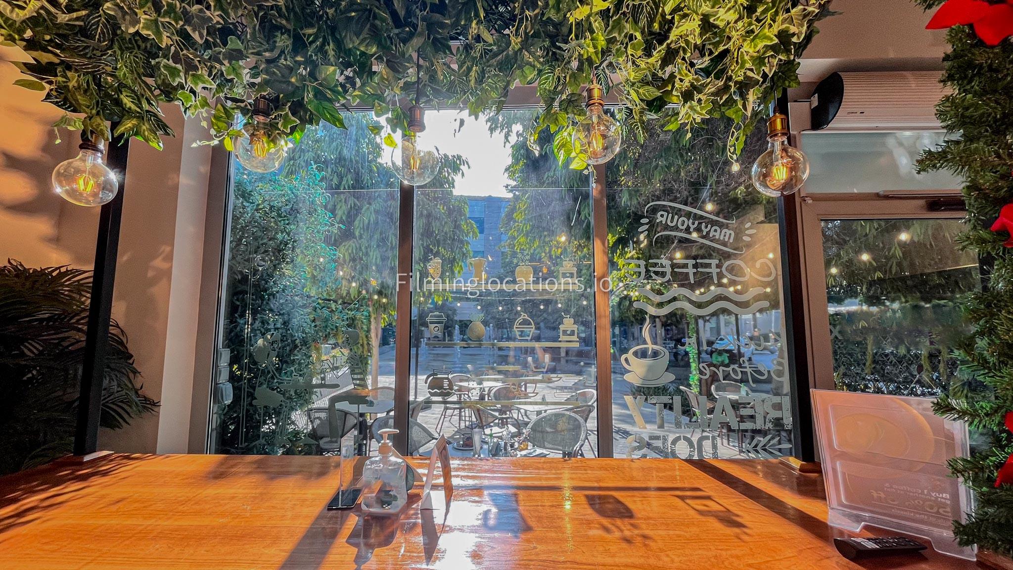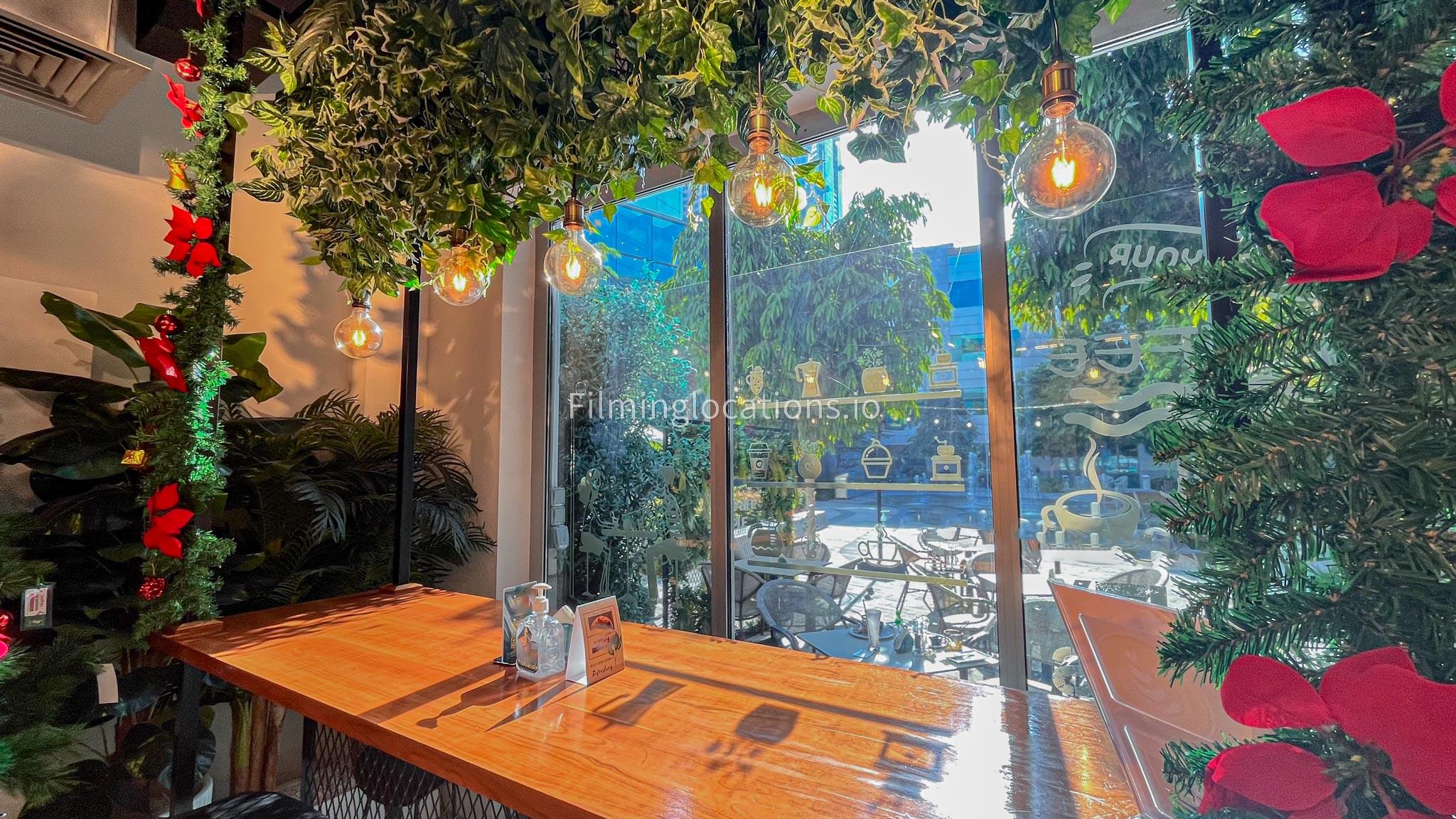 Our charming café is perfect for filmmakers seeking an enchanting ambiance. The quaint indoor seating provides an intimate backdrop for character interactions and conversations. A cute window table adorned with a floral arrangement adds a picturesque spot. The outdoor seating, surrounded by lush flora and adorned with fairy lights, transforms into a magical space al fresco moments
