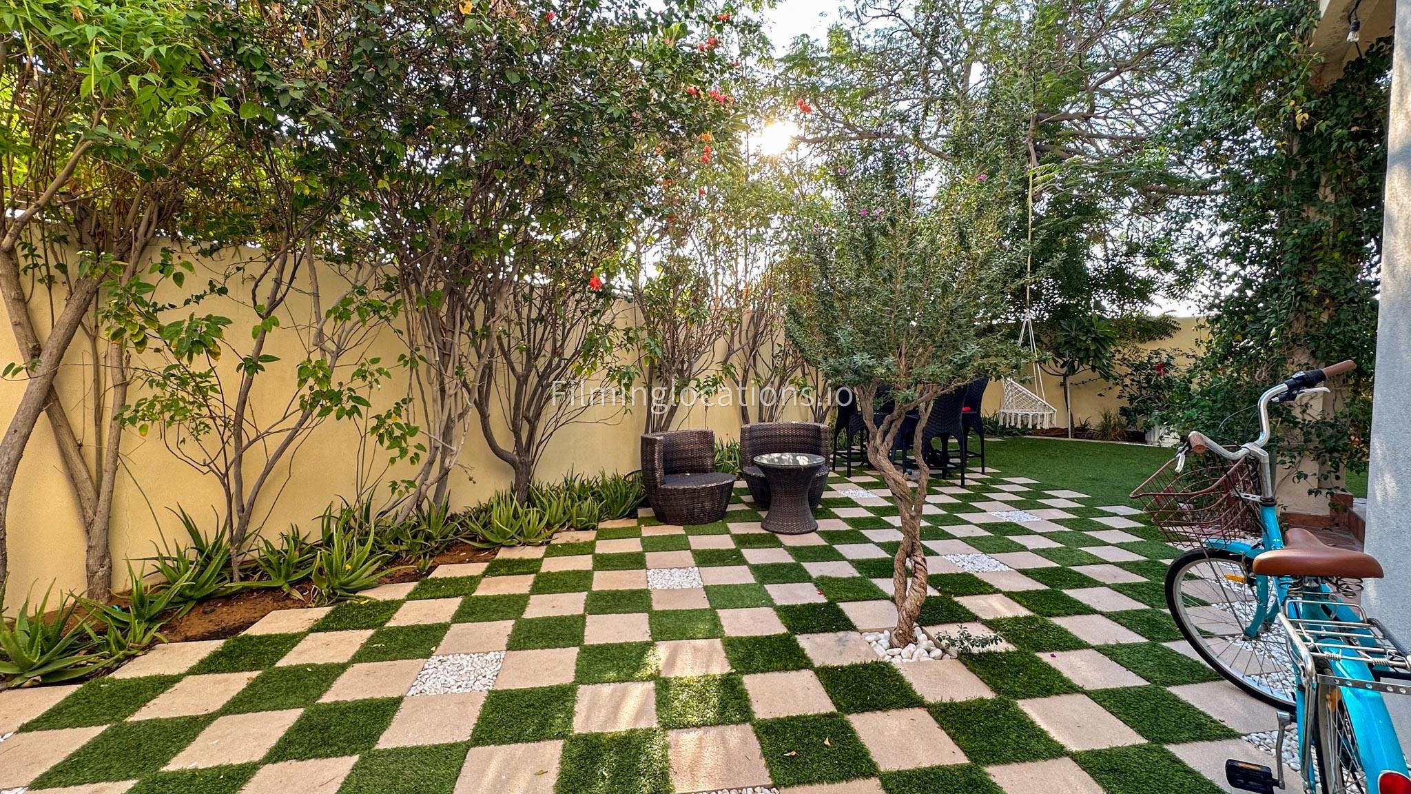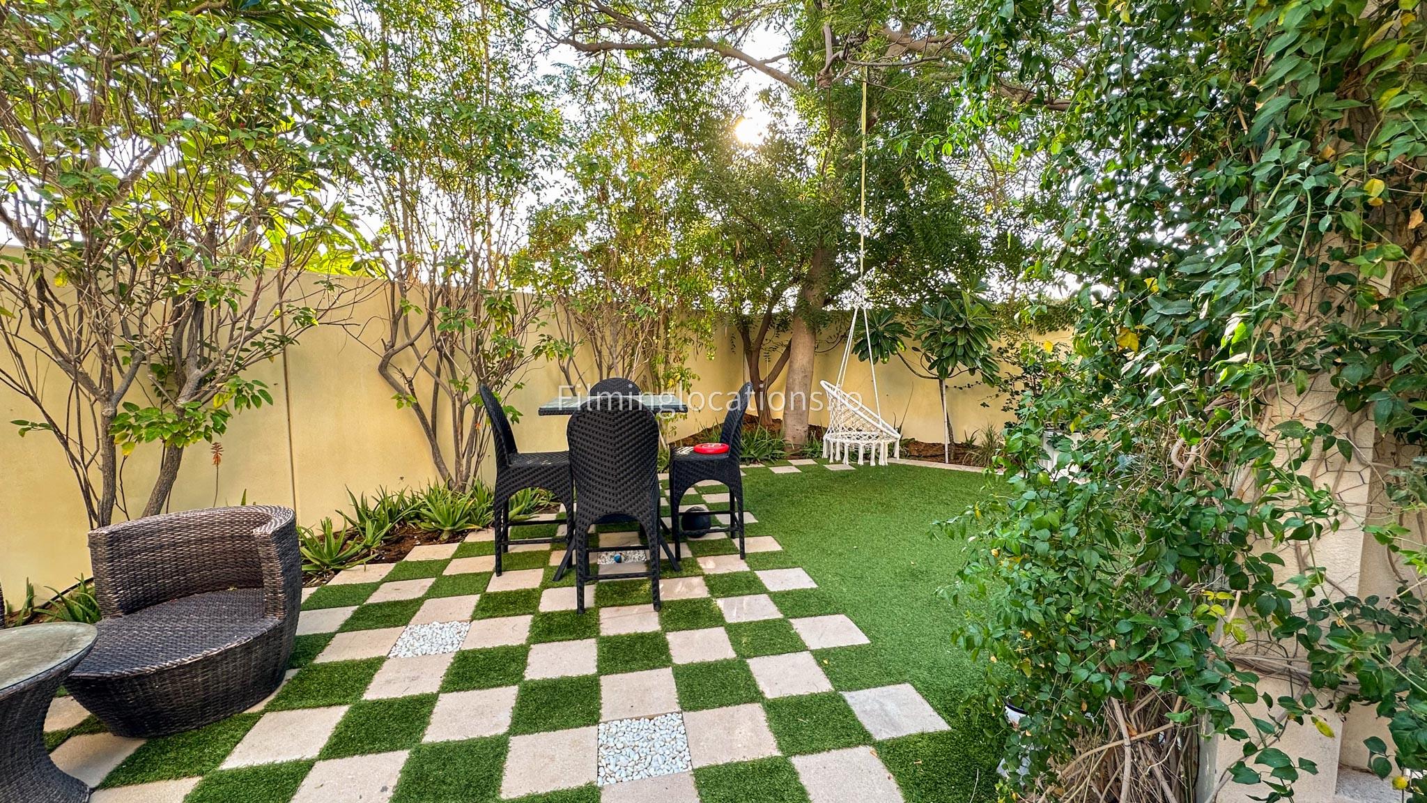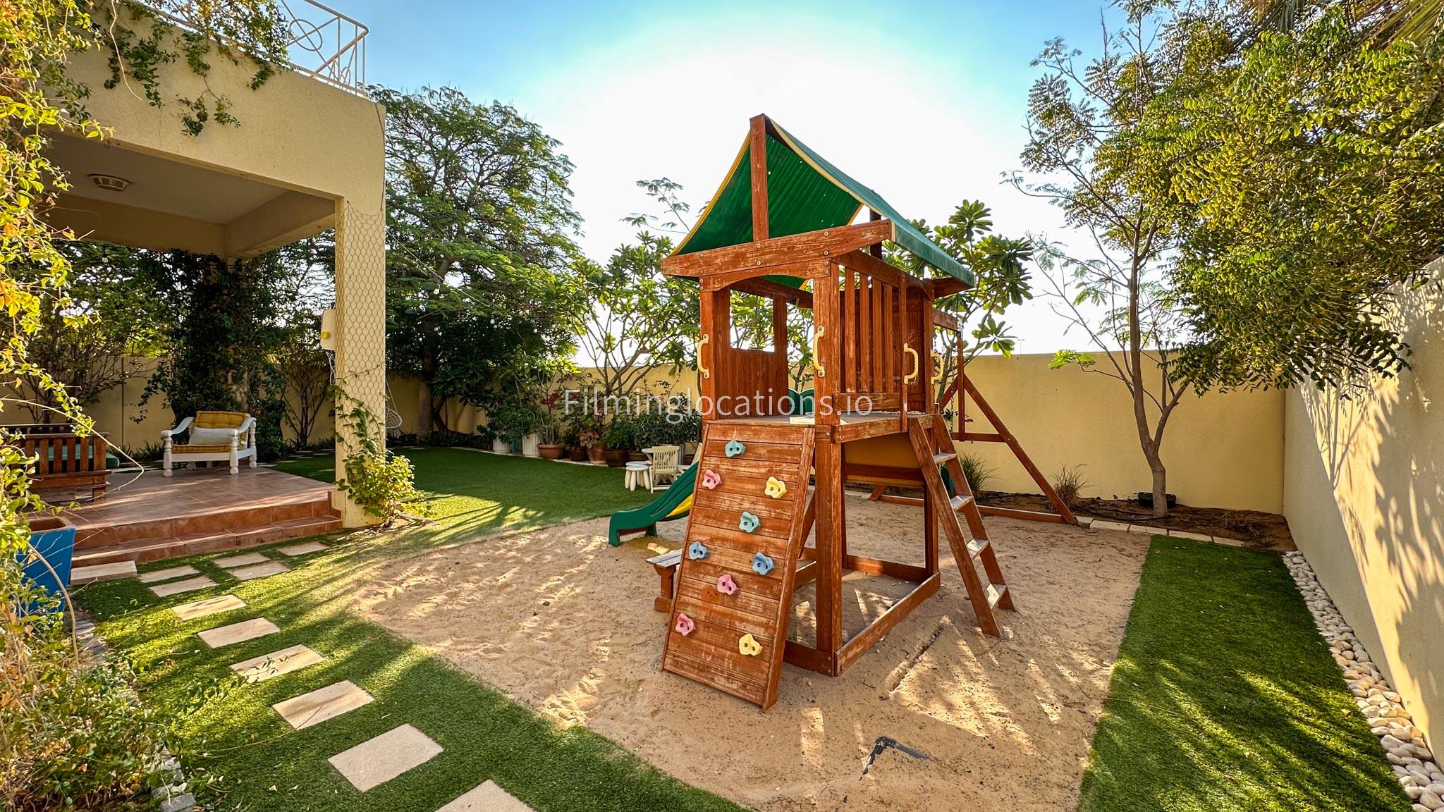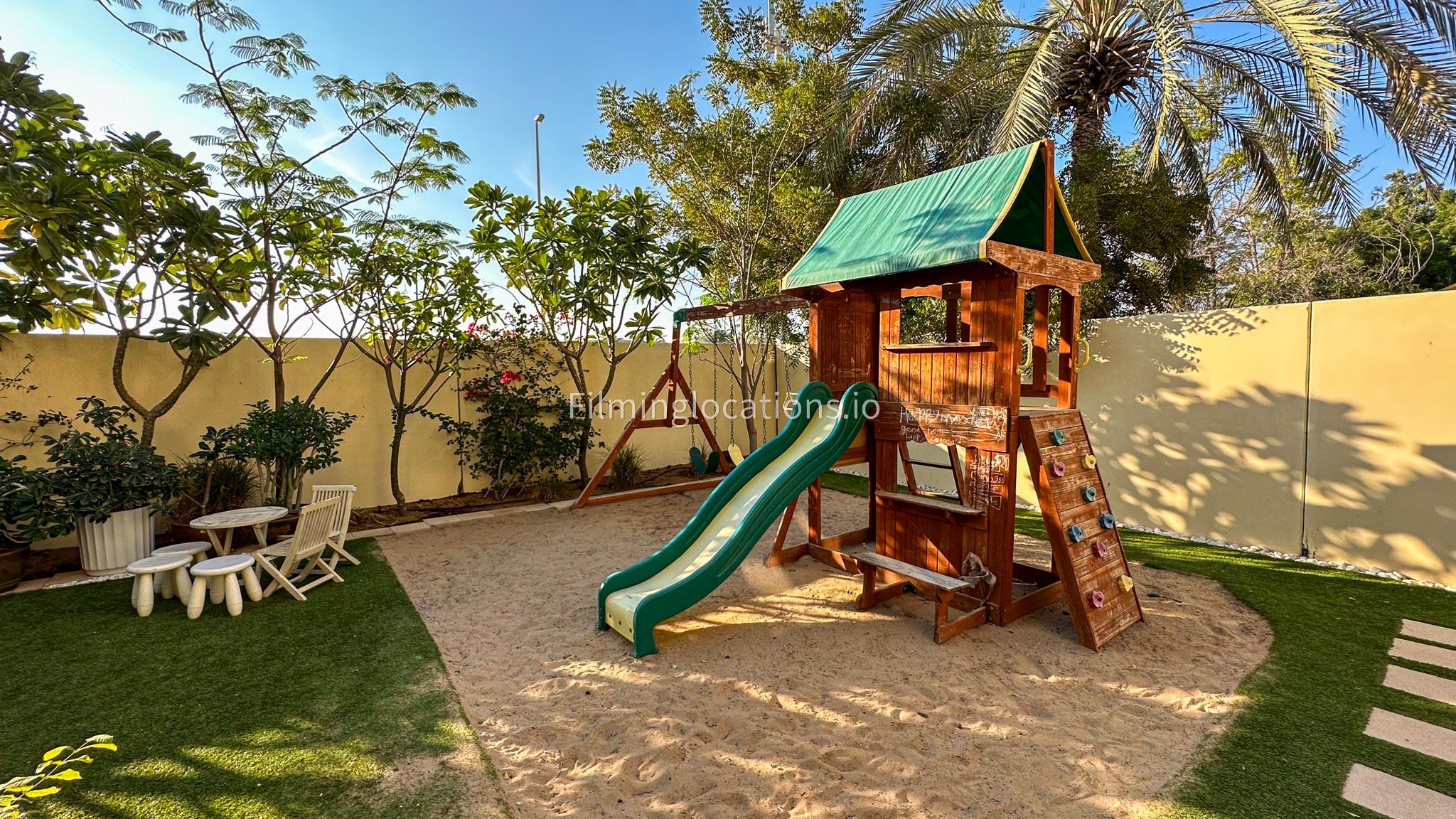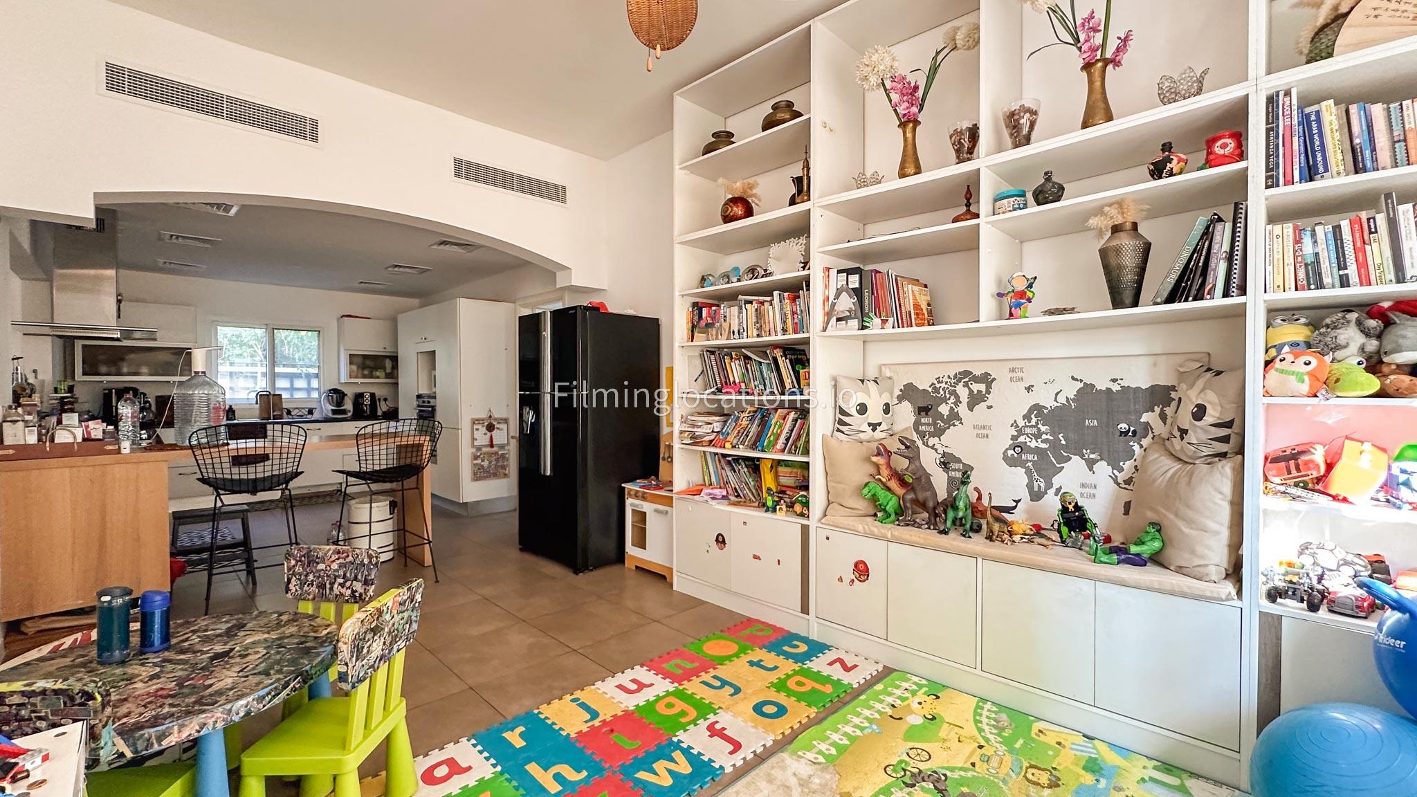 Our villa features a two-storey layout with 3 bedrooms accompanied with balconies, spacious living room along with a dining space. There is an open kitchen, colorful kid’s area, an office space and kid’s room. Stepping outside there is a quaint backyard with a play area and cute outdoor seating providing a set for shooting cozy outdoor scenes.