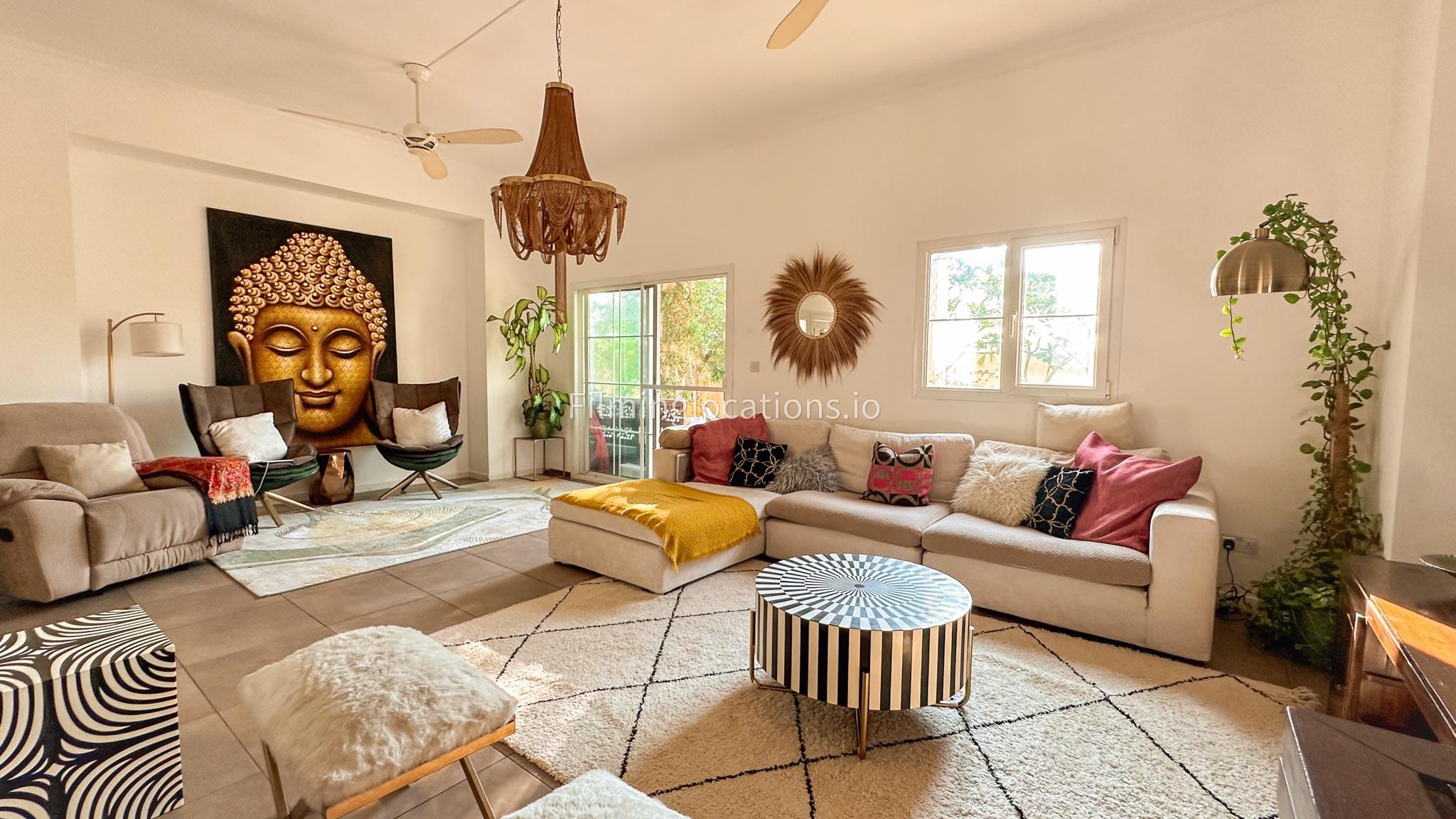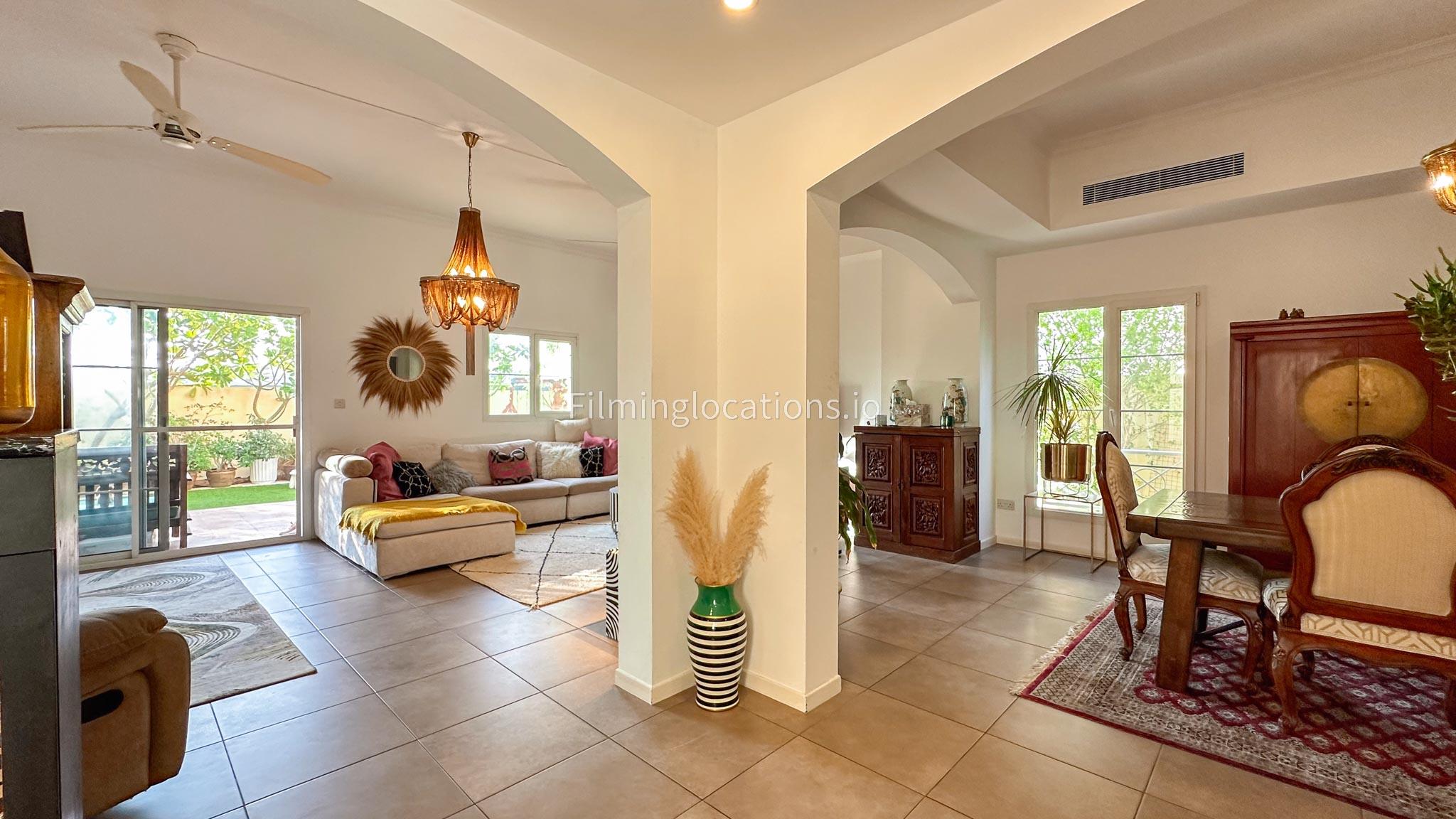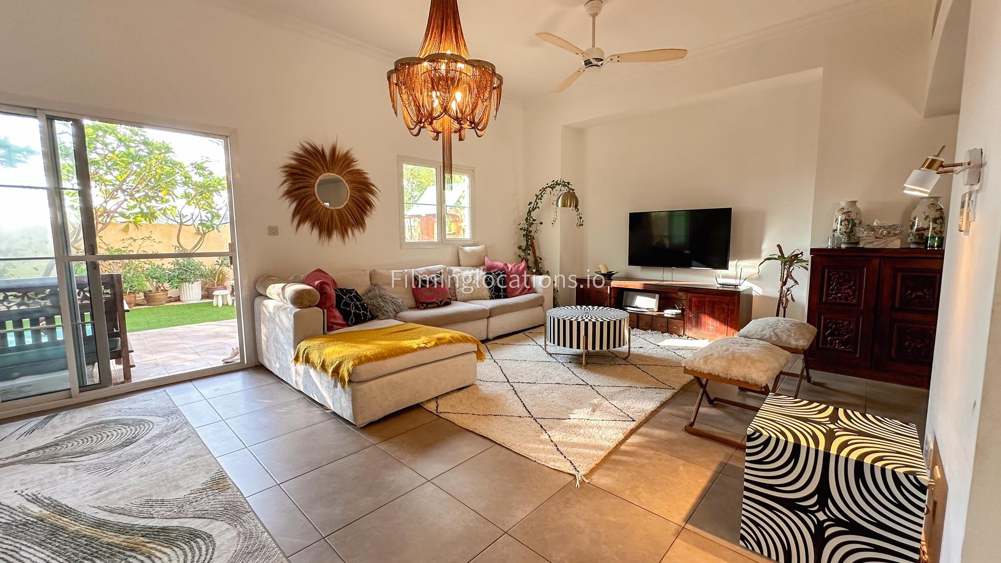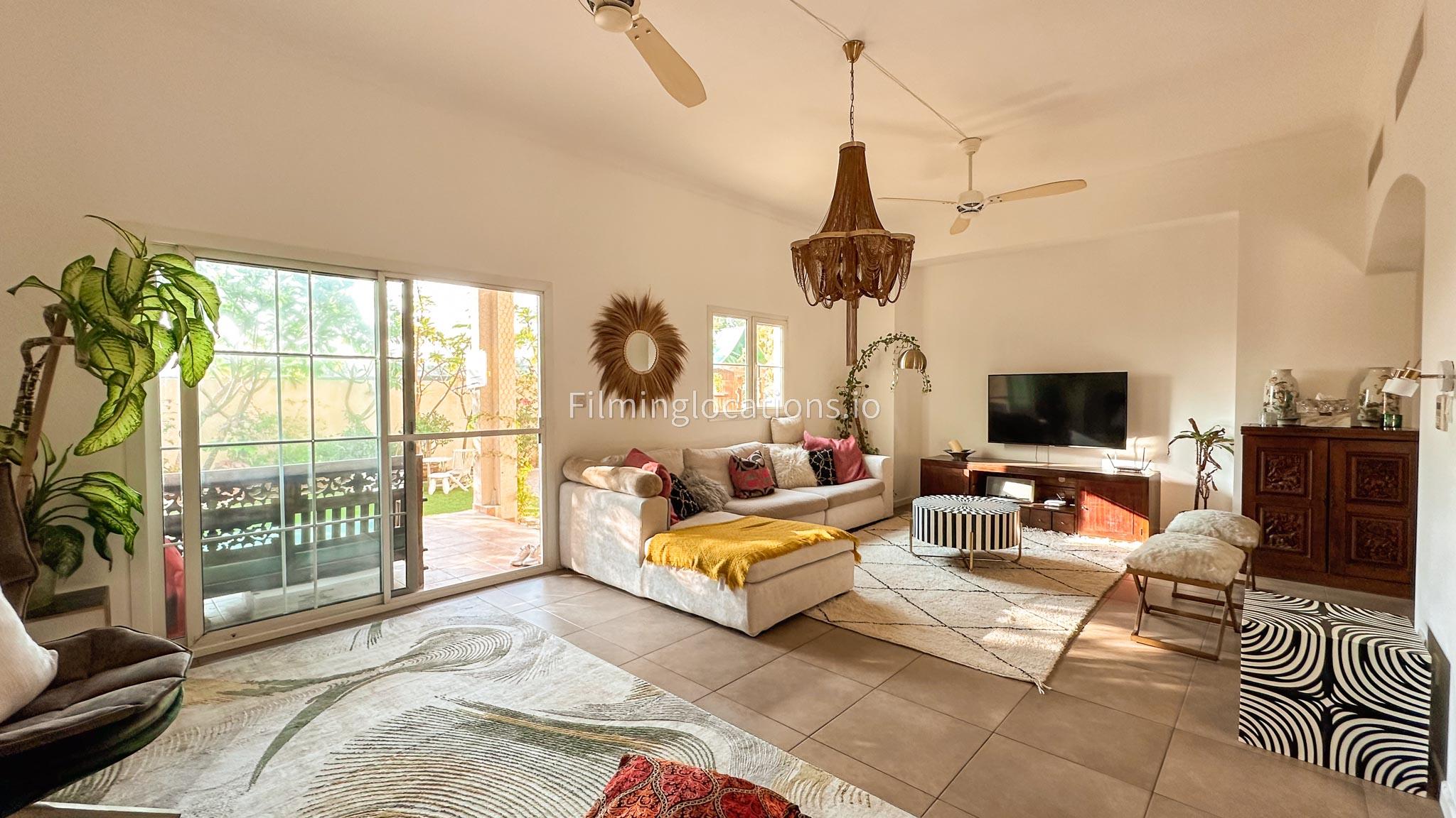 Our villa features a two-storey layout with 3 bedrooms accompanied with balconies, spacious living room along with a dining space. There is an open kitchen, colorful kid’s area, an office space and kid’s room. Stepping outside there is a quaint backyard with a play area and cute outdoor seating providing a set for shooting cozy outdoor scenes.