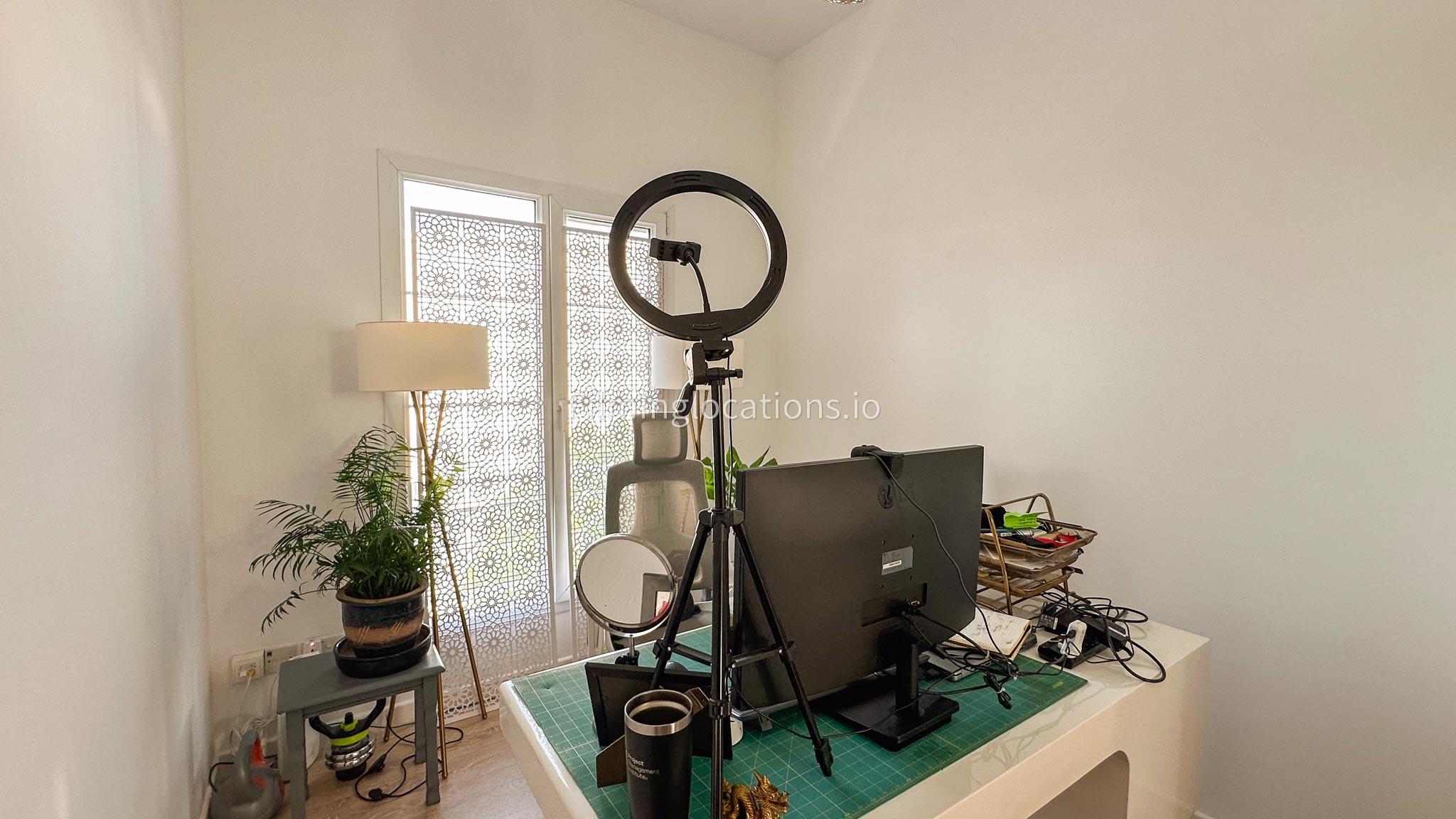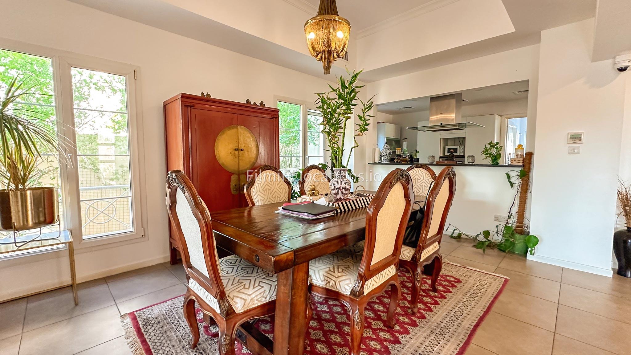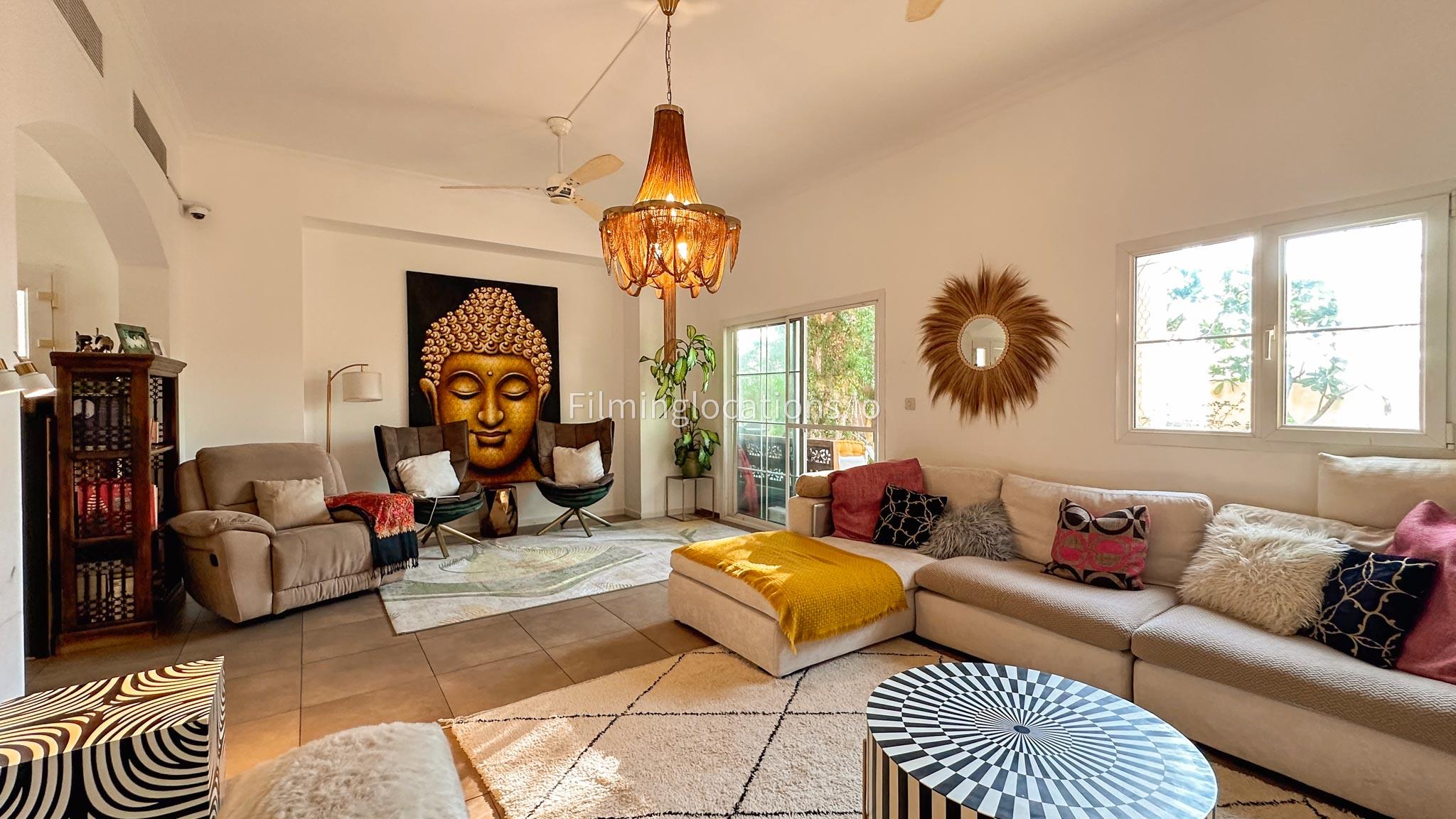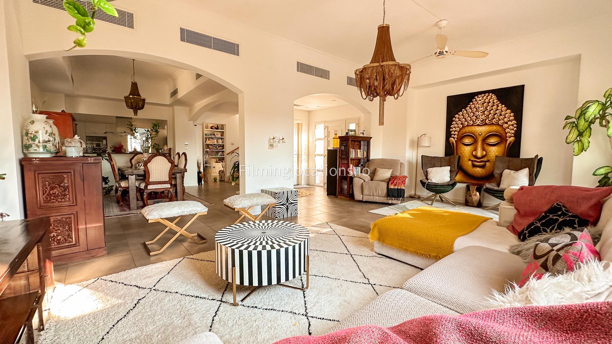 Our villa features a two-storey layout with 3 bedrooms accompanied with balconies, spacious living room along with a dining space. There is an open kitchen, colorful kid’s area, an office space and kid’s room. Stepping outside there is a quaint backyard with a play area and cute outdoor seating providing a set for shooting cozy outdoor scenes.