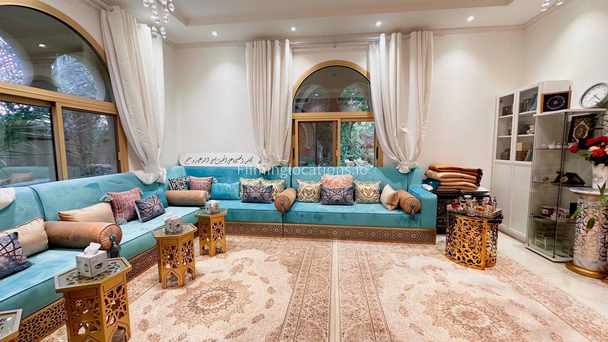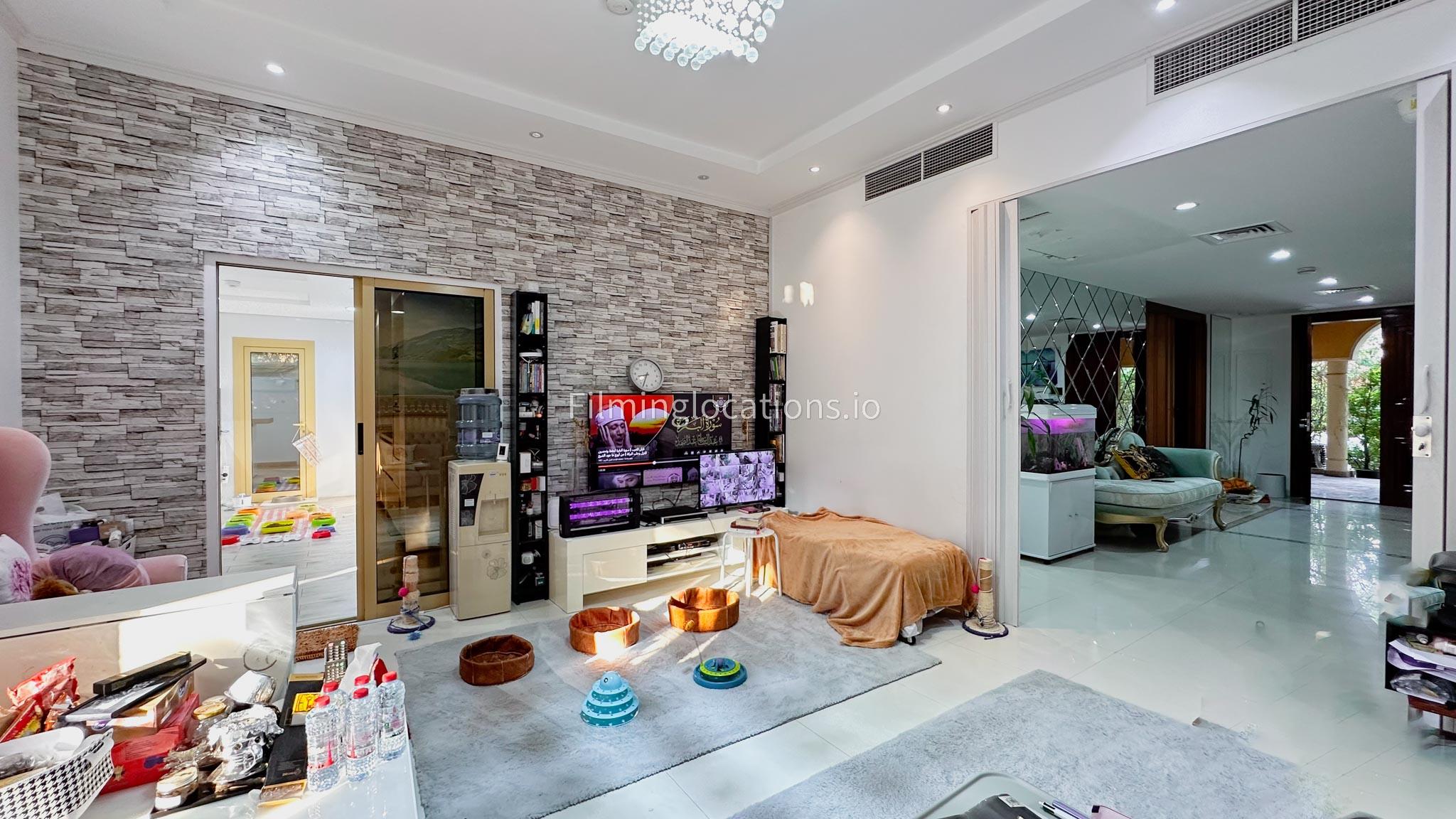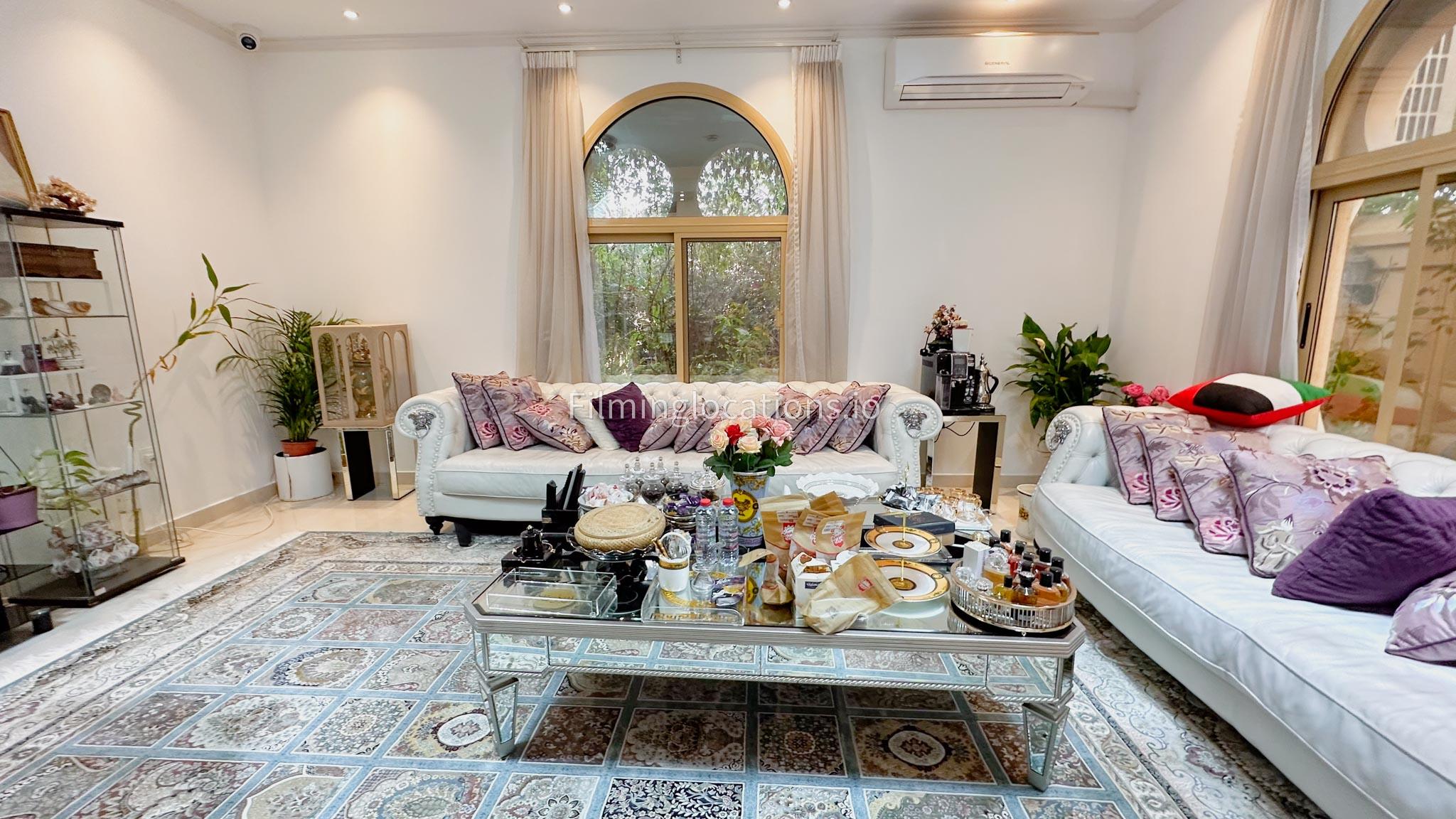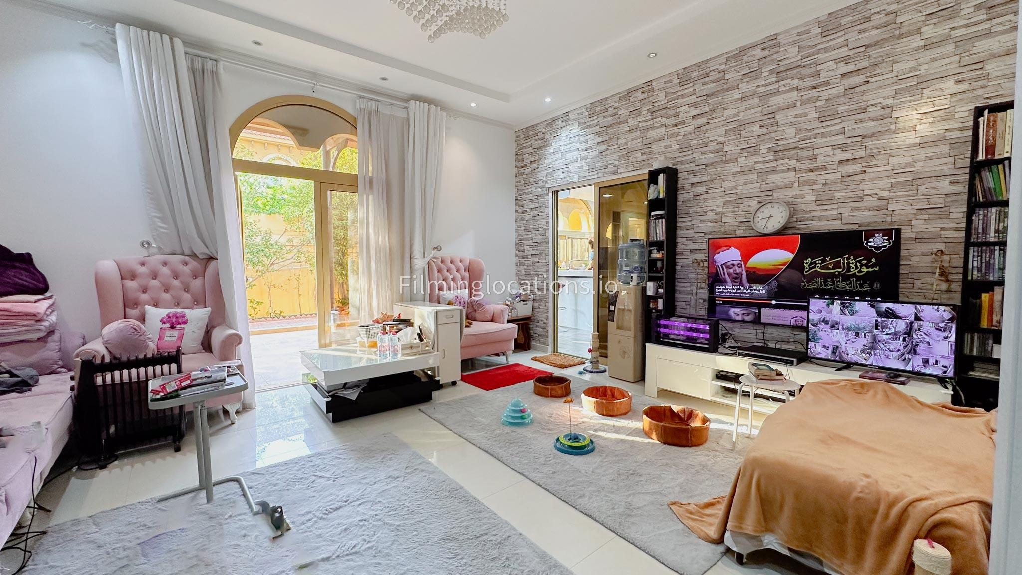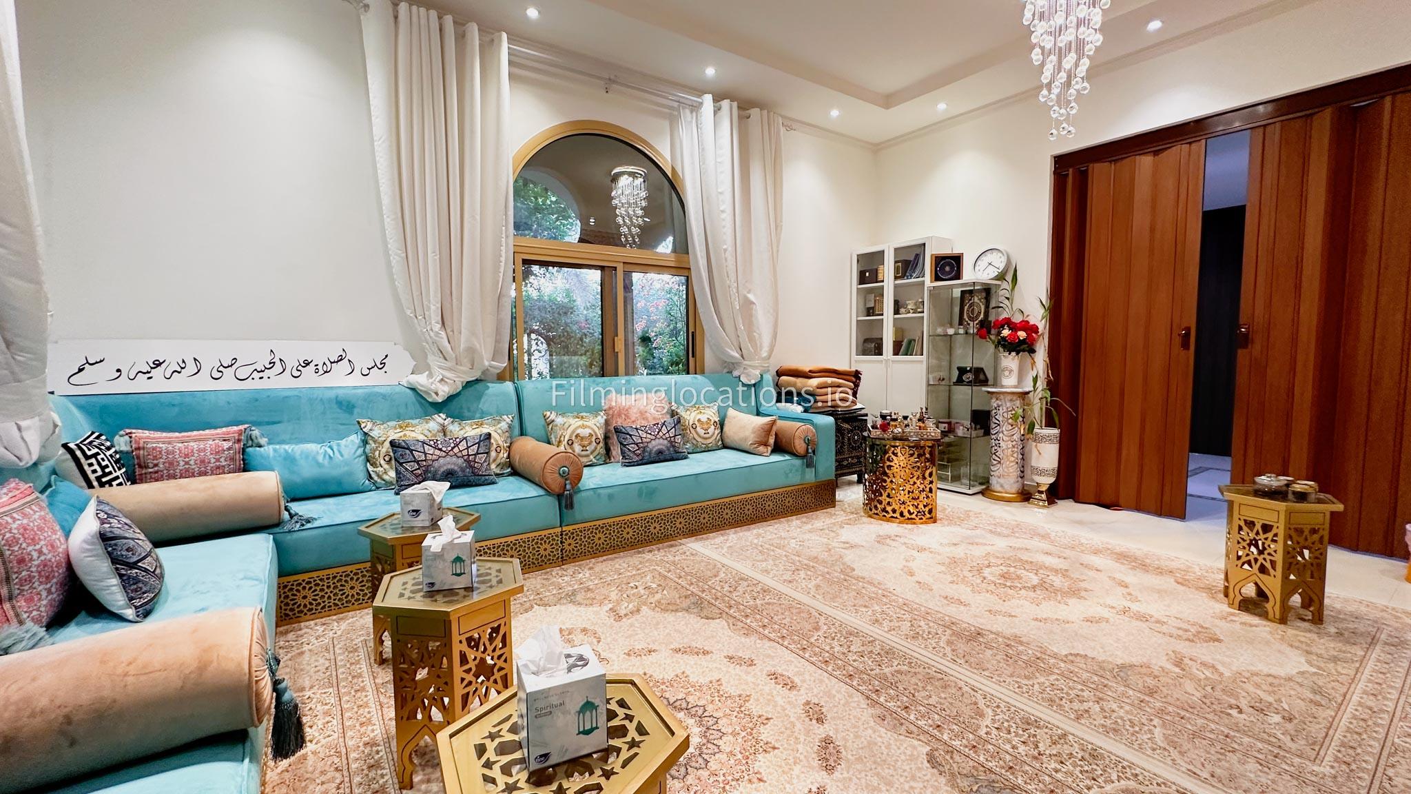 Our villa boasts 4 distinct living rooms, one is adorned in Islamic style, while another exudes modern elegance. Outside, a lovely garden awaits, offering a picturesque backdrop for filming. The kitchen, adorned in sleek white, boasts a modern design, perfect for capturing culinary scenes. Inside, a spacious double bed kids' room provides a cozy setting. Additionally, 2 generously sized master bedrooms and 2 double bed rooms showcase modern luxury