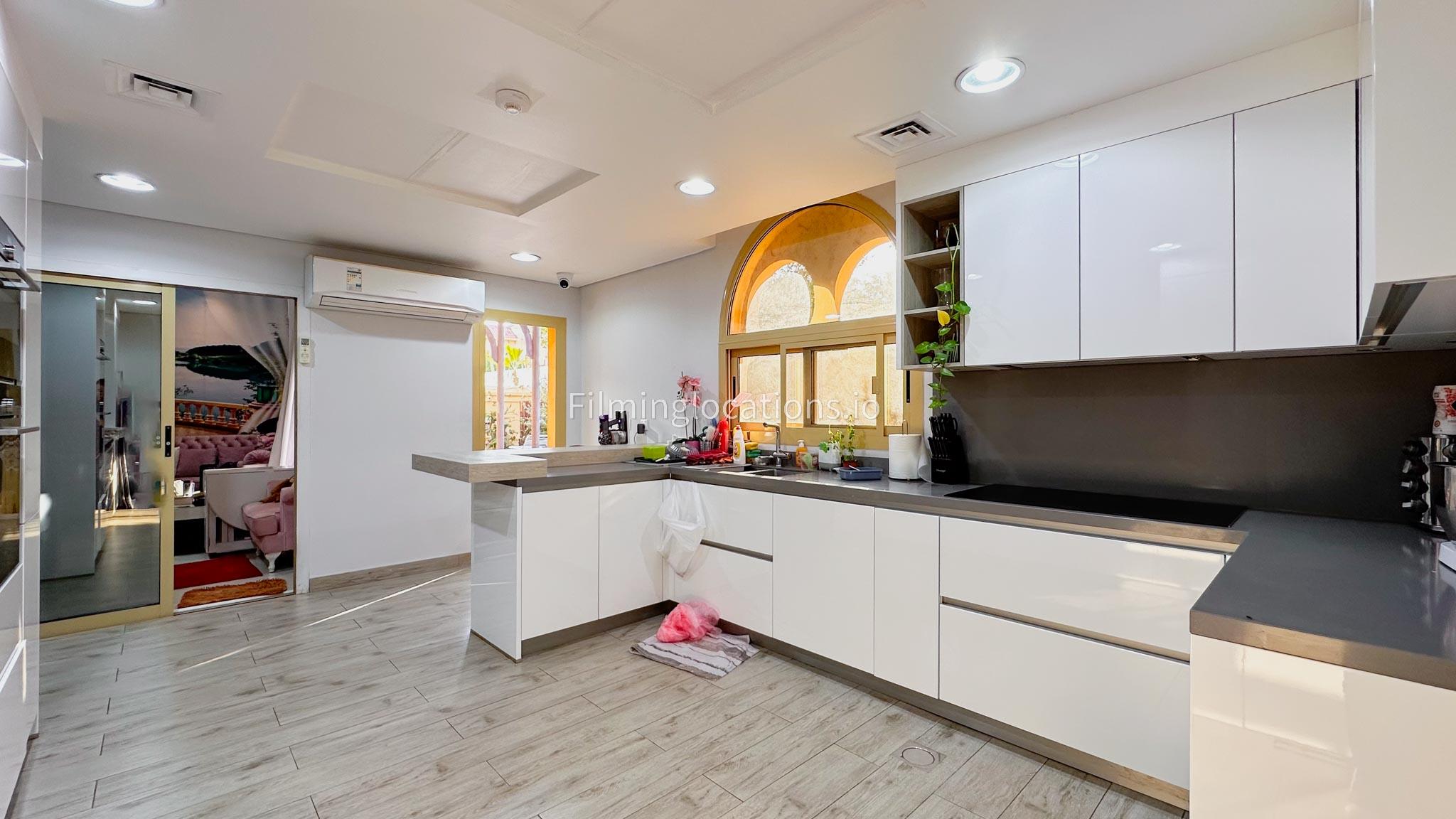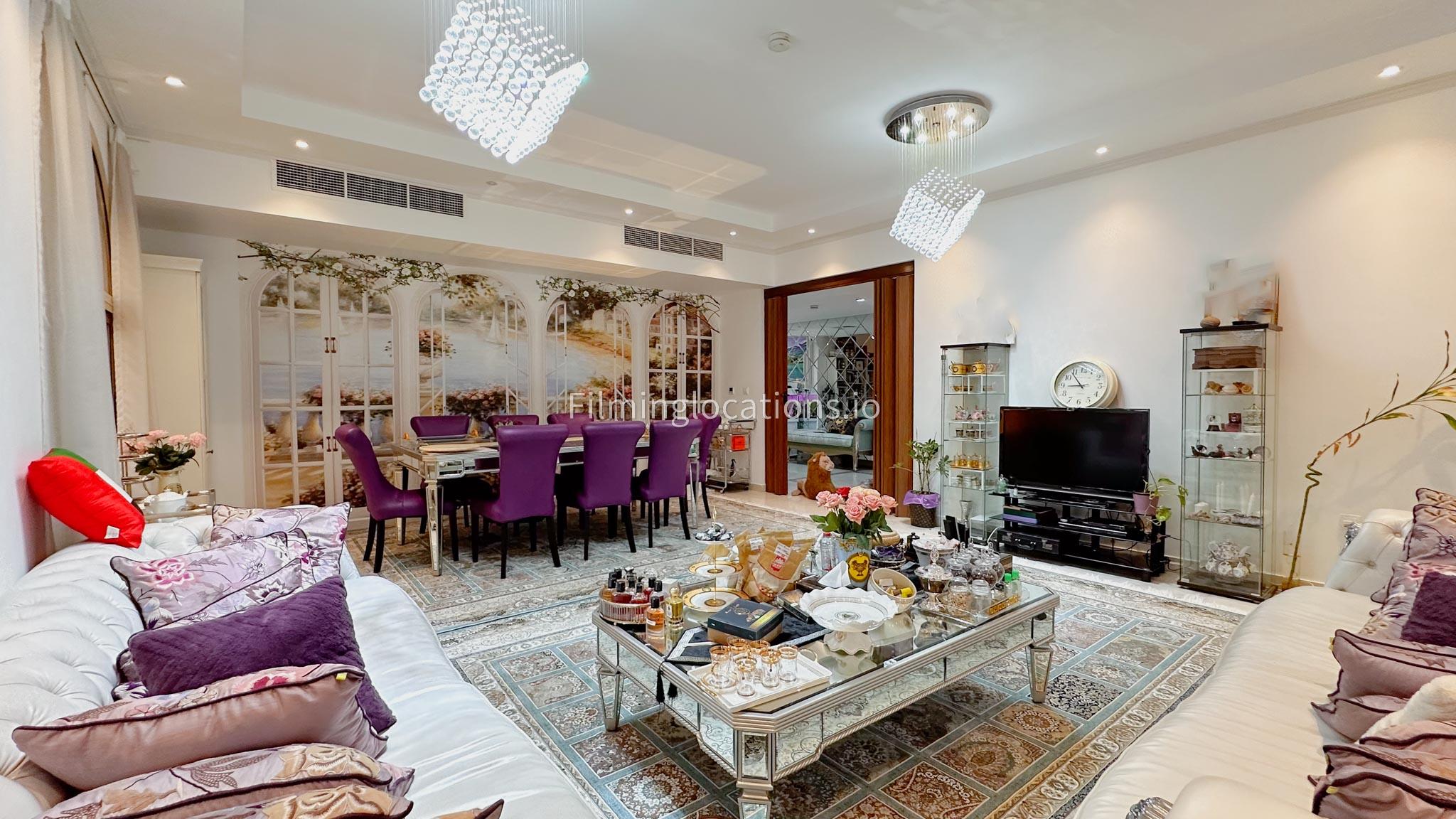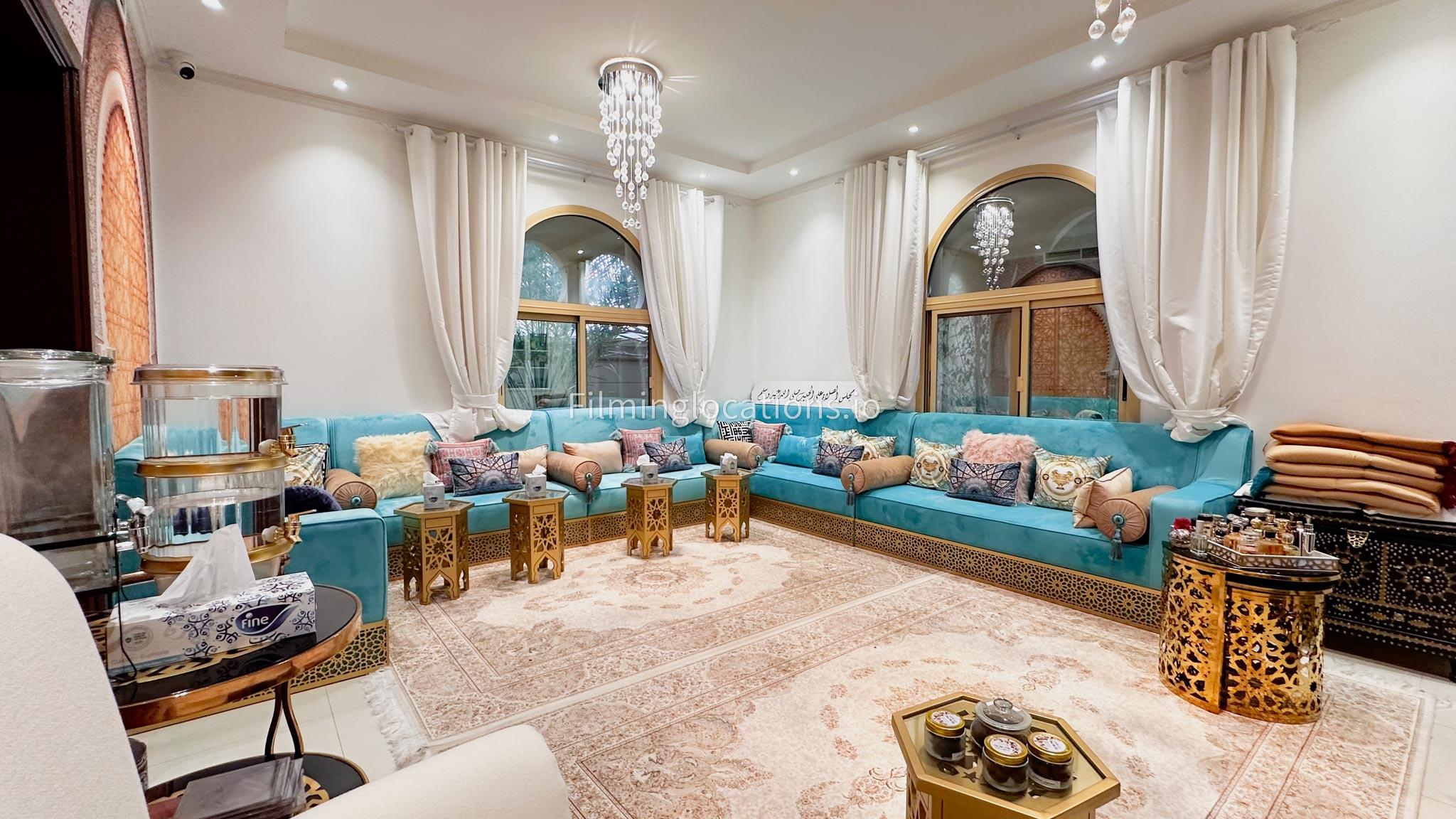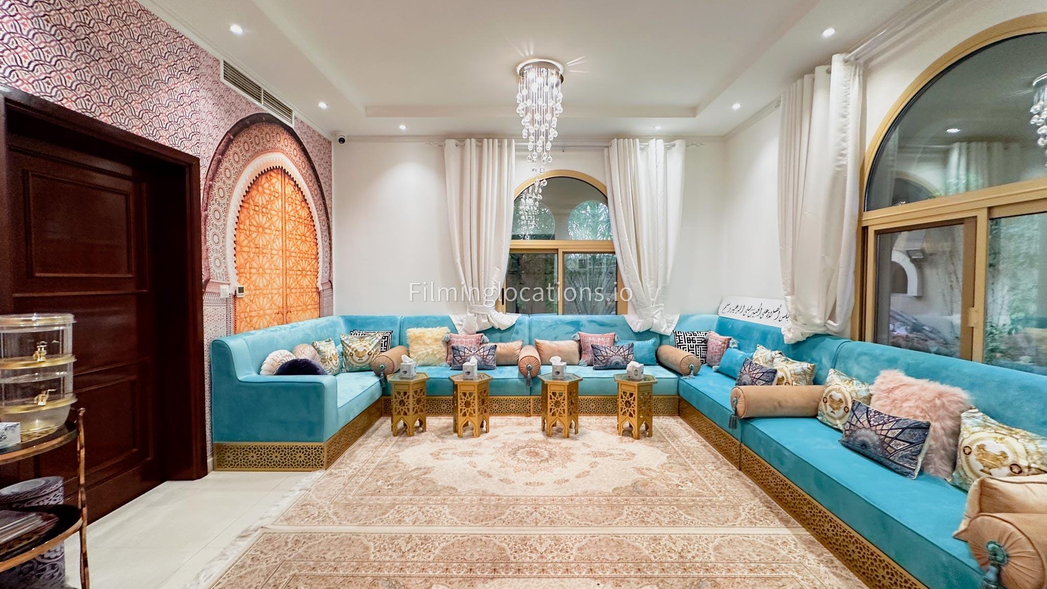 Our villa boasts 4 distinct living rooms, one is adorned in Islamic style, while another exudes modern elegance. Outside, a lovely garden awaits, offering a picturesque backdrop for filming. The kitchen, adorned in sleek white, boasts a modern design, perfect for capturing culinary scenes. Inside, a spacious double bed kids' room provides a cozy setting. Additionally, 2 generously sized master bedrooms and 2 double bed rooms showcase modern luxury