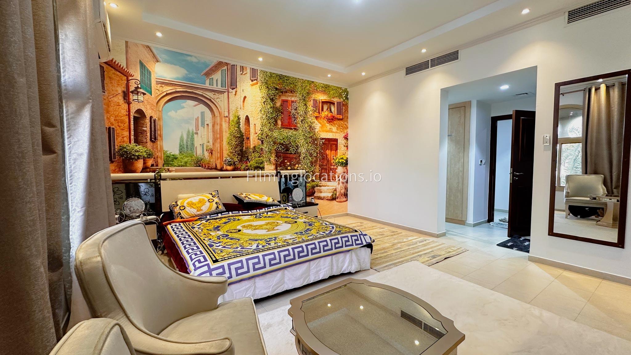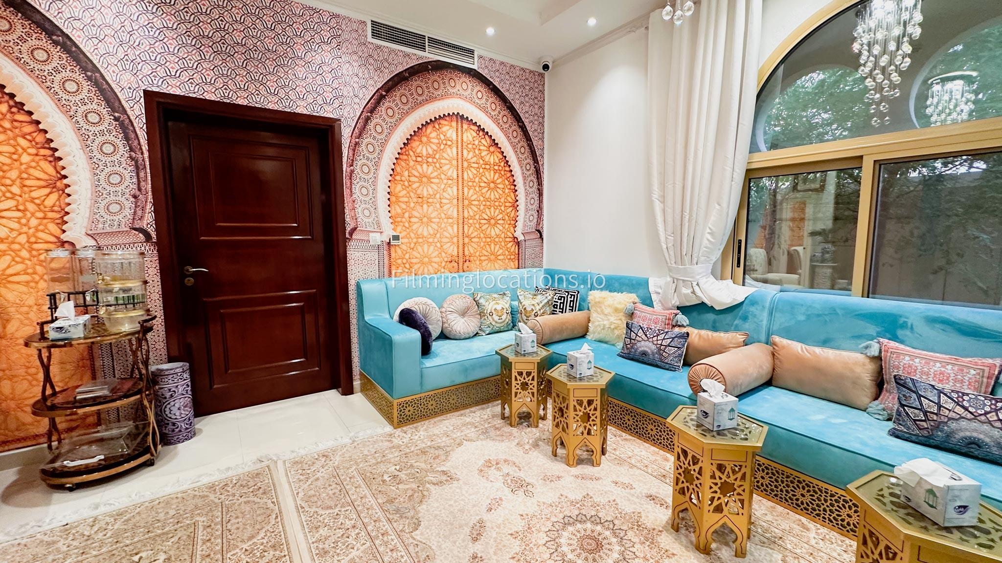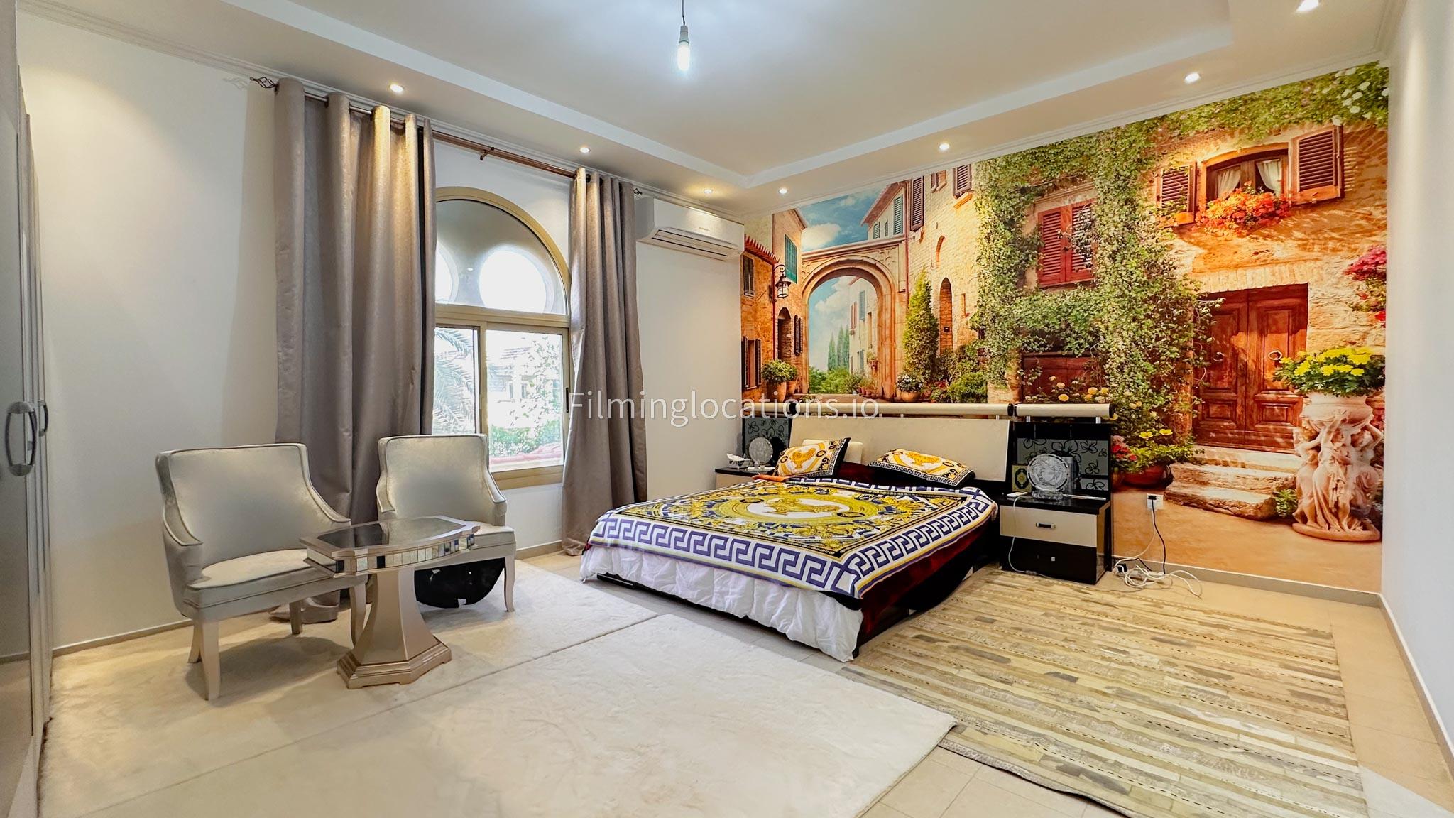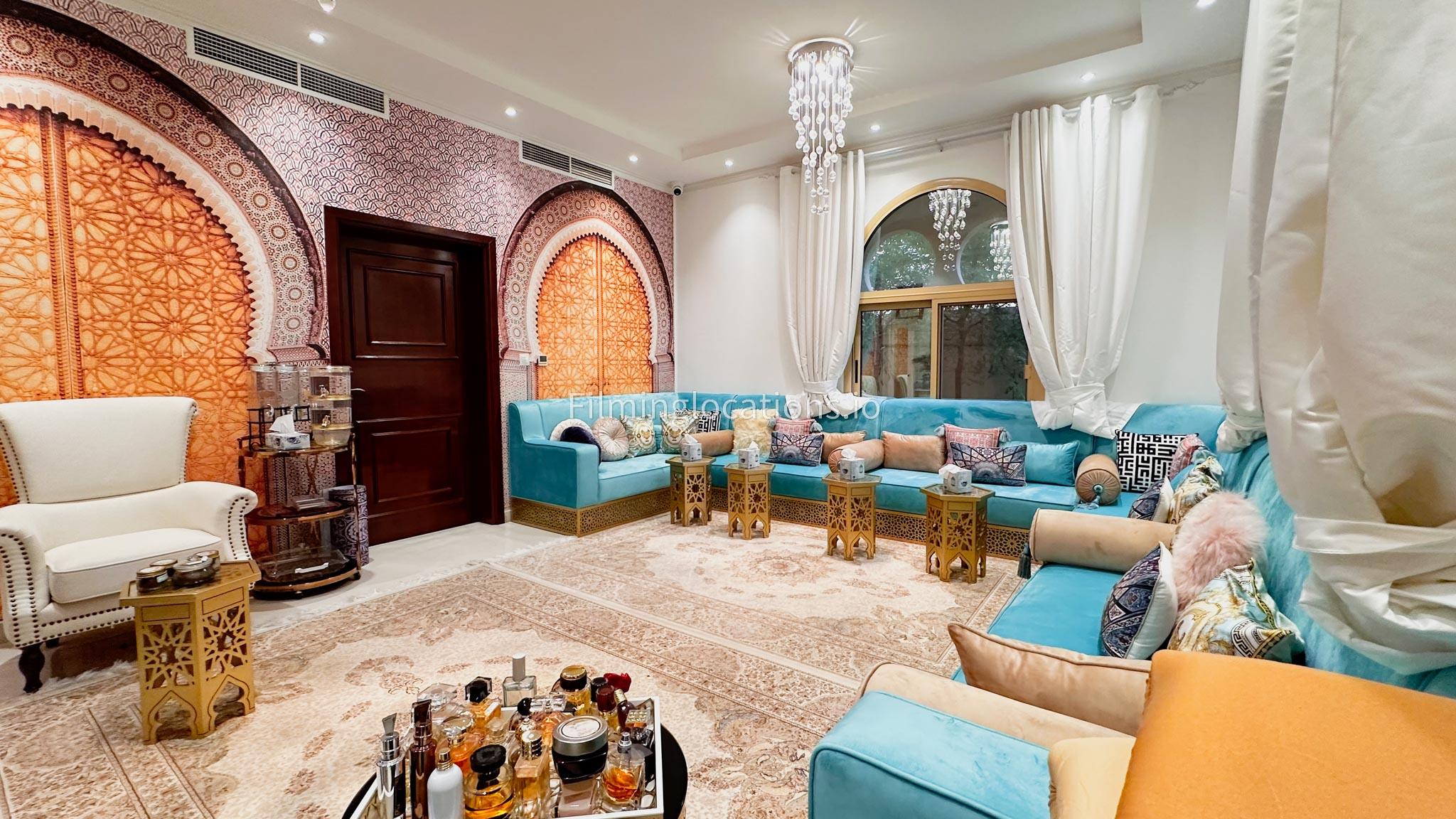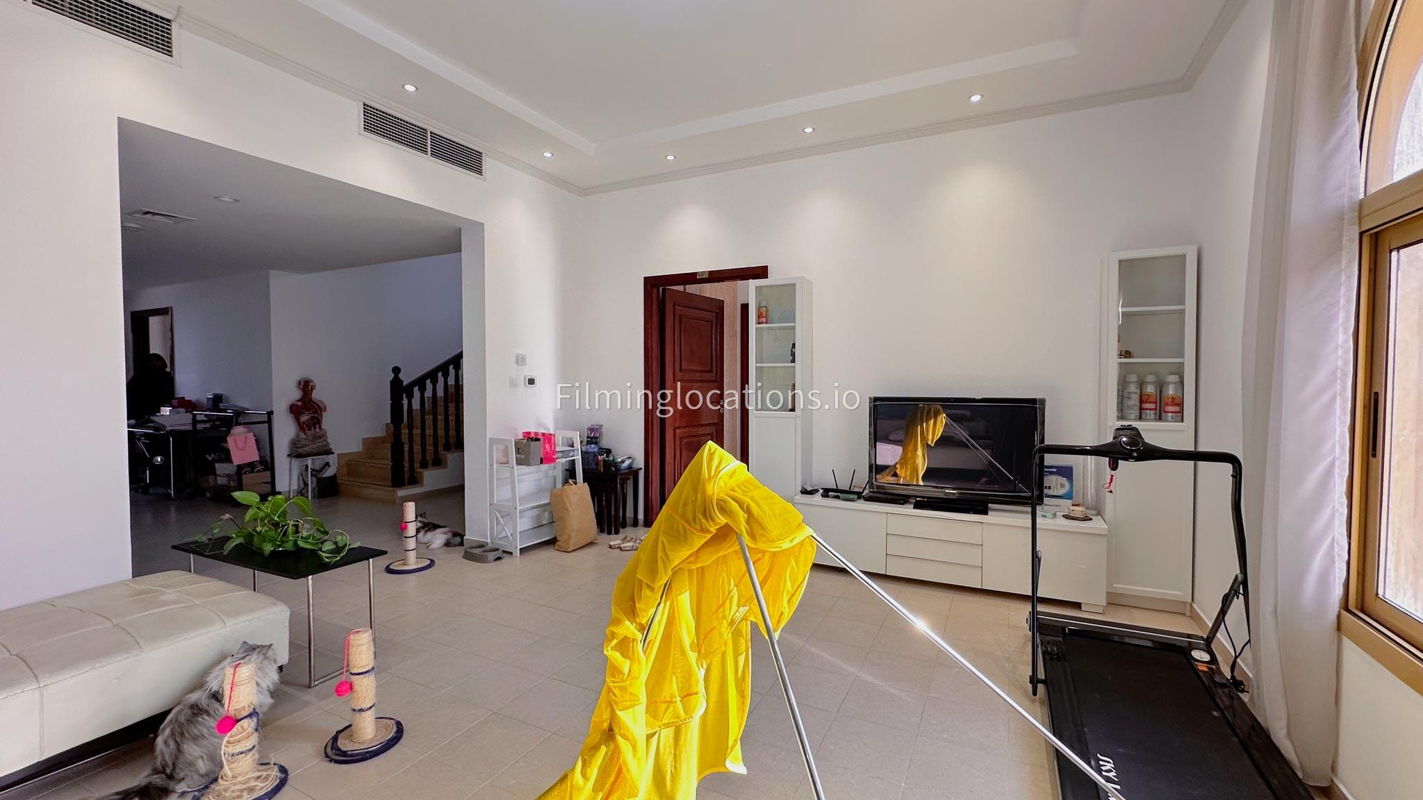 Our villa boasts 4 distinct living rooms, one is adorned in Islamic style, while another exudes modern elegance. Outside, a lovely garden awaits, offering a picturesque backdrop for filming. The kitchen, adorned in sleek white, boasts a modern design, perfect for capturing culinary scenes. Inside, a spacious double bed kids' room provides a cozy setting. Additionally, 2 generously sized master bedrooms and 2 double bed rooms showcase modern luxury