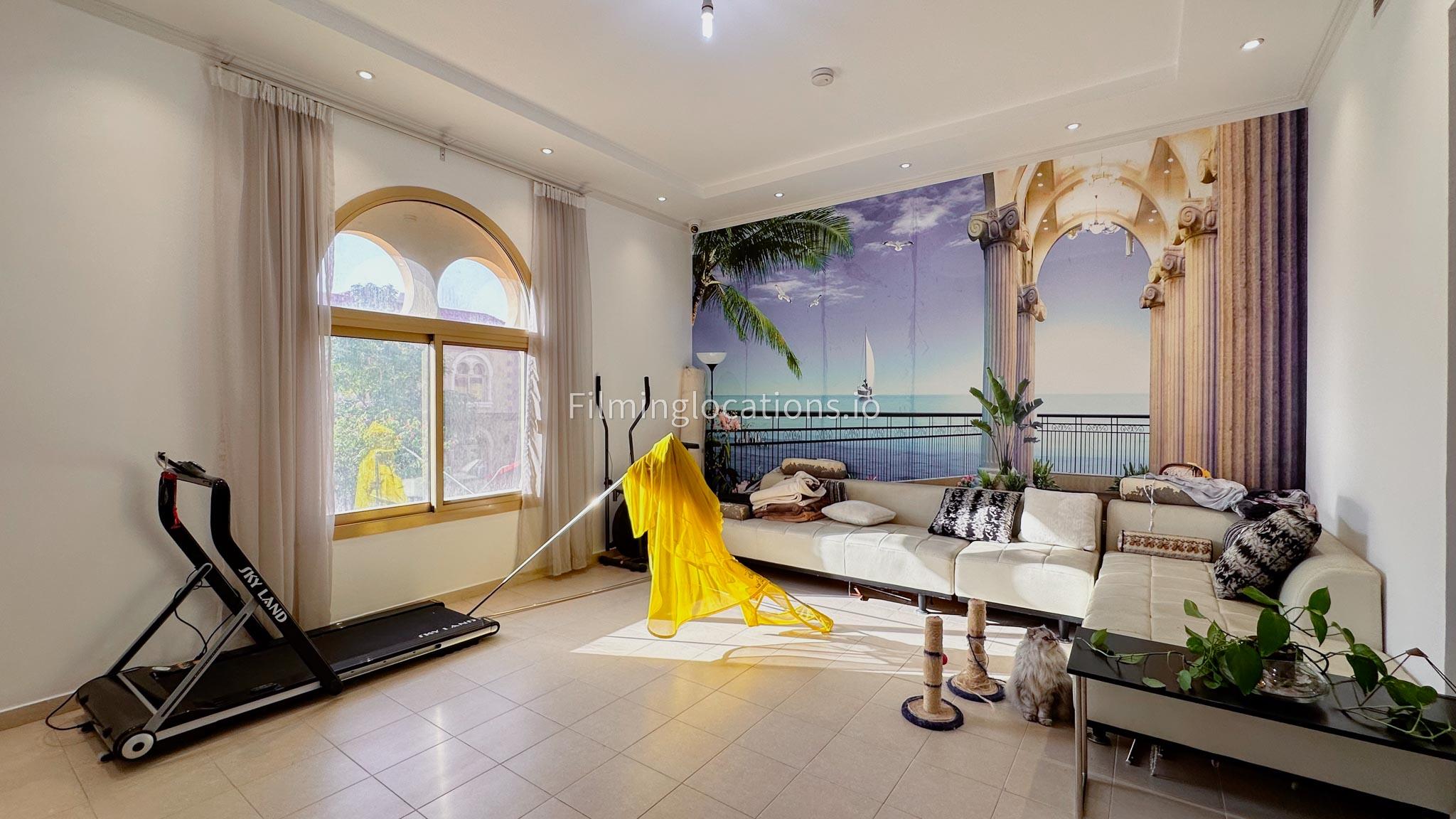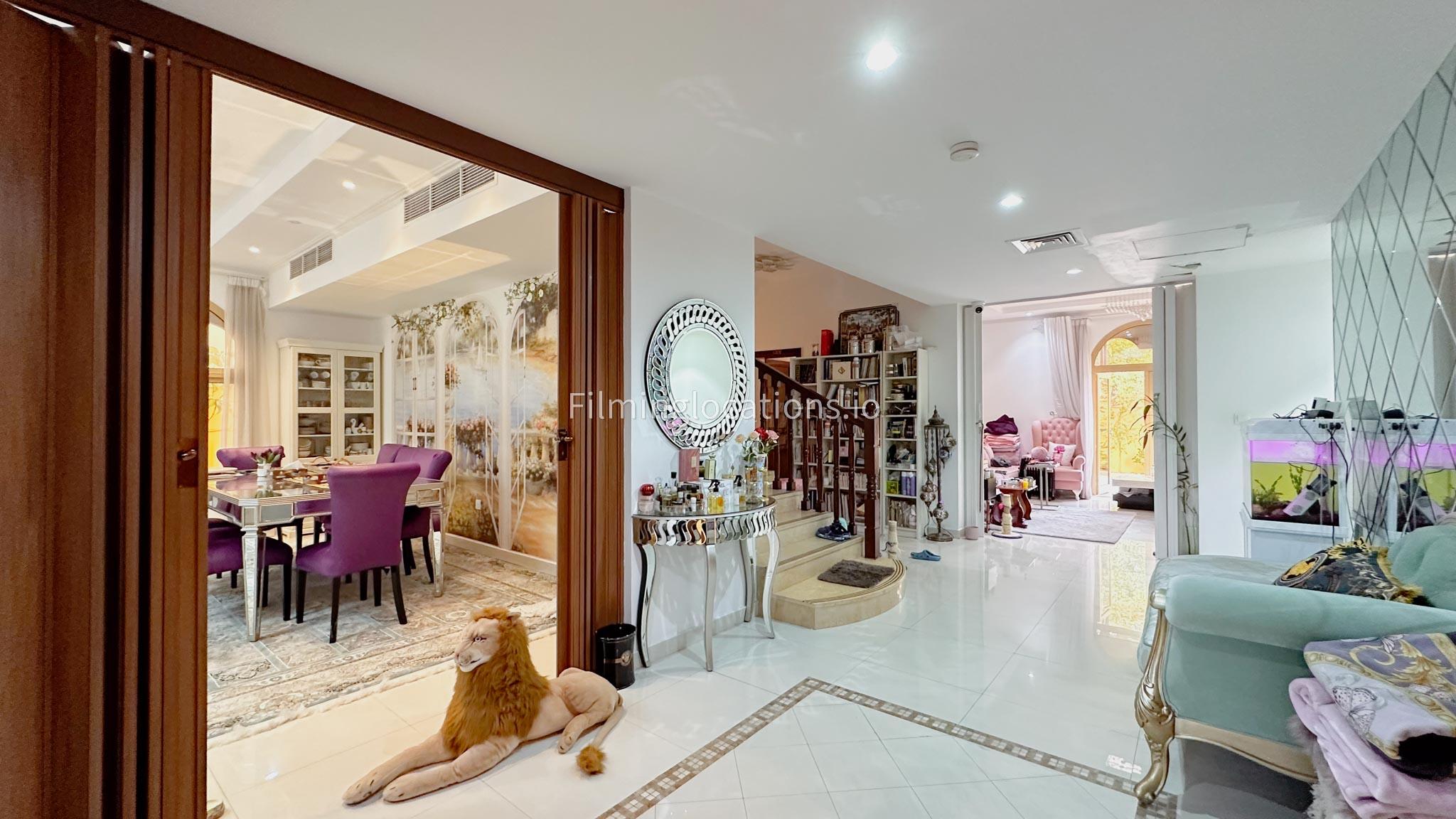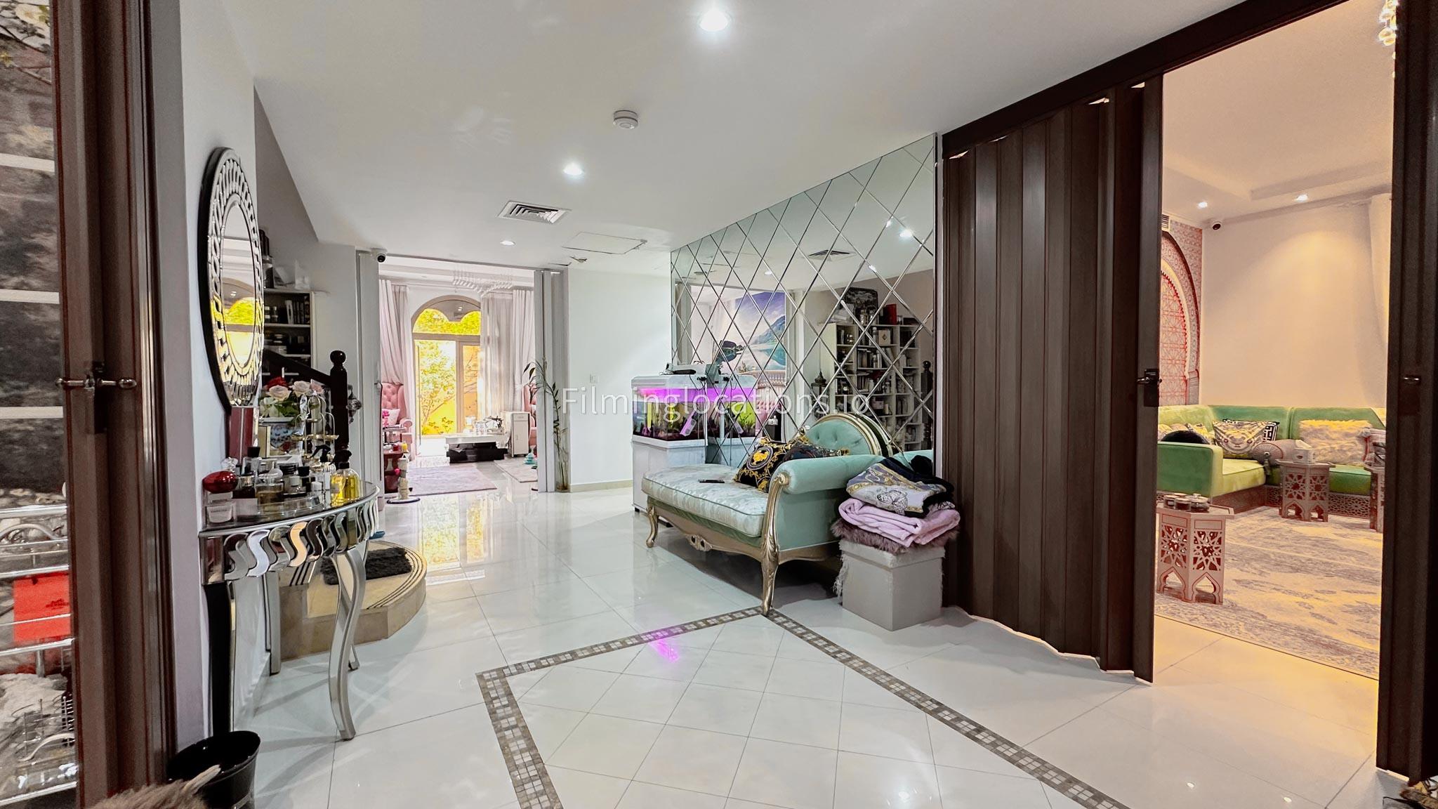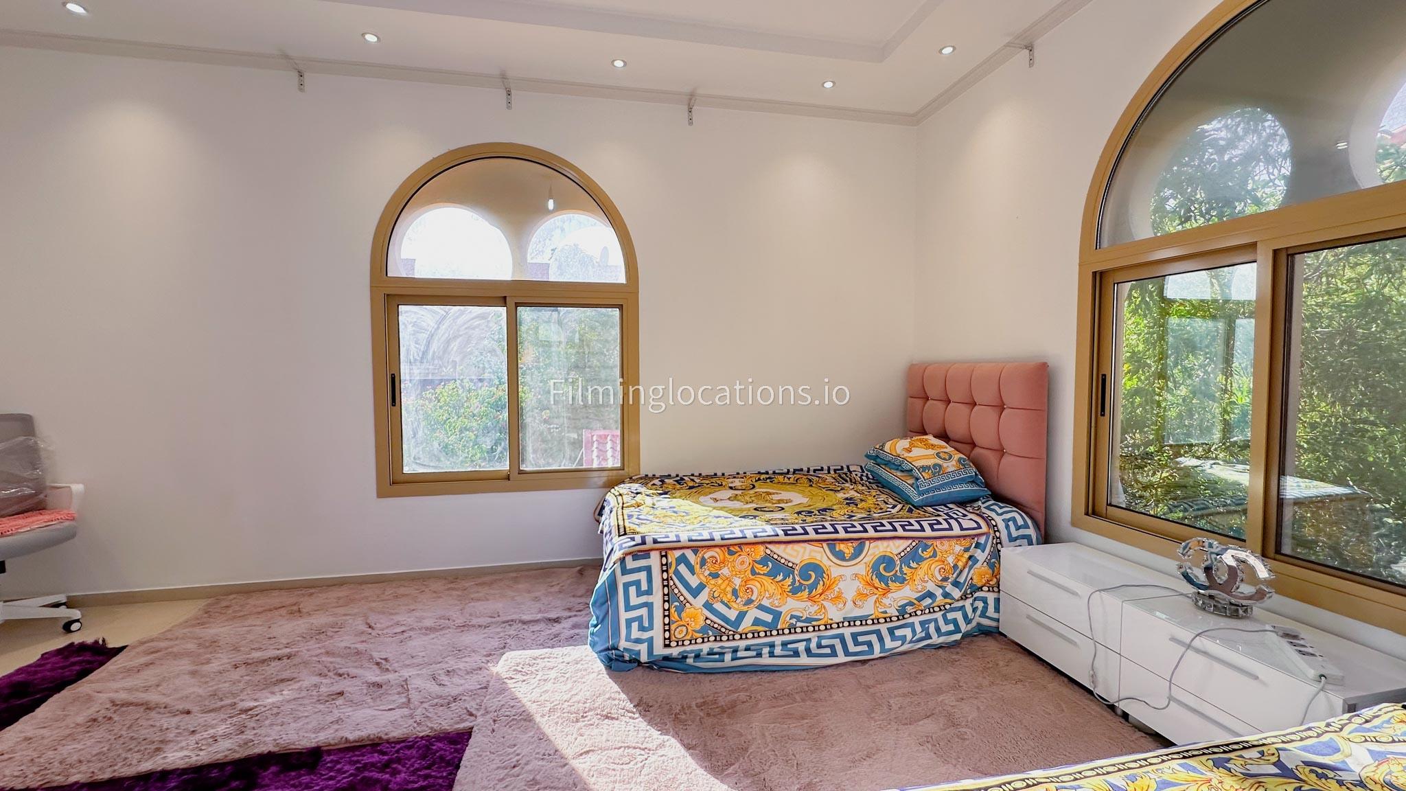 Our villa boasts 4 distinct living rooms, one is adorned in Islamic style, while another exudes modern elegance. Outside, a lovely garden awaits, offering a picturesque backdrop for filming. The kitchen, adorned in sleek white, boasts a modern design, perfect for capturing culinary scenes. Inside, a spacious double bed kids' room provides a cozy setting. Additionally, 2 generously sized master bedrooms and 2 double bed rooms showcase modern luxury
