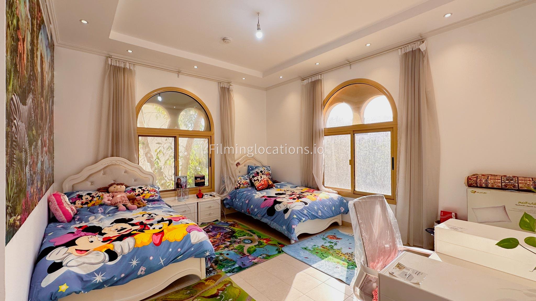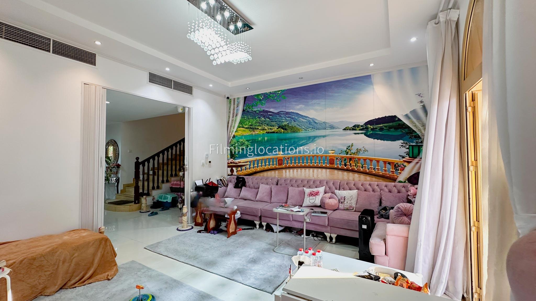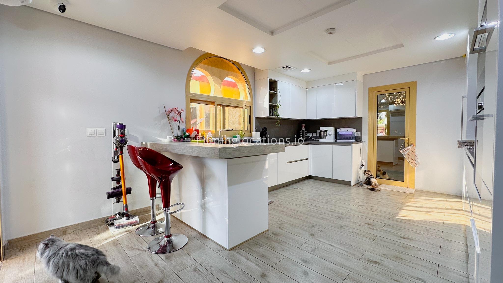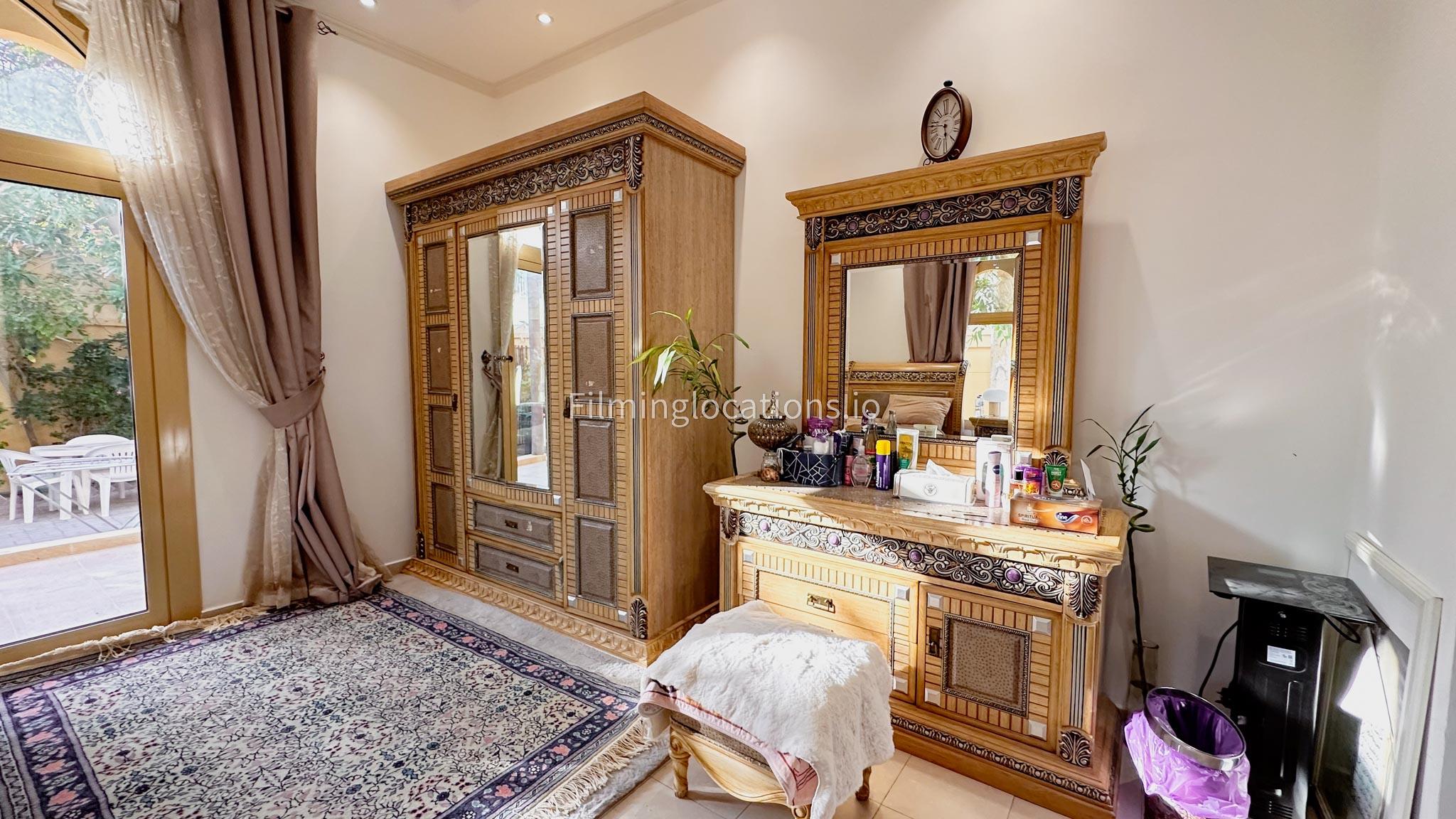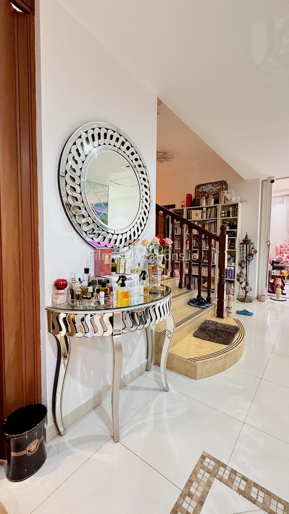 Our villa boasts 4 distinct living rooms, one is adorned in Islamic style, while another exudes modern elegance. Outside, a lovely garden awaits, offering a picturesque backdrop for filming. The kitchen, adorned in sleek white, boasts a modern design, perfect for capturing culinary scenes. Inside, a spacious double bed kids' room provides a cozy setting. Additionally, 2 generously sized master bedrooms and 2 double bed rooms showcase modern luxury