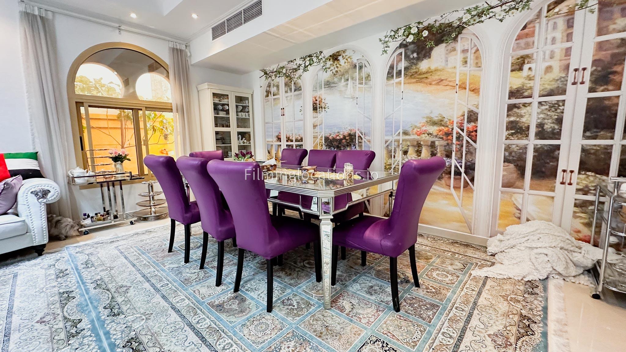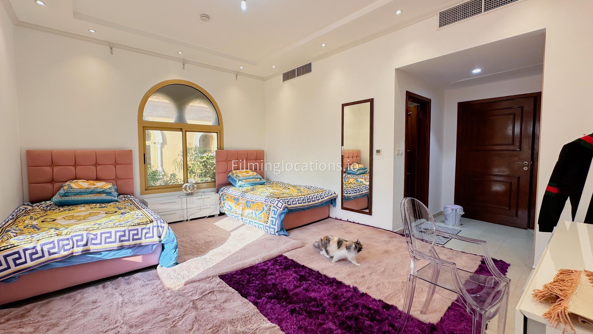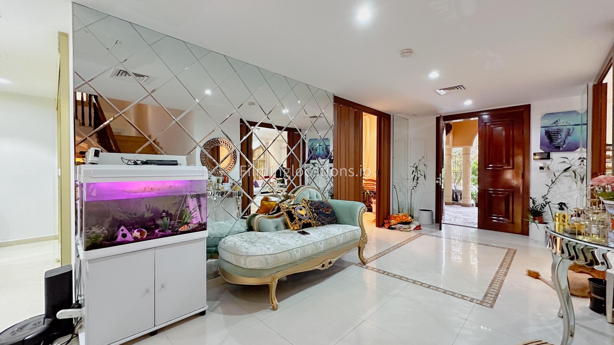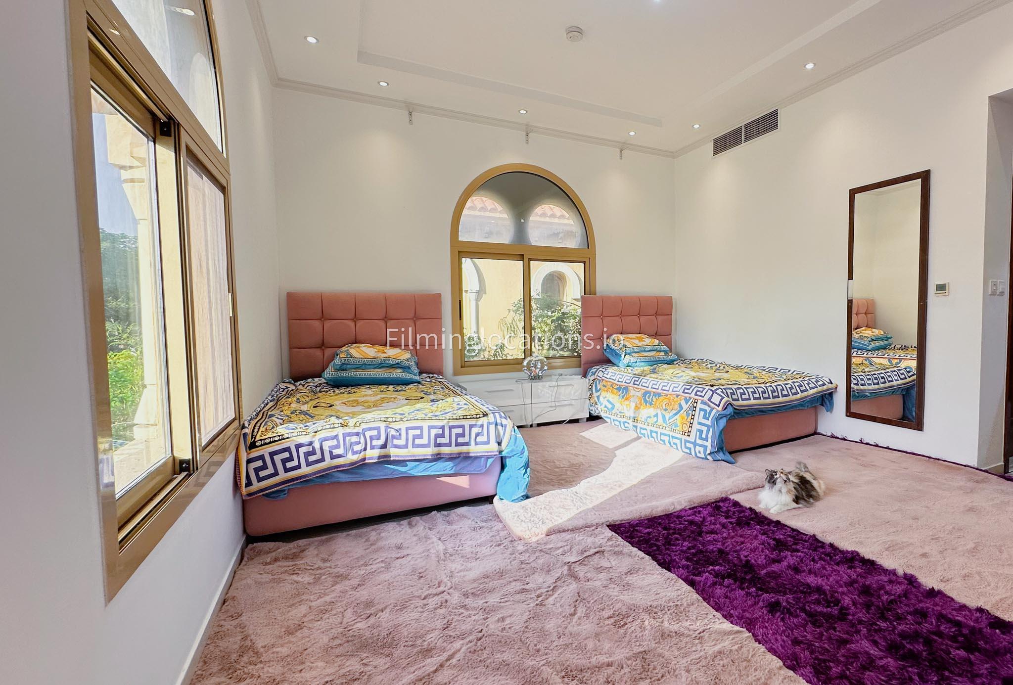 Our villa boasts 4 distinct living rooms, one is adorned in Islamic style, while another exudes modern elegance. Outside, a lovely garden awaits, offering a picturesque backdrop for filming. The kitchen, adorned in sleek white, boasts a modern design, perfect for capturing culinary scenes. Inside, a spacious double bed kids' room provides a cozy setting. Additionally, 2 generously sized master bedrooms and 2 double bed rooms showcase modern luxury