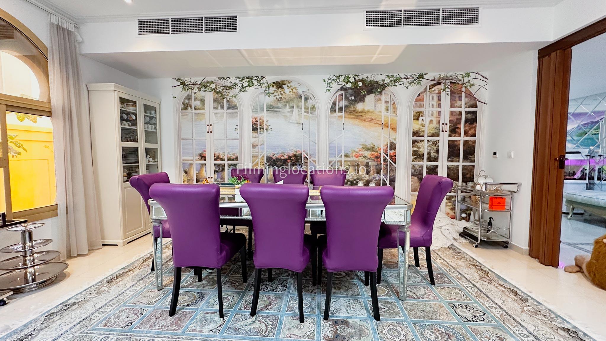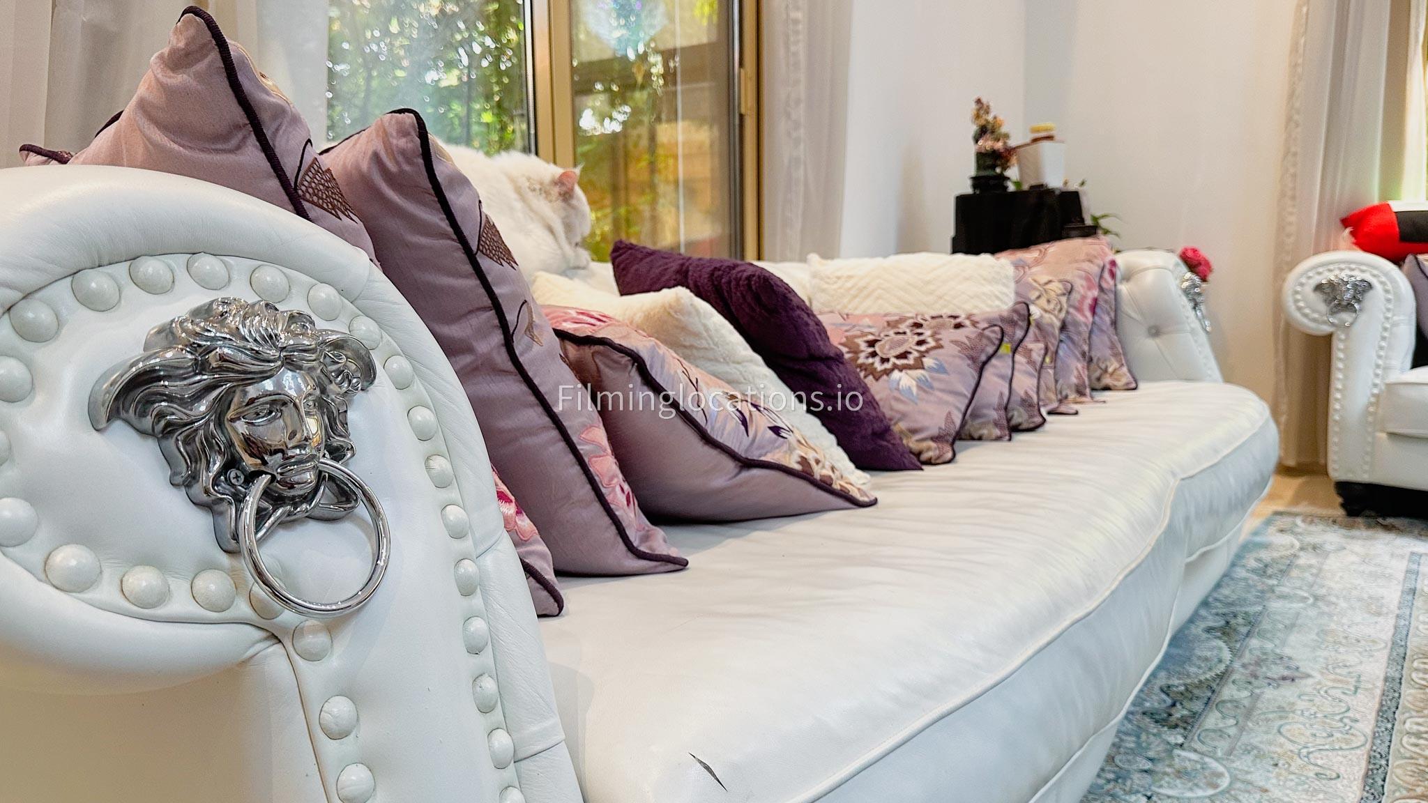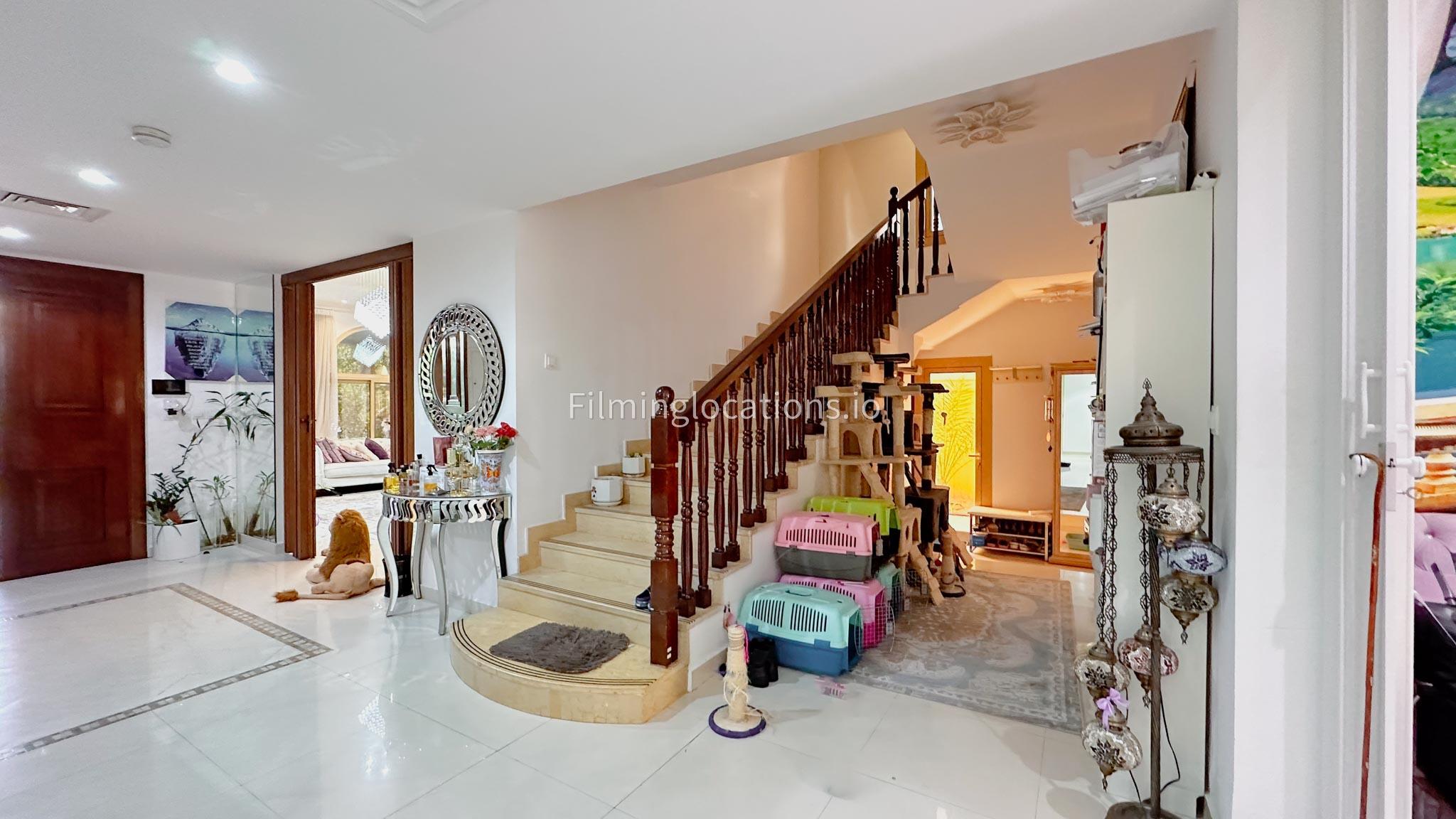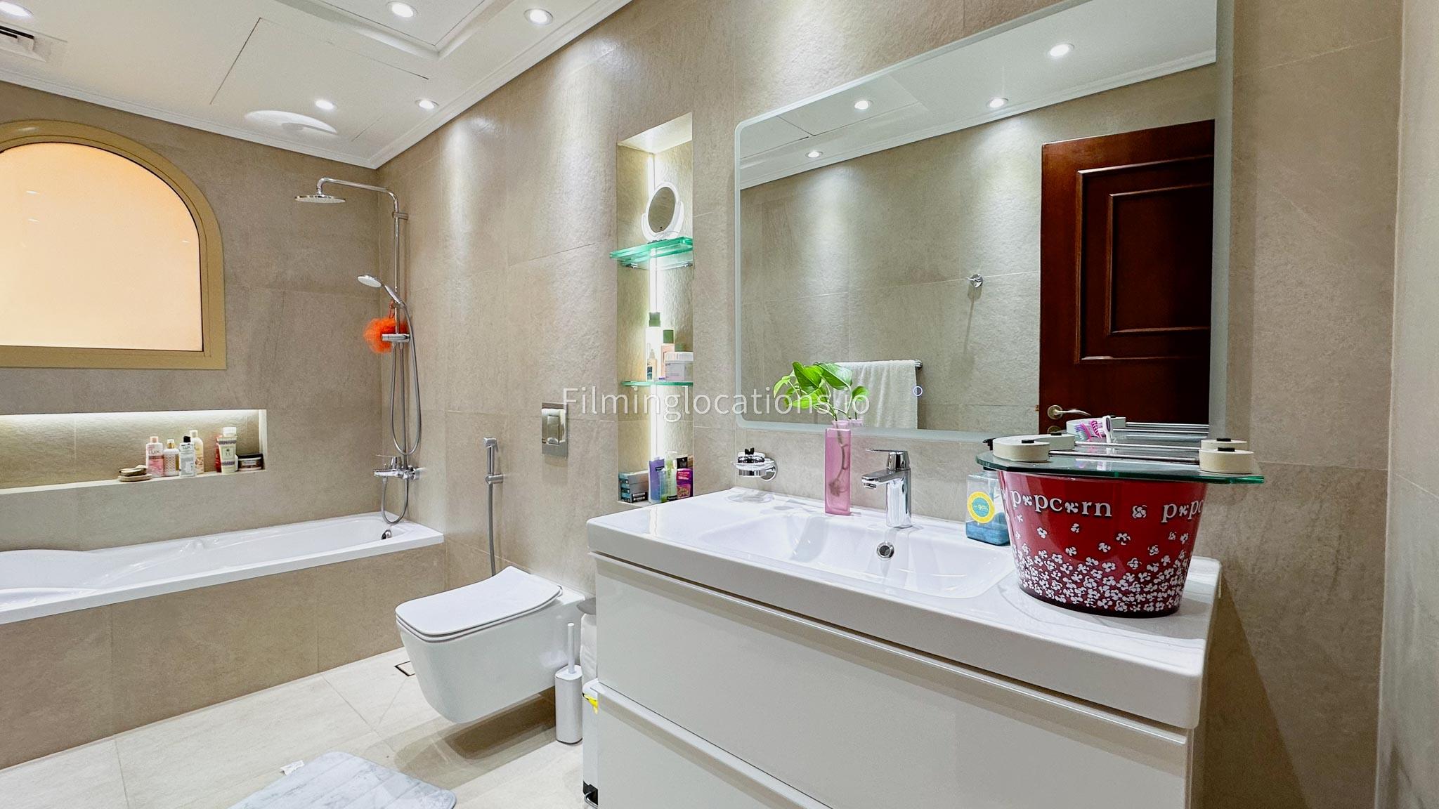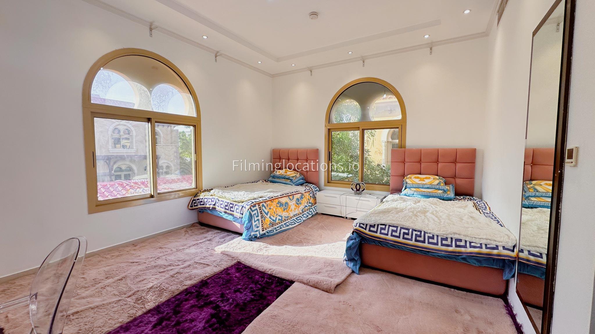 Our villa boasts 4 distinct living rooms, one is adorned in Islamic style, while another exudes modern elegance. Outside, a lovely garden awaits, offering a picturesque backdrop for filming. The kitchen, adorned in sleek white, boasts a modern design, perfect for capturing culinary scenes. Inside, a spacious double bed kids' room provides a cozy setting. Additionally, 2 generously sized master bedrooms and 2 double bed rooms showcase modern luxury