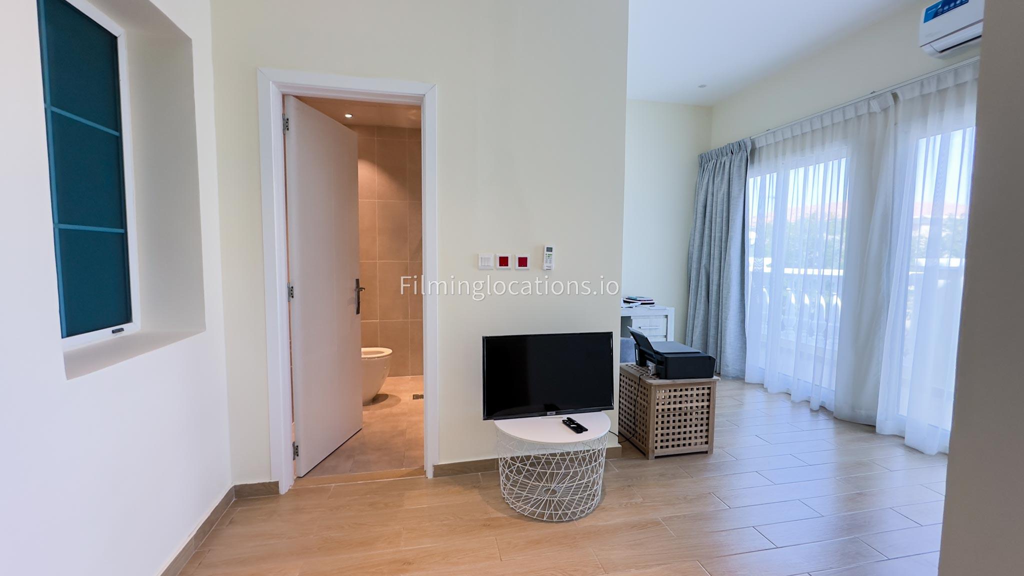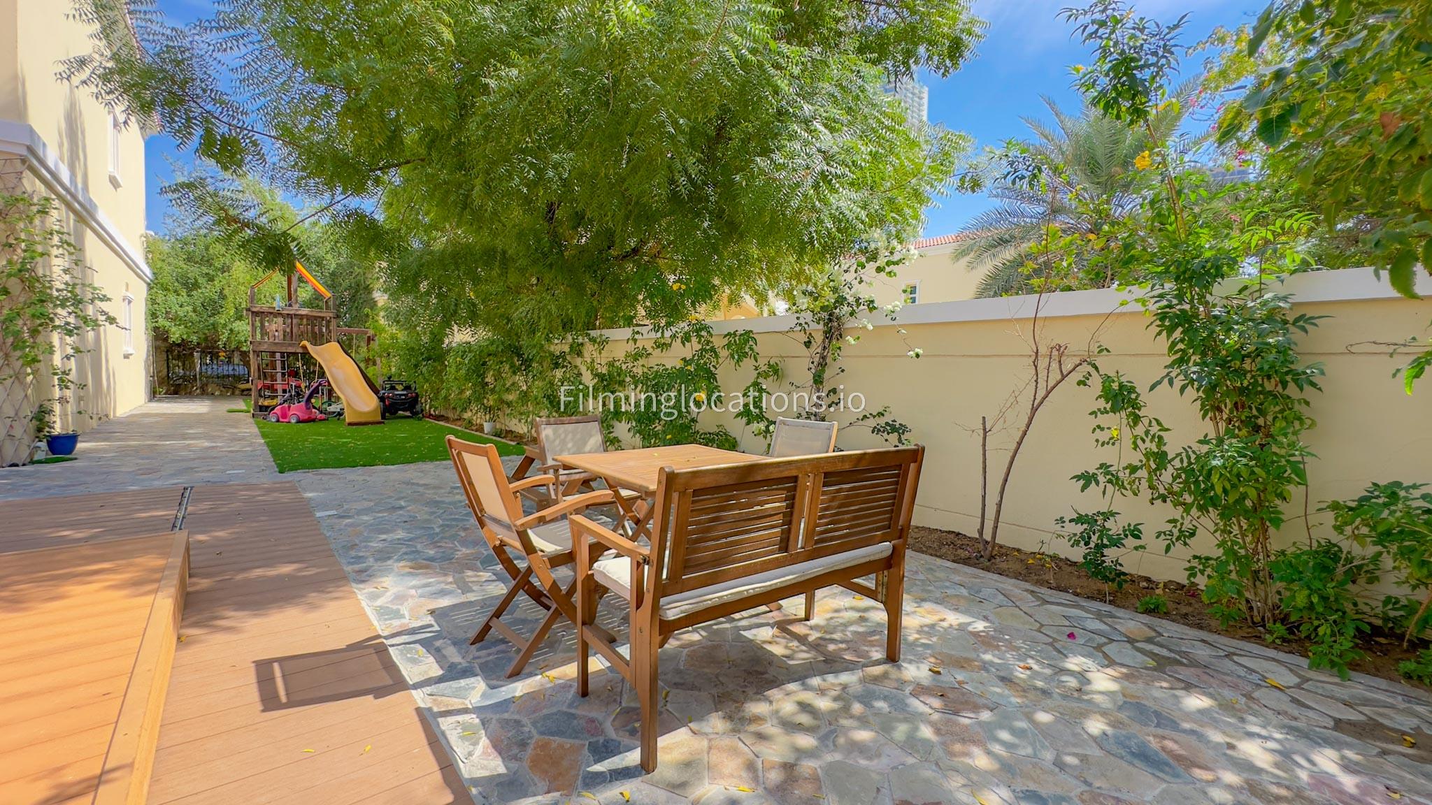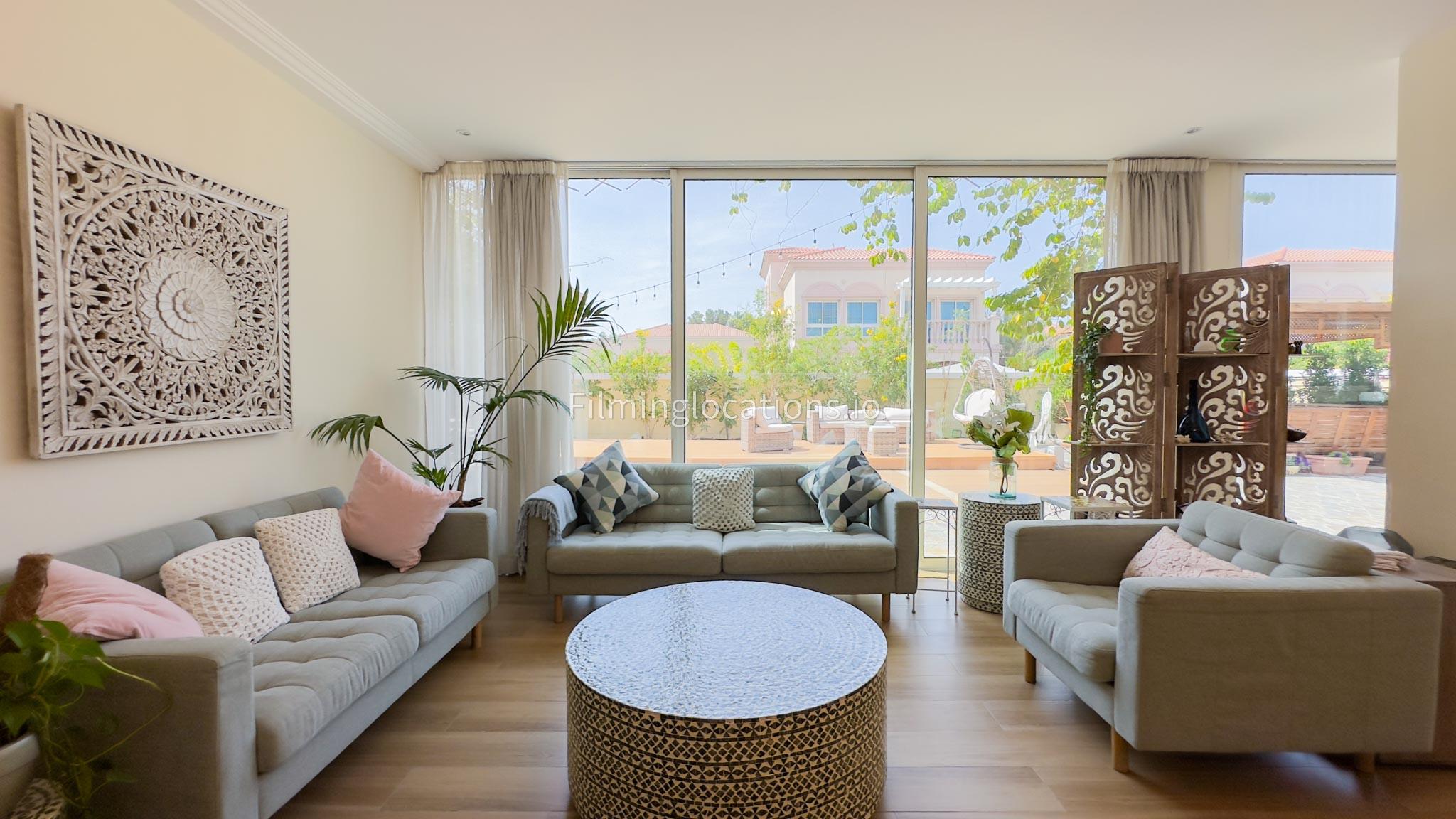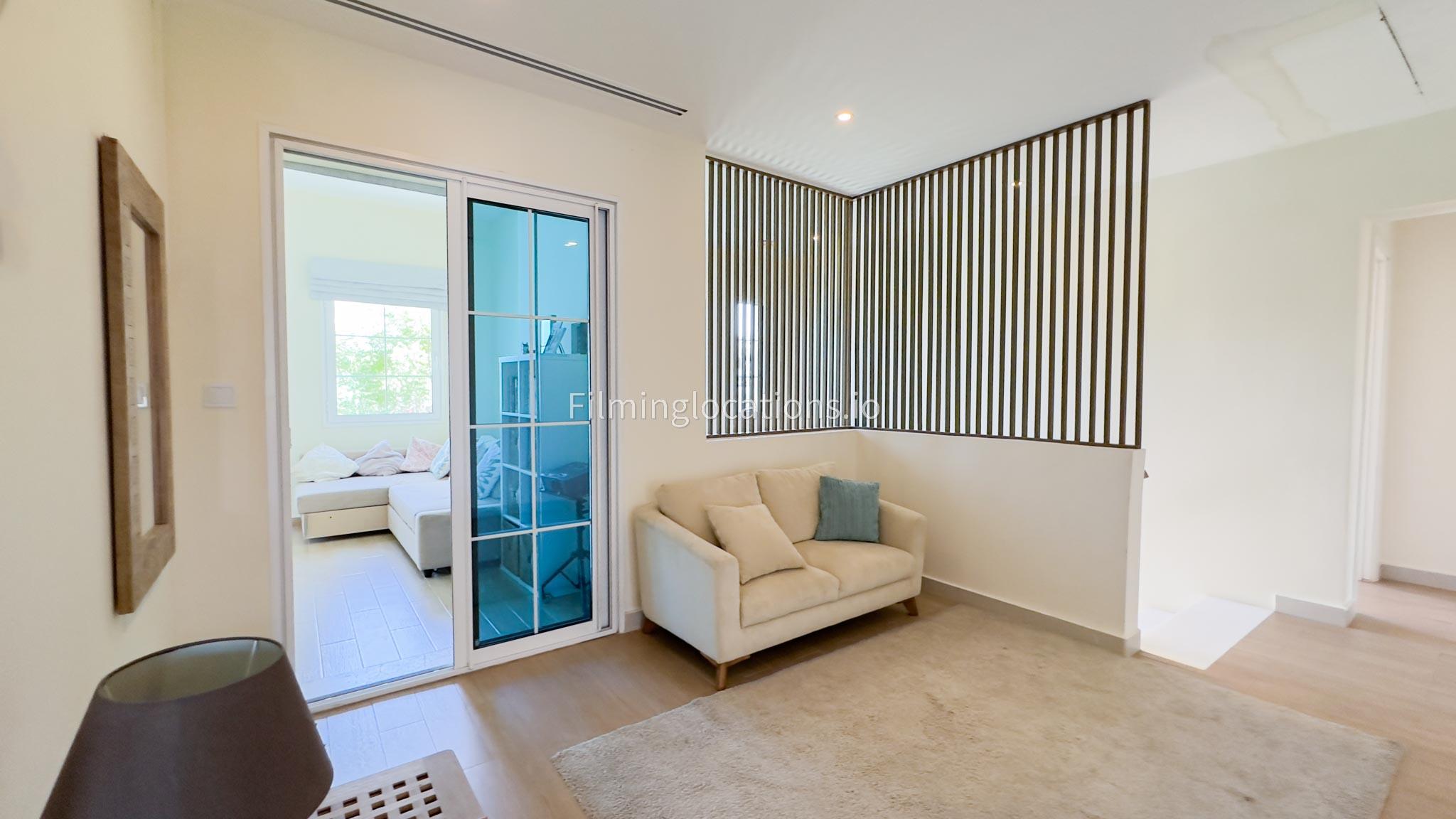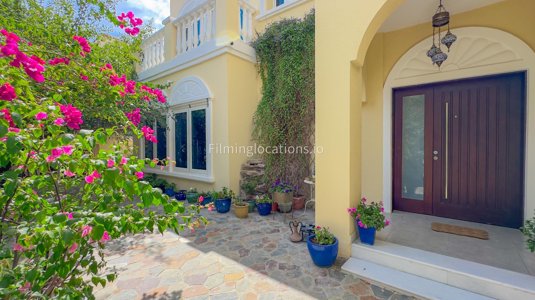 Our villa exudes a contemporary charm, featuring 6 bedrooms and a spacious living area adorned with a piano and exquisite Middle Eastern artwork. The backyard presents a picturesque scene with a swimming pool featuring a sliding deck, a wooden gazebo, and outdoor seating surrounded by greenery. These features make our villa an ideal choice for filmmakers seeking an elegant yet versatile setting for their productions.