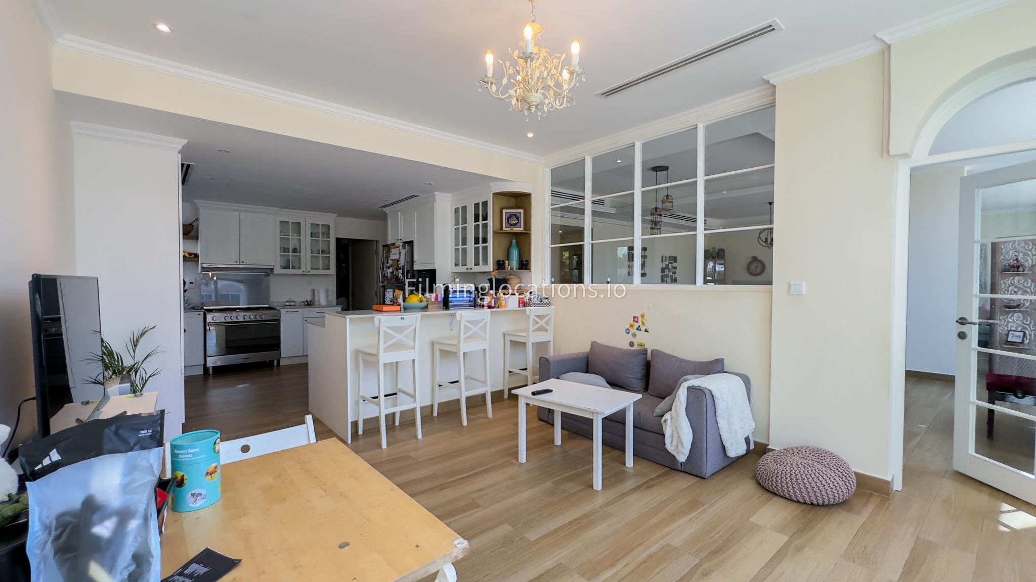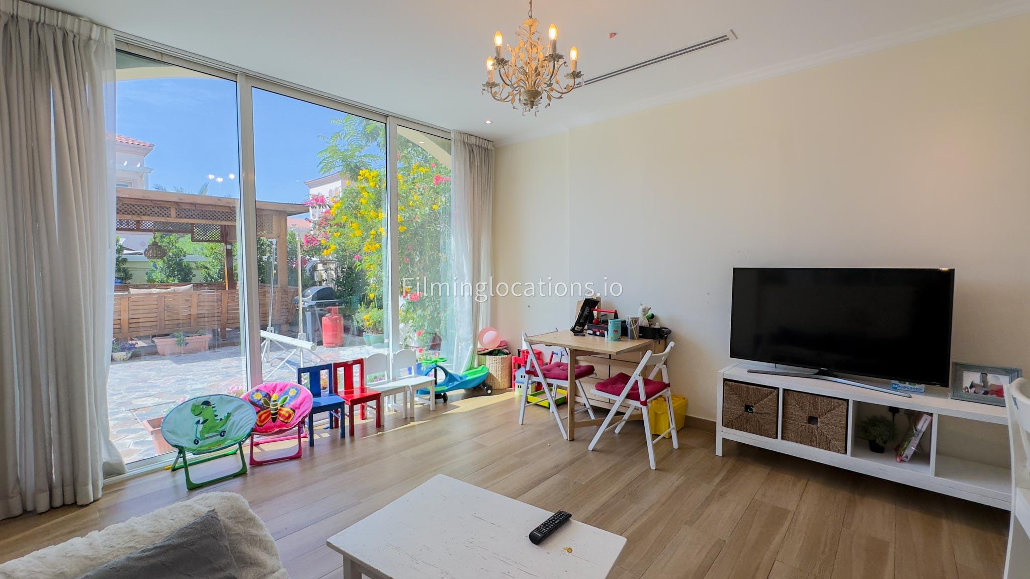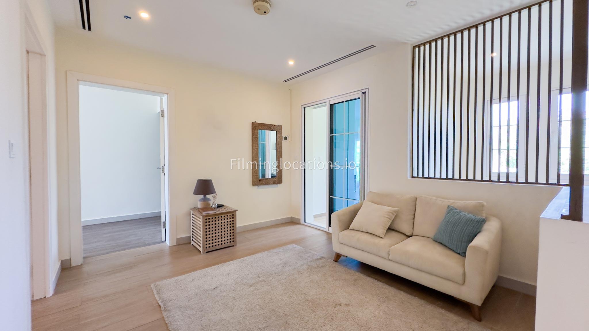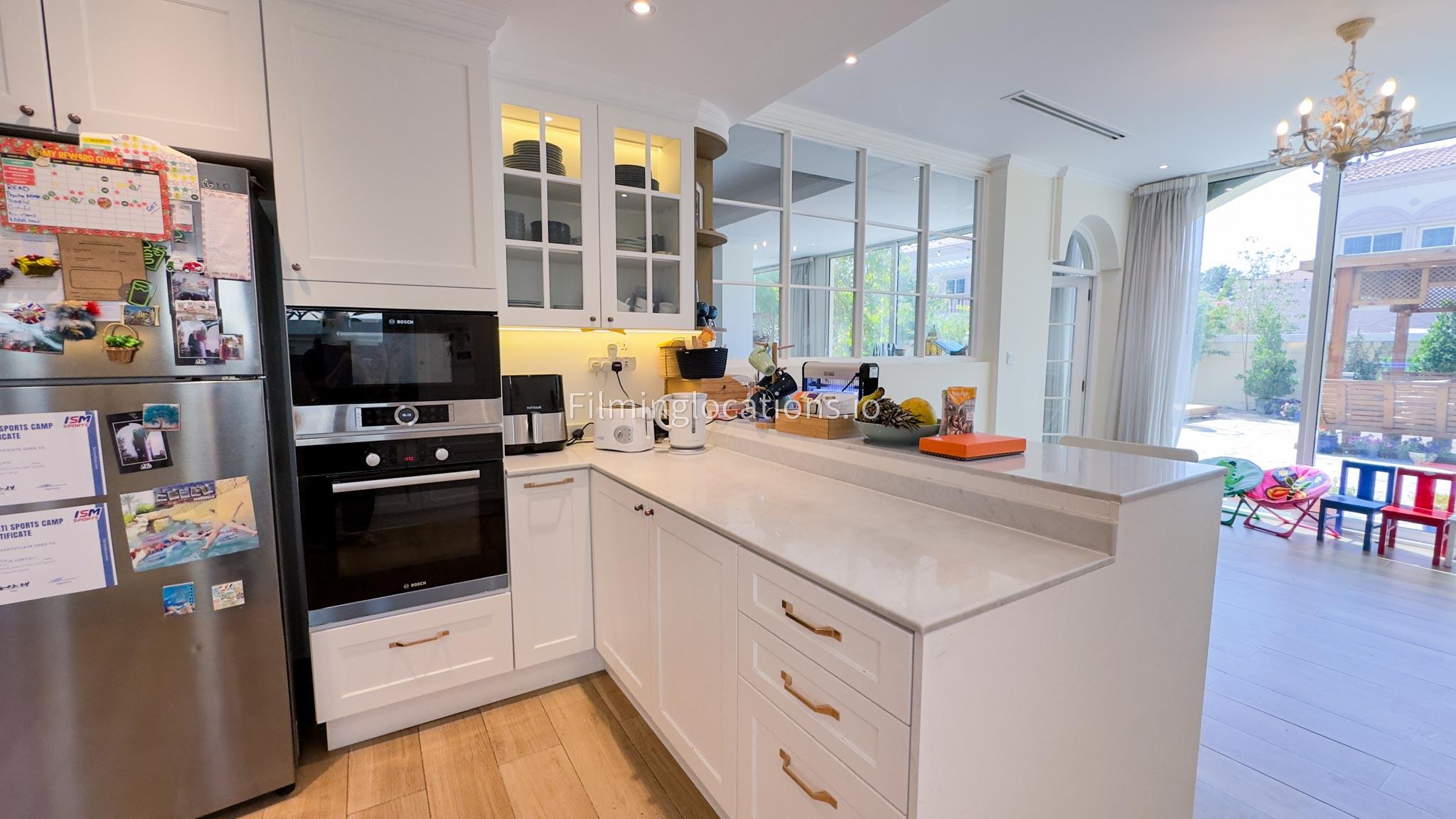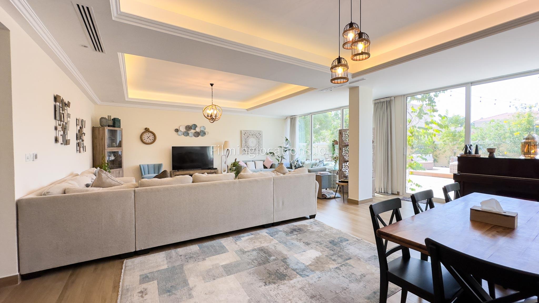 Our villa exudes a contemporary charm, featuring 6 bedrooms and a spacious living area adorned with a piano and exquisite Middle Eastern artwork. The backyard presents a picturesque scene with a swimming pool featuring a sliding deck, a wooden gazebo, and outdoor seating surrounded by greenery. These features make our villa an ideal choice for filmmakers seeking an elegant yet versatile setting for their productions.