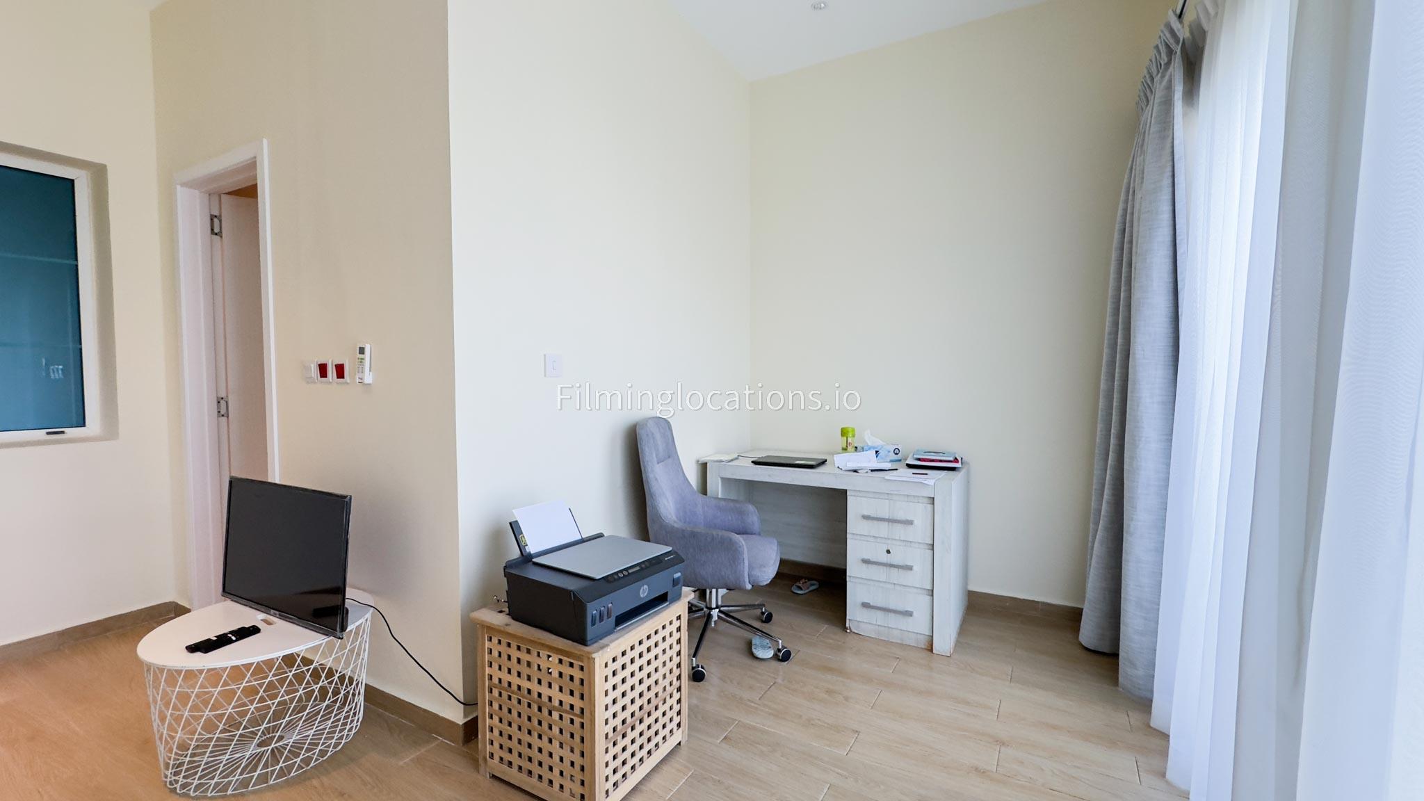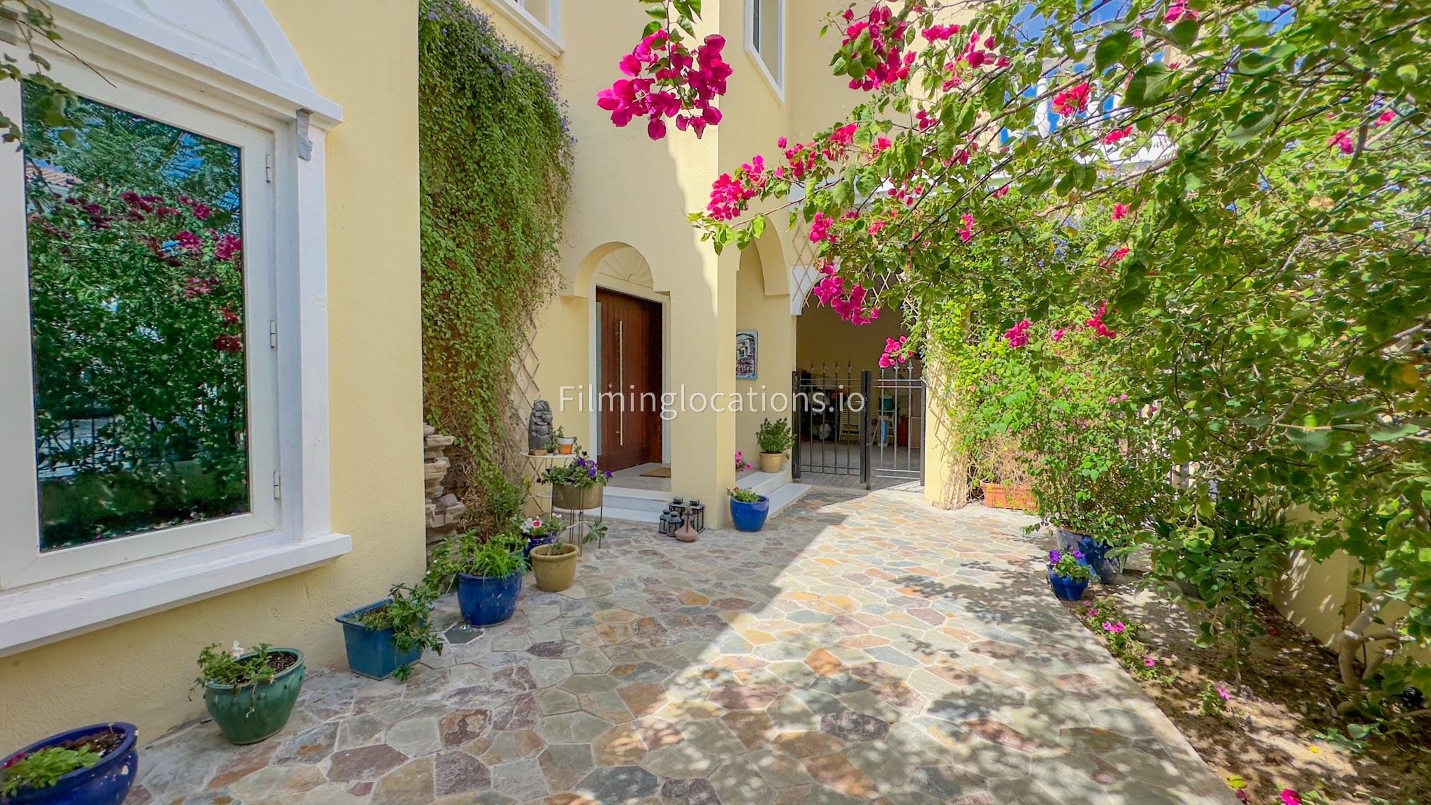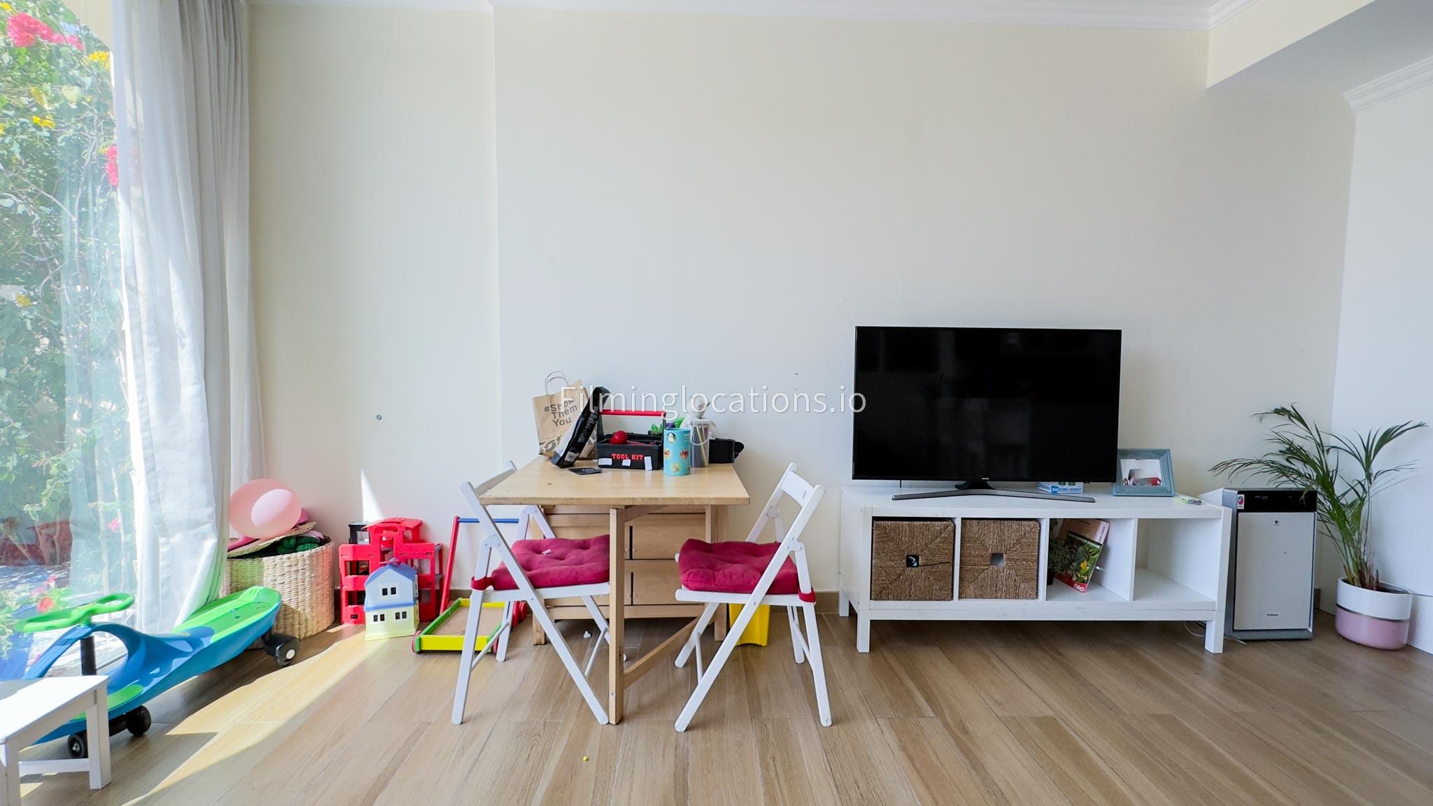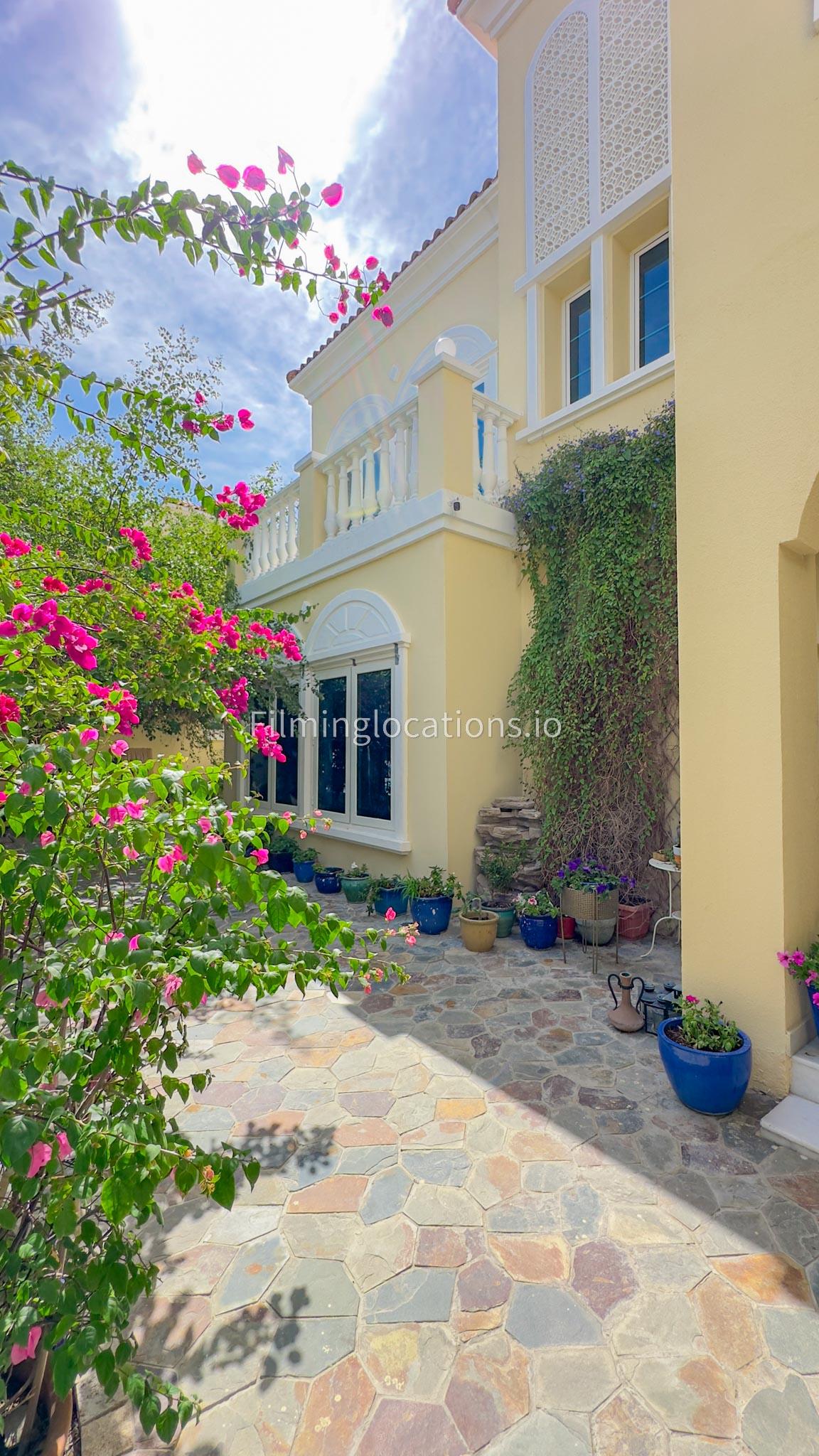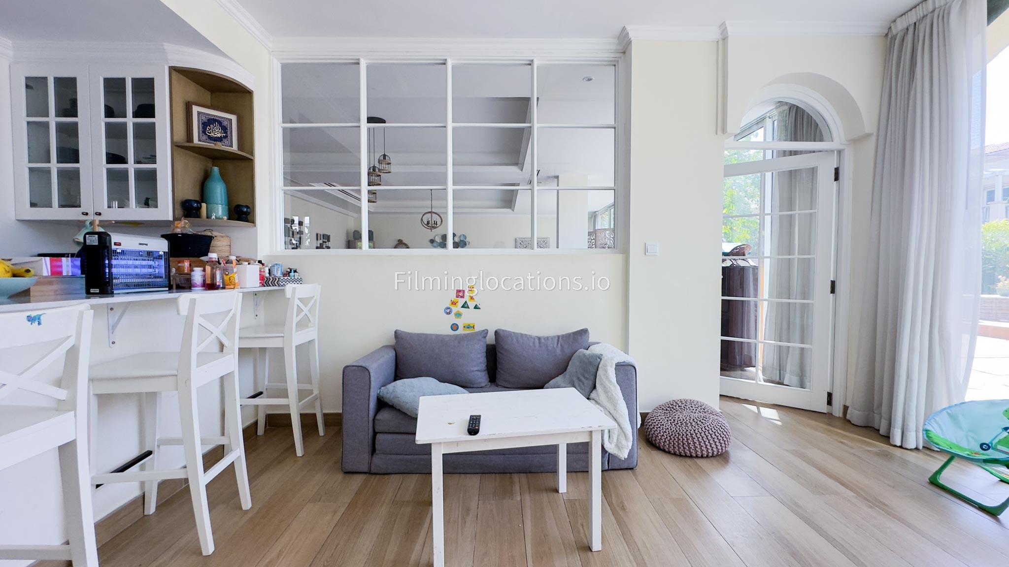 Our villa exudes a contemporary charm, featuring 6 bedrooms and a spacious living area adorned with a piano and exquisite Middle Eastern artwork. The backyard presents a picturesque scene with a swimming pool featuring a sliding deck, a wooden gazebo, and outdoor seating surrounded by greenery. These features make our villa an ideal choice for filmmakers seeking an elegant yet versatile setting for their productions.