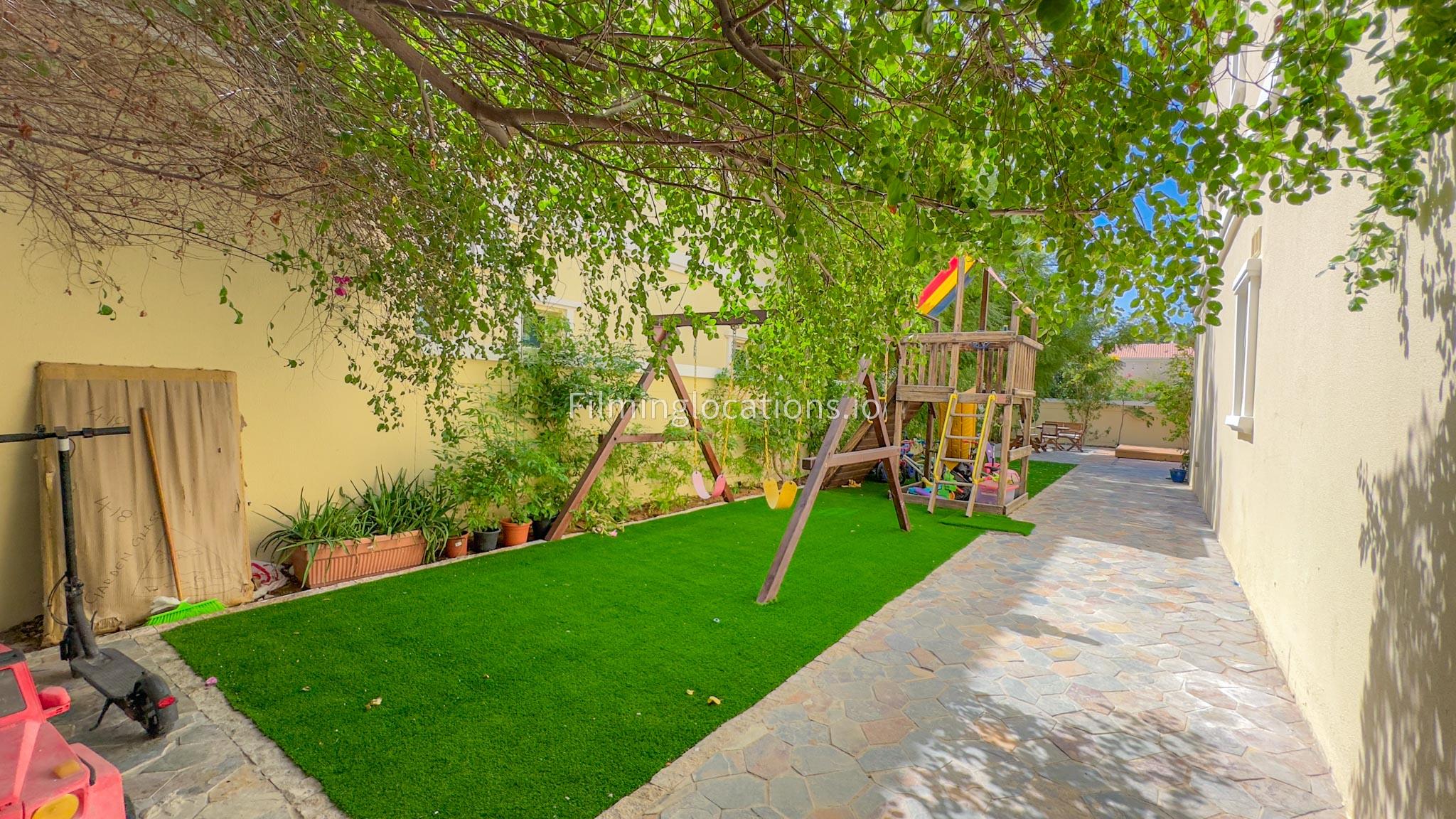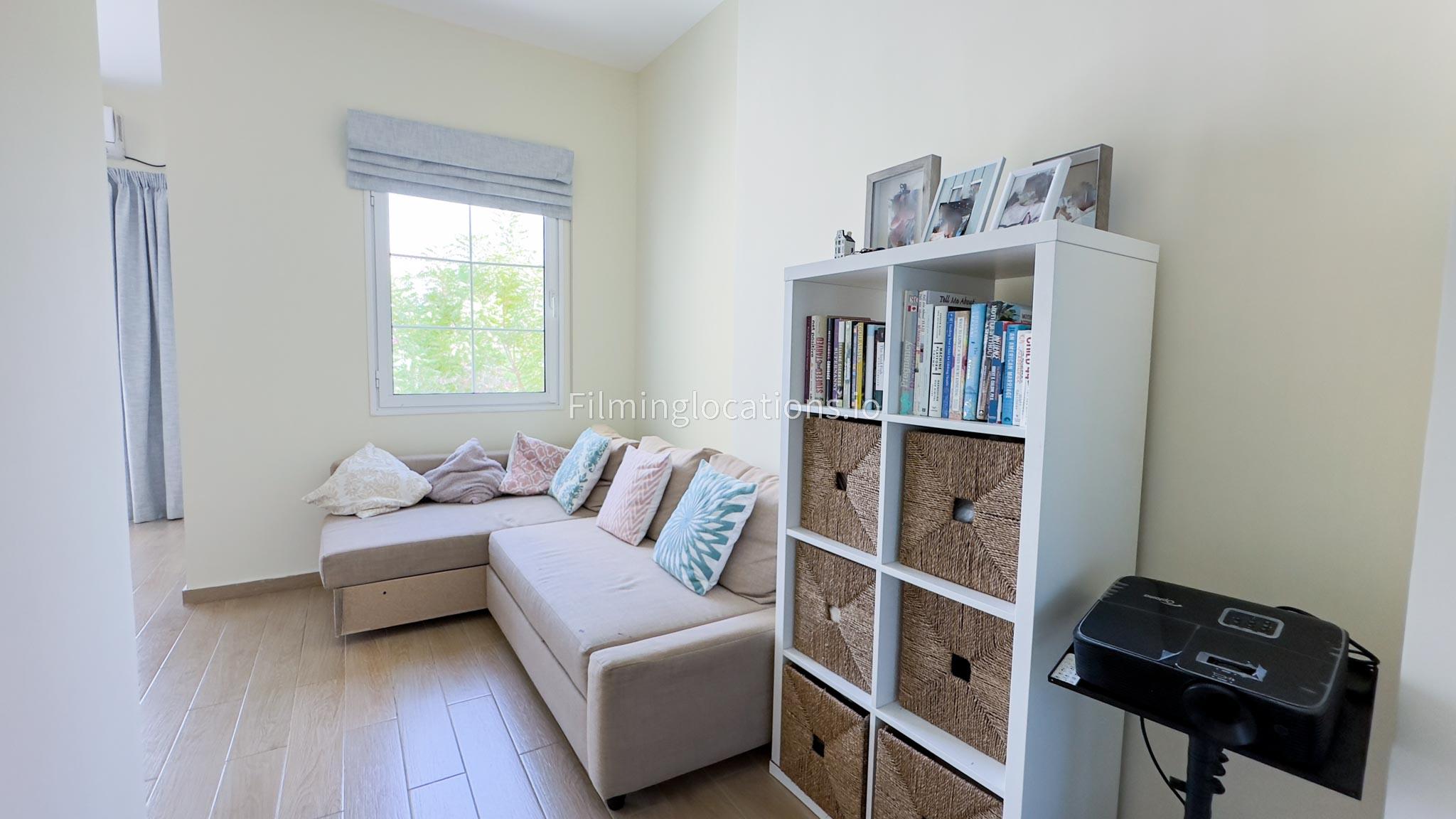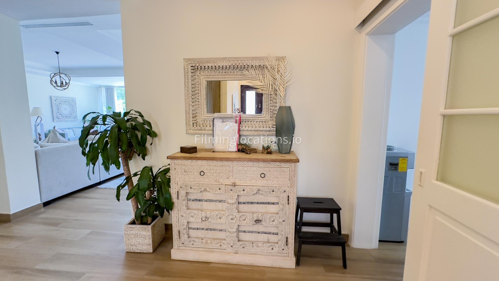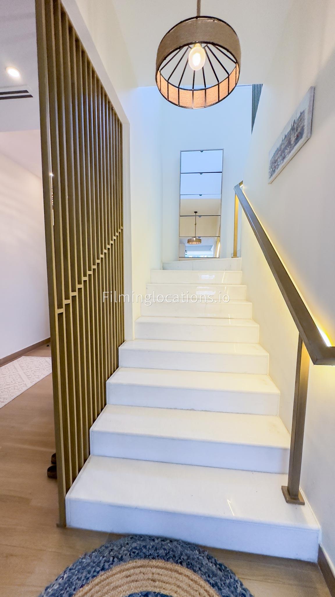 Our villa exudes a contemporary charm, featuring 6 bedrooms and a spacious living area adorned with a piano and exquisite Middle Eastern artwork. The backyard presents a picturesque scene with a swimming pool featuring a sliding deck, a wooden gazebo, and outdoor seating surrounded by greenery. These features make our villa an ideal choice for filmmakers seeking an elegant yet versatile setting for their productions.
