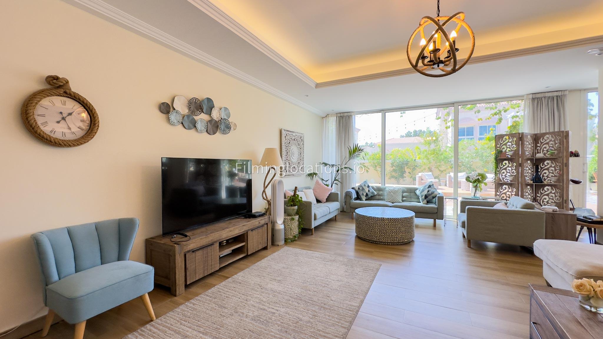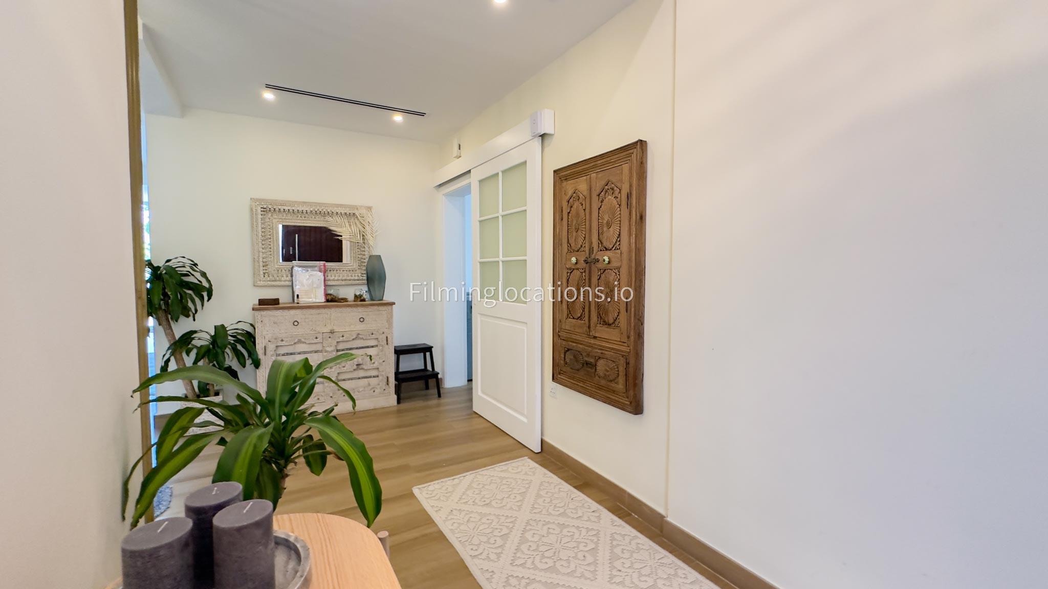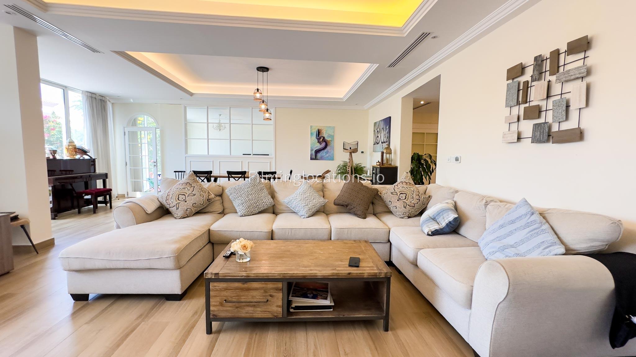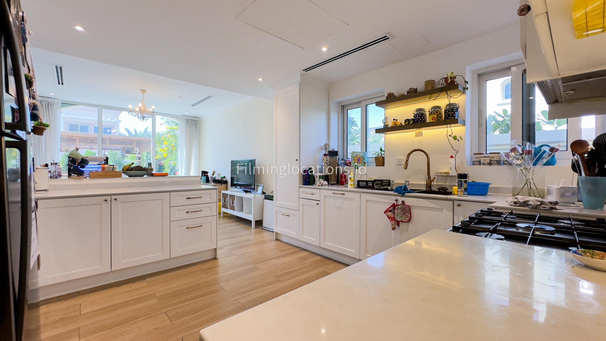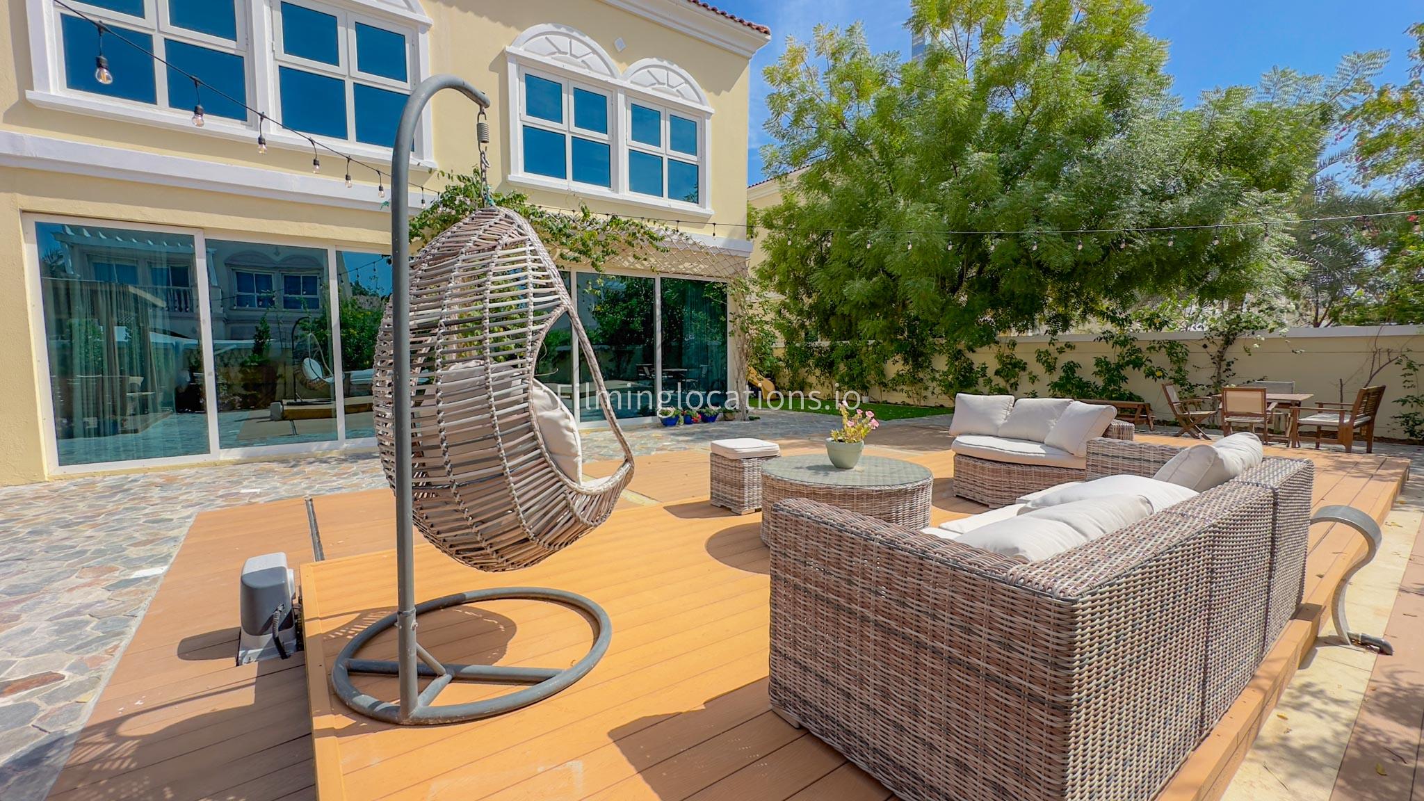 Our villa exudes a contemporary charm, featuring 6 bedrooms and a spacious living area adorned with a piano and exquisite Middle Eastern artwork. The backyard presents a picturesque scene with a swimming pool featuring a sliding deck, a wooden gazebo, and outdoor seating surrounded by greenery. These features make our villa an ideal choice for filmmakers seeking an elegant yet versatile setting for their productions.