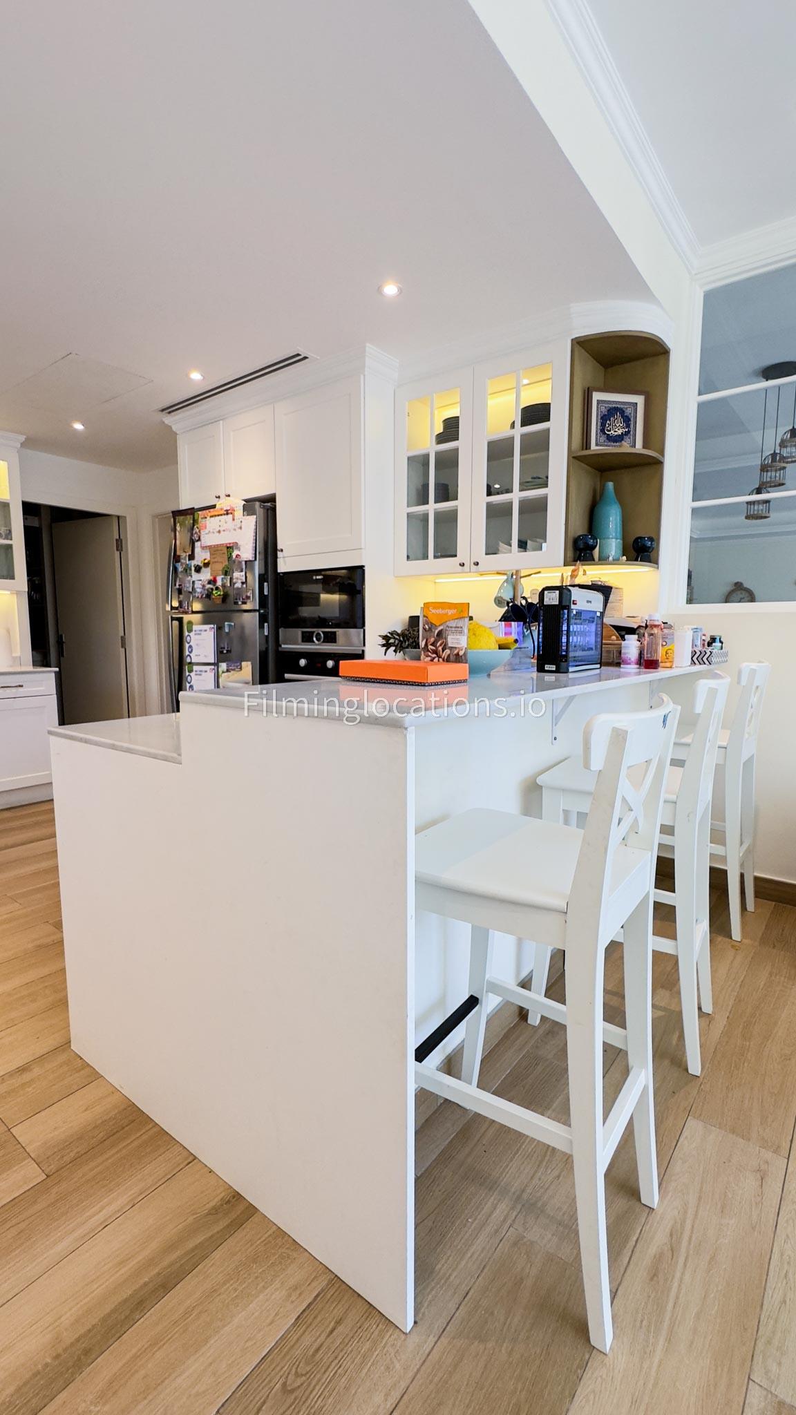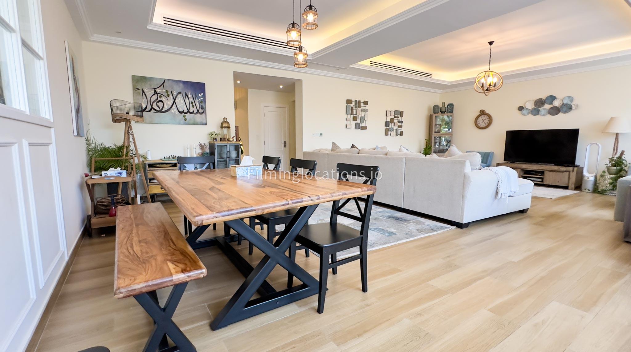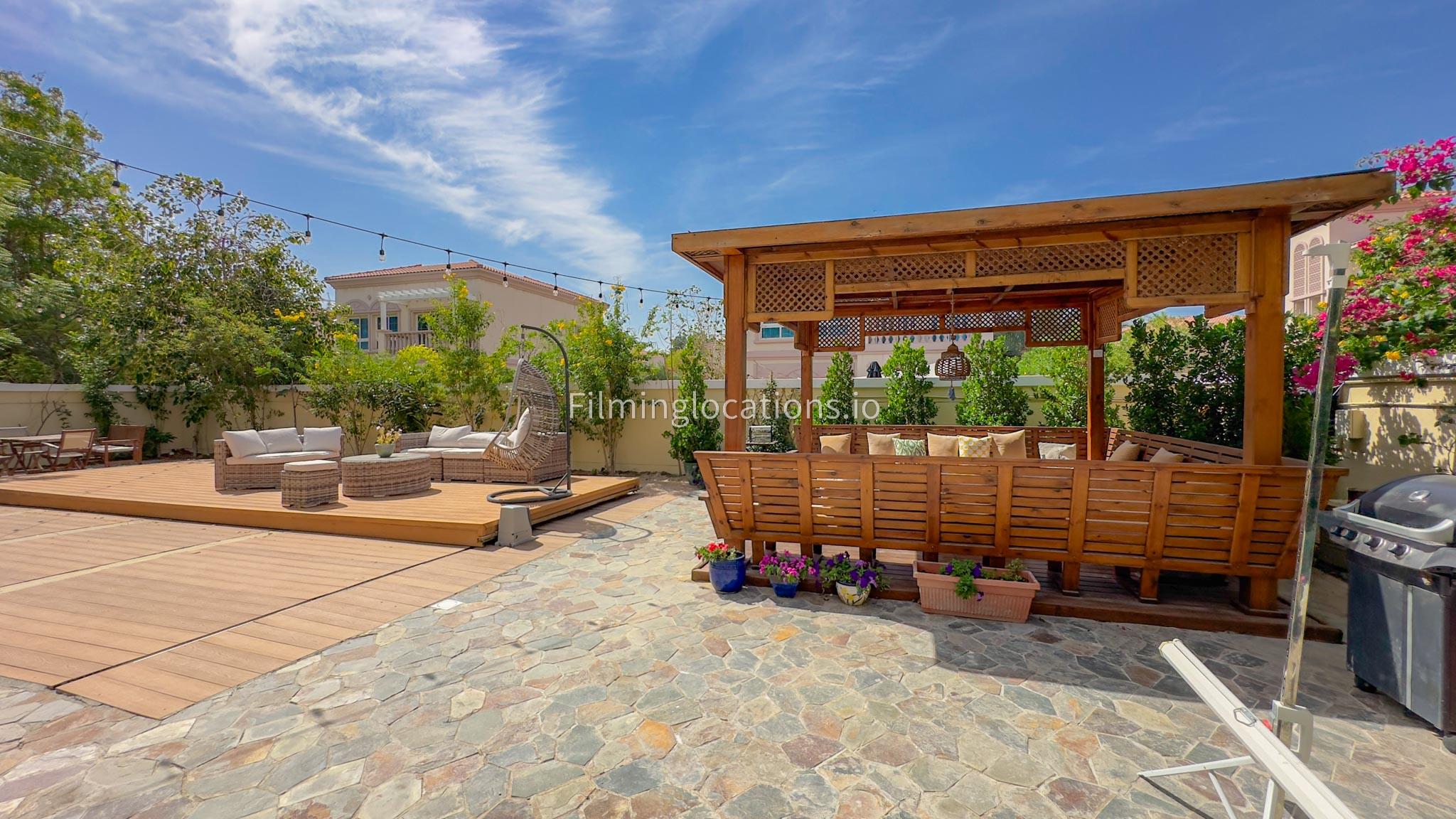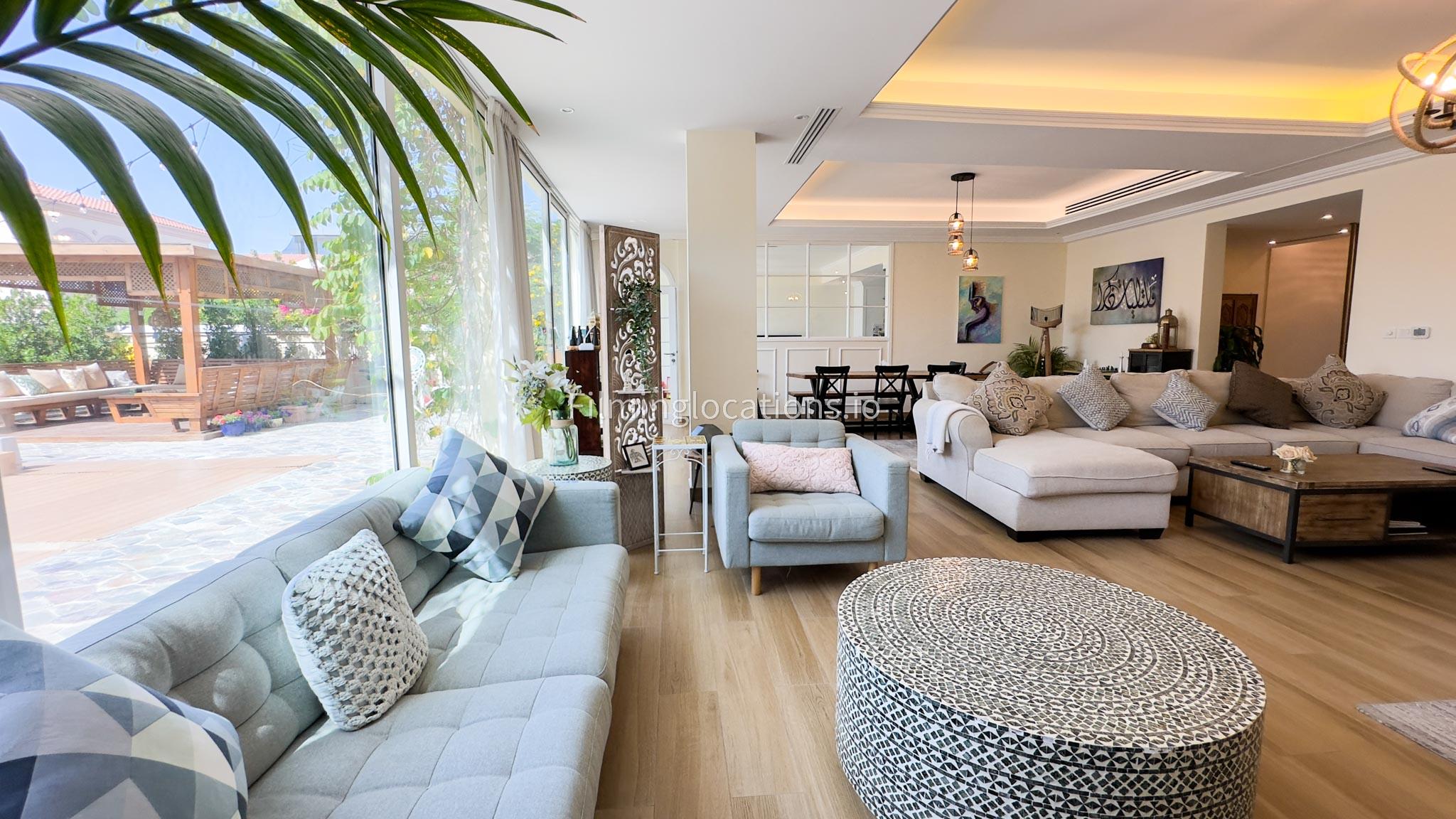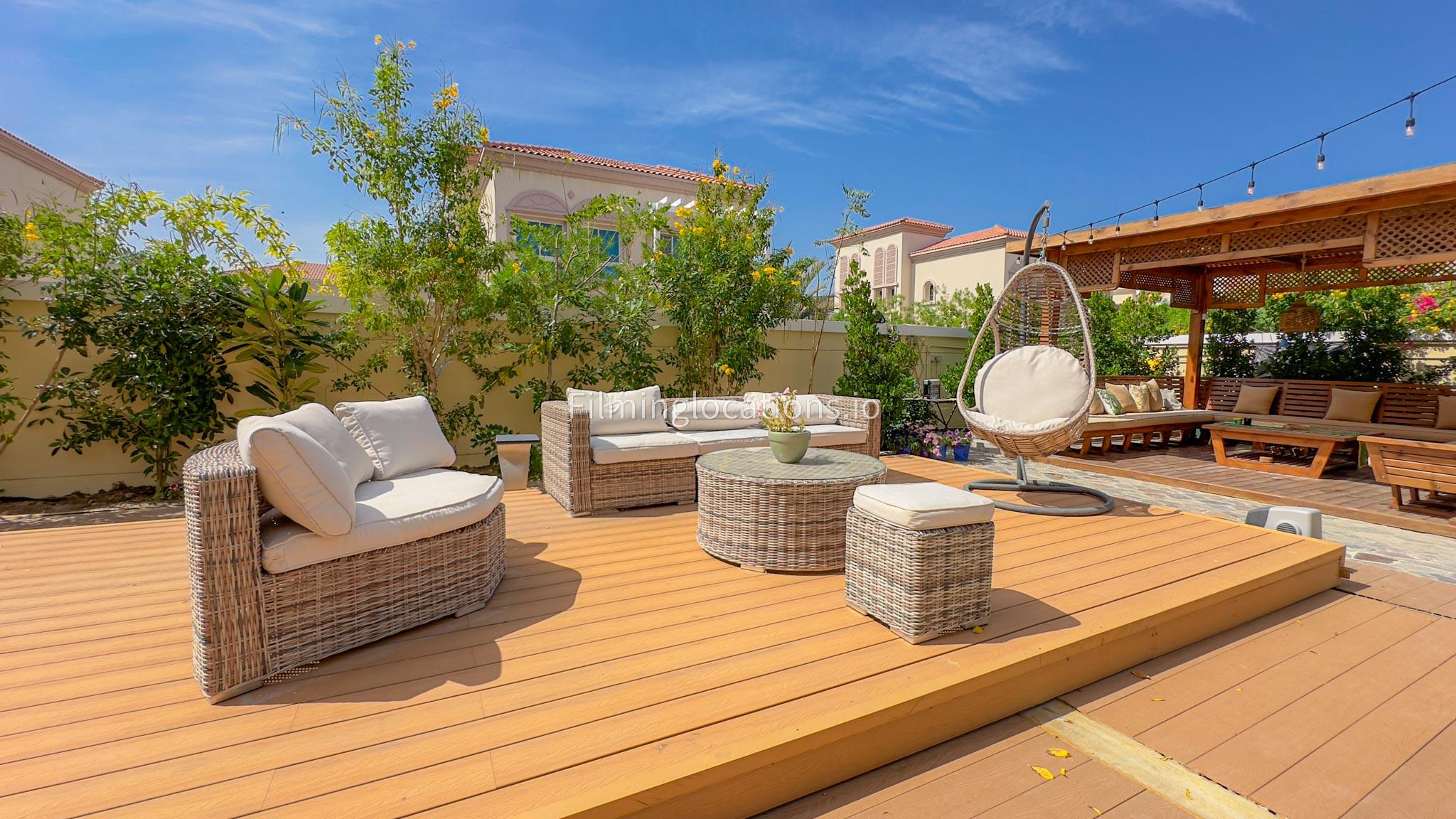 Our villa exudes a contemporary charm, featuring 6 bedrooms and a spacious living area adorned with a piano and exquisite Middle Eastern artwork. The backyard presents a picturesque scene with a swimming pool featuring a sliding deck, a wooden gazebo, and outdoor seating surrounded by greenery. These features make our villa an ideal choice for filmmakers seeking an elegant yet versatile setting for their productions.