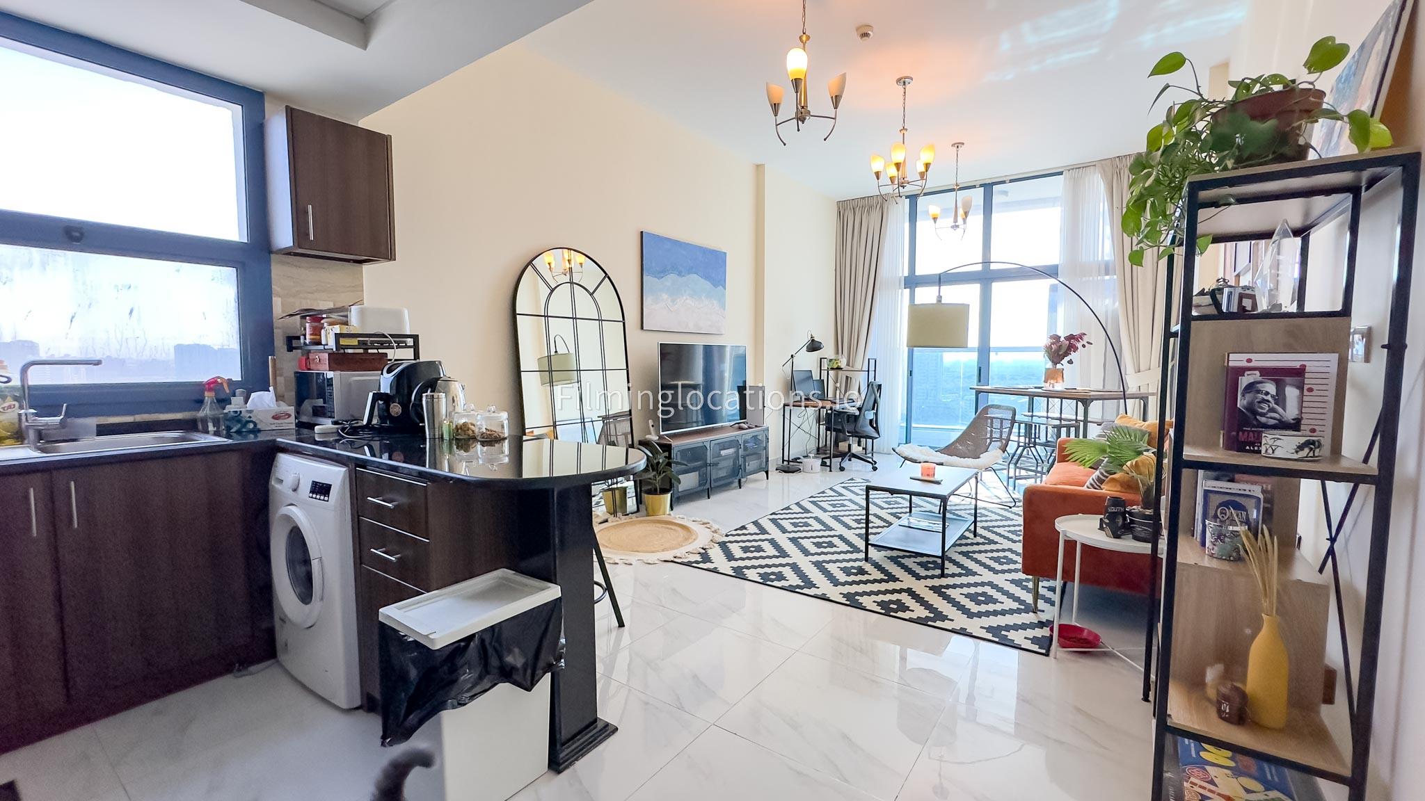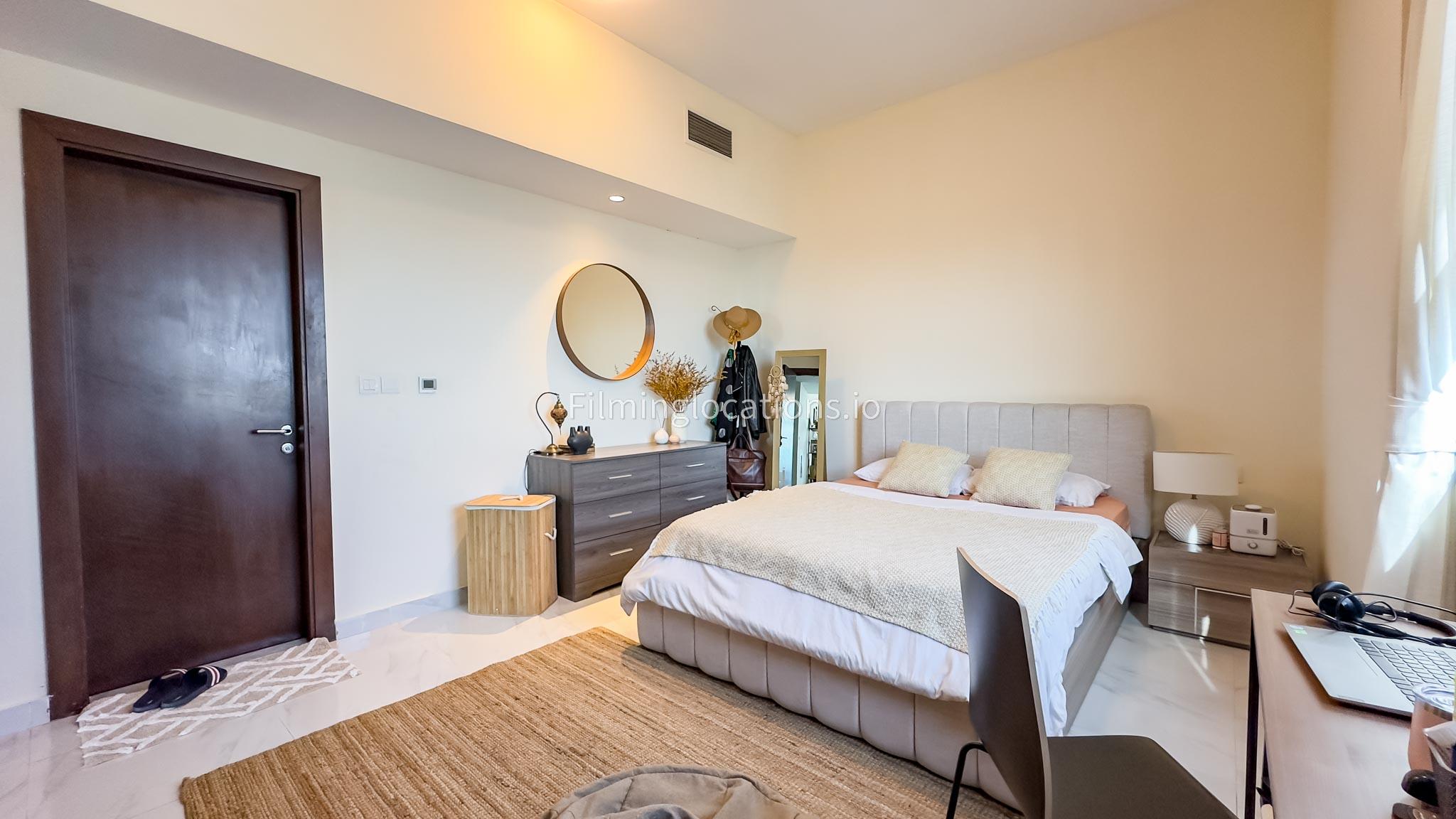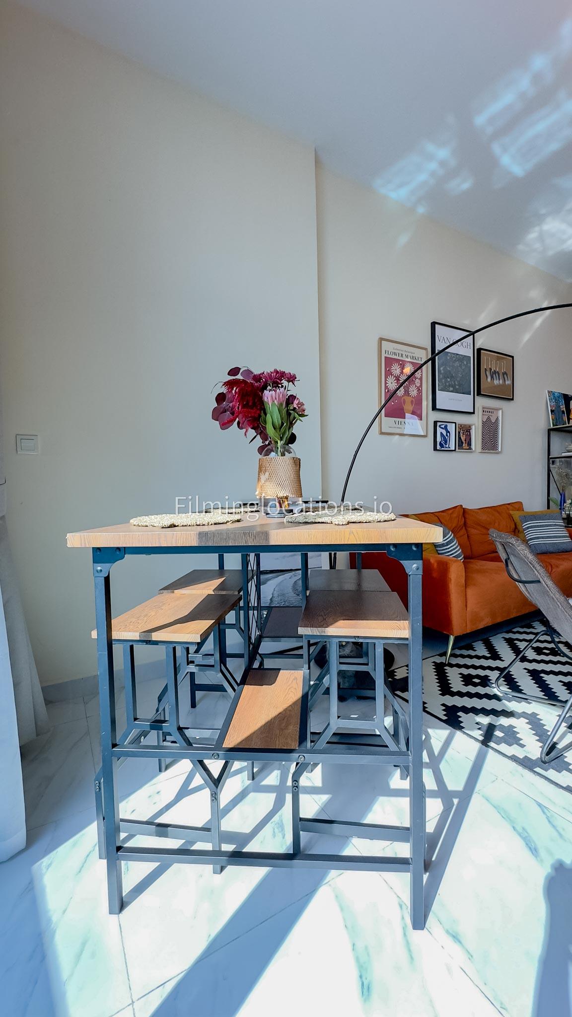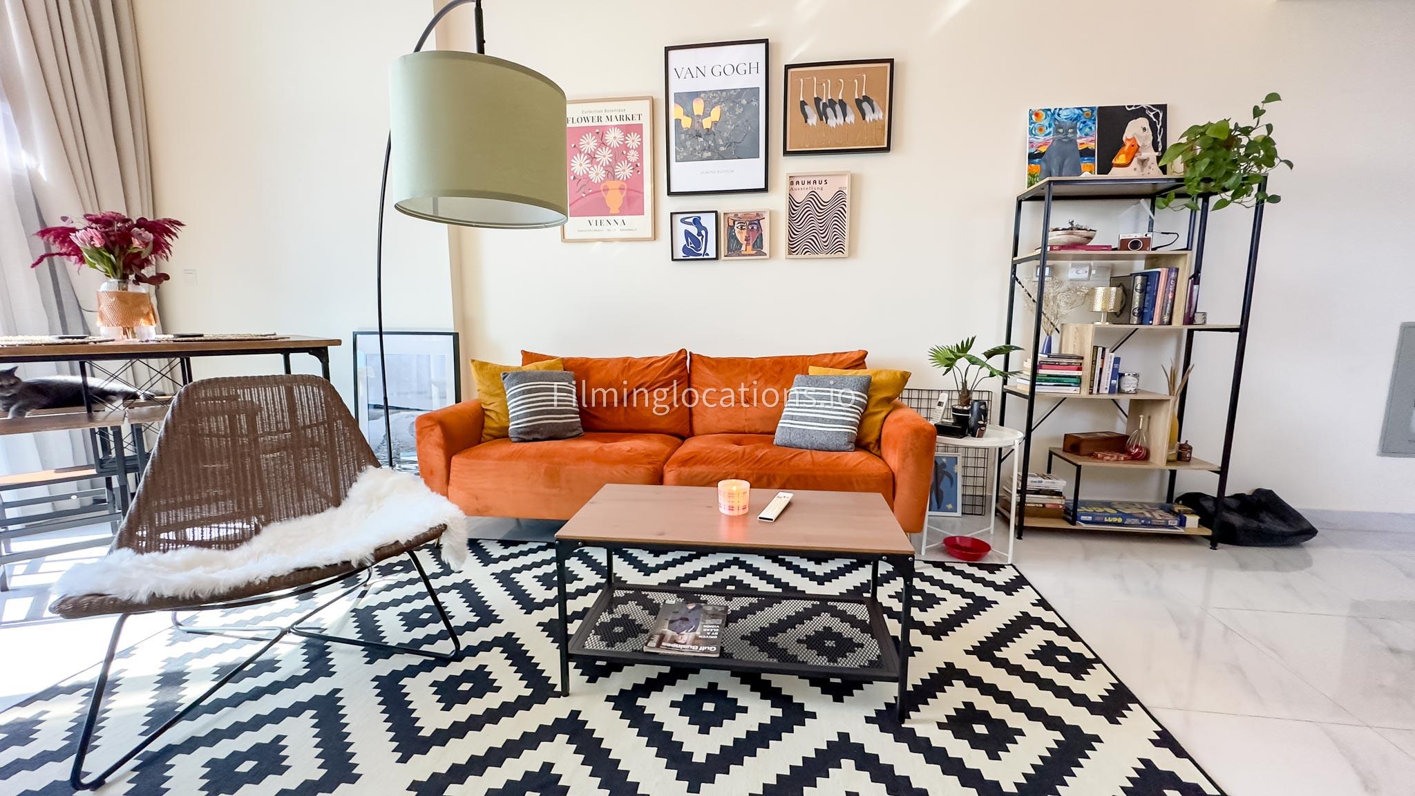 Our apartment exudes a modern vibe, with furnishings that lends to it's modern appeal. Natural light floods the space through floor-to-ceiling windows, creating an inviting atmosphere for filming. Furthermore, there is an open kitchen and a bedroom that has a bohemian charm with it's own ensuite bathroom.