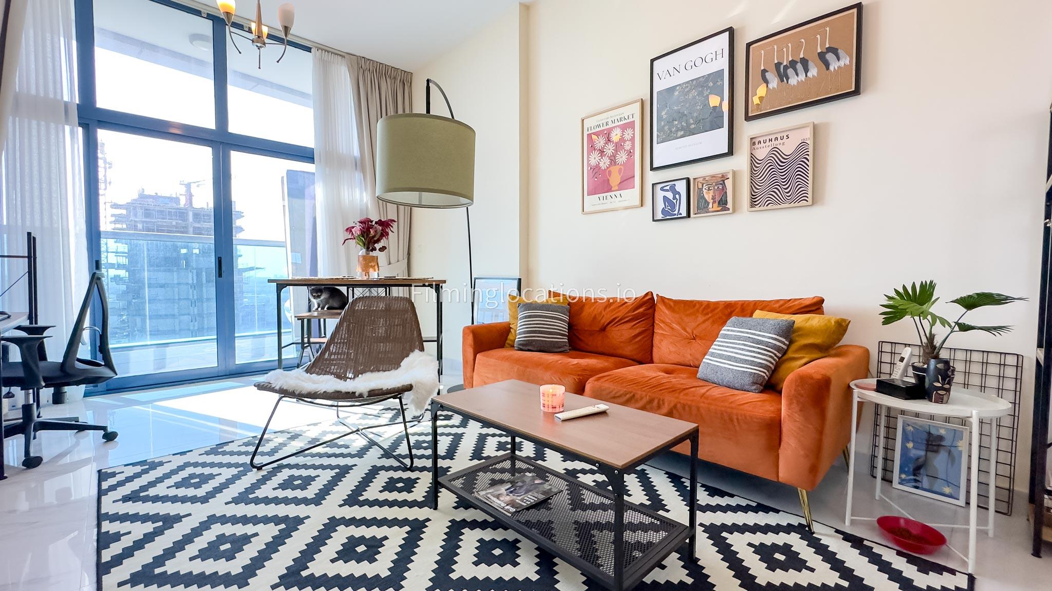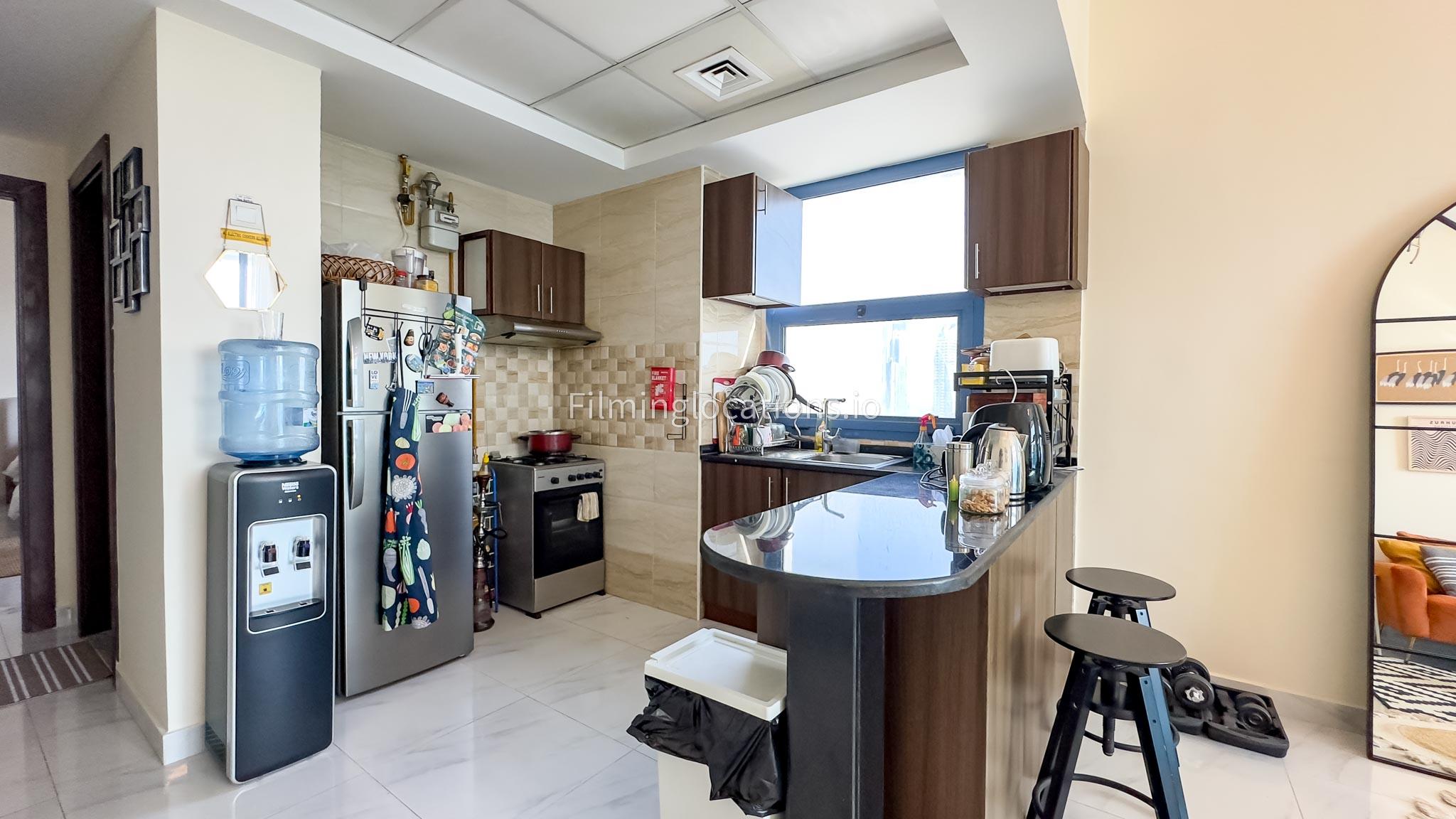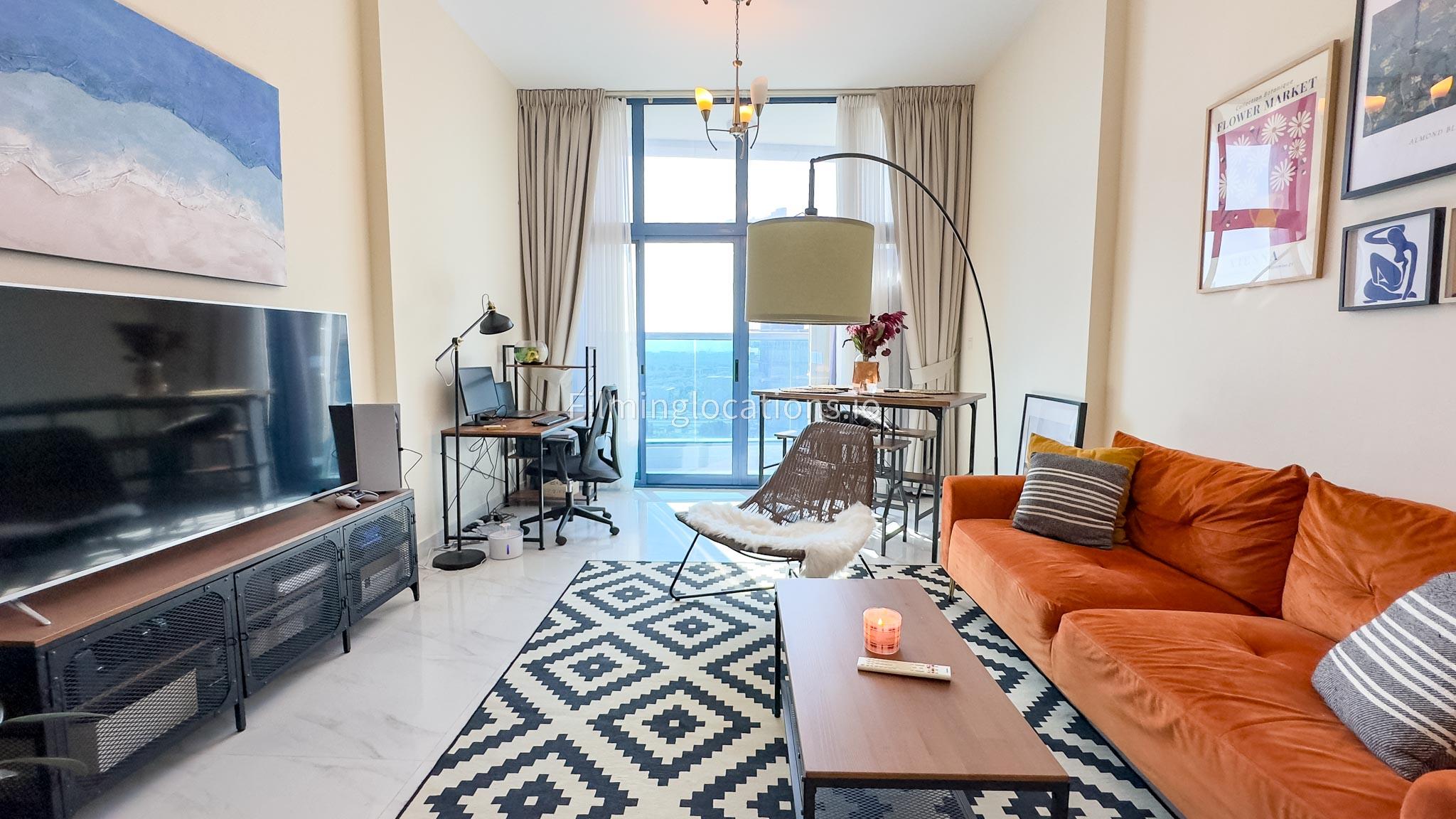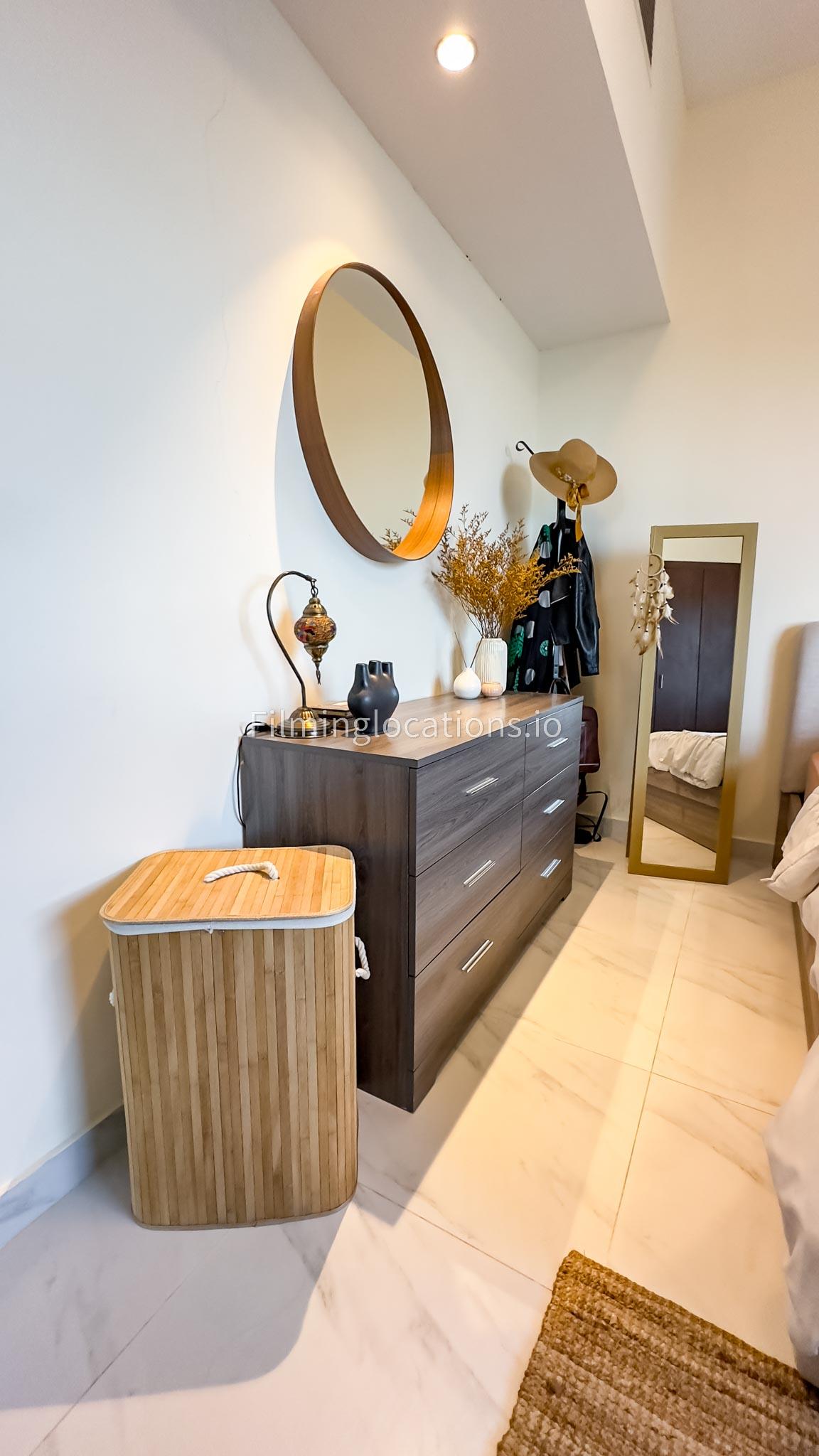 Our apartment exudes a modern vibe, with furnishings that lends to it's modern appeal. Natural light floods the space through floor-to-ceiling windows, creating an inviting atmosphere for filming. Furthermore, there is an open kitchen and a bedroom that has a bohemian charm with it's own ensuite bathroom.