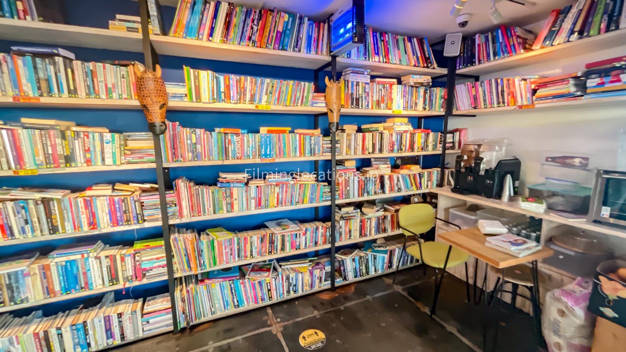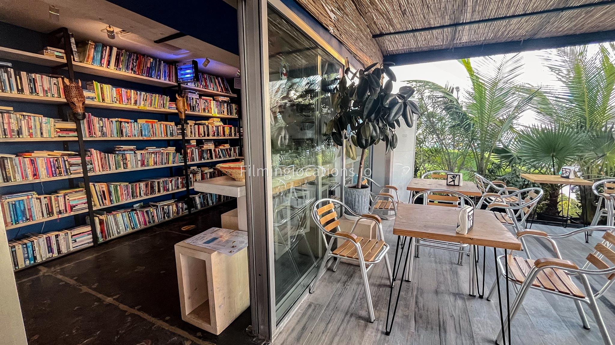 Our café boasts an inviting outdoor space with charming furnishings, while indoors, it offers a cozy atmosphere with shelves stocked full of books. Surrounded by greenery, it provides filmmakers with picturesque settings for their scenes.