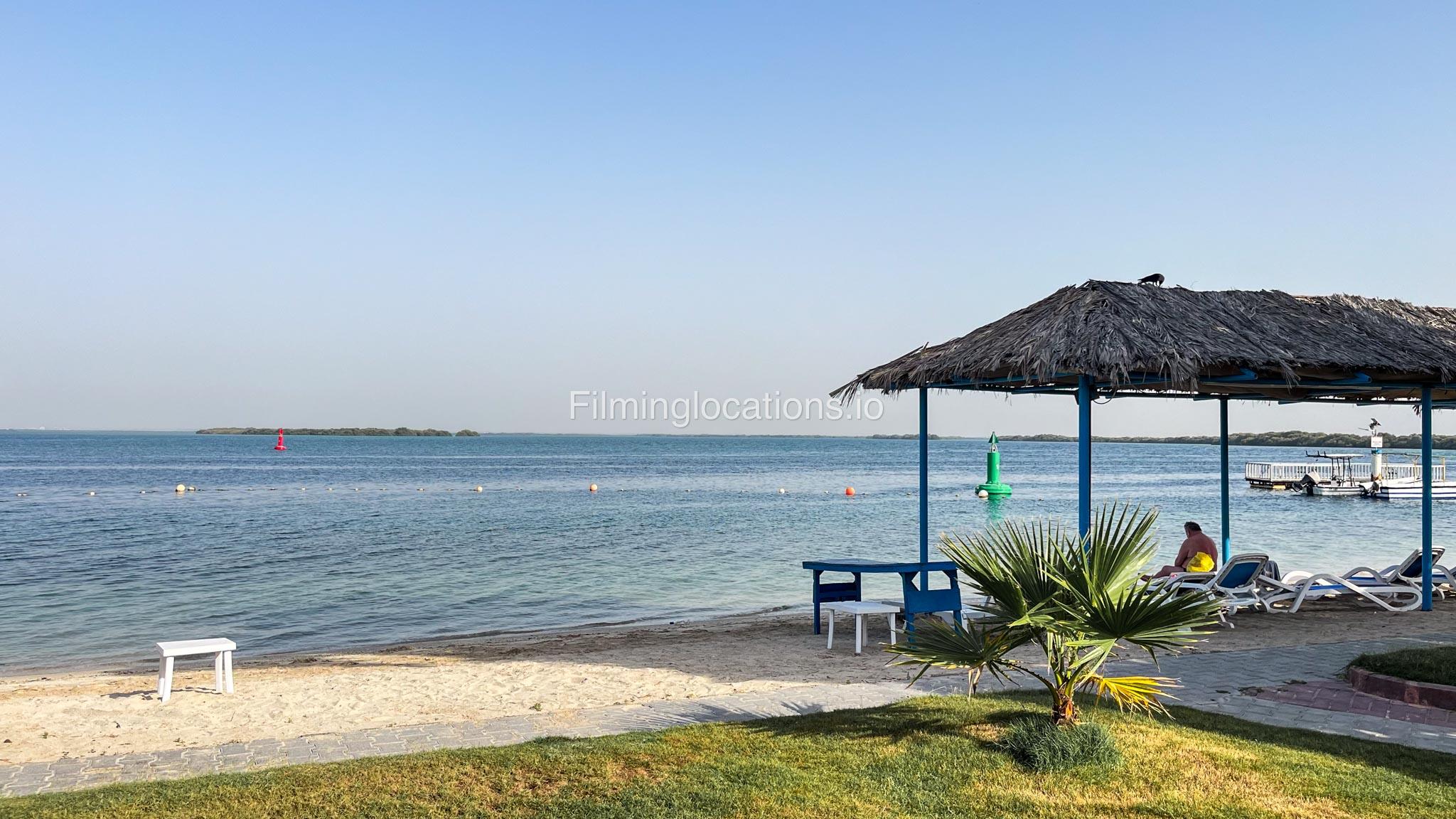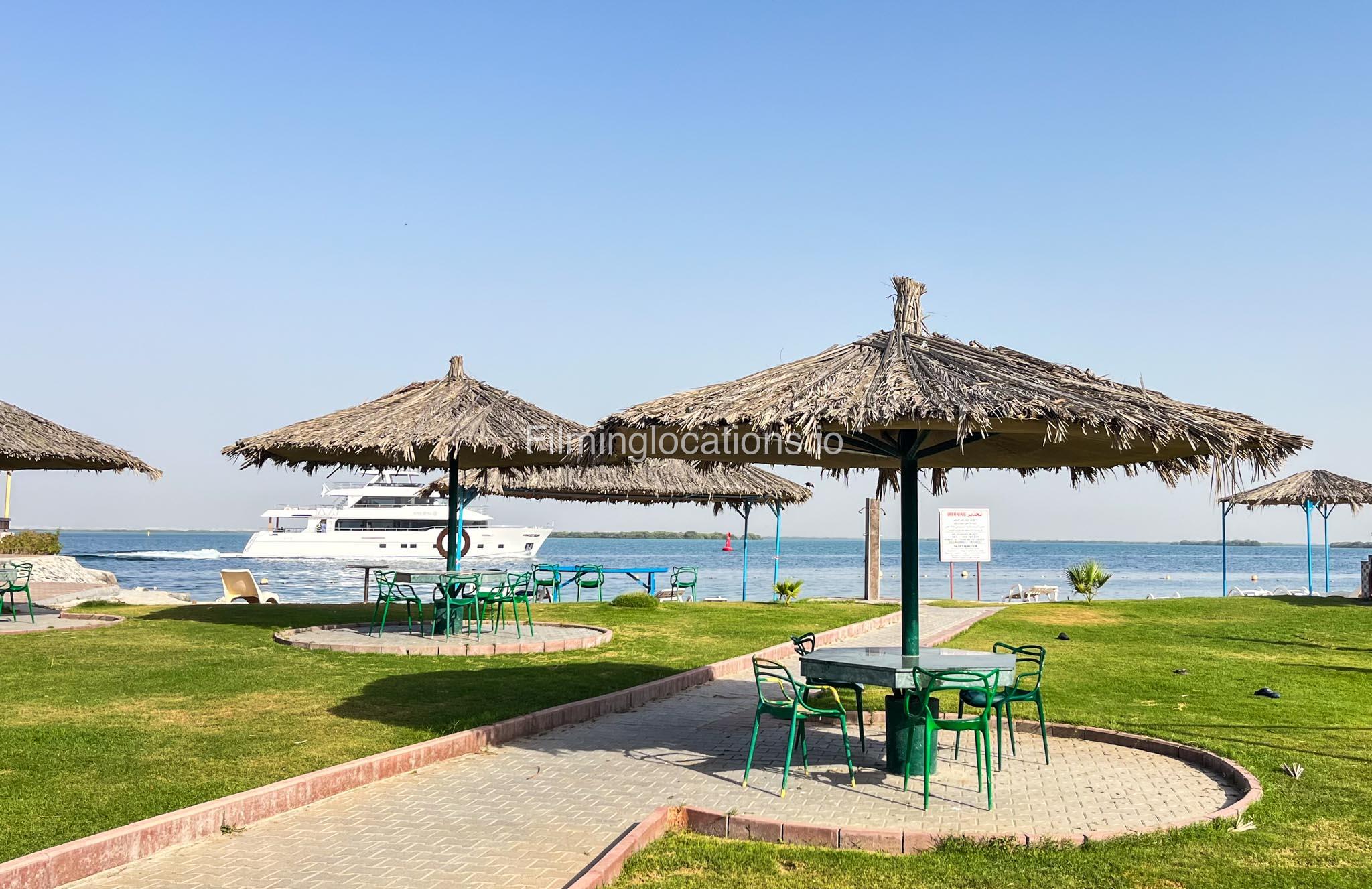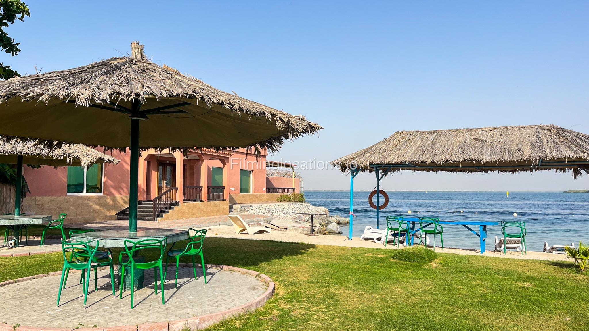 Our stunning beach, the ultimate filming destination in Umm al Quwain! Hidden in beauty, this beach offers everything you require for a perfect shoot. Includes a BBQ area, large tables, and chairs, plus a beautiful deck boasting stunning view of boats cruising along the water. Whether you're aiming for lively beach scenes or pleasant moments, this location has you covered. Prepare to craft your next cinematic masterpiece in the middle of this magnificent setting!