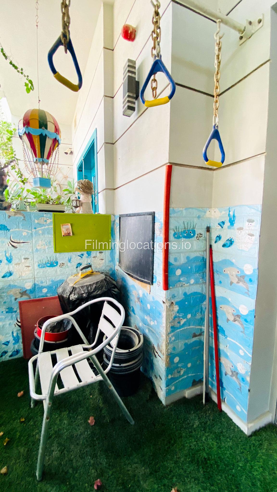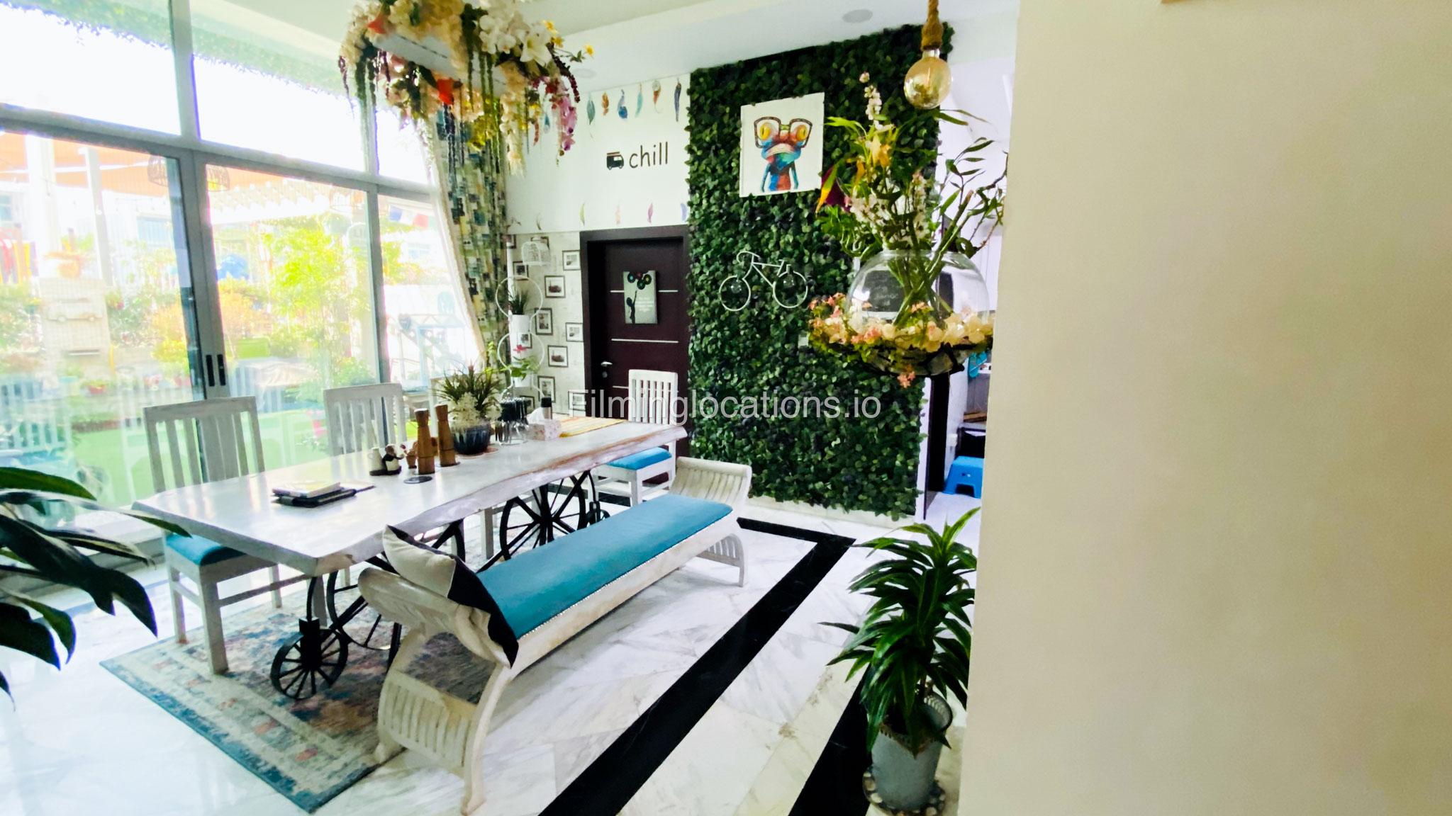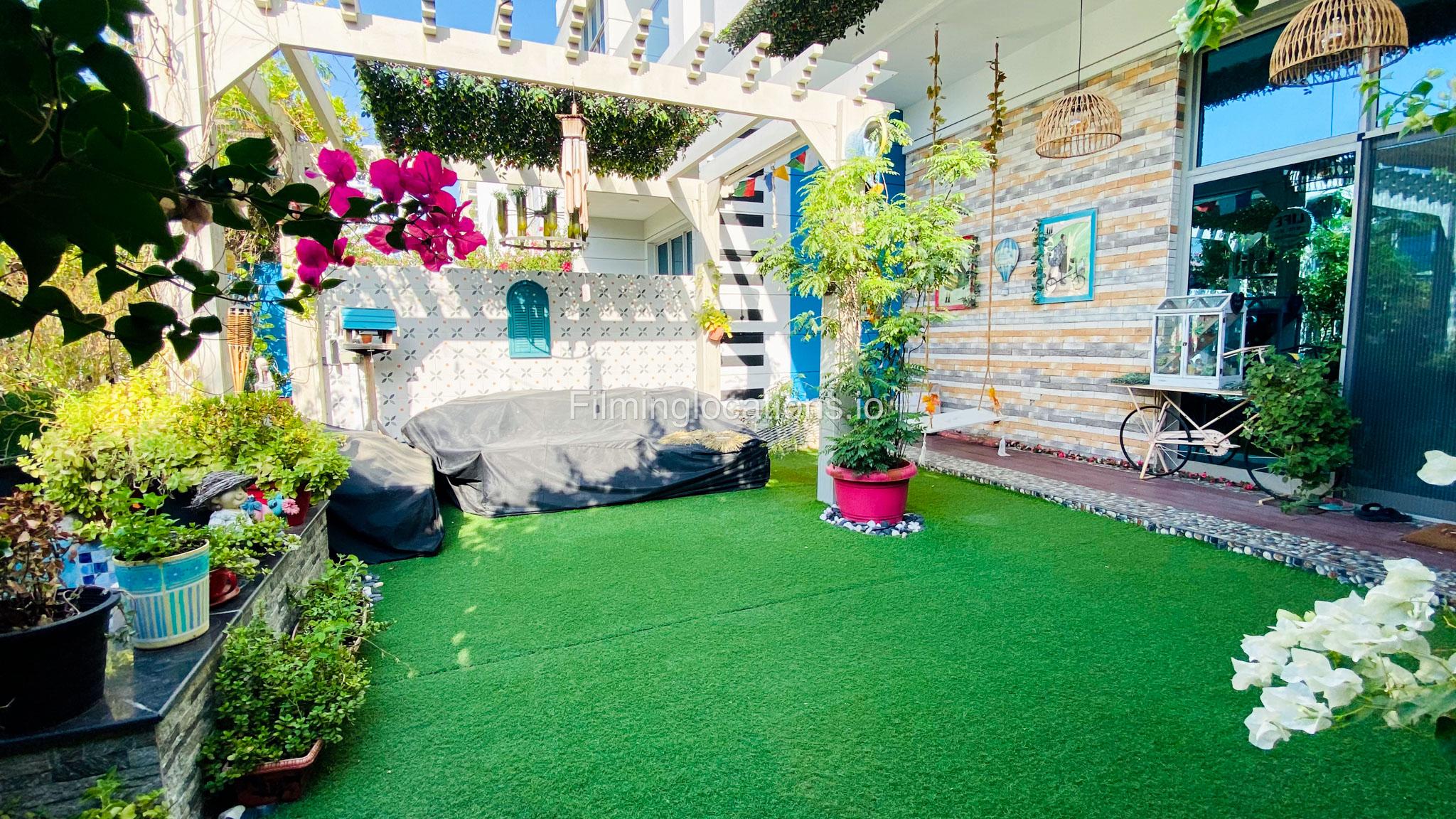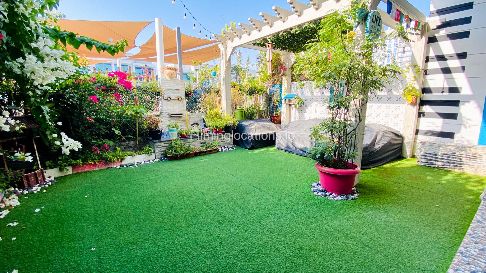 Our colorful Bohemian style villa in Dubai is perfect for filming. It features 3 bedrooms, a wooden playhouse in the garden, a piano, a beautiful garden, a balcony, a kitchen, and a spiral staircase. With its unique decor and vibrant interiors, this villa provides a stunning backdrop for any project. Book now to secure this fantastic filming location.