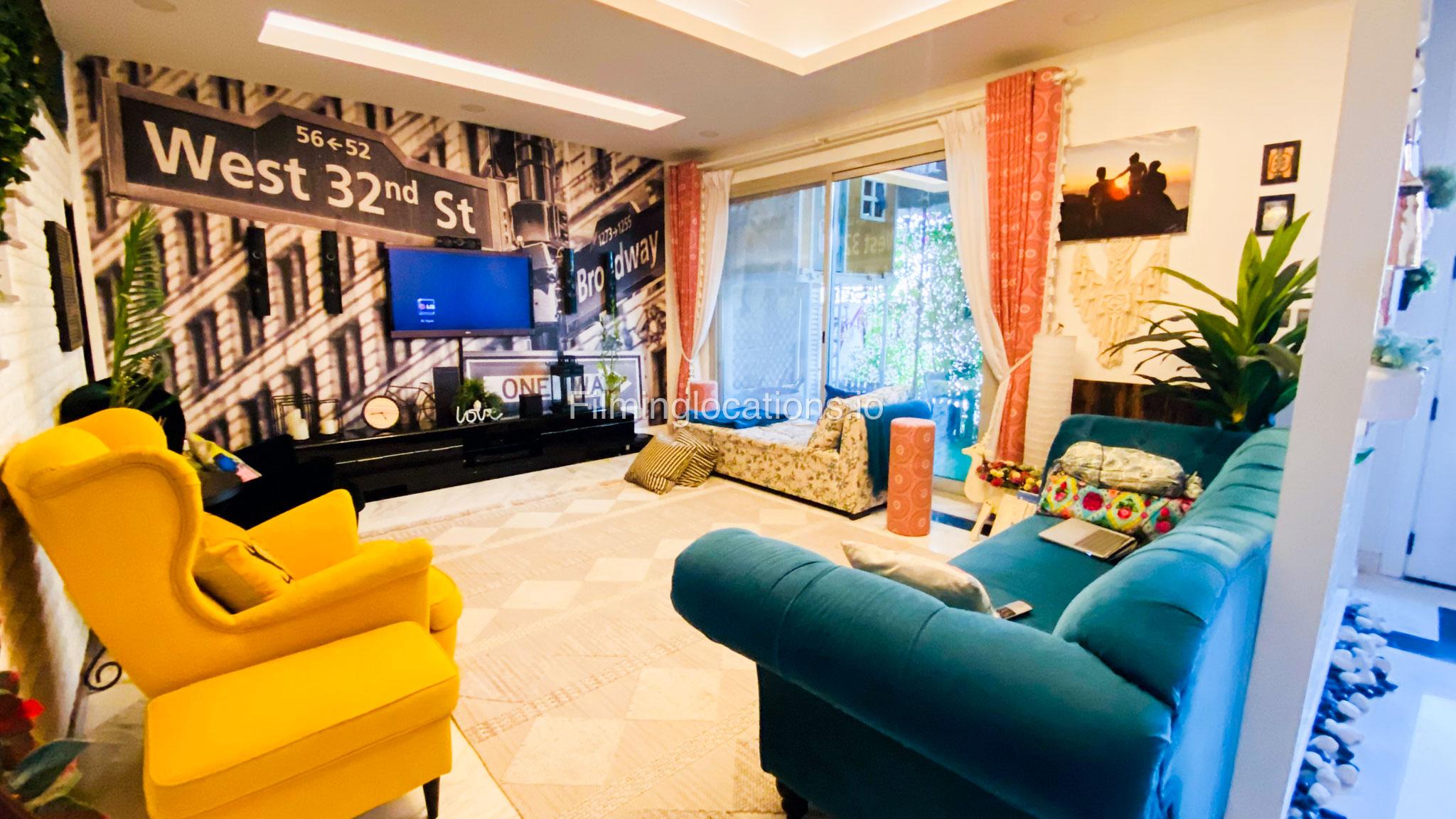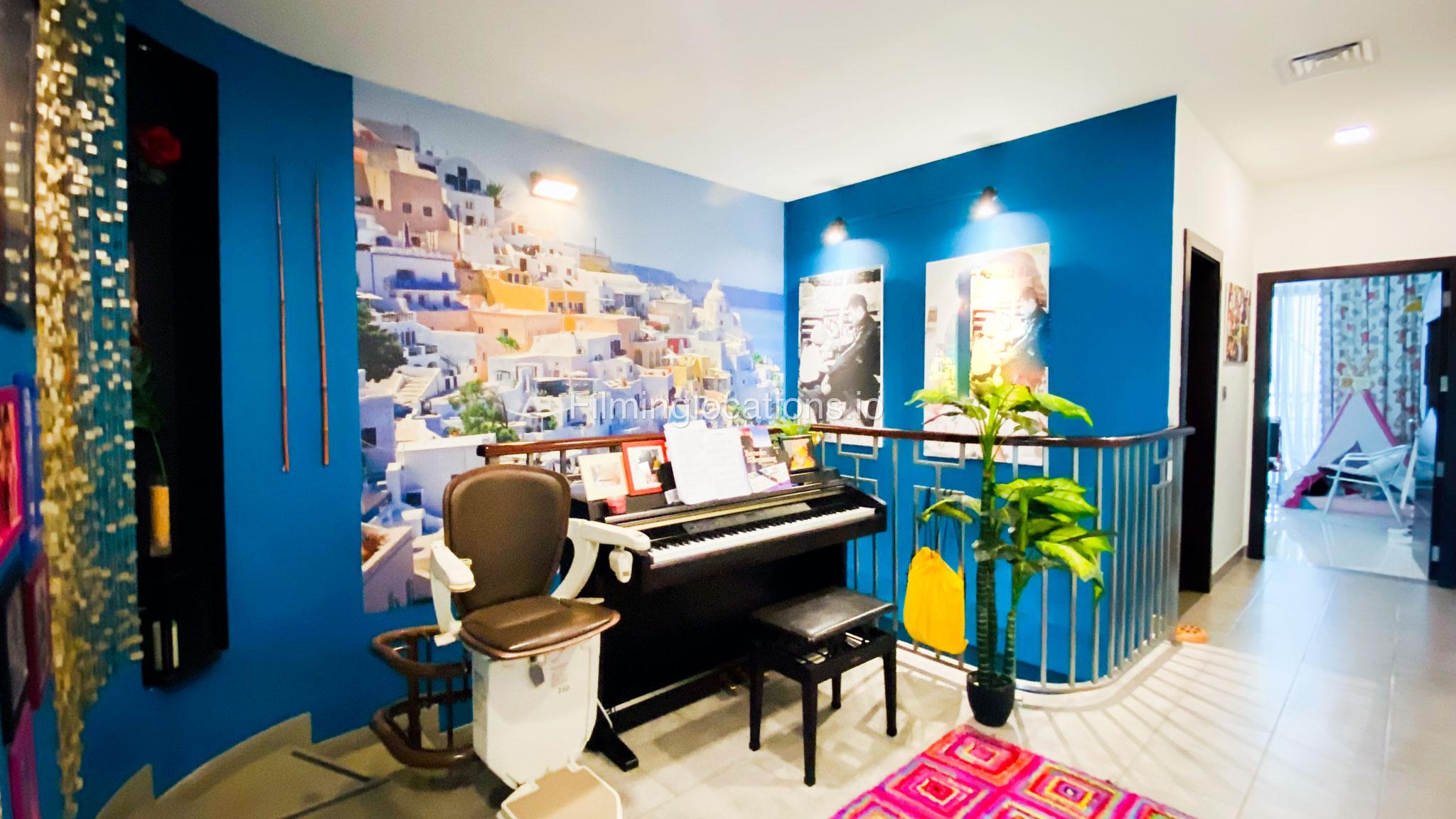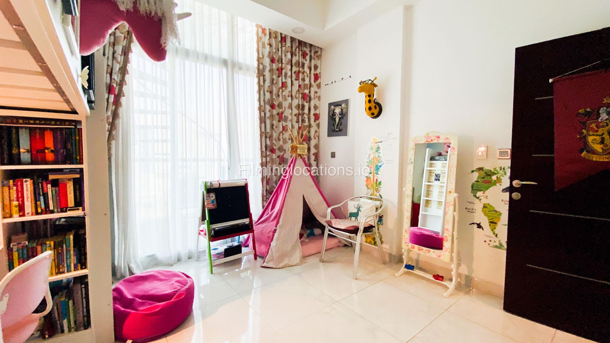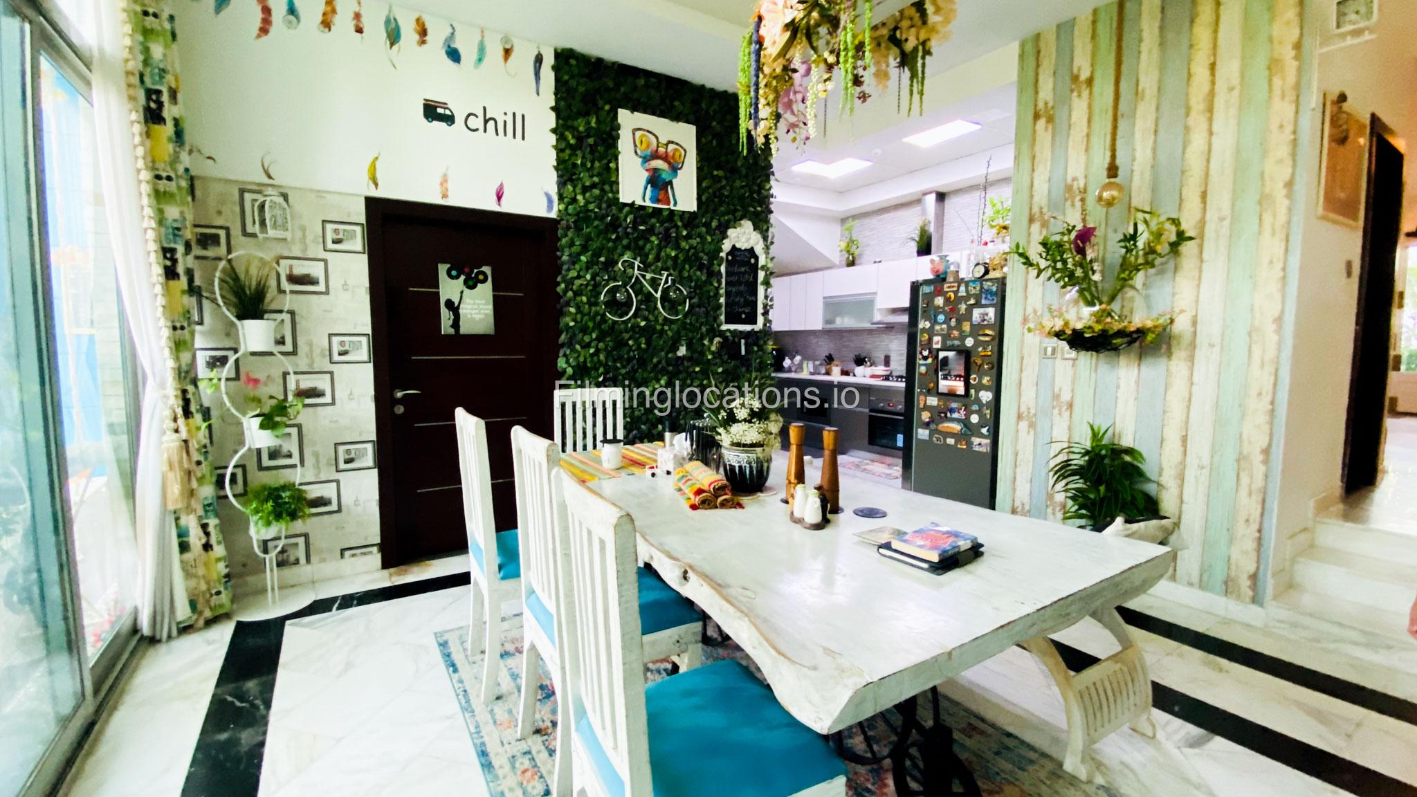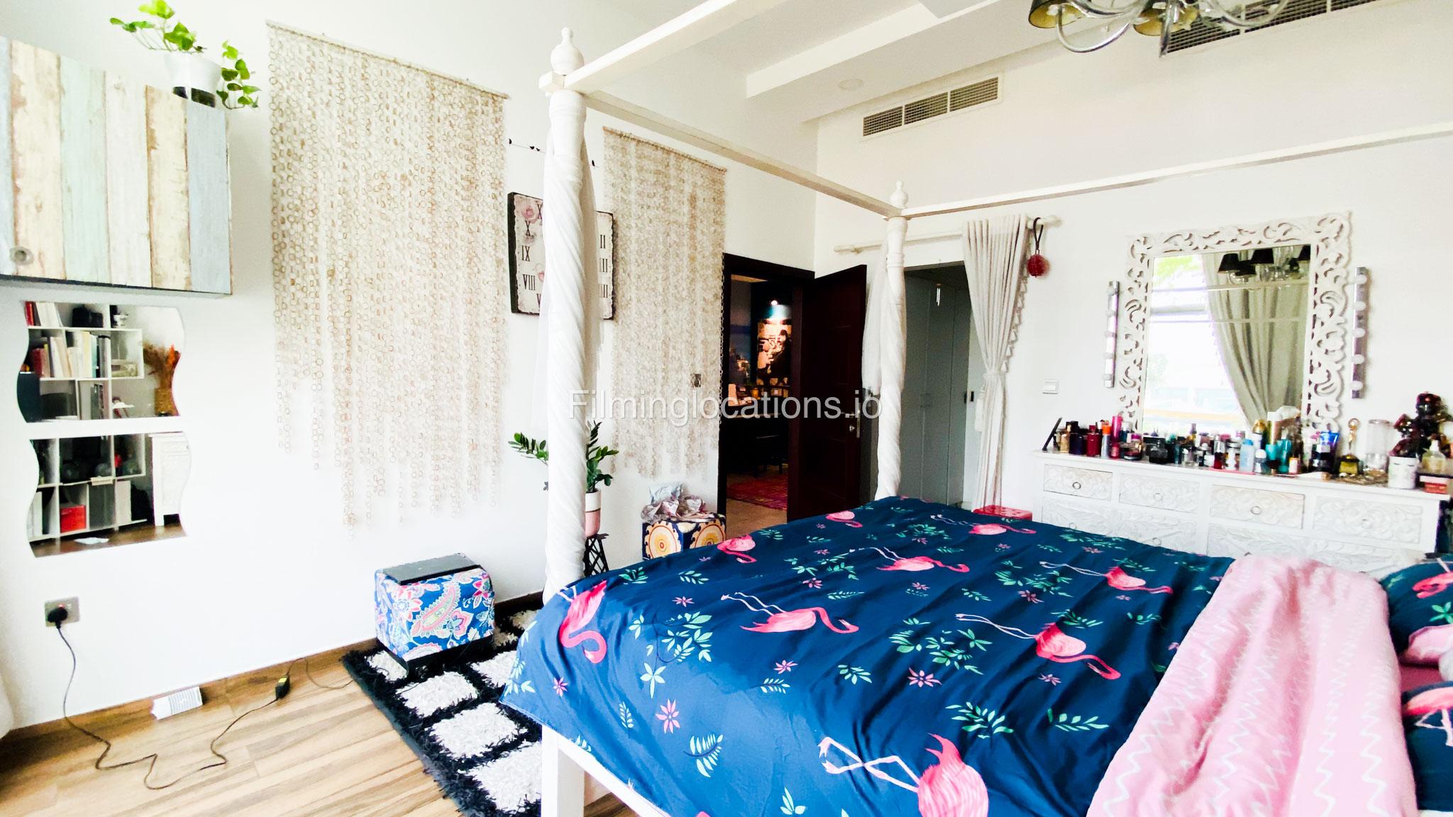 Our colorful Bohemian style villa in Dubai is perfect for filming. It features 3 bedrooms, a wooden playhouse in the garden, a piano, a beautiful garden, a balcony, a kitchen, and a spiral staircase. With its unique decor and vibrant interiors, this villa provides a stunning backdrop for any project. Book now to secure this fantastic filming location.