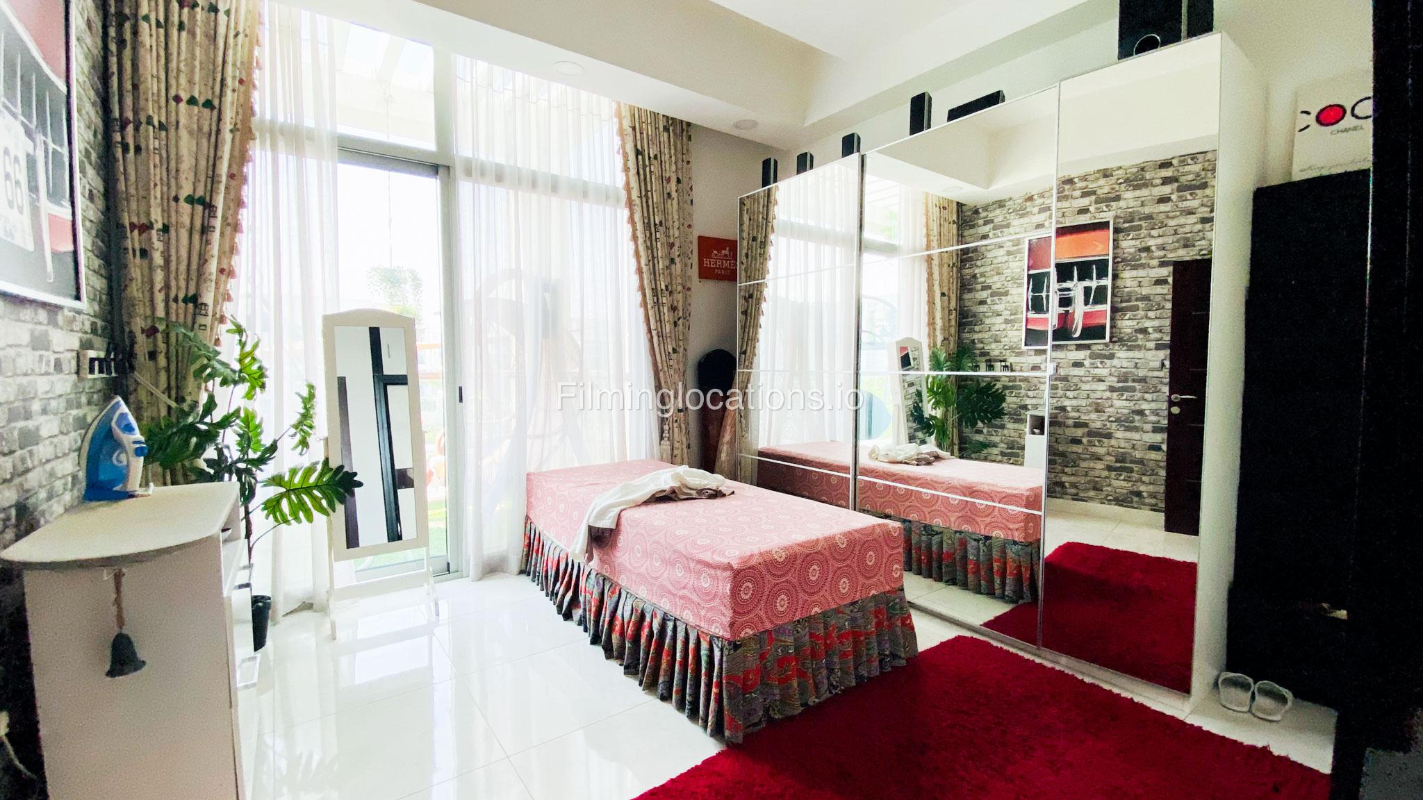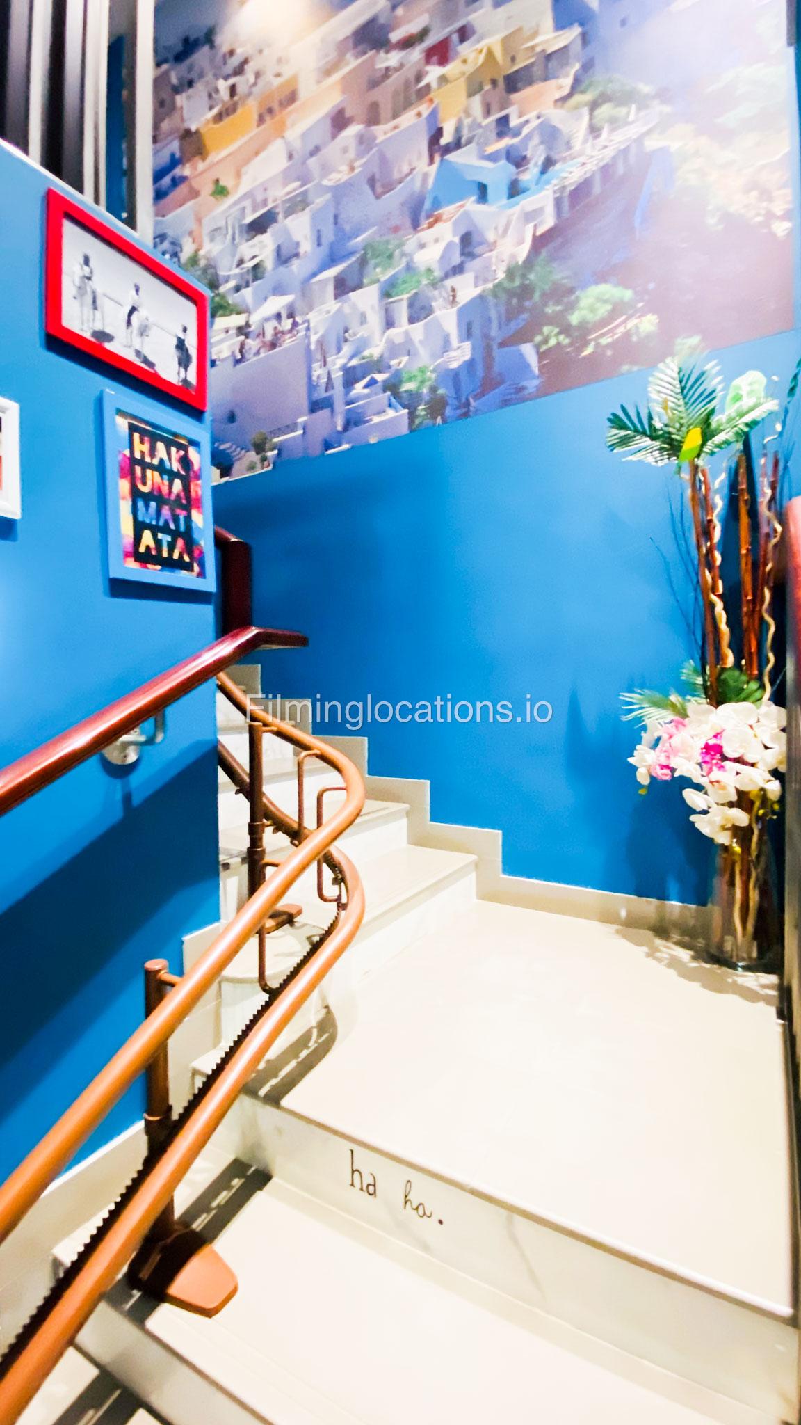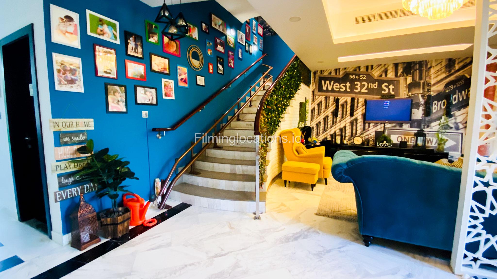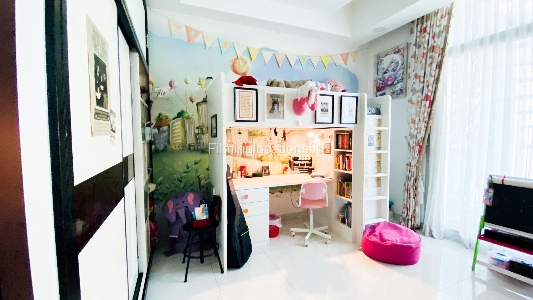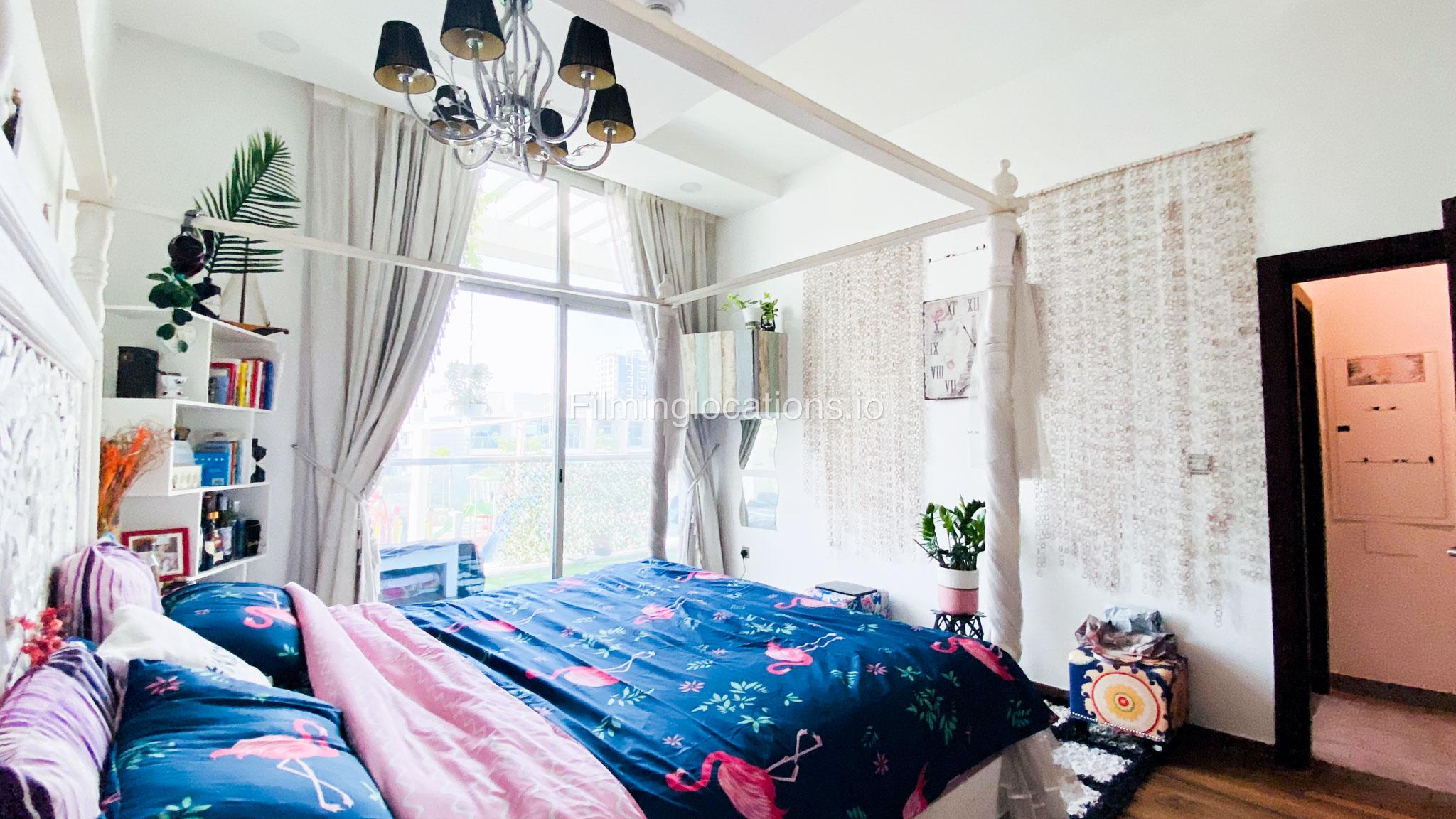 Our colorful Bohemian style villa in Dubai is perfect for filming. It features 3 bedrooms, a wooden playhouse in the garden, a piano, a beautiful garden, a balcony, a kitchen, and a spiral staircase. With its unique decor and vibrant interiors, this villa provides a stunning backdrop for any project. Book now to secure this fantastic filming location.