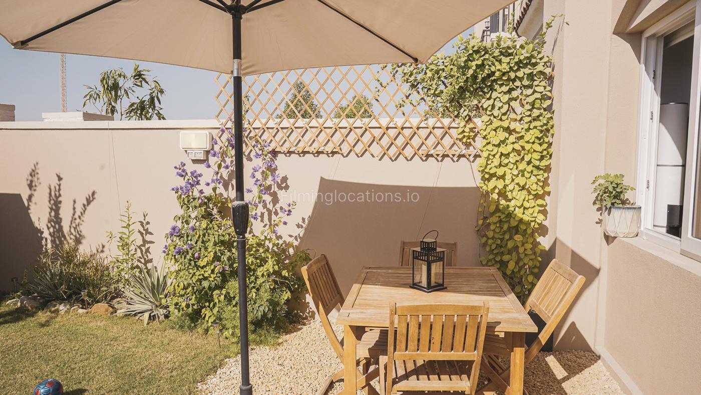 Amazing 3 bedroom villa with 1 master bedroom with fitted wardrobe. There are a total of 3 bedrooms and 3 bathrooms. Huge bright living area with access to the garden. It has a furnitured kitchen. AC and WIFI included everywhere. The garden is on the sunset side.