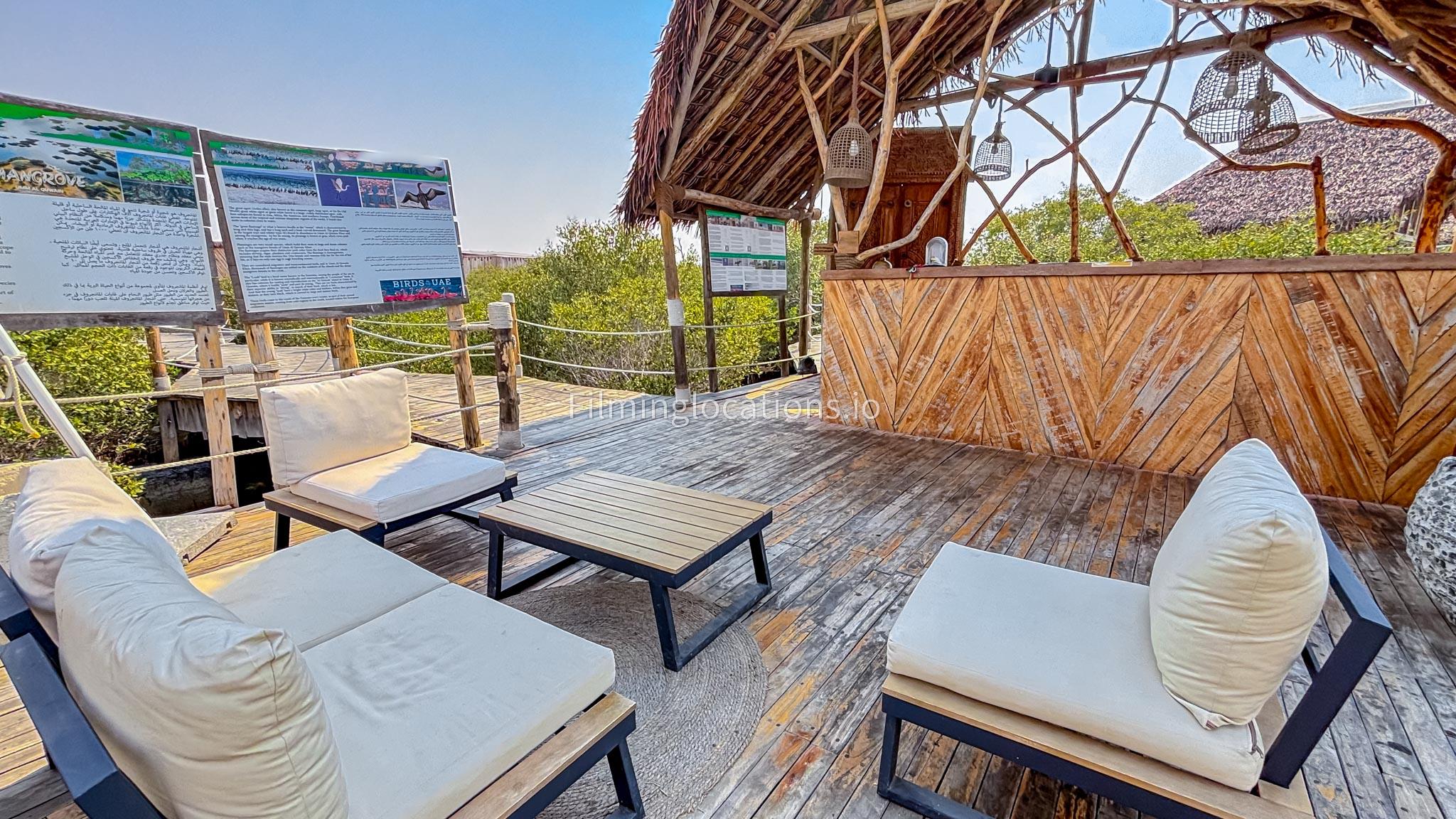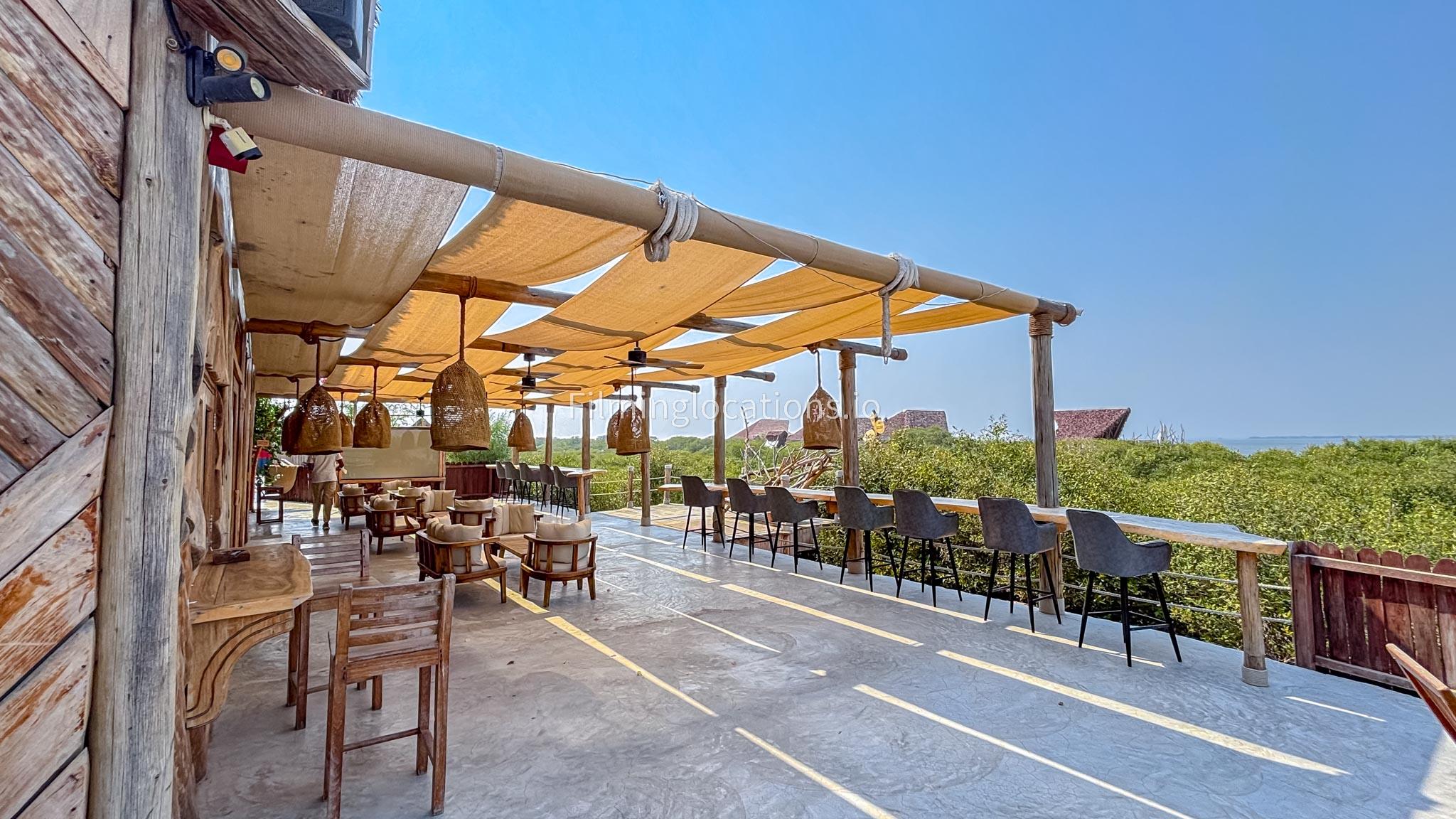Our Bohemian café, nestled among mangroves with breathtaking views for shoots. This unique spot is perfect for shoots, combining natural beauty with cultural elements.