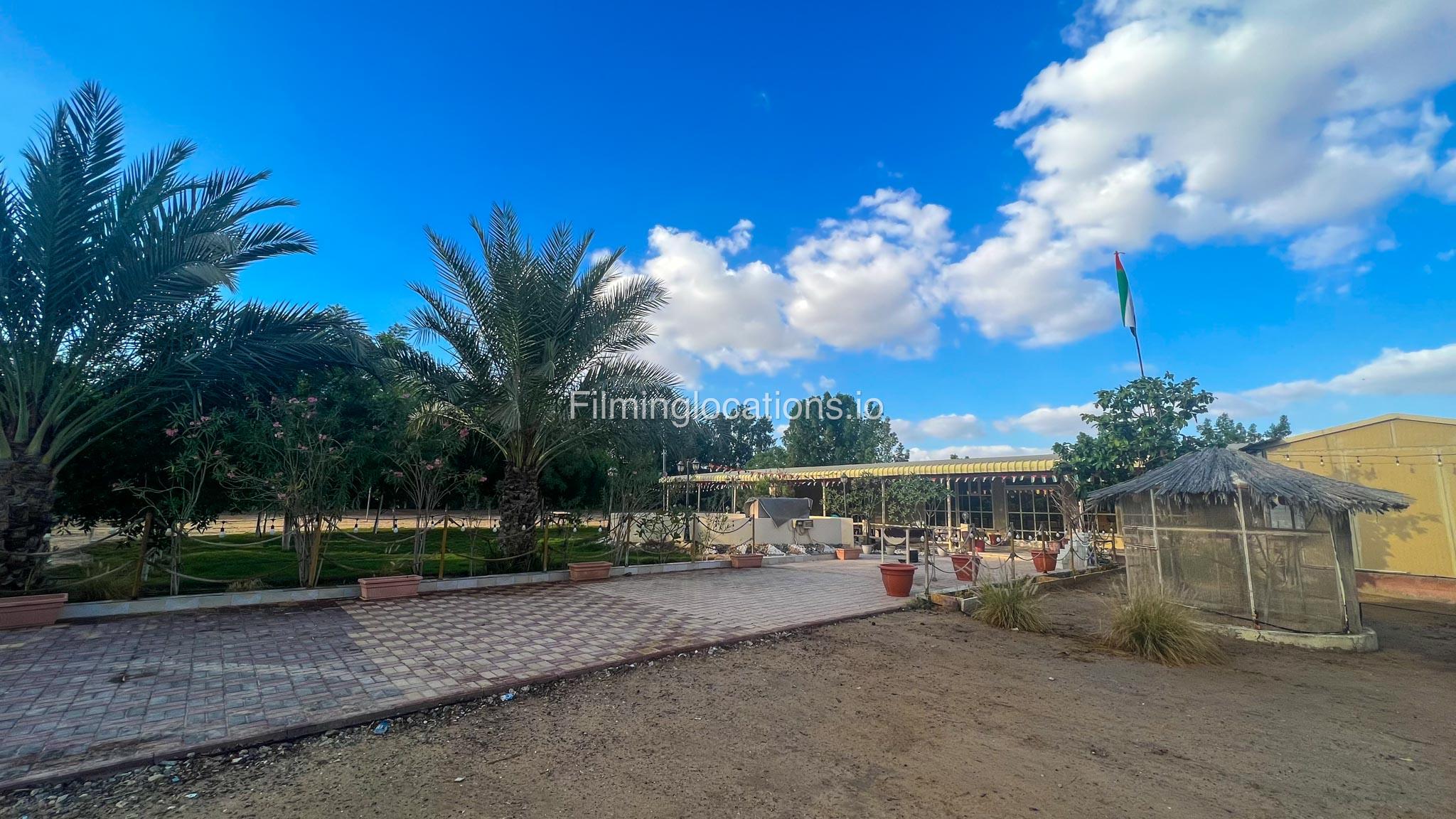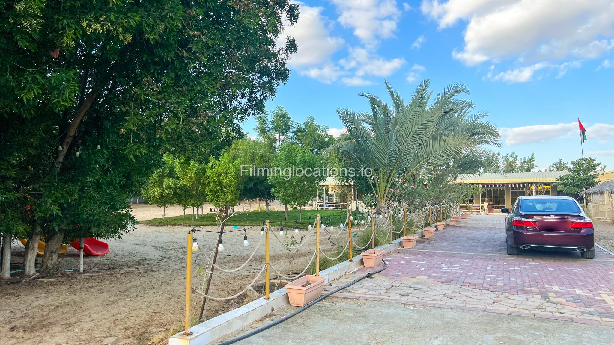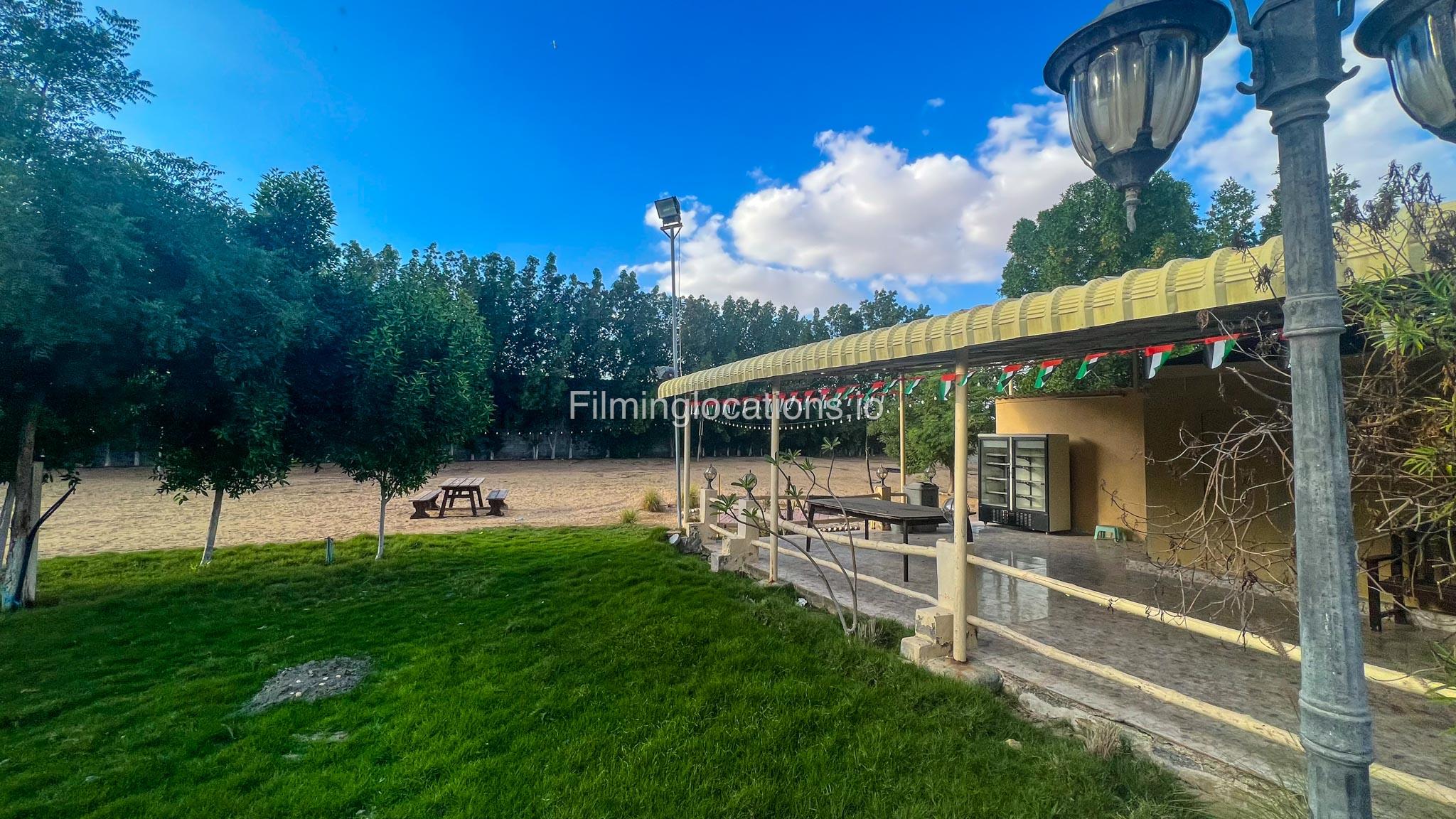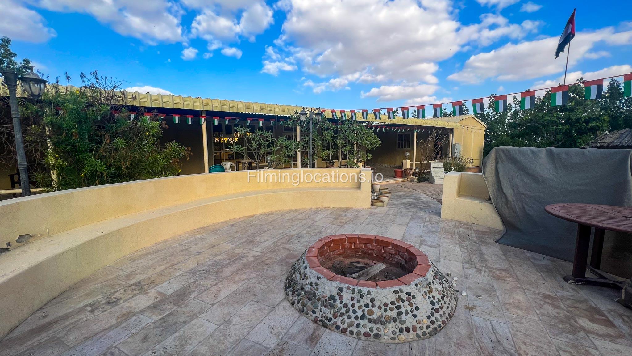 This exquisite farm home in Dubai offers a captivating setting for your next project. Featuring a vibrant green garden, charming animals, and a cozy fire pit, the location provides a beautiful blend of natural and modern elements. The elegant Majlis, complete with a TV, adds a touch of comfort. Perfect for a variety of scenes, this home boasts a picturesque backdrop and a warm, inviting atmosphere.