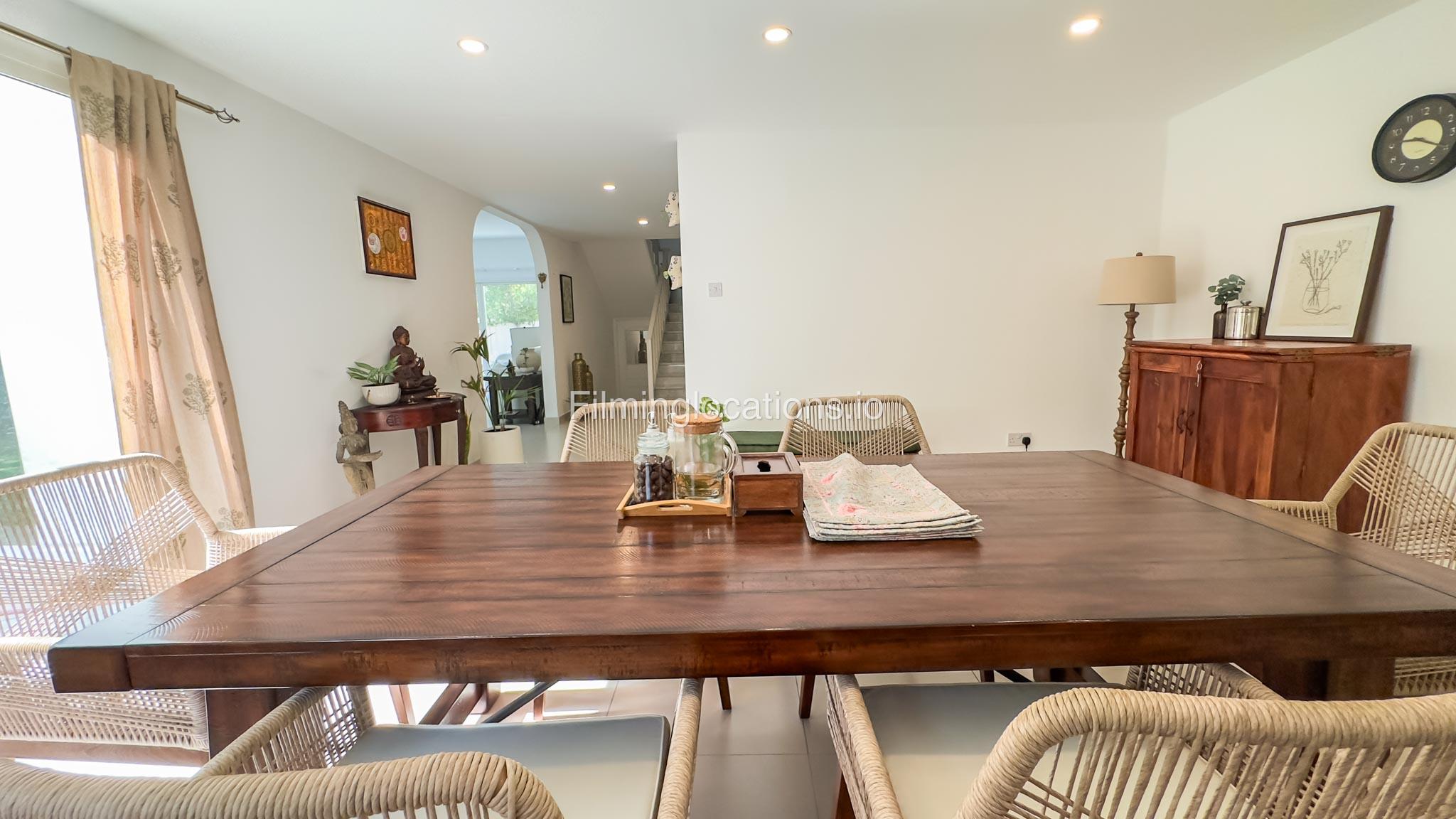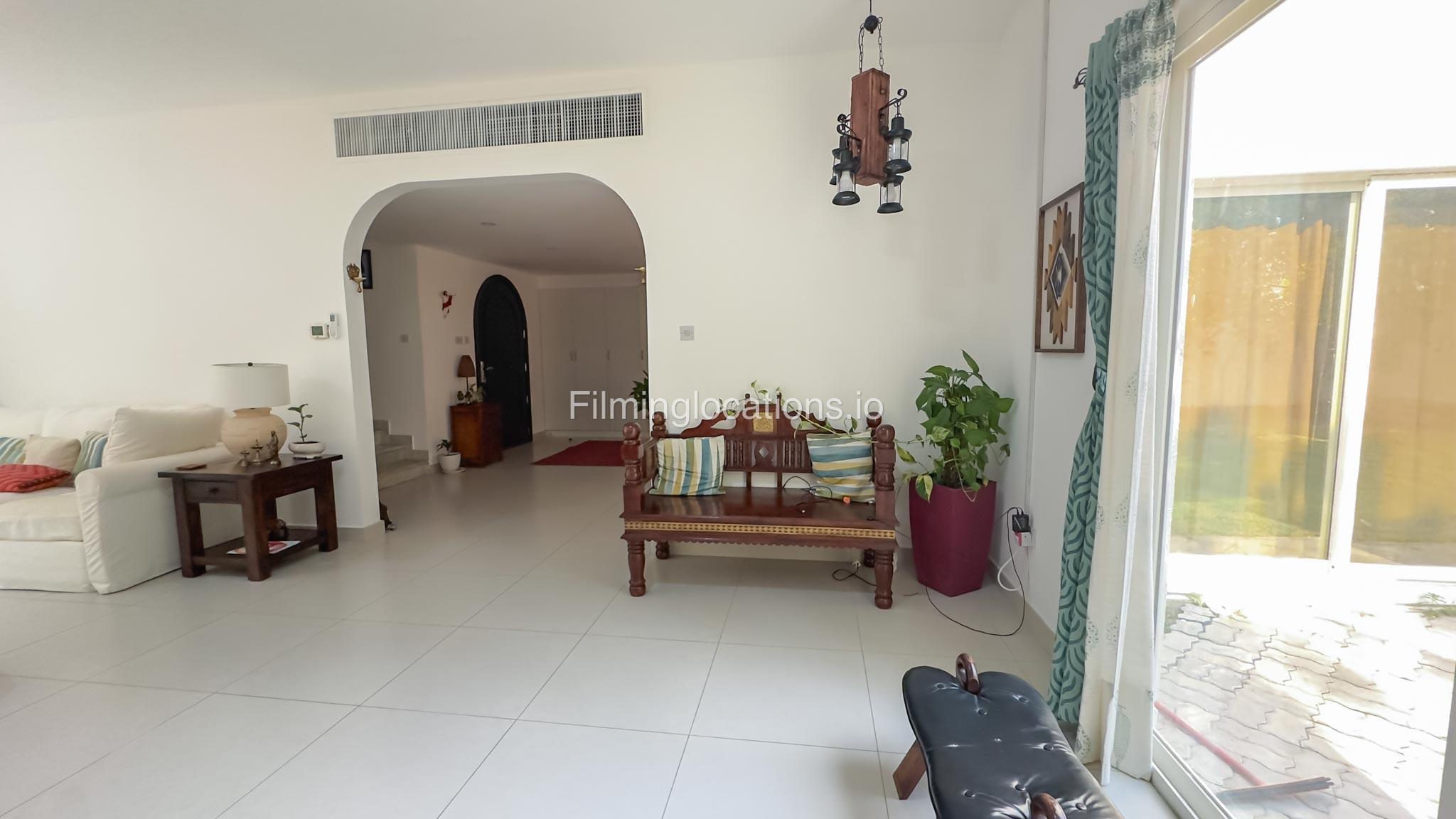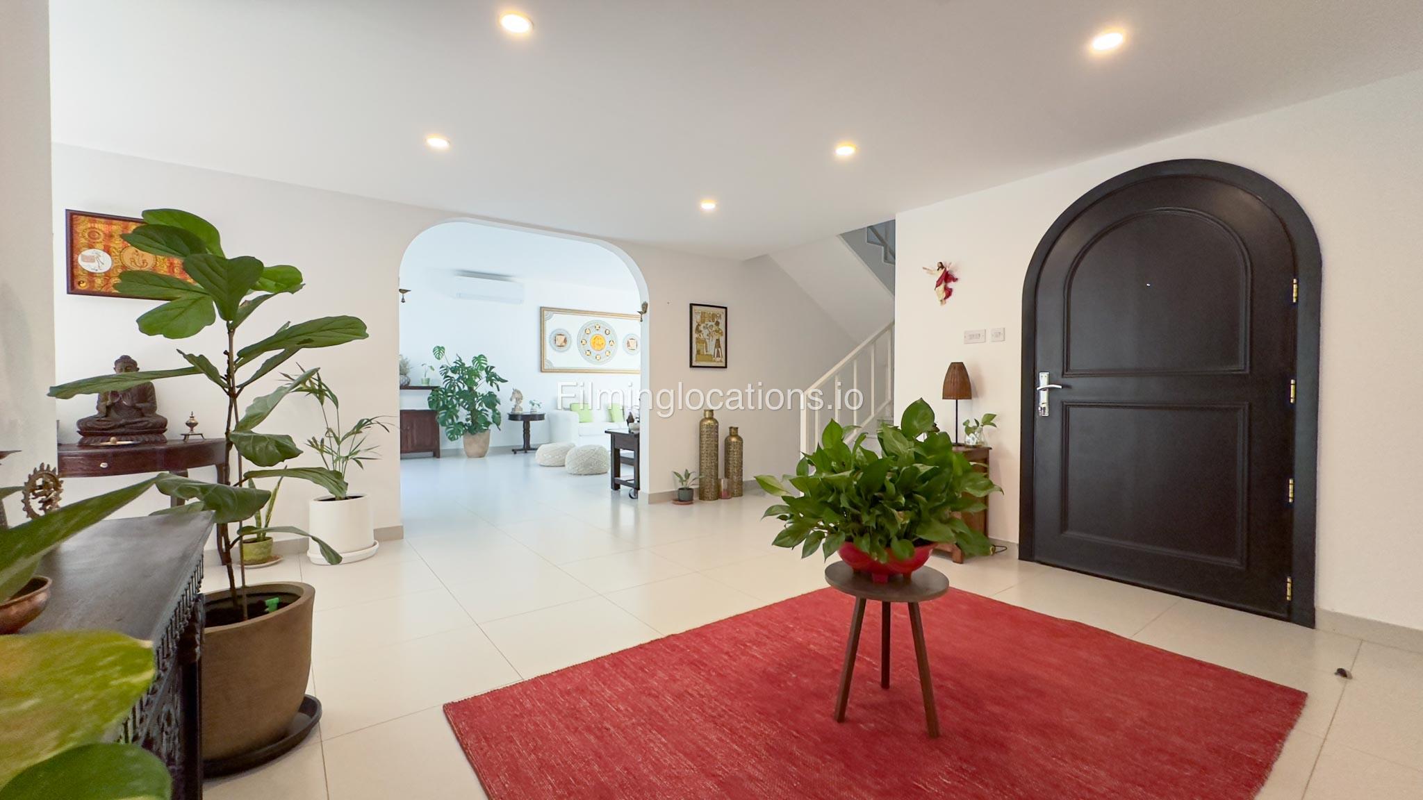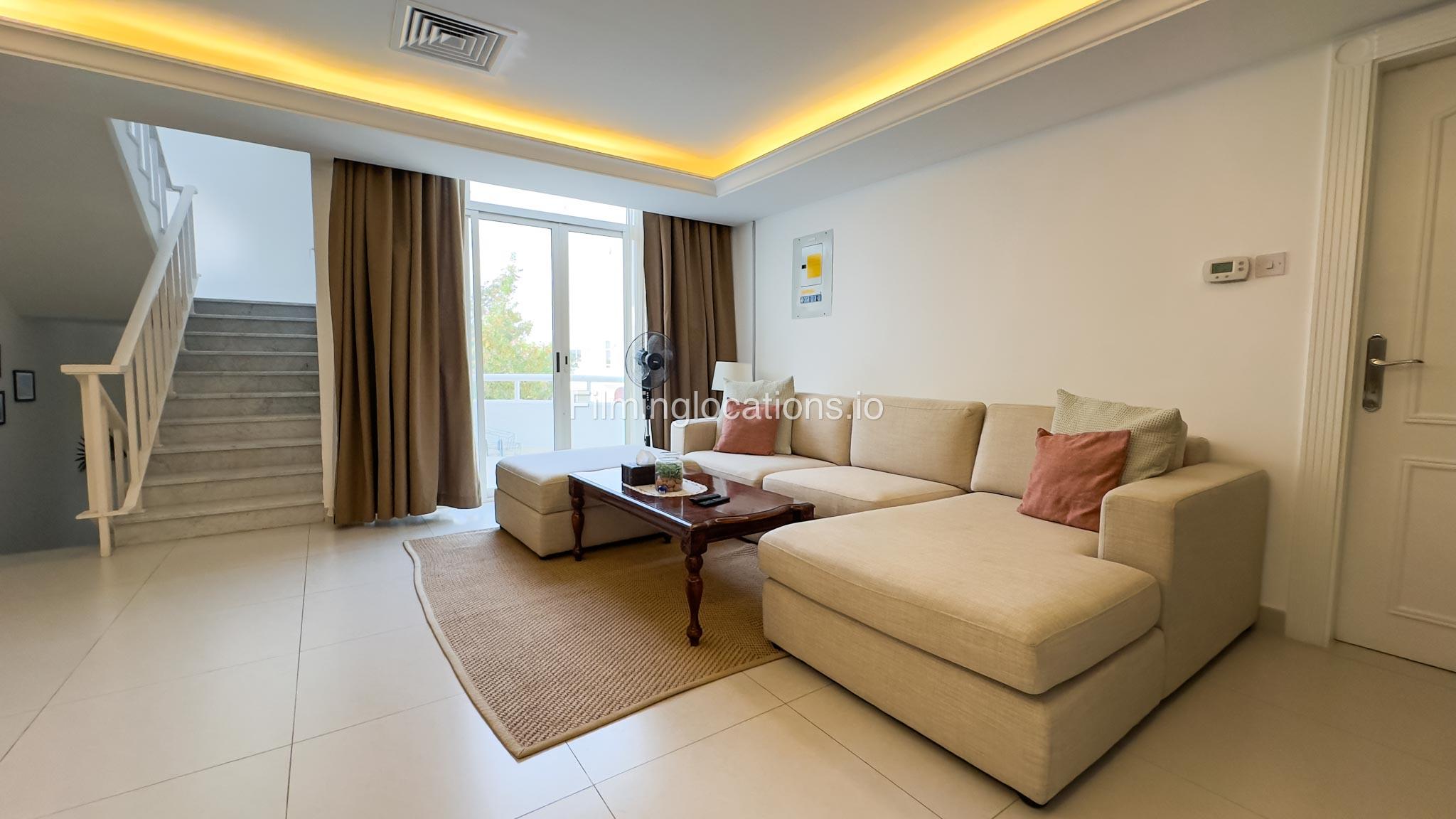 Our villa is a modern one-bedroom villa tucked away in a serene environment surrounded by lush greenery. The villa features a spacious lounge area, a fully equipped kitchen, and a bathroom—all on the ground floor for convenient access during shoots, as well as a lounge area on the first floor. Outside, you'll find ample parking space for up to six cars, ensuring hassle-free logistics for your film crew.
