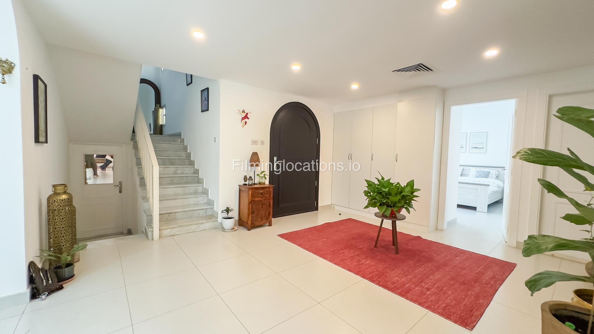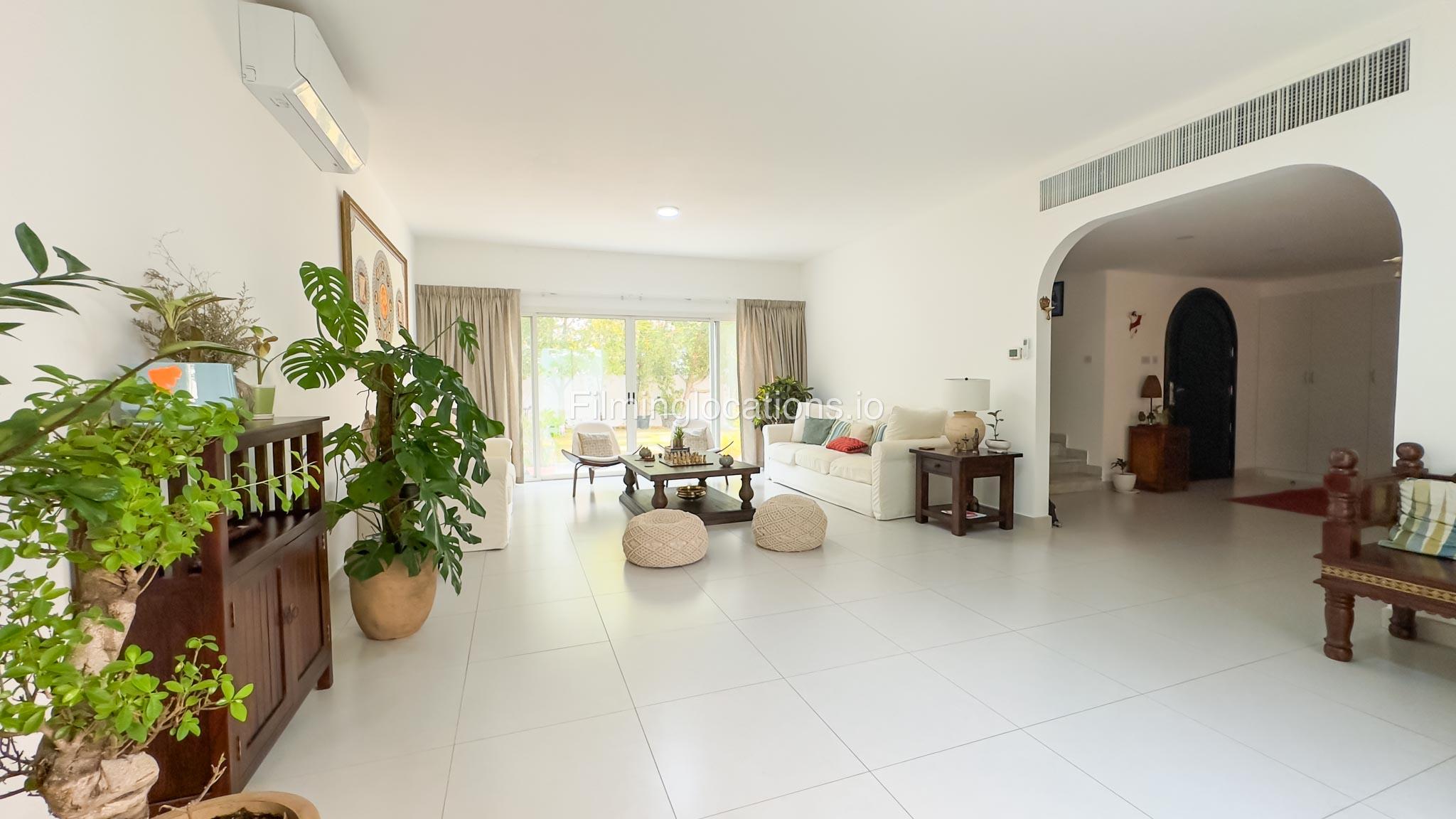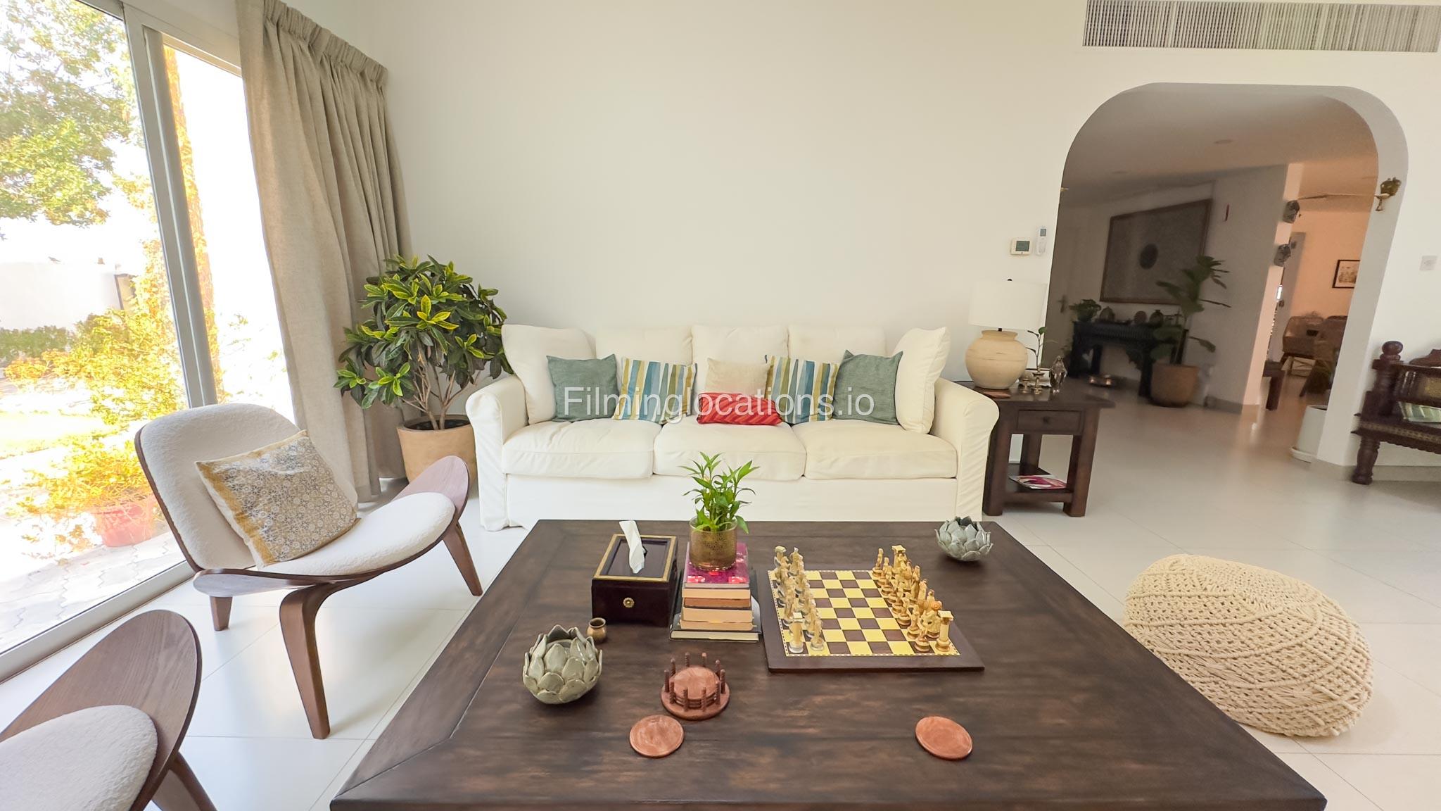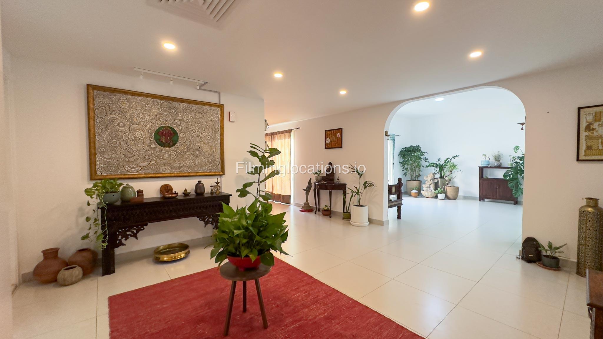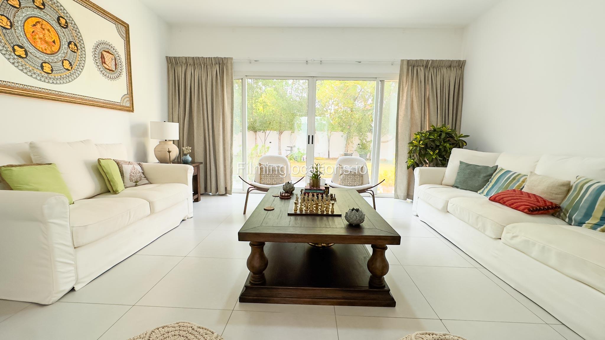 Our villa is a modern one-bedroom villa tucked away in a serene environment surrounded by lush greenery. The villa features a spacious lounge area, a fully equipped kitchen, and a bathroom—all on the ground floor for convenient access during shoots, as well as a lounge area on the first floor. Outside, you'll find ample parking space for up to six cars, ensuring hassle-free logistics for your film crew.