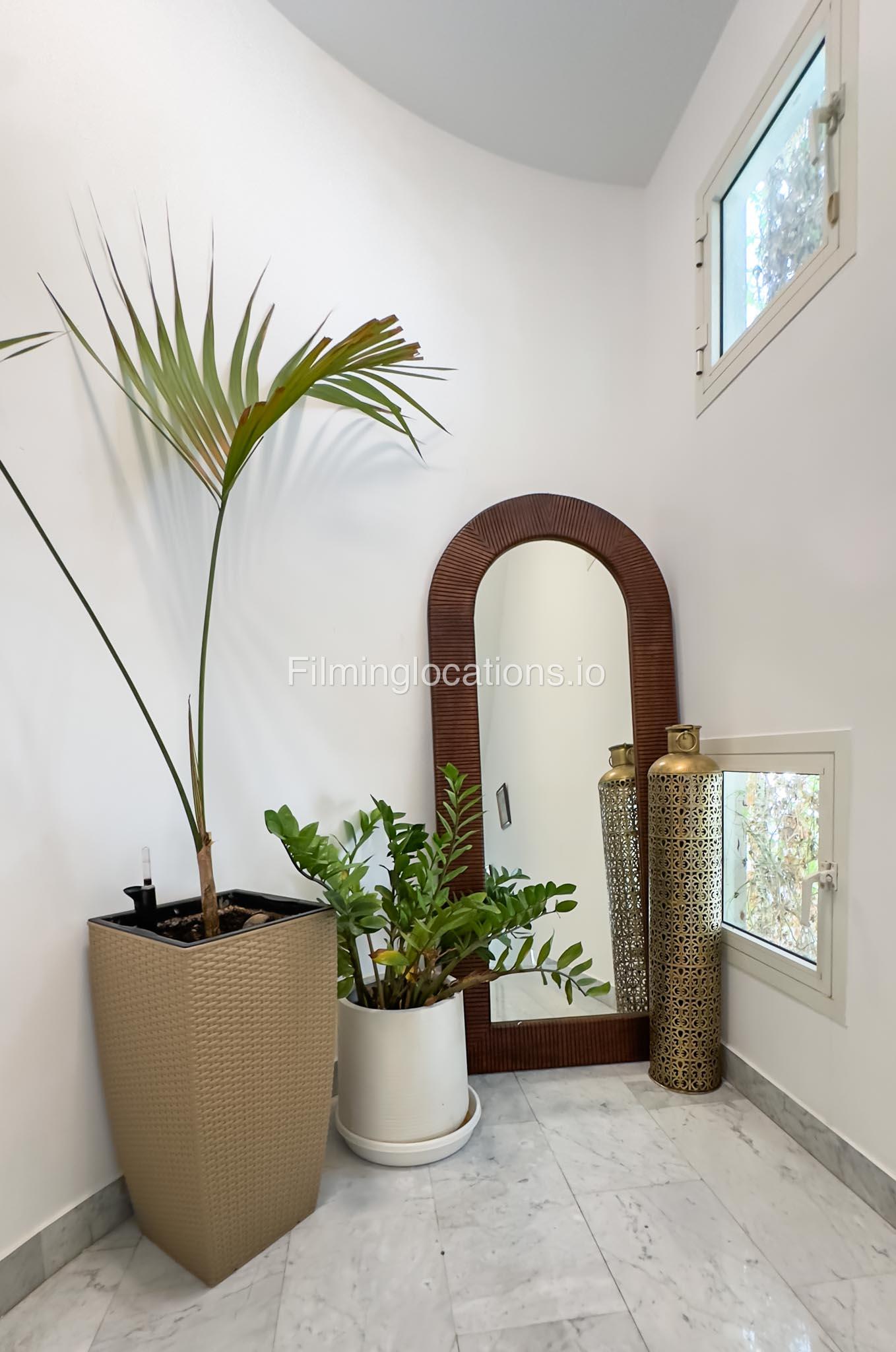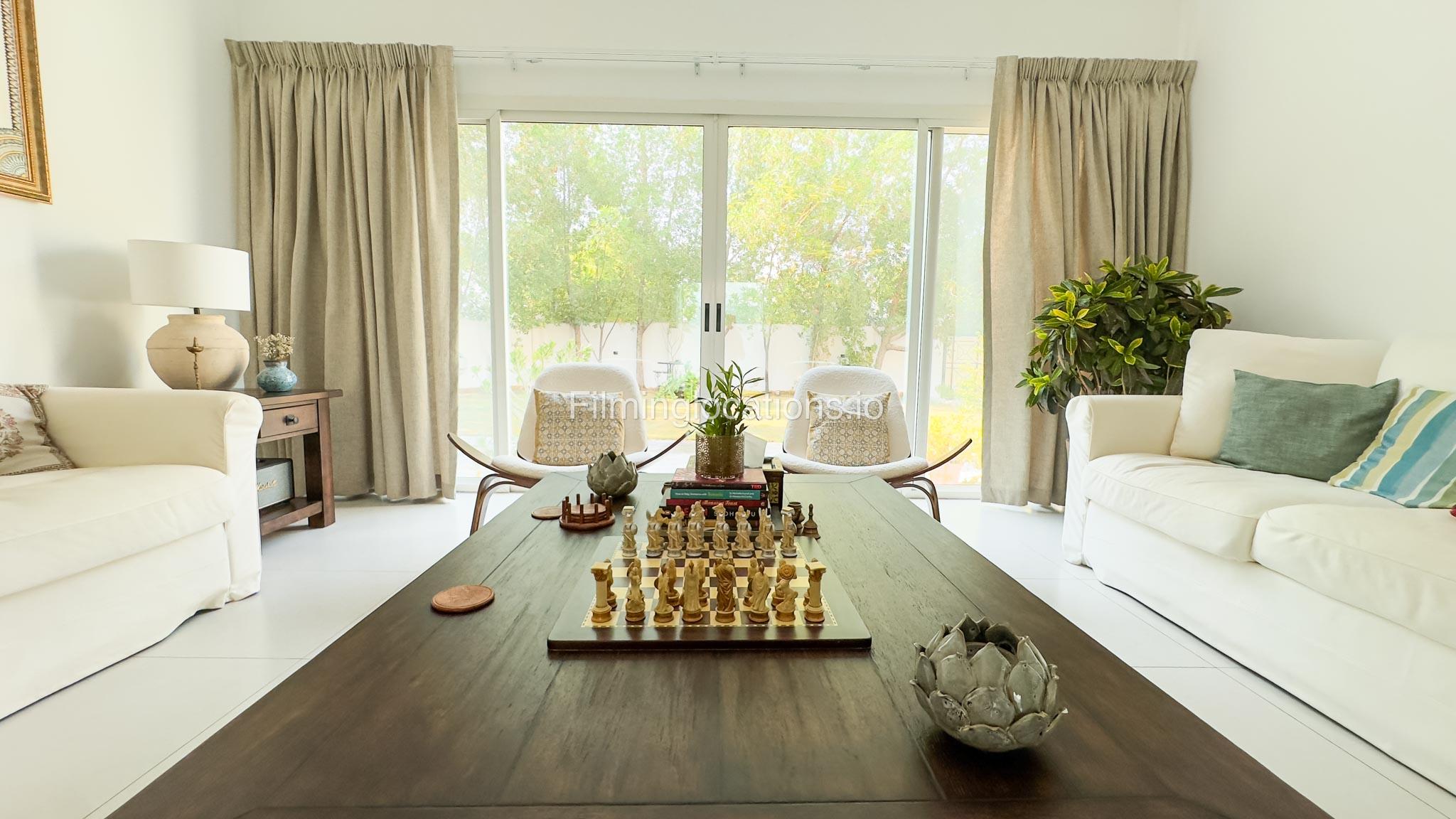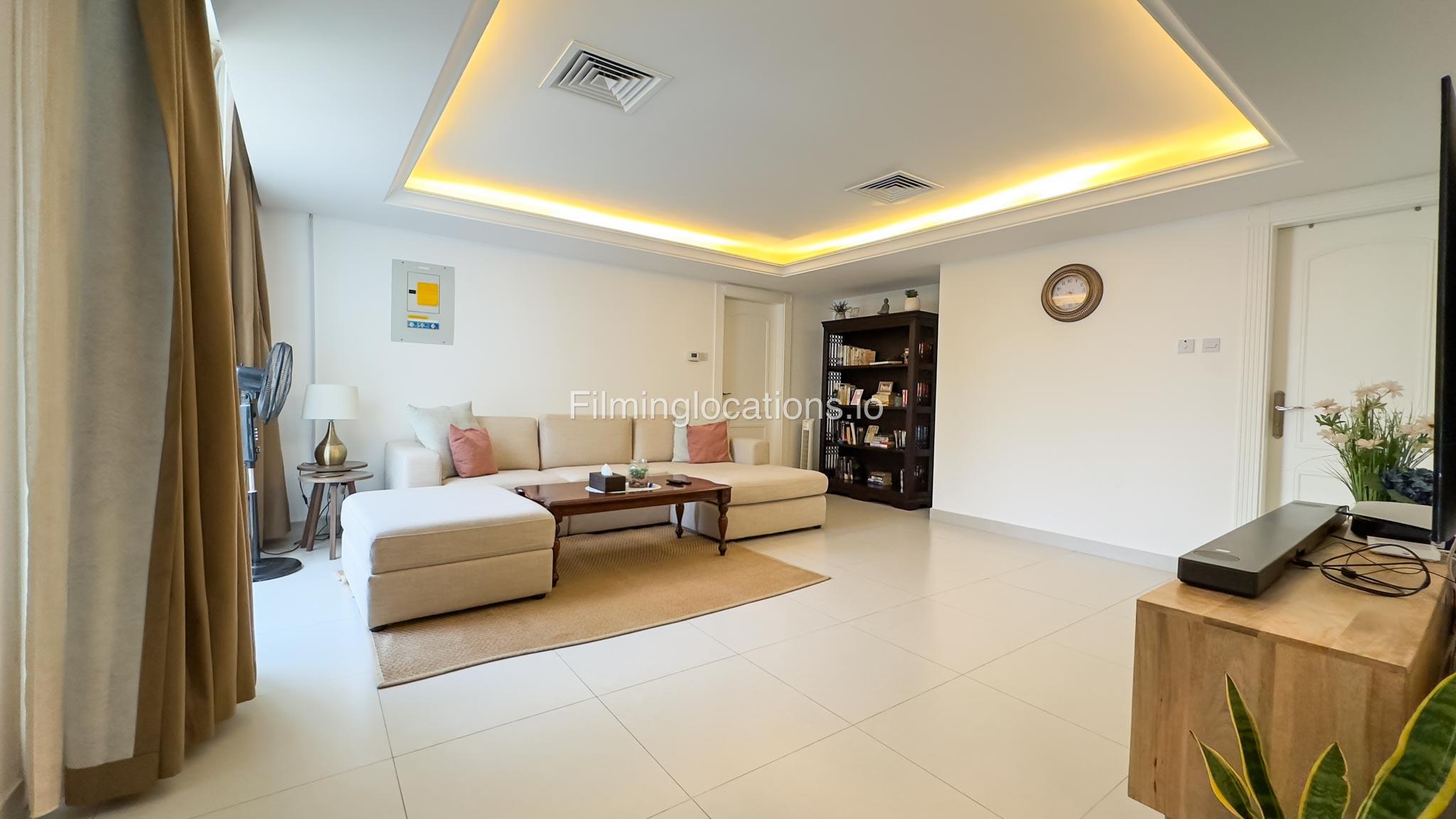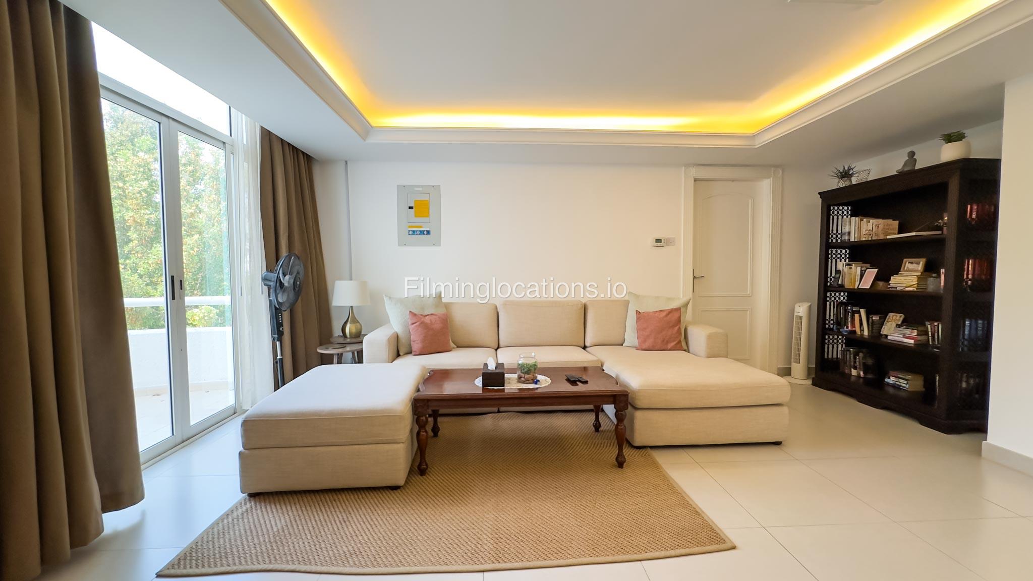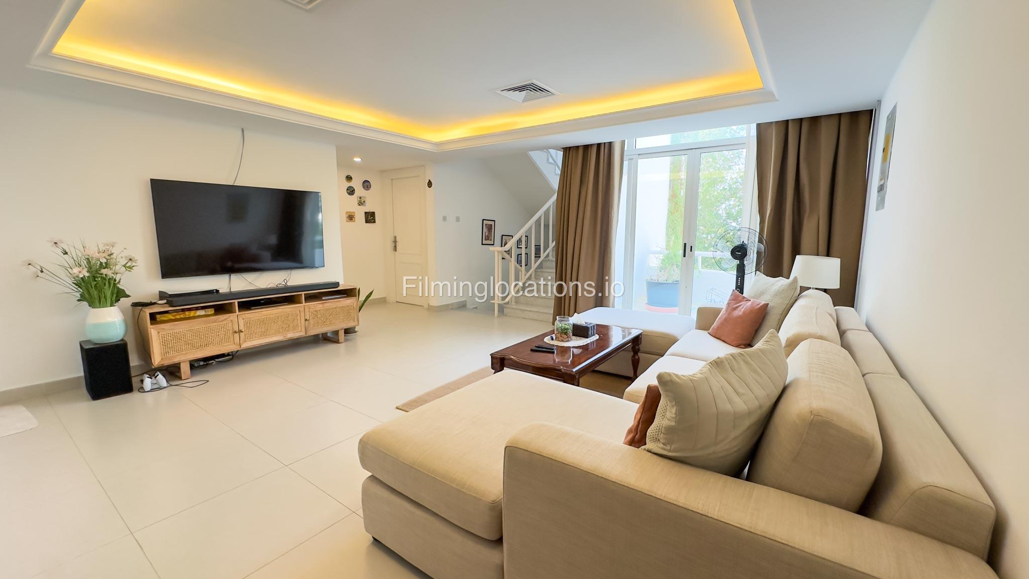 Our villa is a modern one-bedroom villa tucked away in a serene environment surrounded by lush greenery. The villa features a spacious lounge area, a fully equipped kitchen, and a bathroom—all on the ground floor for convenient access during shoots, as well as a lounge area on the first floor. Outside, you'll find ample parking space for up to six cars, ensuring hassle-free logistics for your film crew.