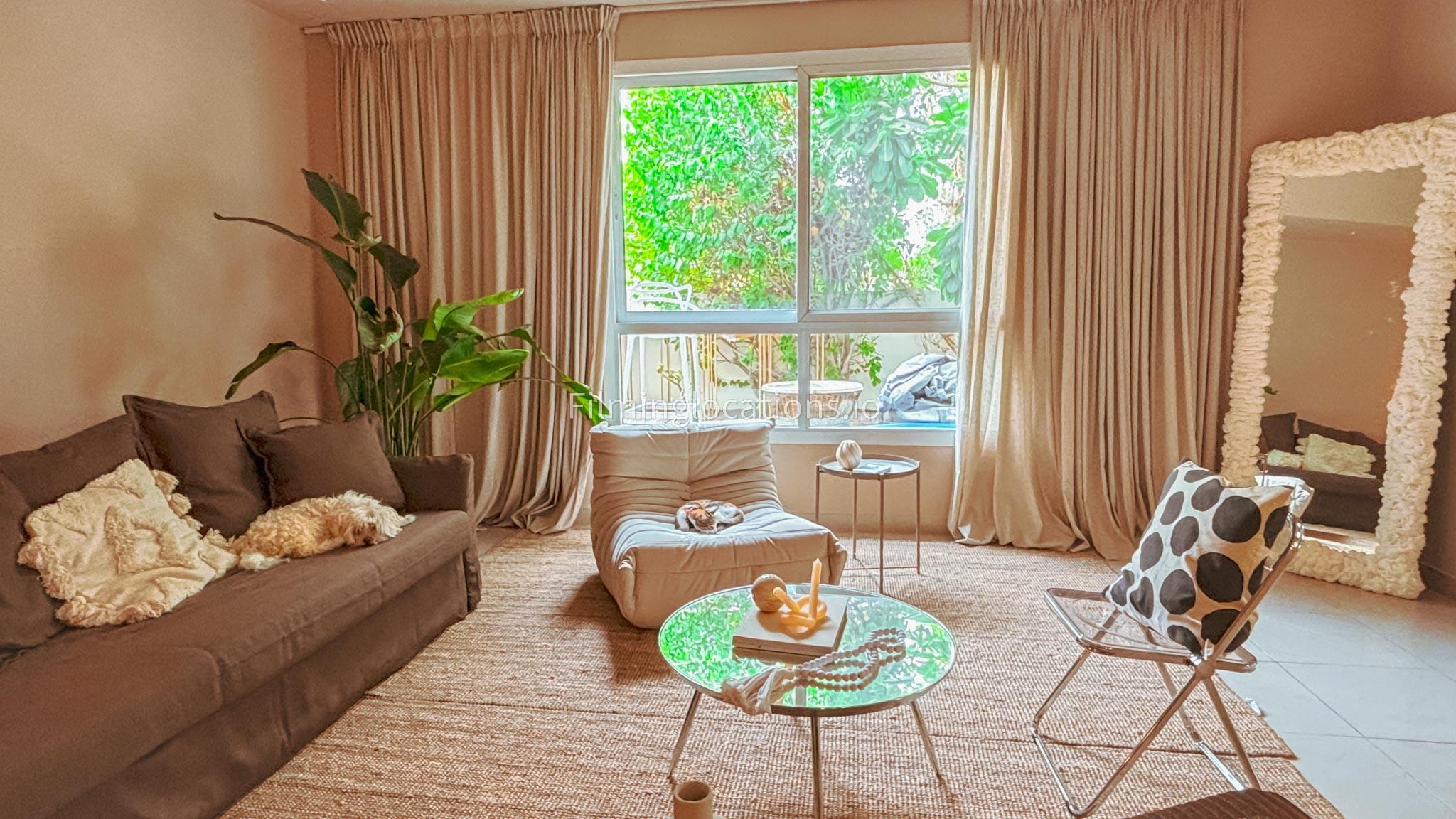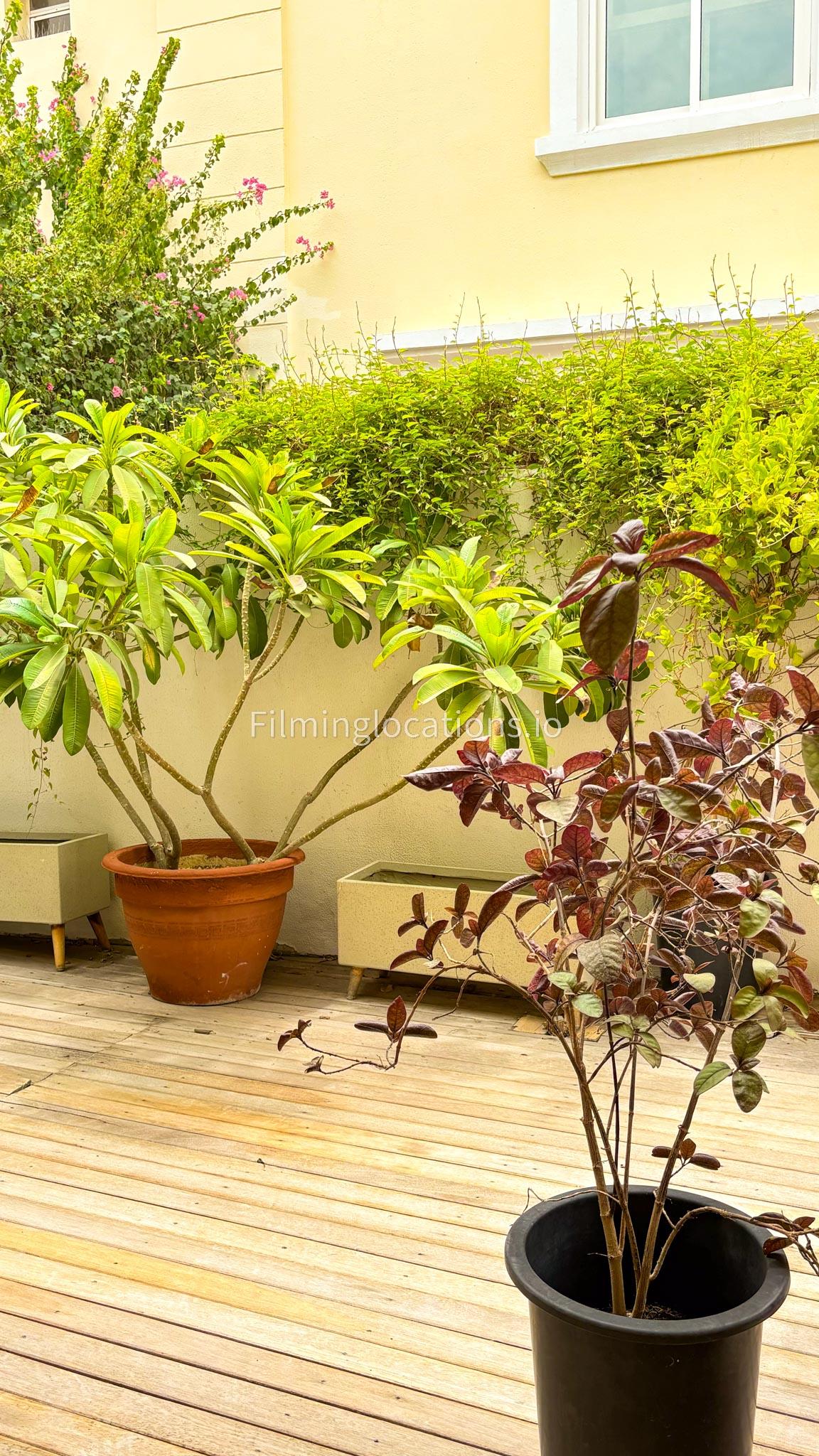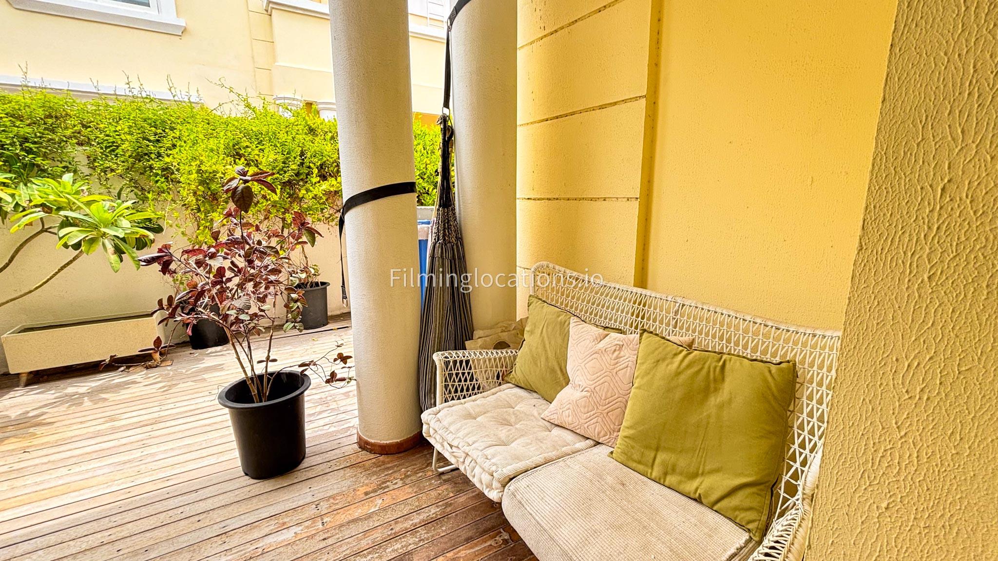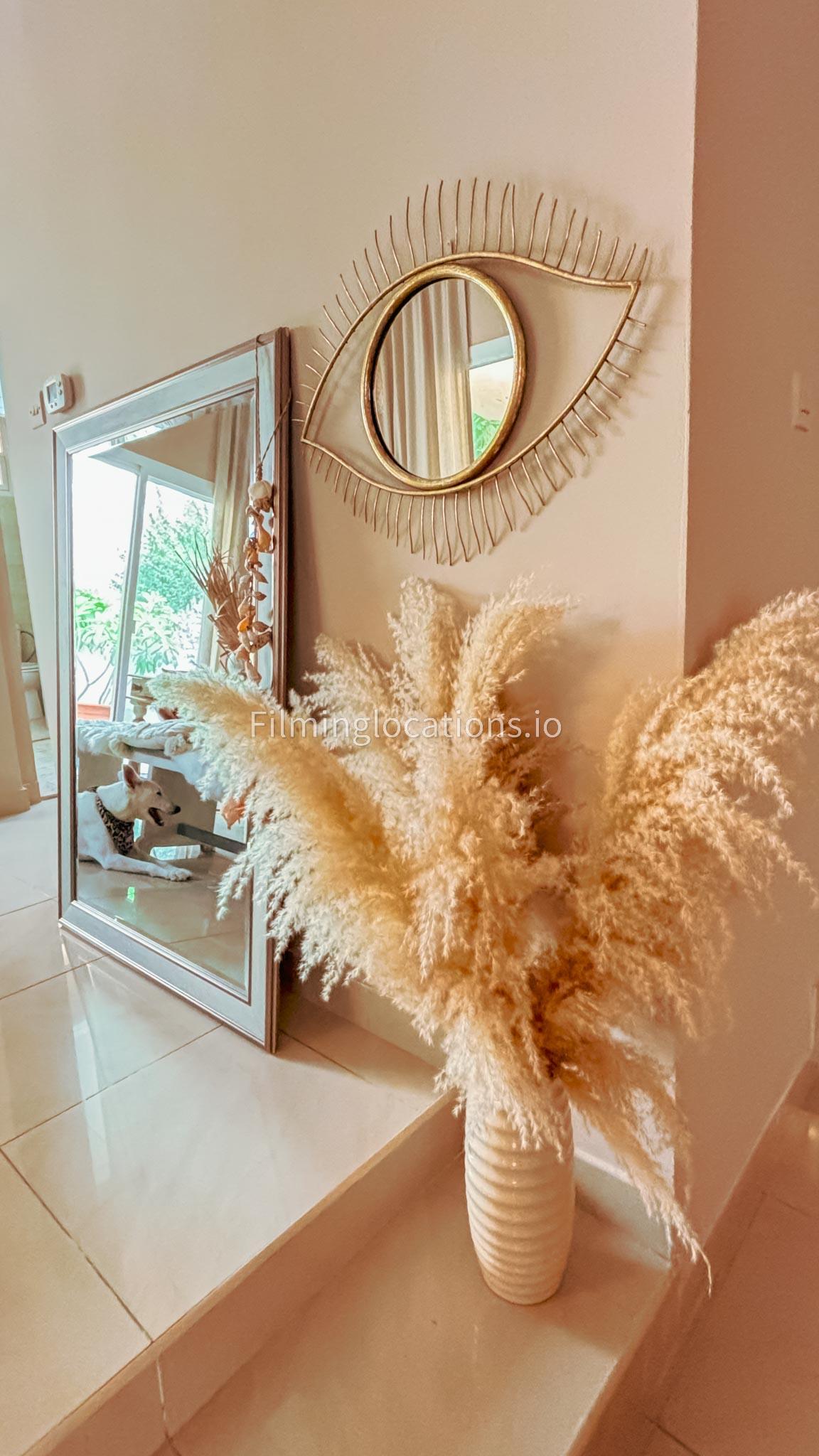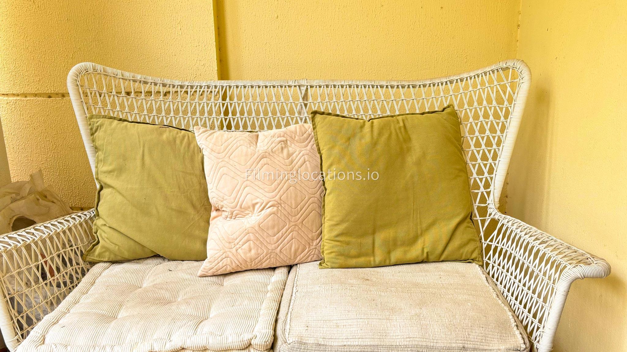 Our Boho-style villa is a perfect location for film shoots that need a cozy and stylish setting. The living room features warm, earthy tones and soft lighting, creating a relaxed and inviting atmosphere. The dining area is bright and aesthetic, with natural wood furniture, wicker lighting, and large windows that fill the space with natural light. Outside, the quaint backyard includes a comfortable seating area surrounded by greenery, ideal for outdoor scenes.