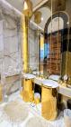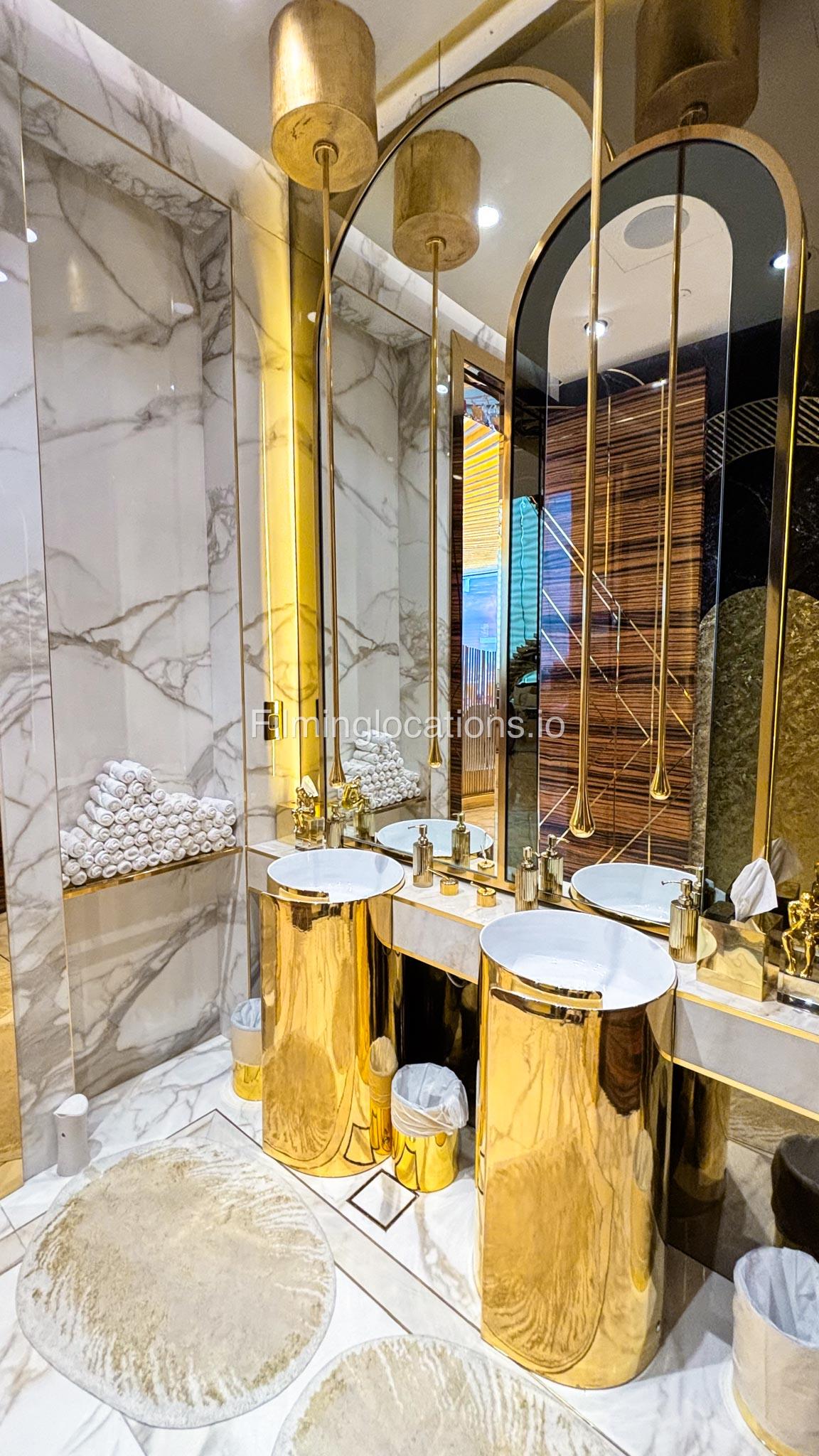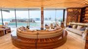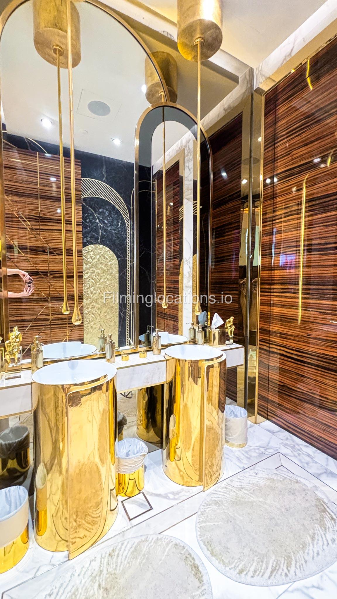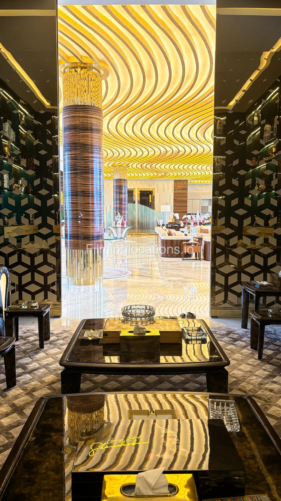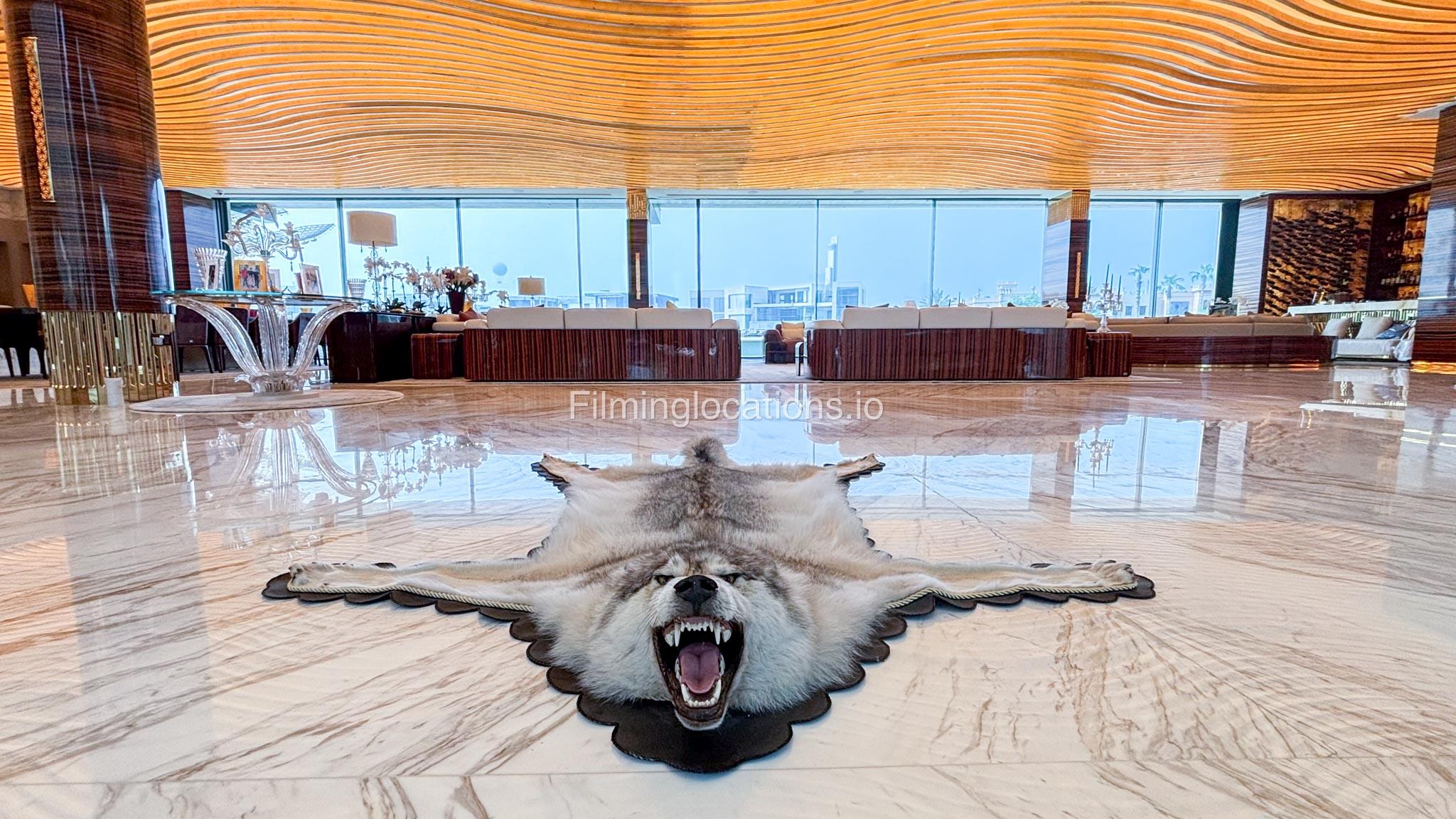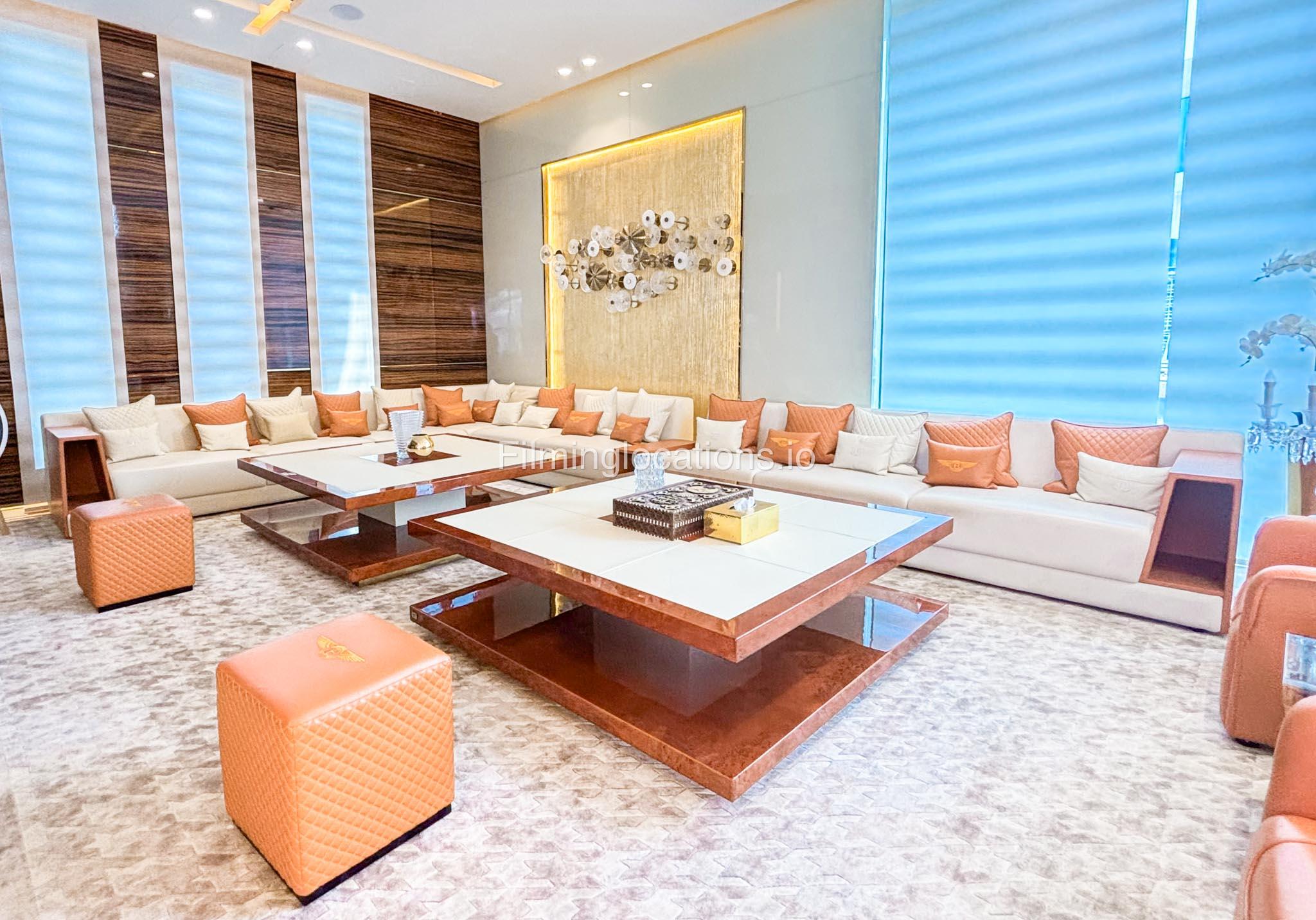 The interior is furnished with the finest pieces from Bentley, Fendi, Baccarat, Hadi, Armani, and Chanel, creating a sophisticated and stylish environment. The ground floor boasts an open kitchen, a bar room with luxurious sofas, and multiple lounge areas, offering a variety of settings for different scenes.