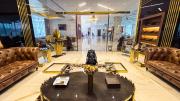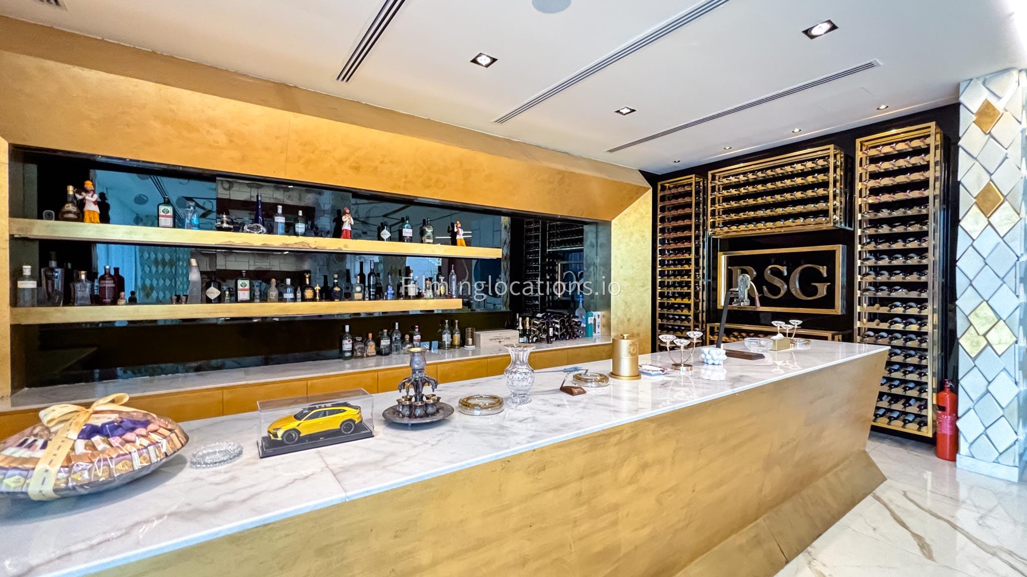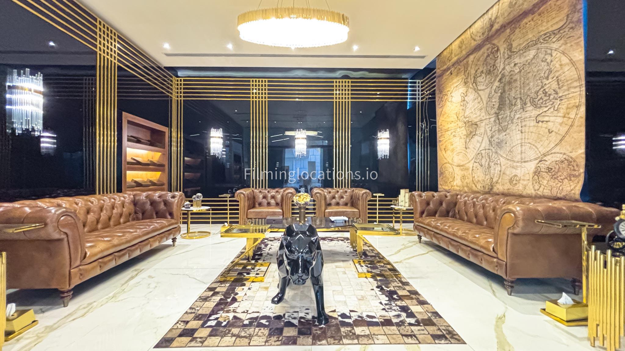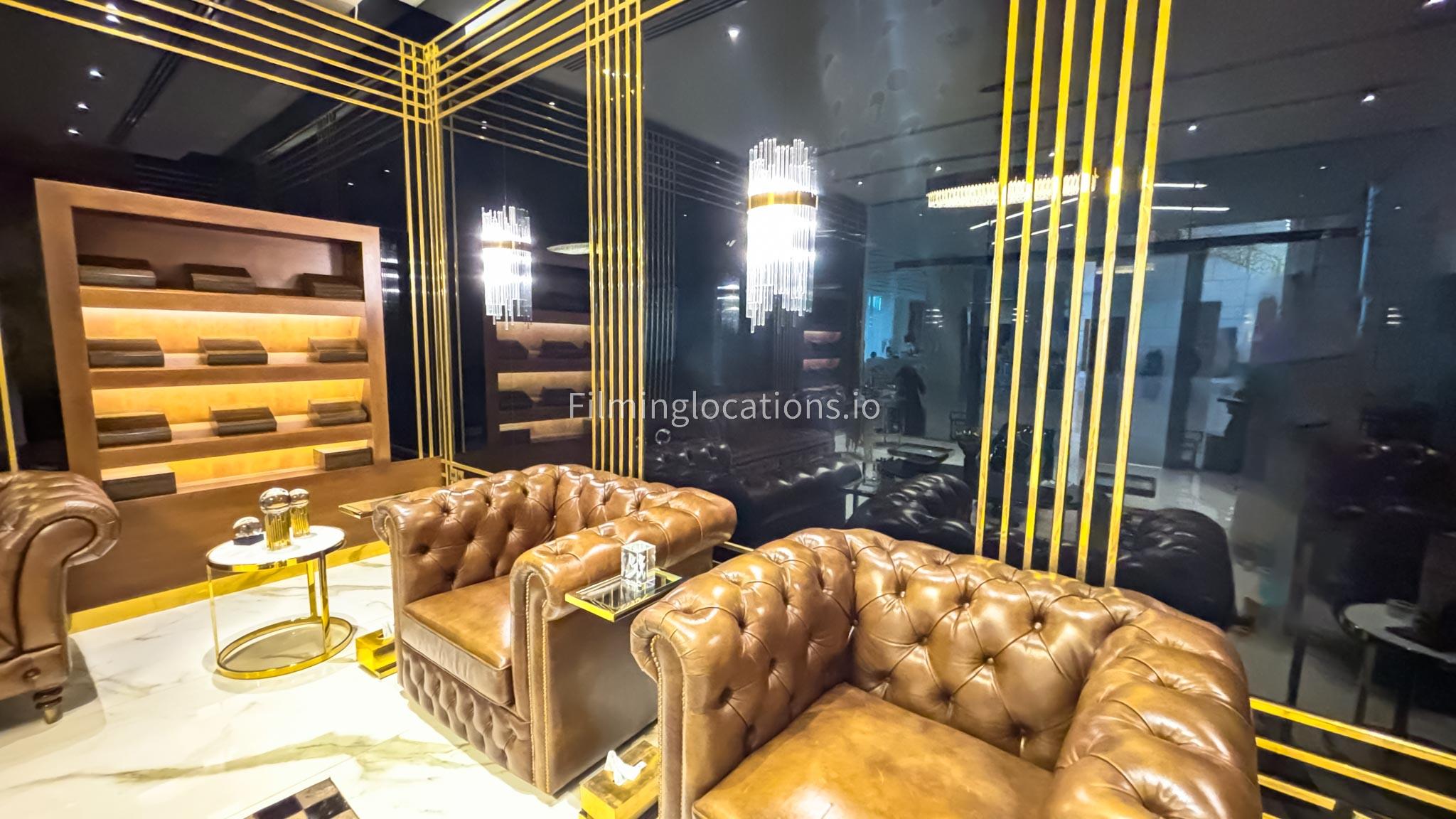 There’s a dedicated cigar room, fully wrapped in luxurious leather with intricate patterns, offering a distinctive and atmospheric setting for filming.