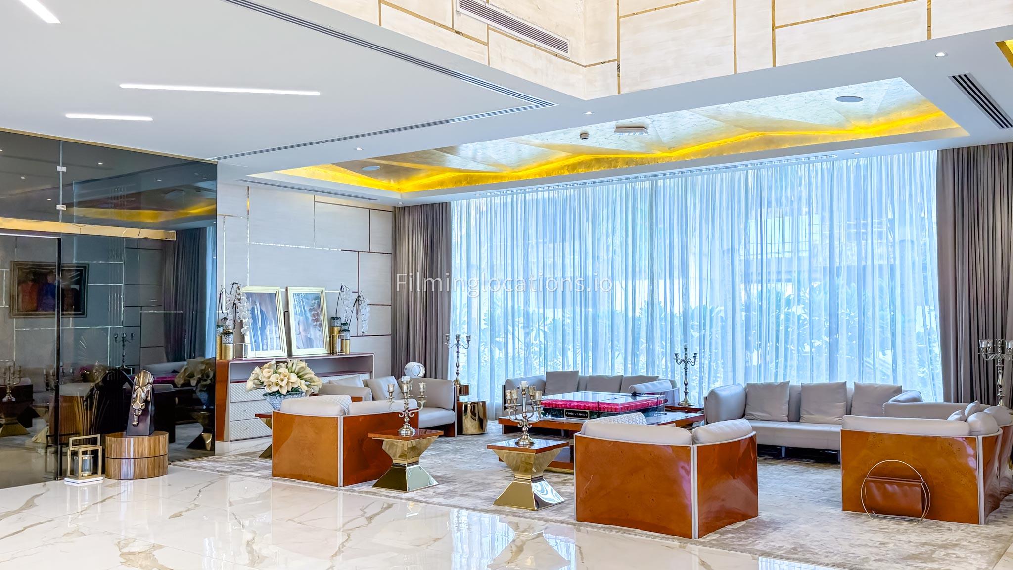 Our stunning villa offers an array of luxurious features, ideal for capturing the essence of sophistication on camera. With several spacious lounge areas adorned with plush sofas, an open kitchen complete with a stylish kitchen island, and an elegant bar area, the villa provides diverse settings for a variety of scenes. The villa’s ceilings are enhanced with lighting, creating a modern and dynamic ambiance.