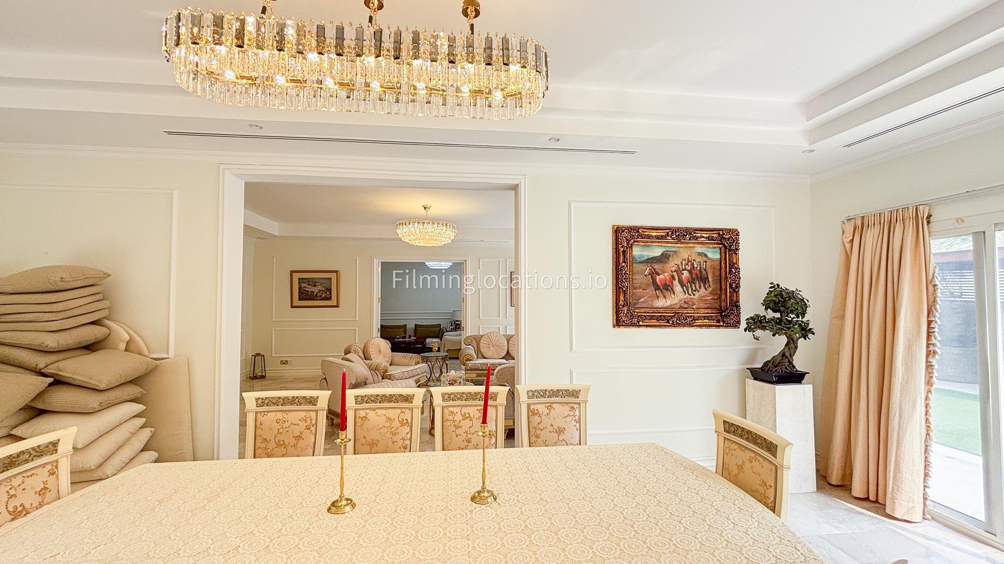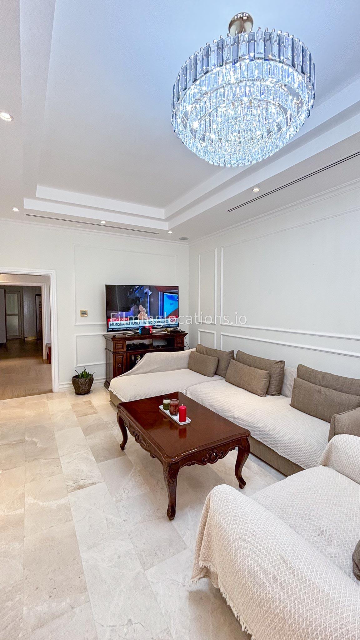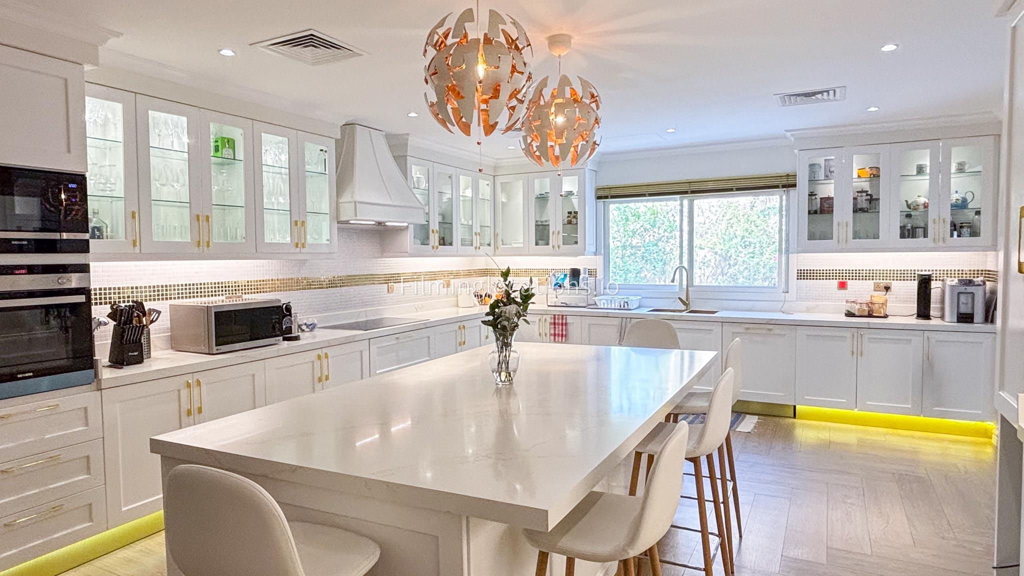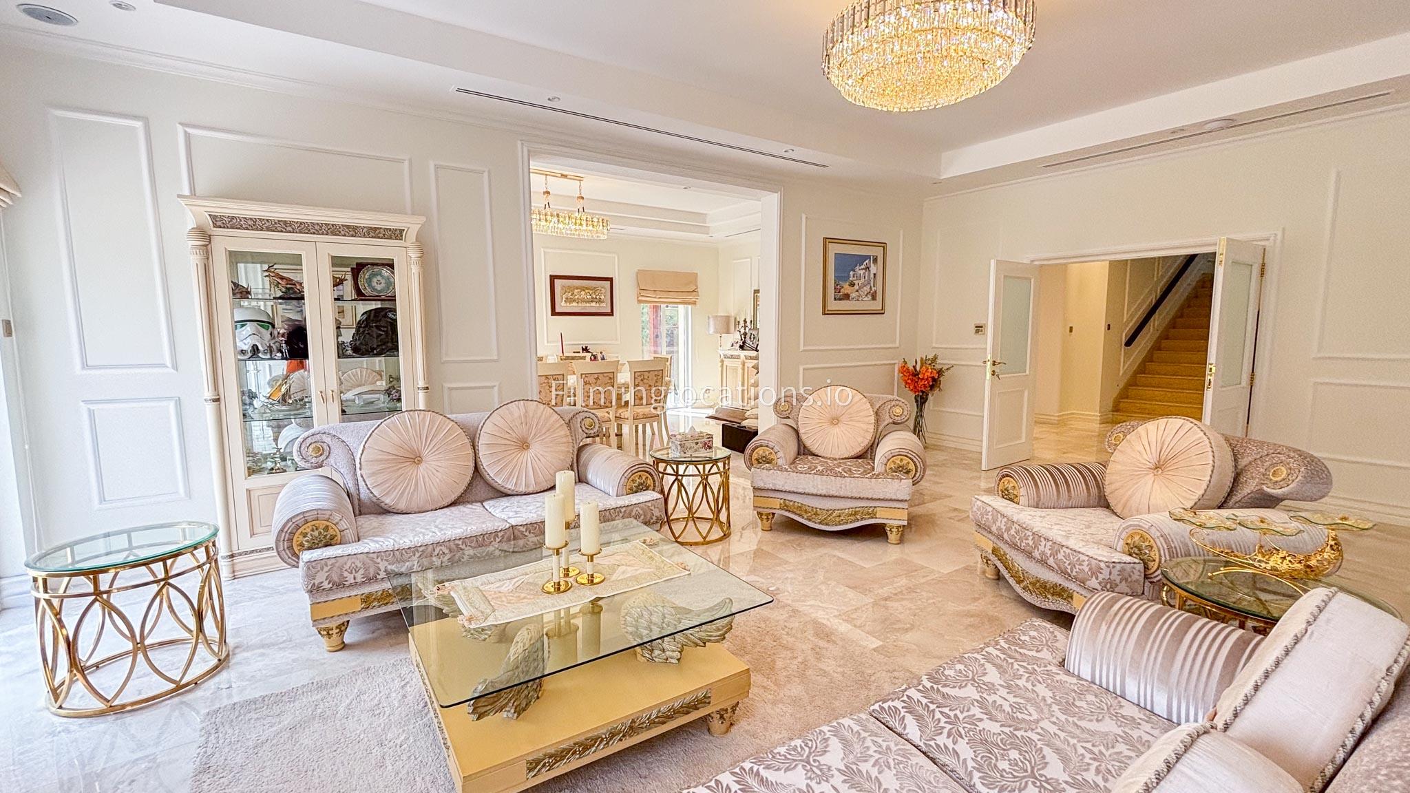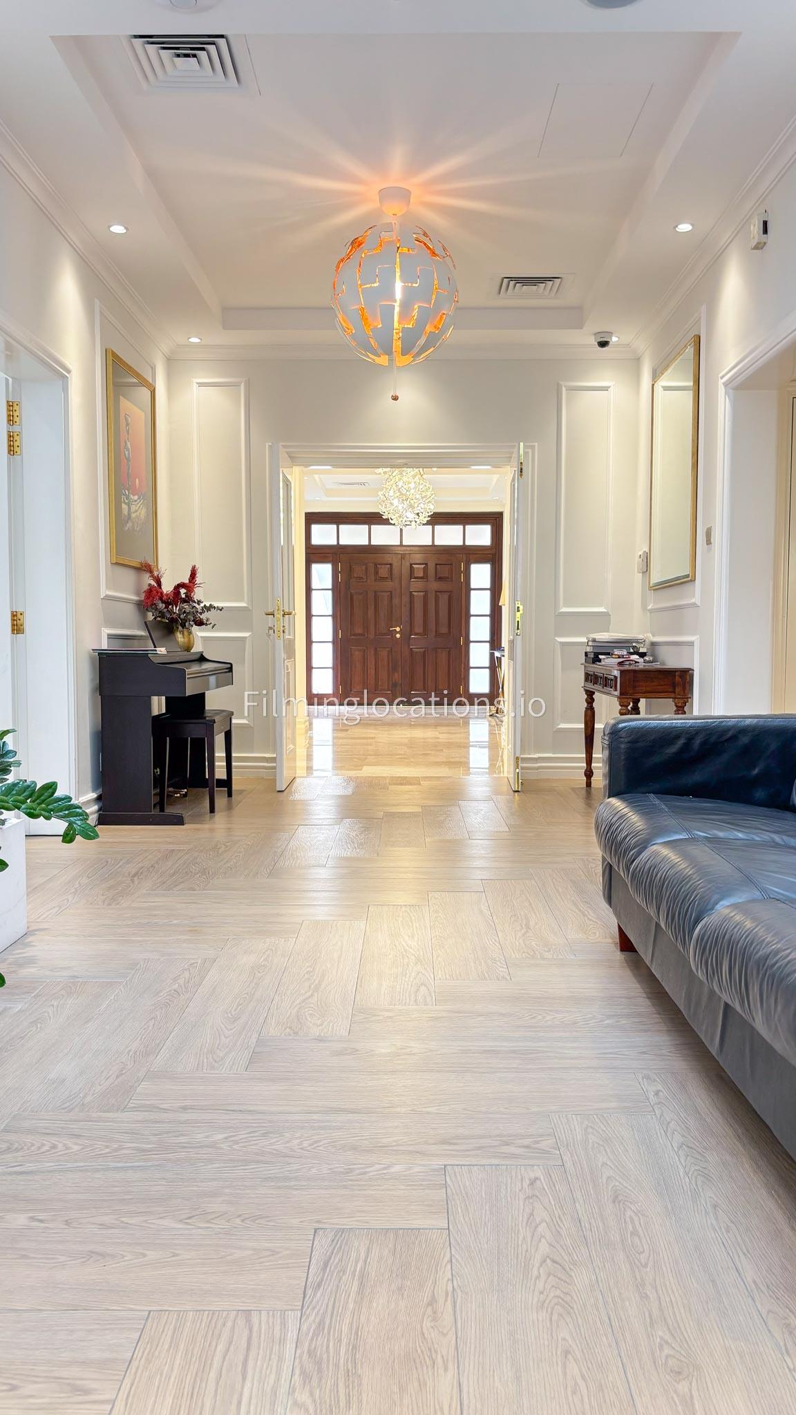 Our elegant three-story luxury villa is perfect for film shoots needing a sophisticated setting. With 7 spacious bedrooms, 2 lounges, and a stylish dining room featuring beautiful chandeliers, the villa offers plenty of room for various scenes. The open-plan layout includes a large kitchen with a central island, ideal for cooking or social scenes. Outside, the villa boasts a spacious outdoor area with a landscaped garden and a large gazebo, perfect for filming outdoor events or relaxing moments. This villa's luxurious design and versatile spaces make it an excellent choice for any production looking to capture scenes of elegance and comfort. Villa also has a rooftop access.