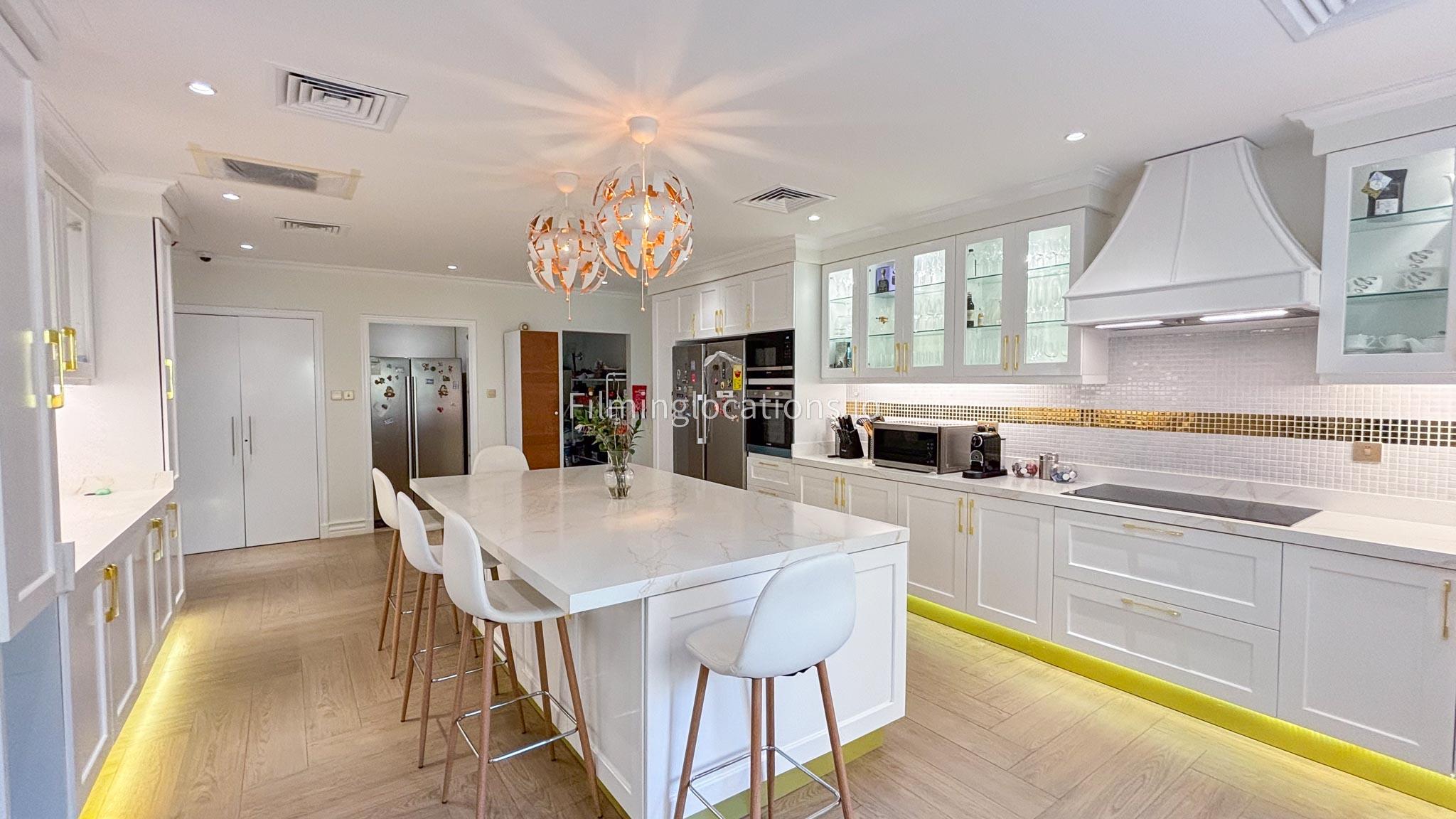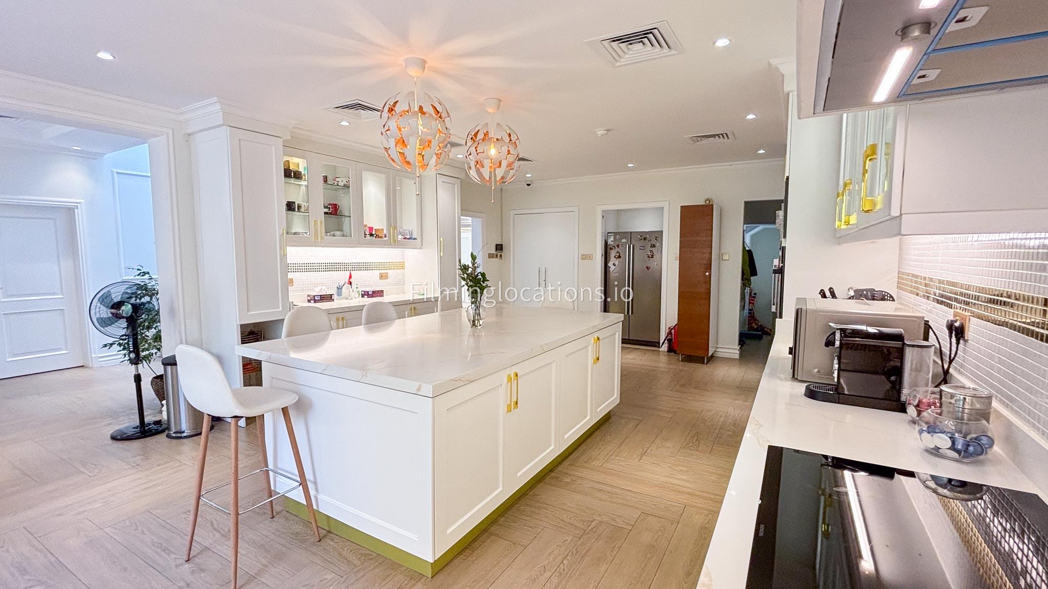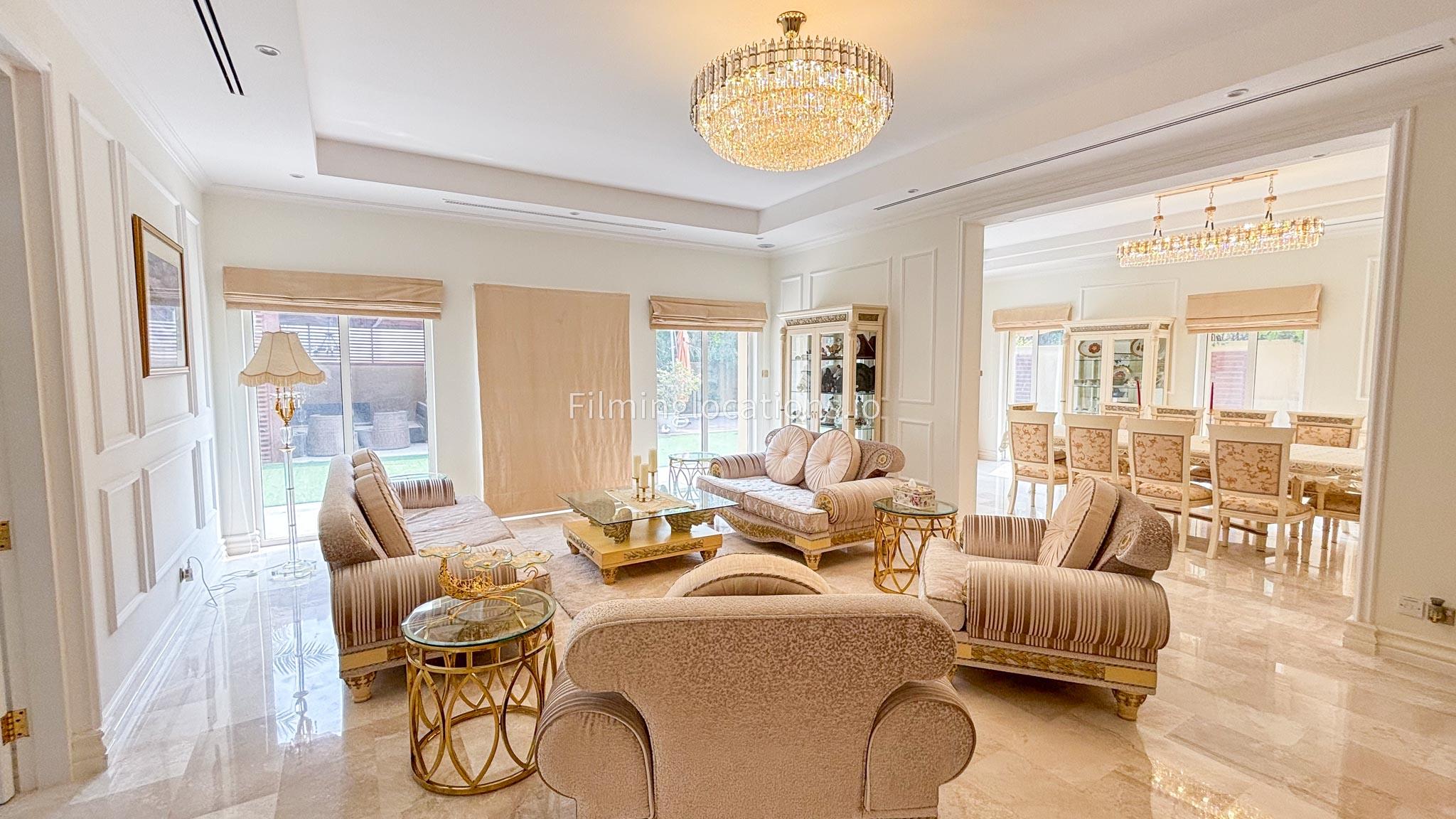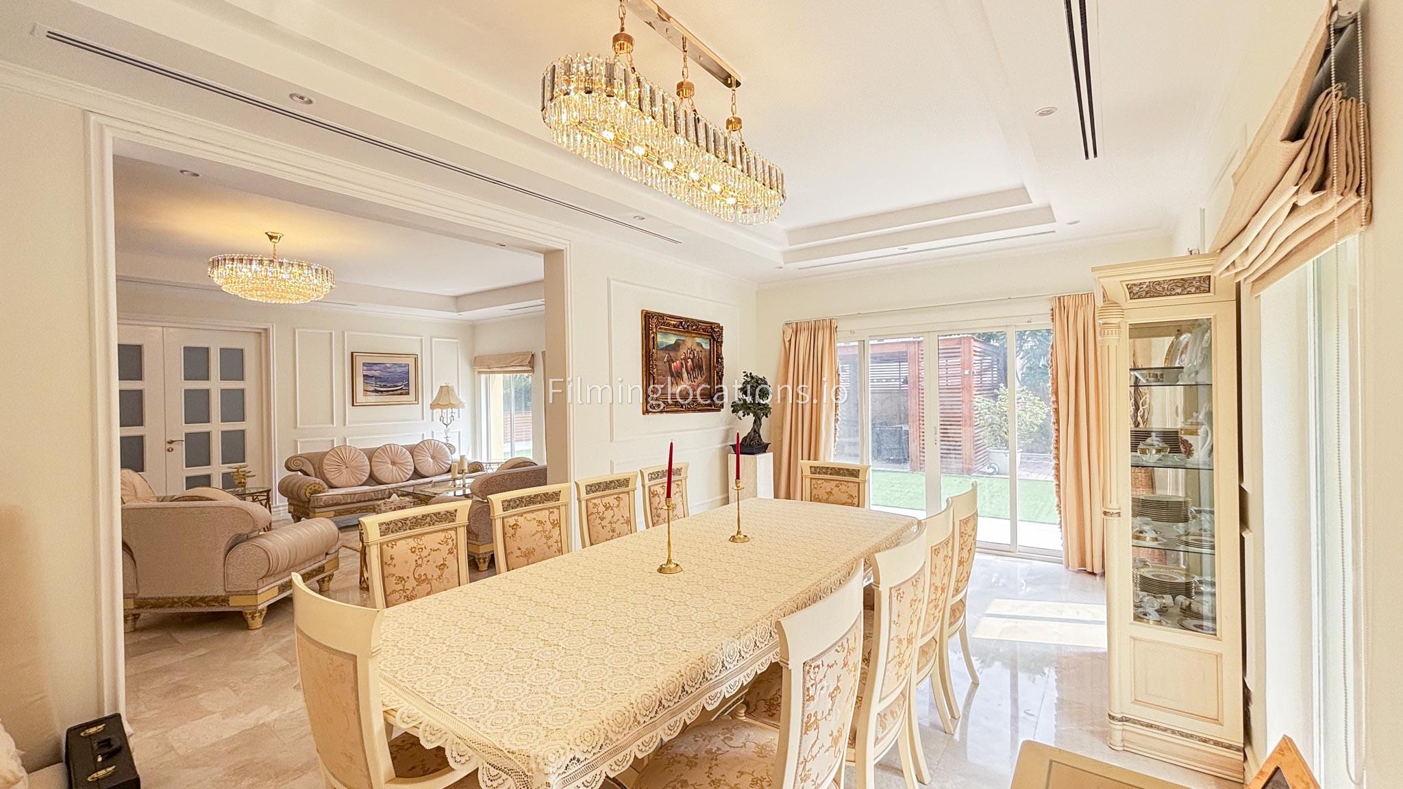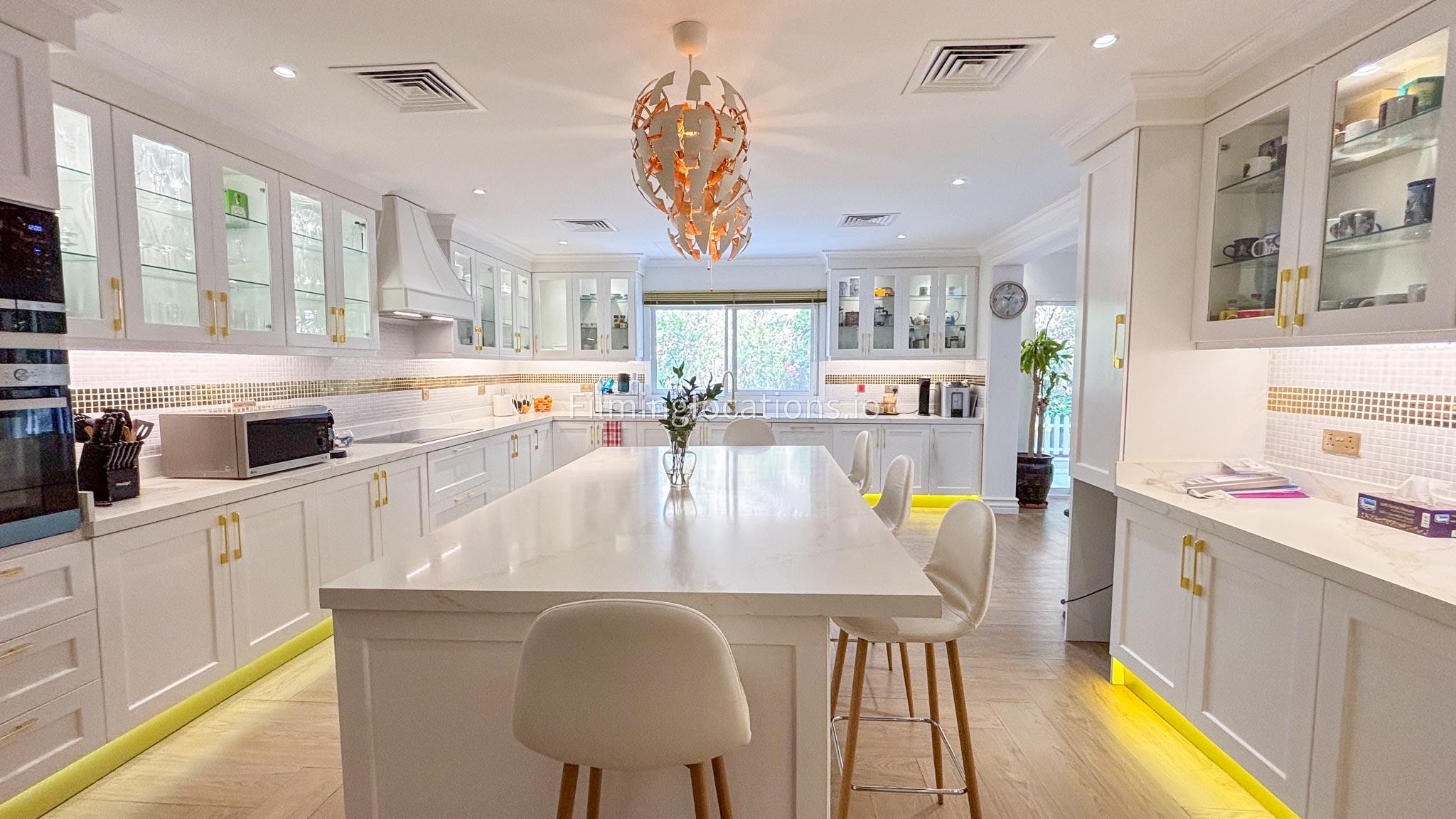 Our elegant three-story luxury villa is perfect for film shoots needing a sophisticated setting. With 7 spacious bedrooms, 2 lounges, and a stylish dining room featuring beautiful chandeliers, the villa offers plenty of room for various scenes. The open-plan layout includes a large kitchen with a central island, ideal for cooking or social scenes. Outside, the villa boasts a spacious outdoor area with a landscaped garden and a large gazebo, perfect for filming outdoor events or relaxing moments. This villa's luxurious design and versatile spaces make it an excellent choice for any production looking to capture scenes of elegance and comfort. Villa also has a rooftop access.
