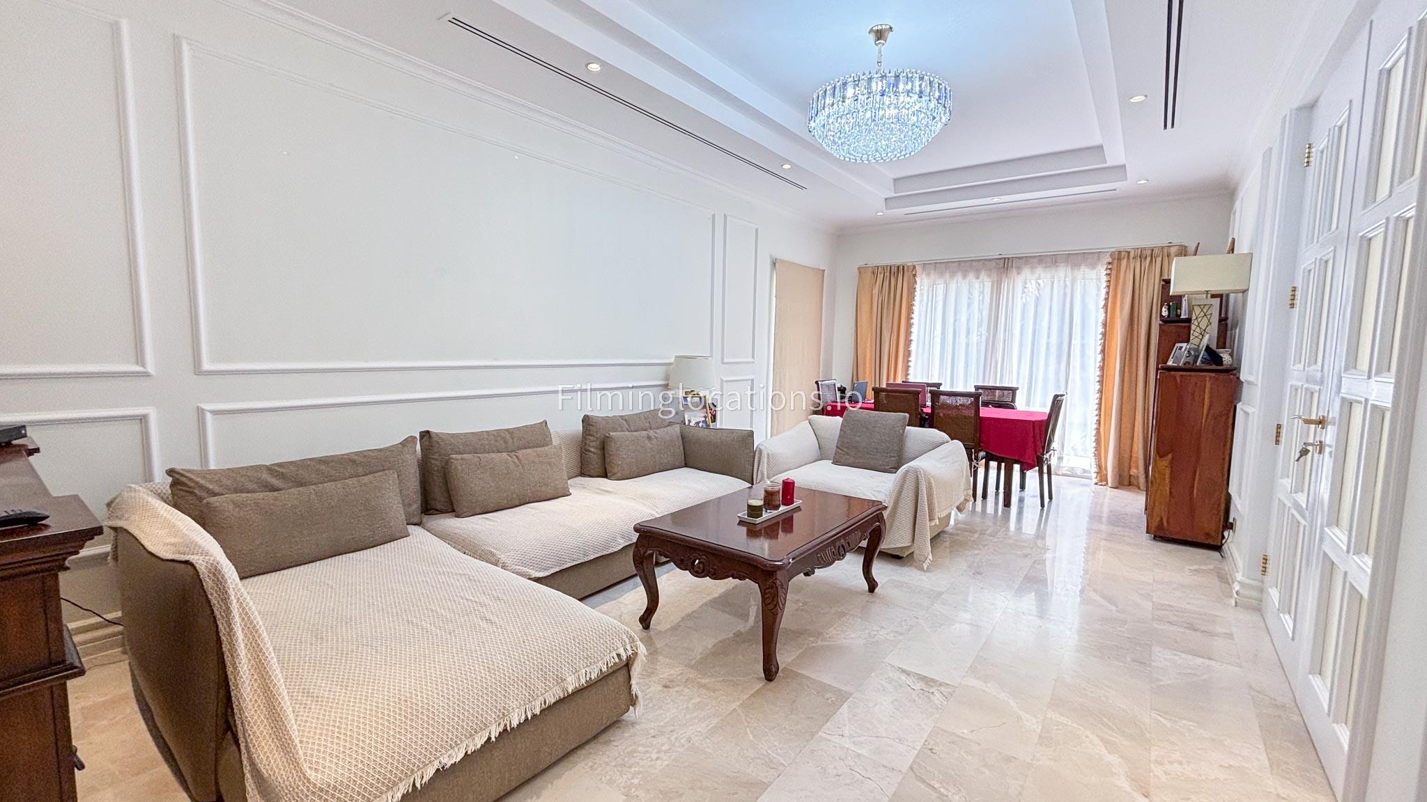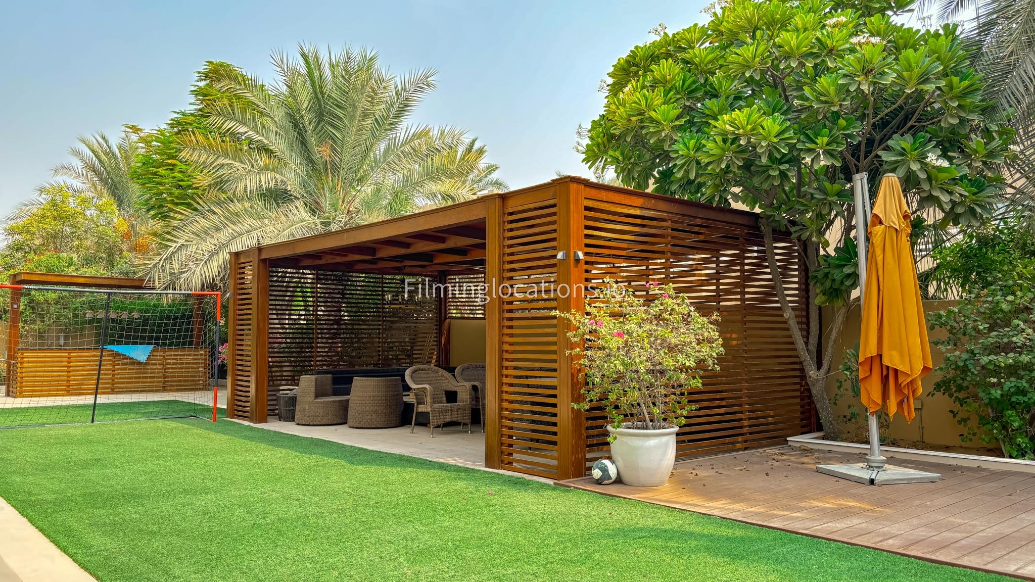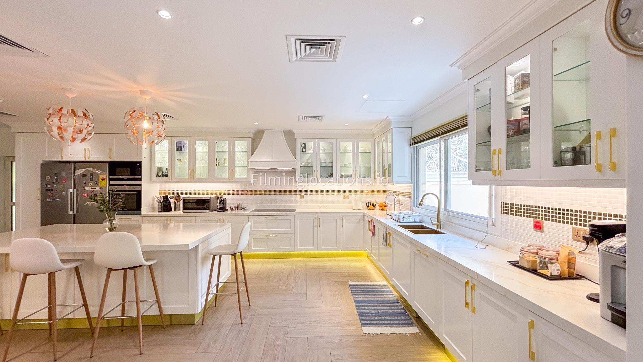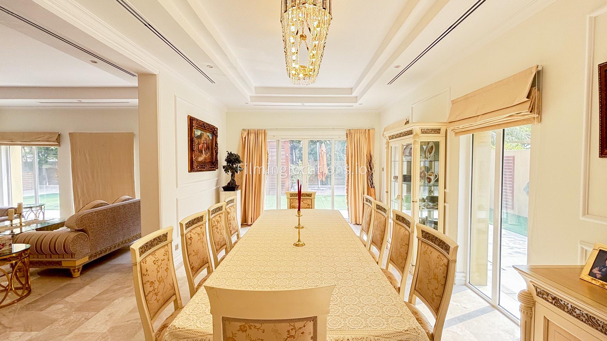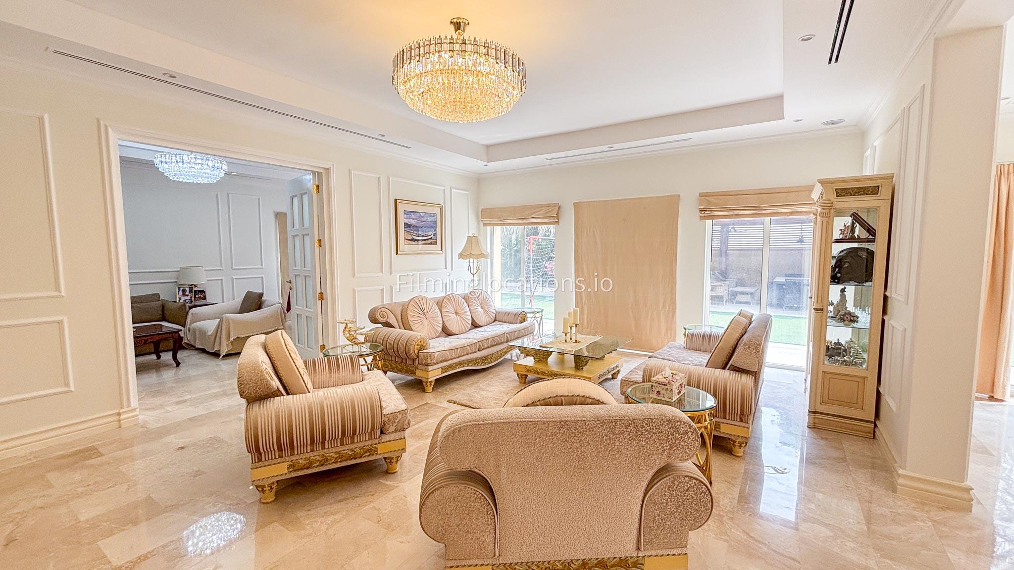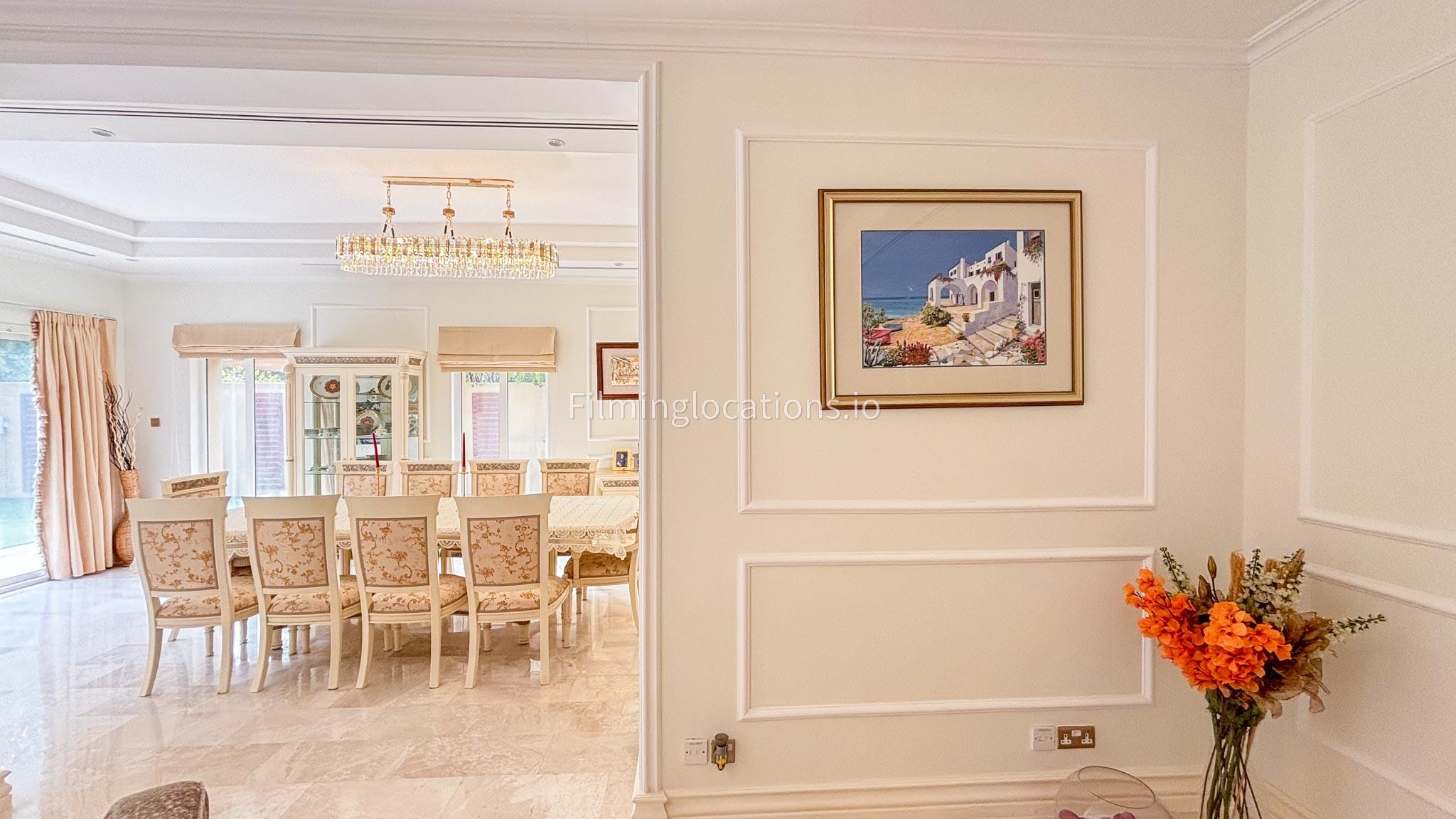 Our elegant three-story luxury villa is perfect for film shoots needing a sophisticated setting. With 7 spacious bedrooms, 2 lounges, and a stylish dining room featuring beautiful chandeliers, the villa offers plenty of room for various scenes. The open-plan layout includes a large kitchen with a central island, ideal for cooking or social scenes. Outside, the villa boasts a spacious outdoor area with a landscaped garden and a large gazebo, perfect for filming outdoor events or relaxing moments. This villa's luxurious design and versatile spaces make it an excellent choice for any production looking to capture scenes of elegance and comfort. Villa also has a rooftop access.