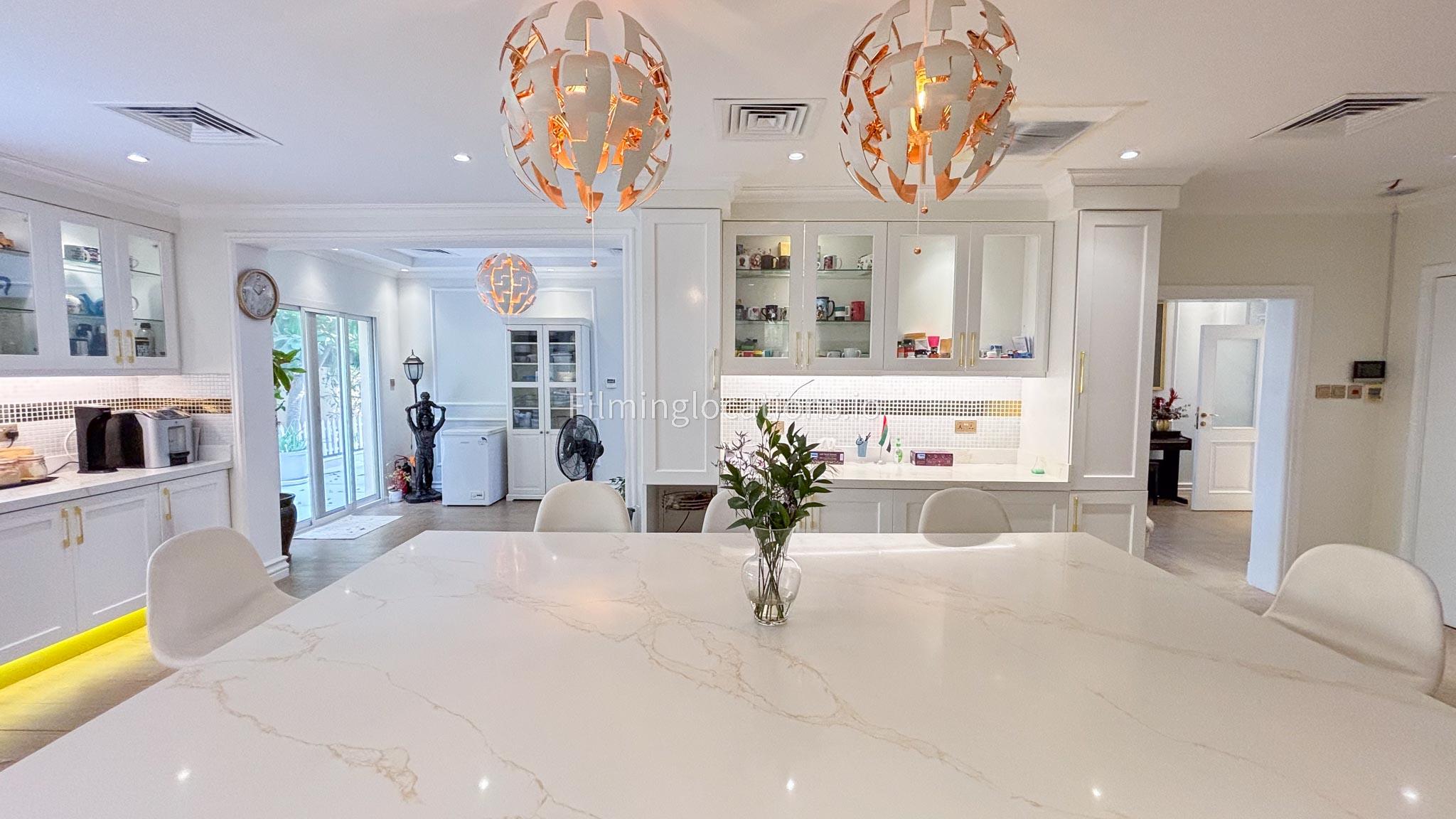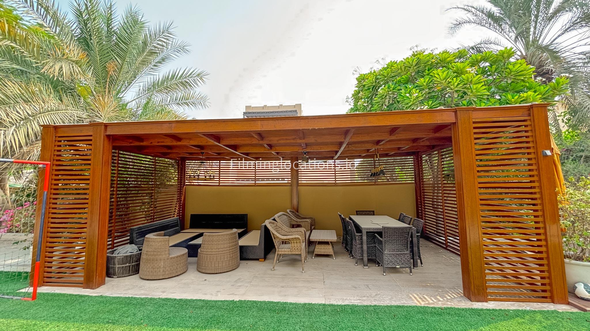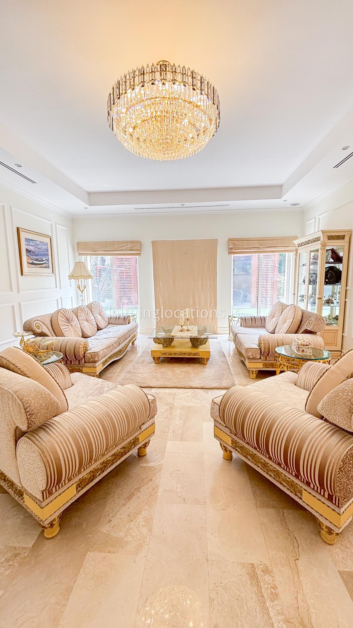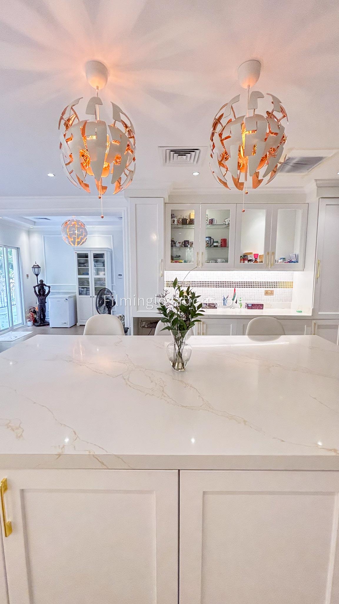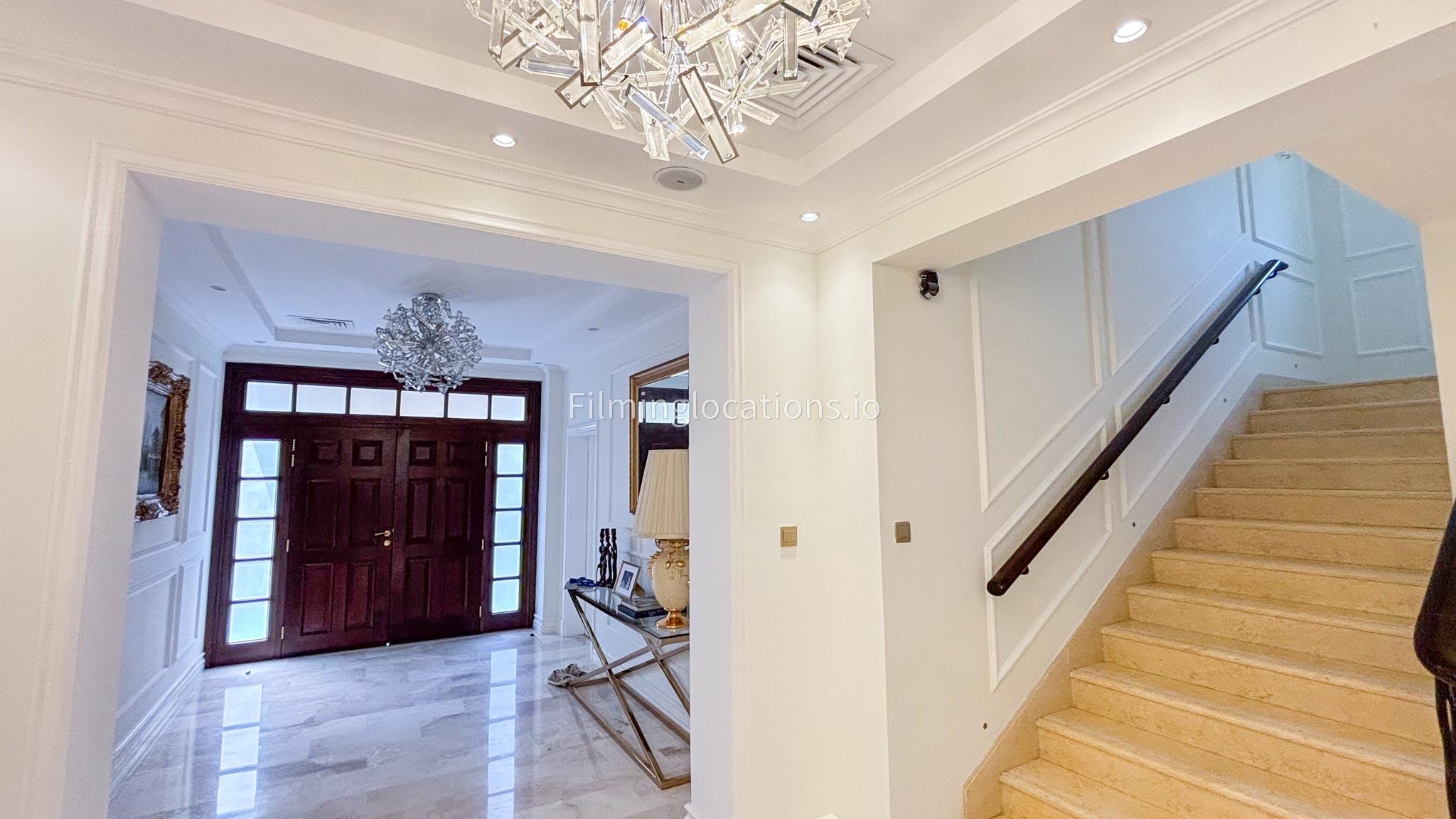 Our elegant three-story luxury villa is perfect for film shoots needing a sophisticated setting. With 7 spacious bedrooms, 2 lounges, and a stylish dining room featuring beautiful chandeliers, the villa offers plenty of room for various scenes. The open-plan layout includes a large kitchen with a central island, ideal for cooking or social scenes. Outside, the villa boasts a spacious outdoor area with a landscaped garden and a large gazebo, perfect for filming outdoor events or relaxing moments. This villa's luxurious design and versatile spaces make it an excellent choice for any production looking to capture scenes of elegance and comfort. Villa also has a rooftop access.