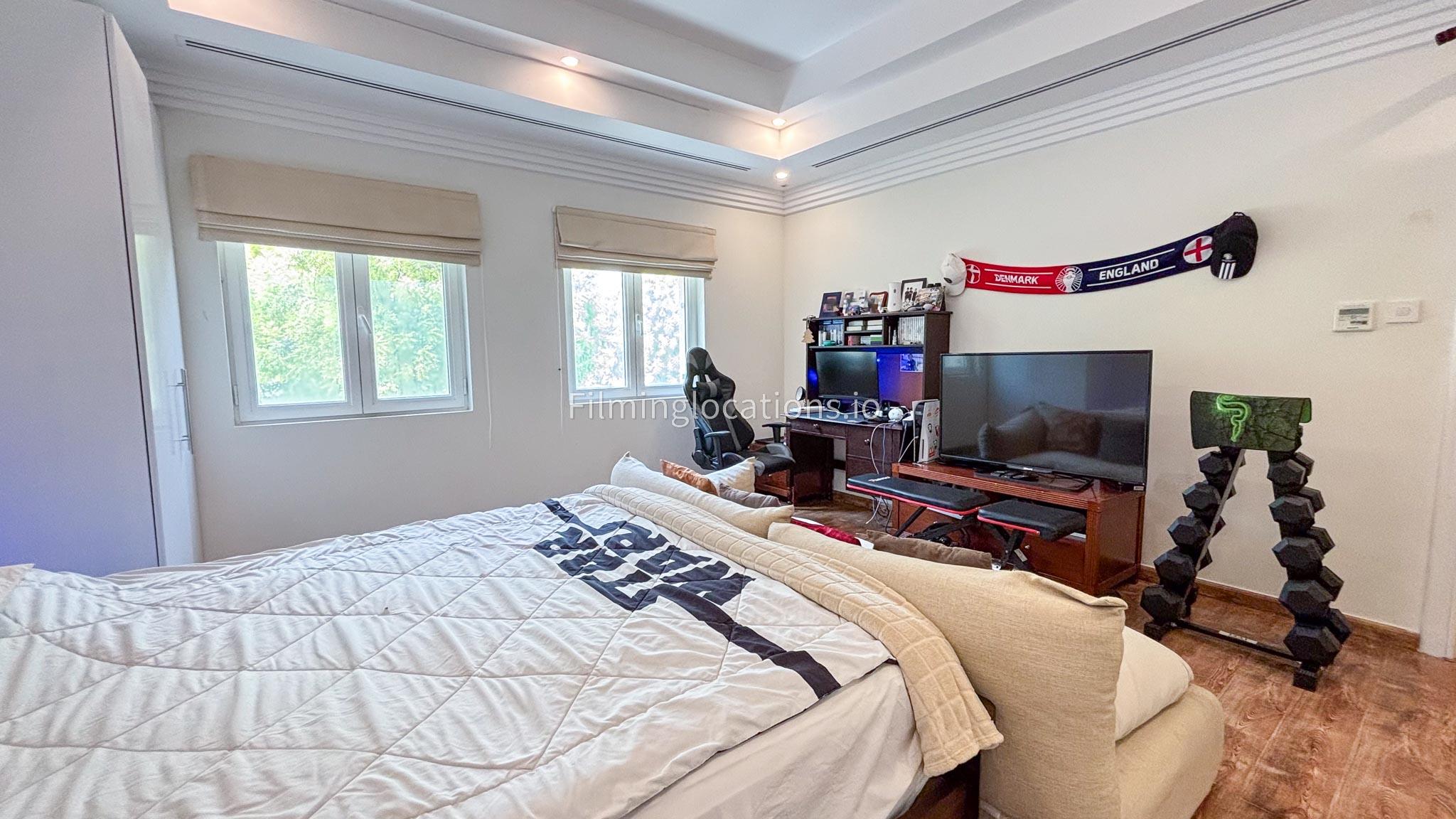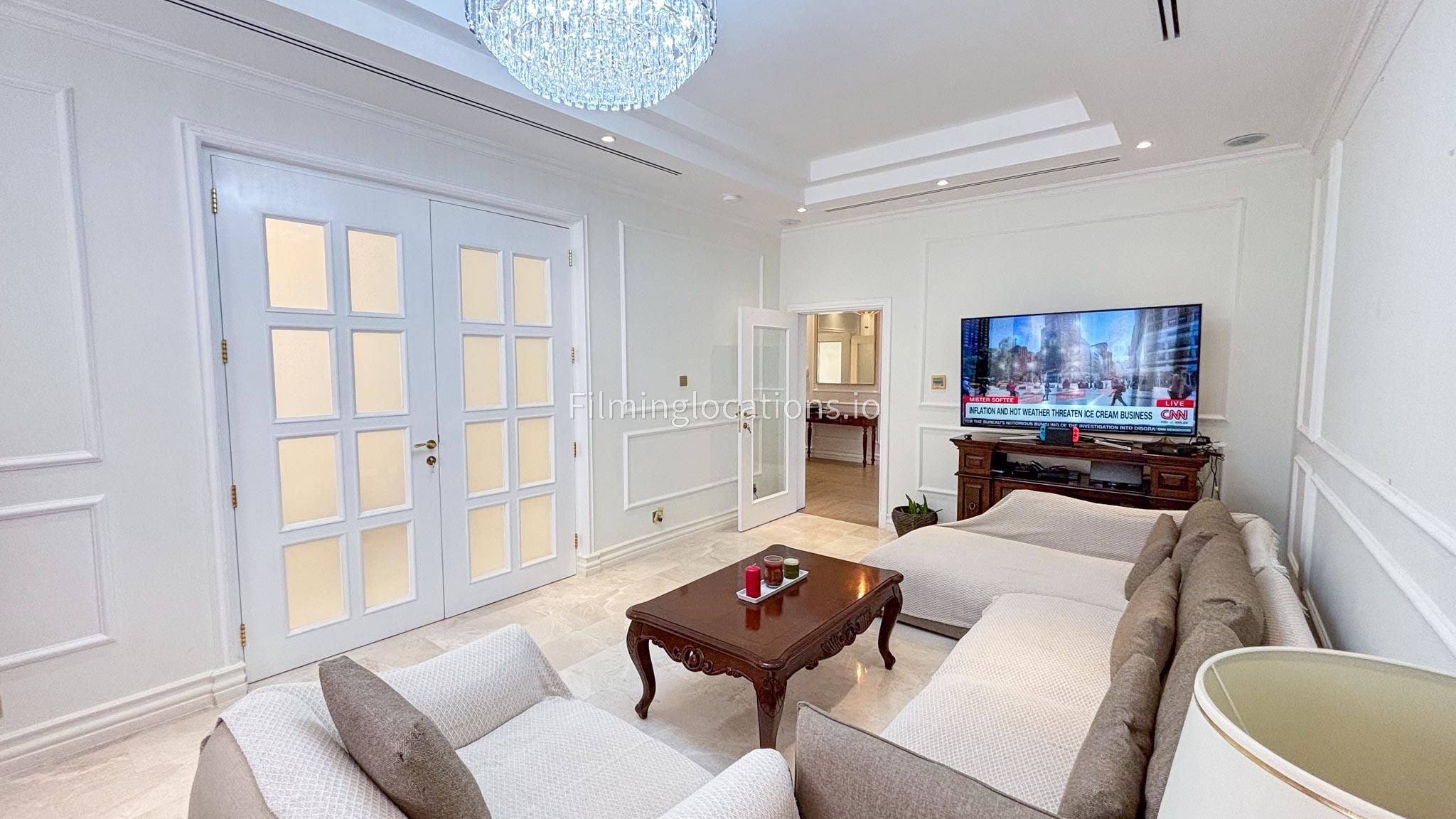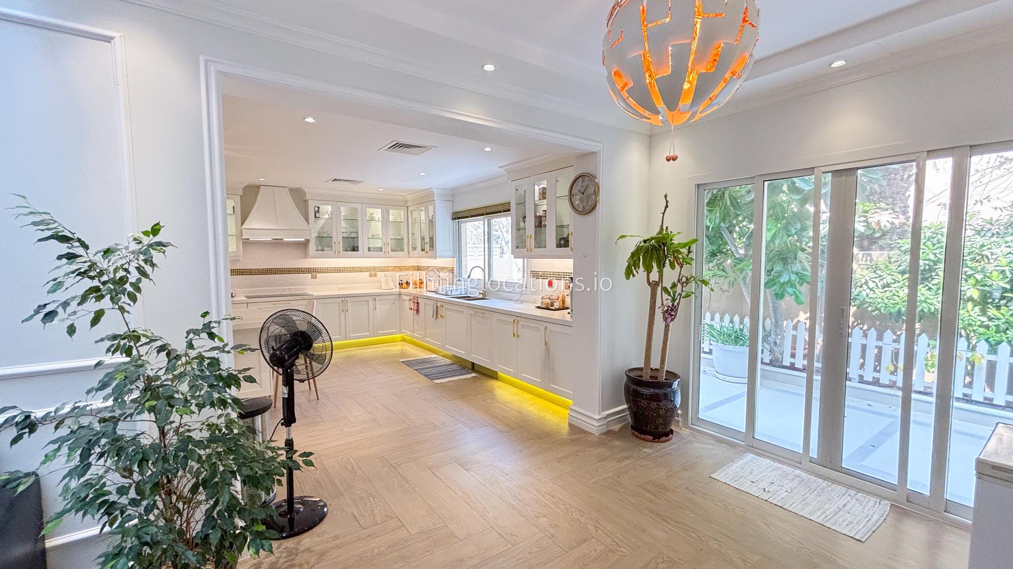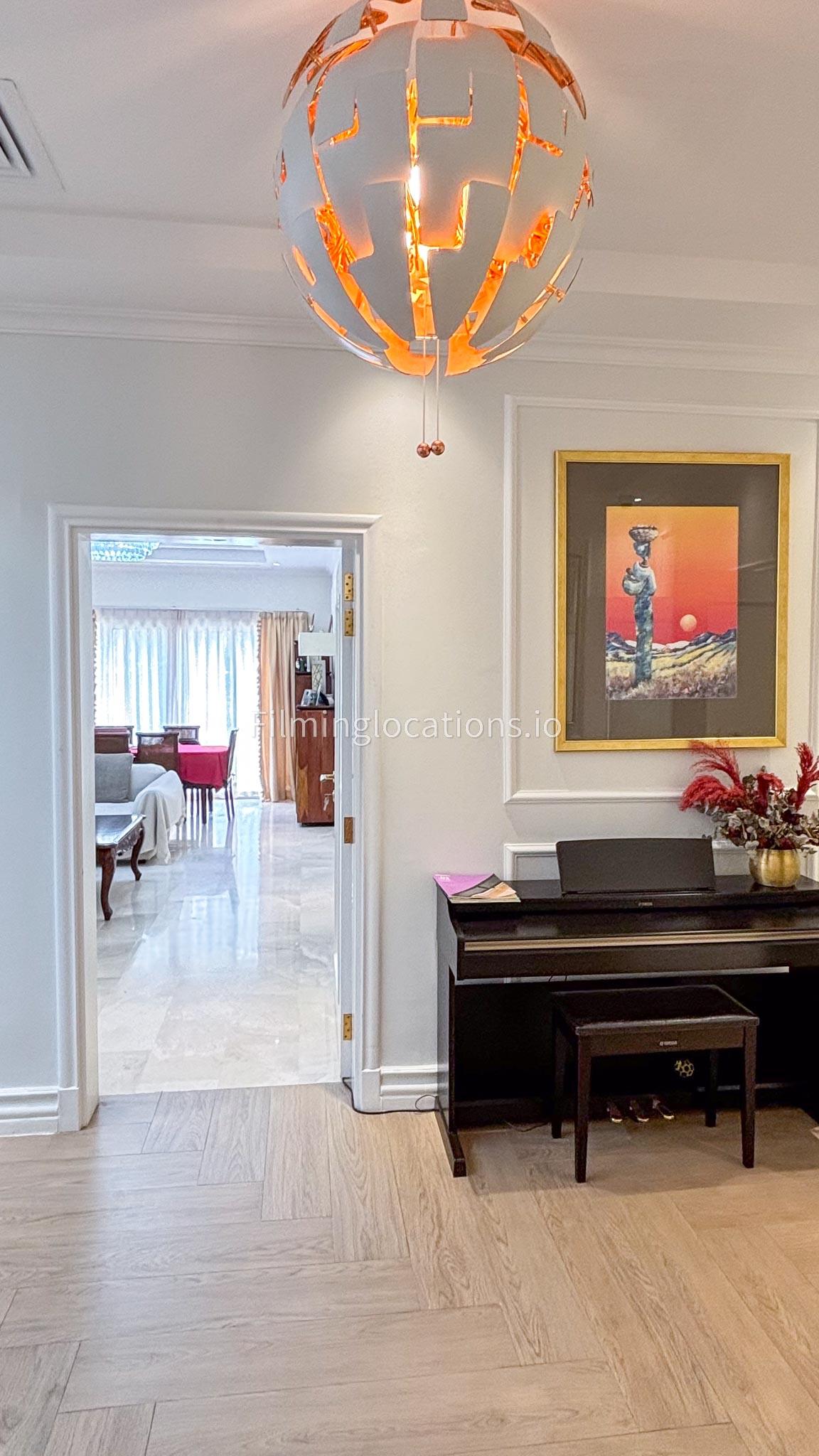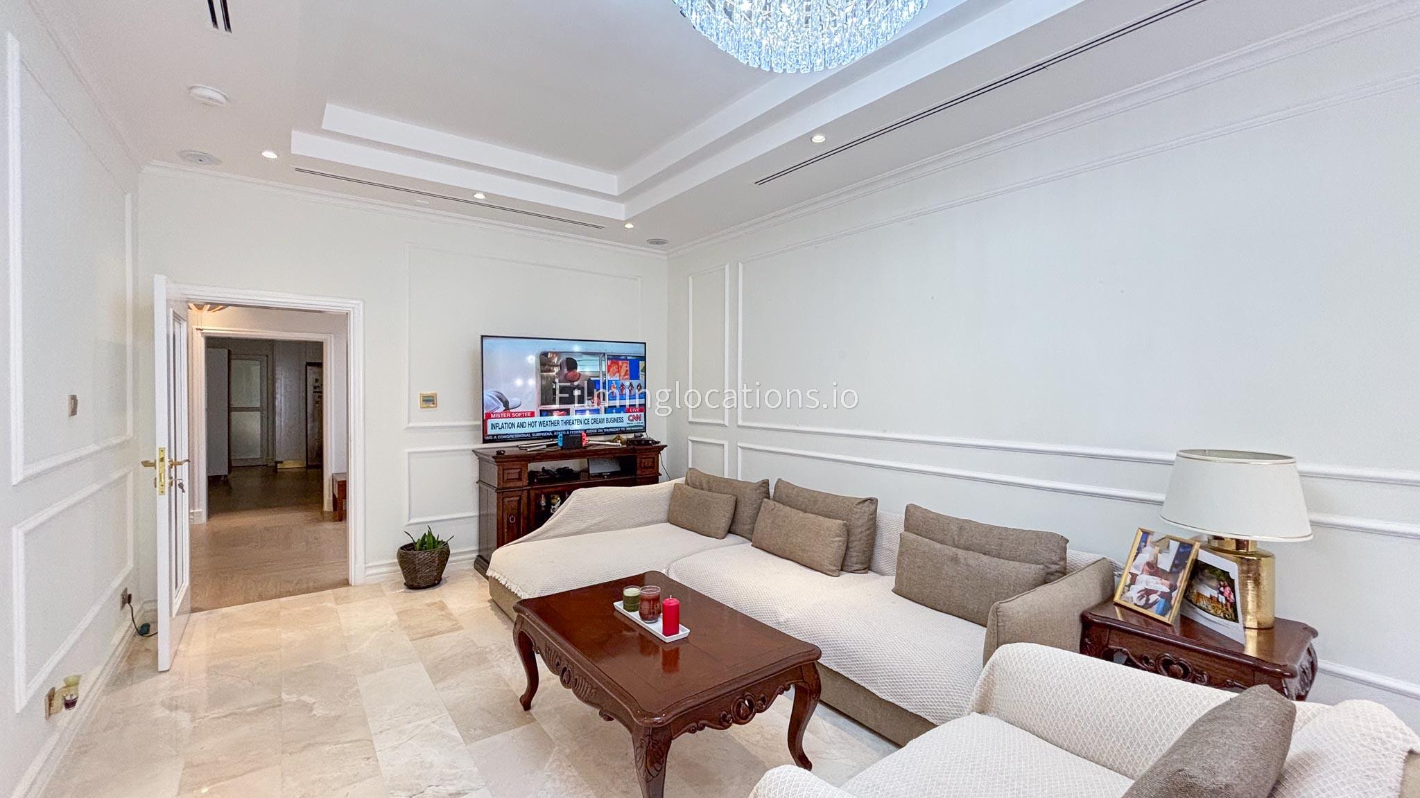 Our elegant three-story luxury villa is perfect for film shoots needing a sophisticated setting. With 7 spacious bedrooms, 2 lounges, and a stylish dining room featuring beautiful chandeliers, the villa offers plenty of room for various scenes. The open-plan layout includes a large kitchen with a central island, ideal for cooking or social scenes. Outside, the villa boasts a spacious outdoor area with a landscaped garden and a large gazebo, perfect for filming outdoor events or relaxing moments. This villa's luxurious design and versatile spaces make it an excellent choice for any production looking to capture scenes of elegance and comfort. Villa also has a rooftop access.