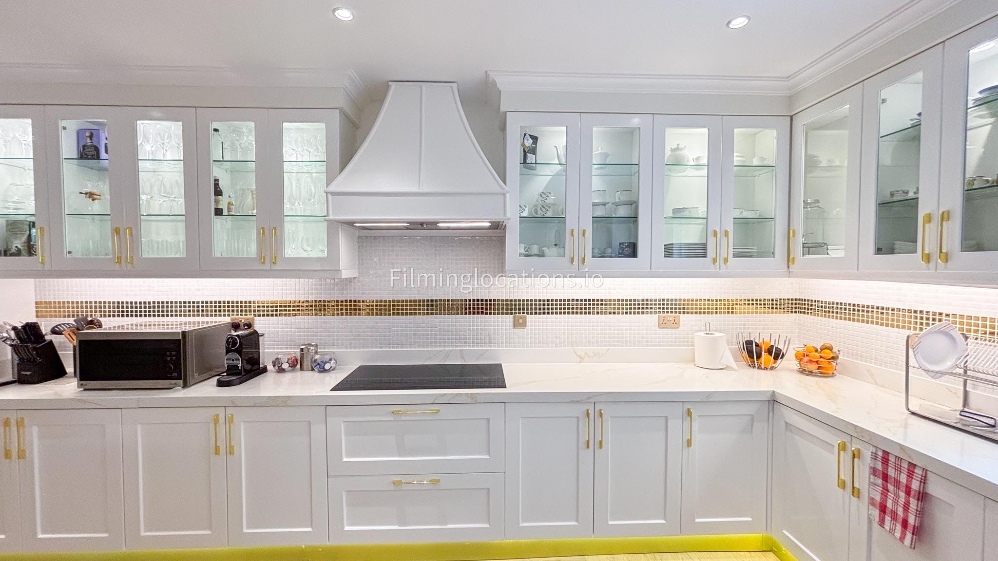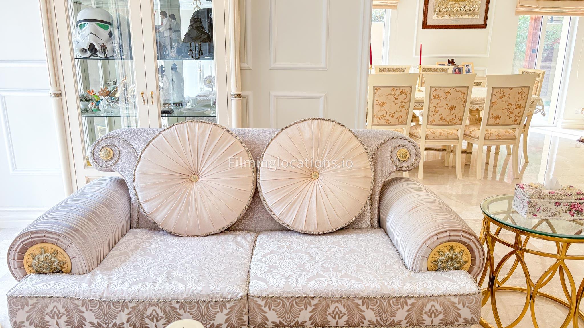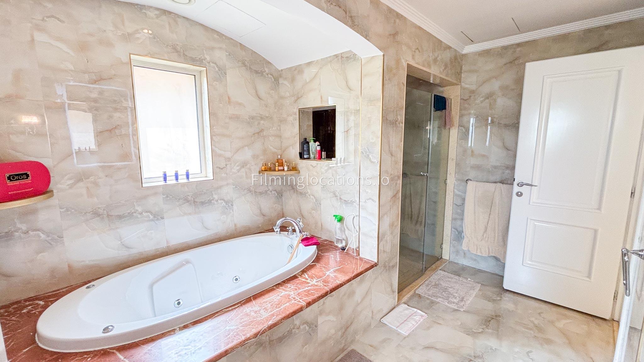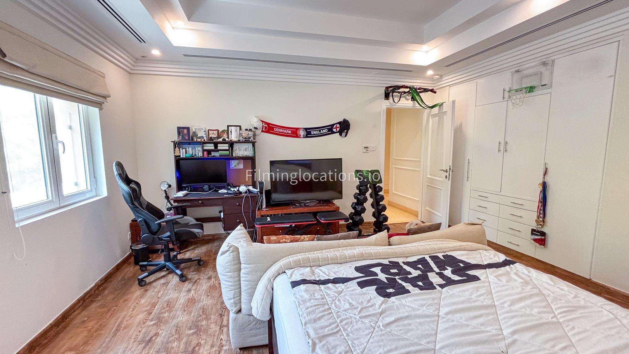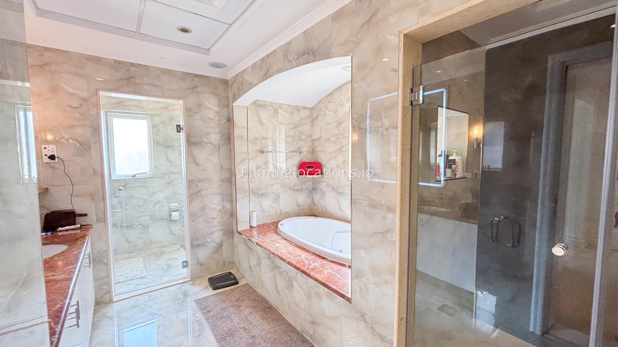 Our elegant three-story luxury villa is perfect for film shoots needing a sophisticated setting. With 7 spacious bedrooms, 2 lounges, and a stylish dining room featuring beautiful chandeliers, the villa offers plenty of room for various scenes. The open-plan layout includes a large kitchen with a central island, ideal for cooking or social scenes. Outside, the villa boasts a spacious outdoor area with a landscaped garden and a large gazebo, perfect for filming outdoor events or relaxing moments. This villa's luxurious design and versatile spaces make it an excellent choice for any production looking to capture scenes of elegance and comfort. Villa also has a rooftop access.