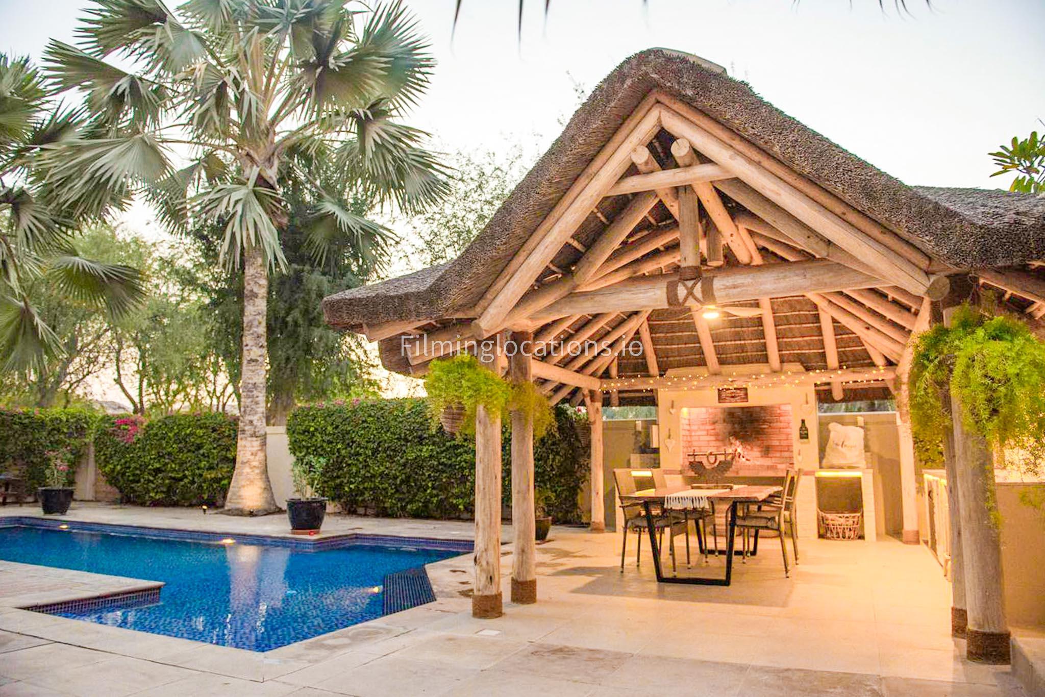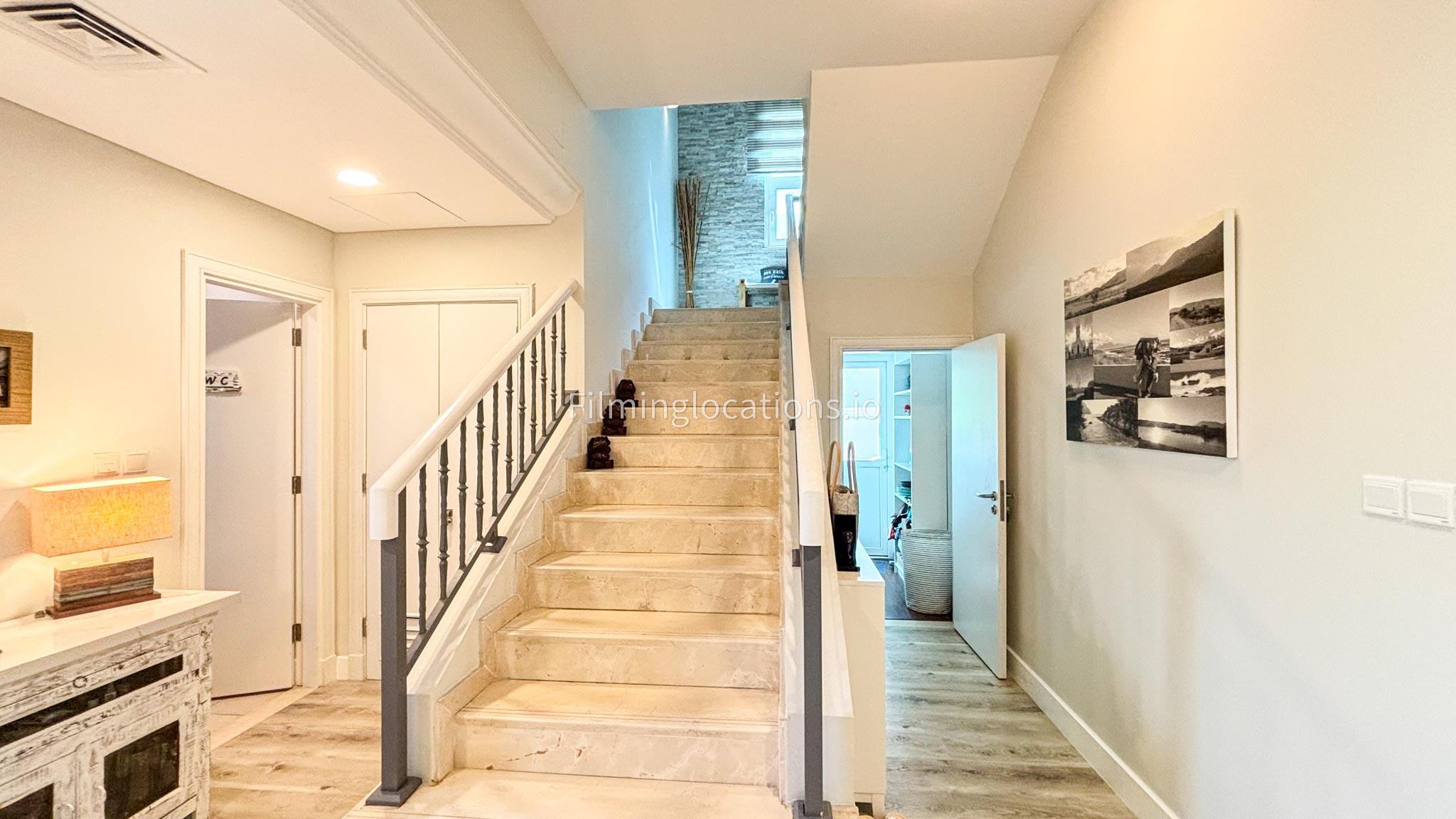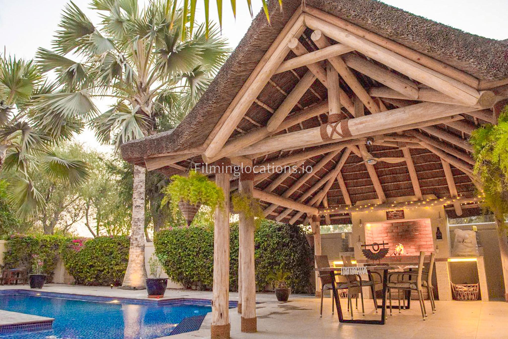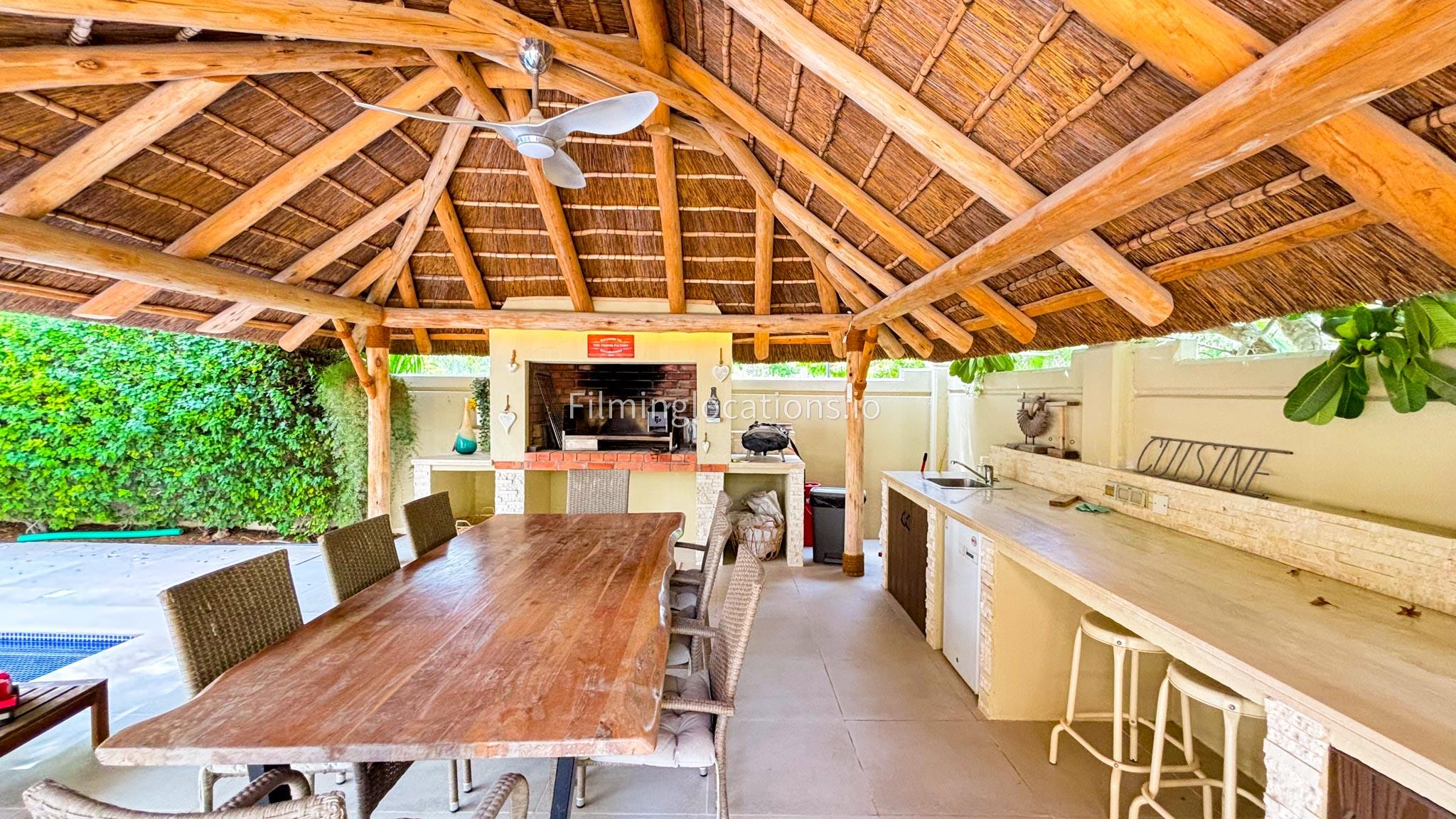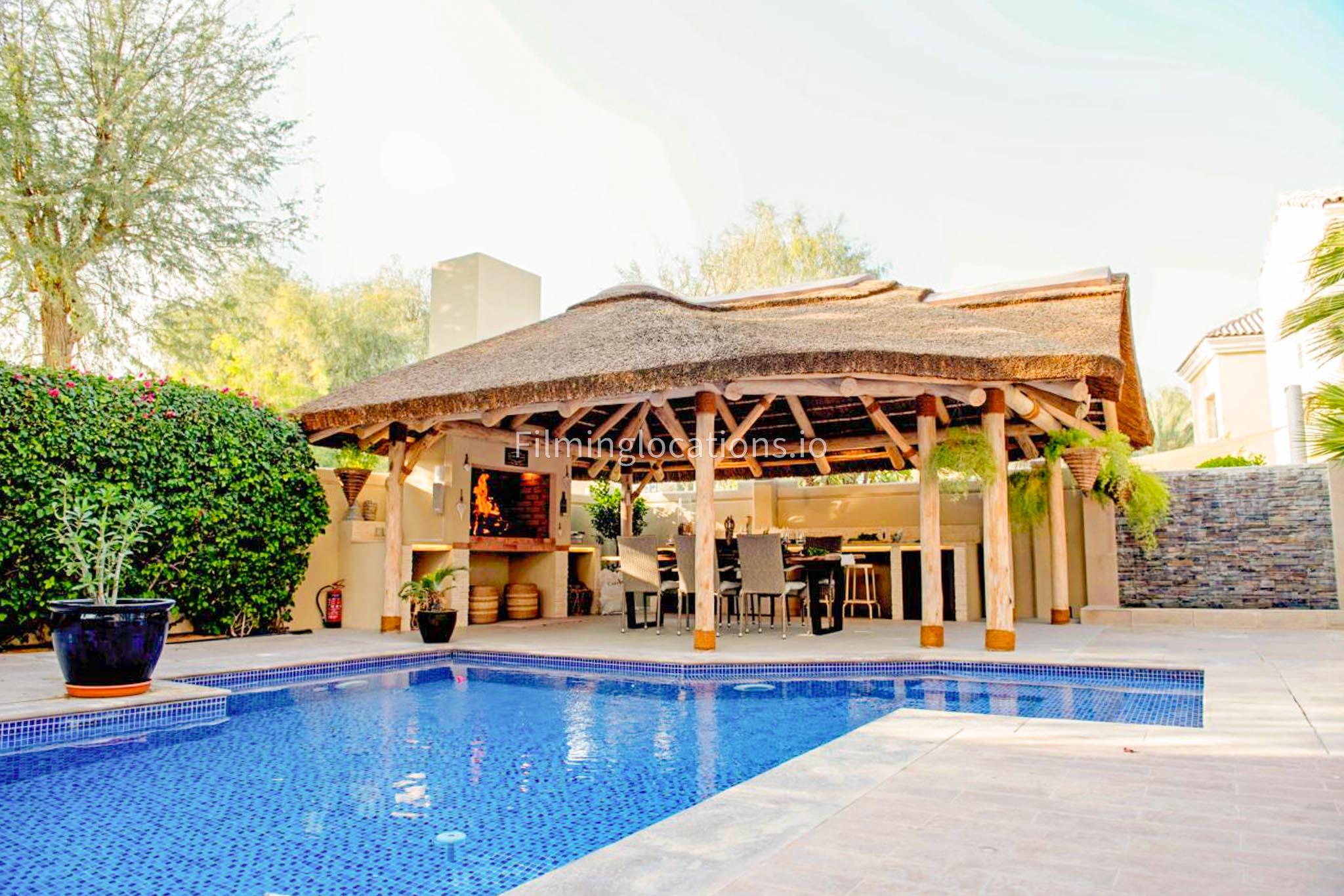 Our modern villa is perfect for film shoots, offering a range of great features. The large living room is bright and stylish, ideal for different types of scenes. The open kitchen, with a big island and connected dining area, is great for filming entertaining or family moments. The villa also includes a bar area inside and an outdoor sports bar with a TV for casual, social settings. Outside, there’s a cozy fireplace and a swimming pool, adding to the luxury. With a bedroom on the ground floor, this villa is a flexible and cinematic location for any project.