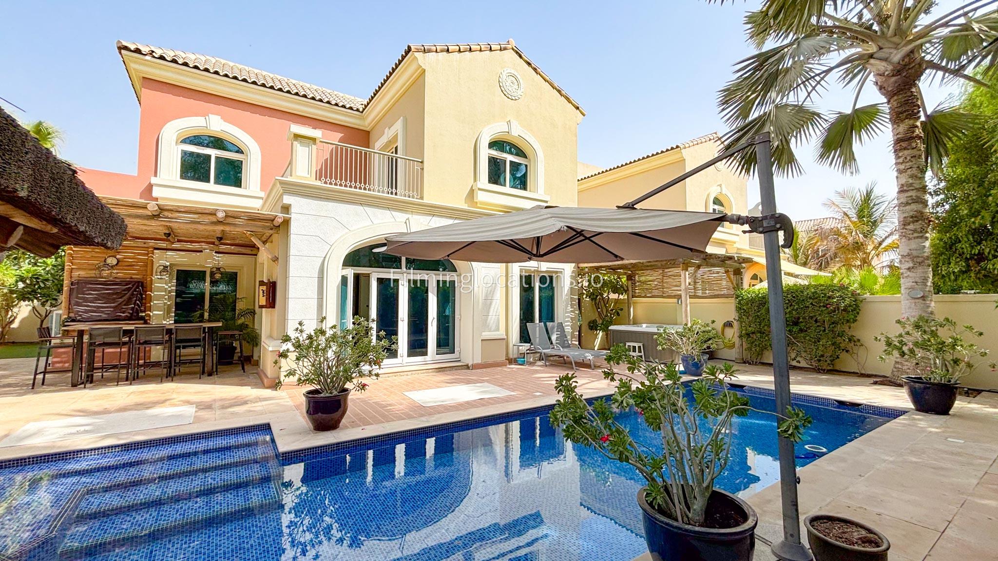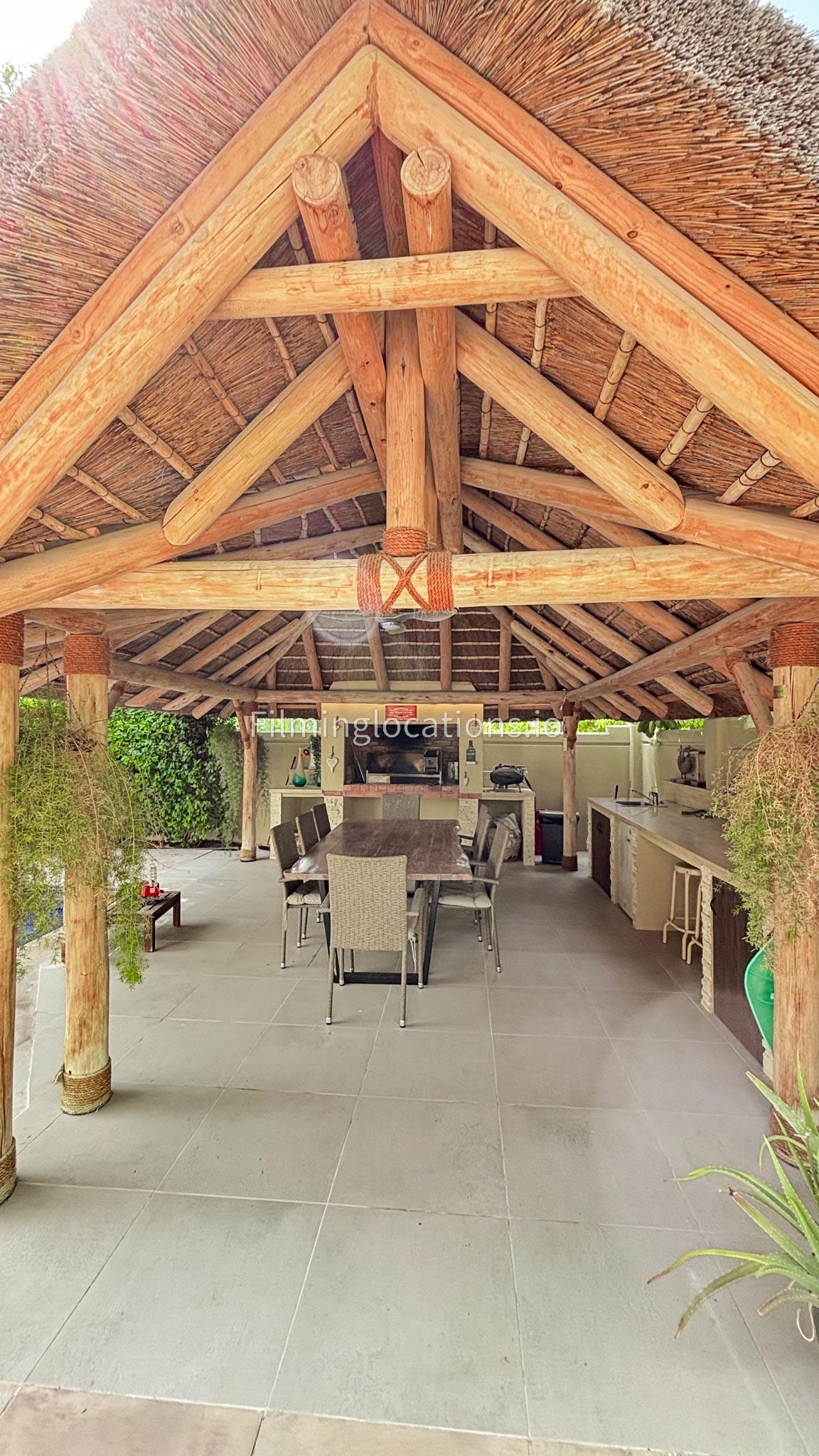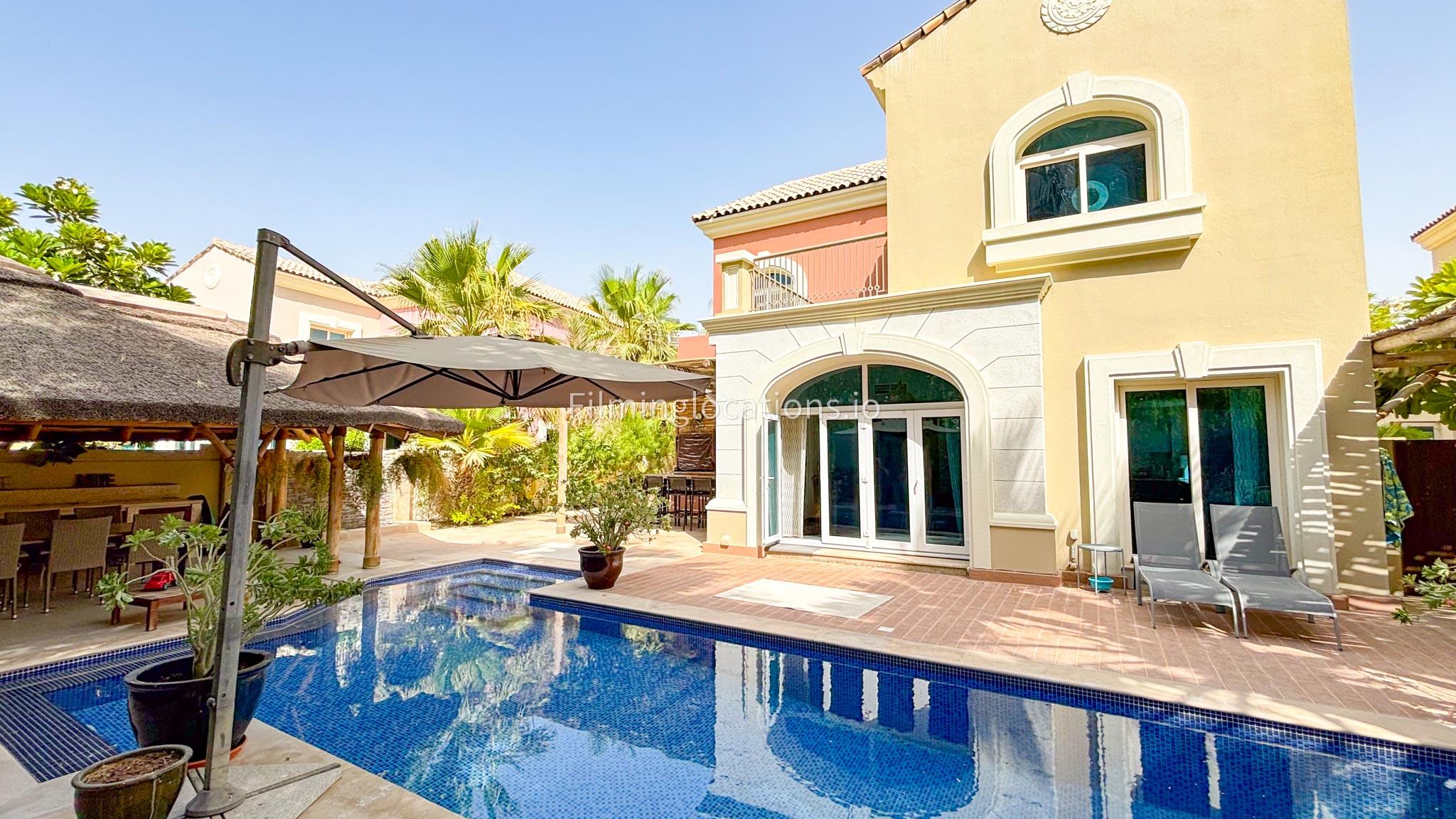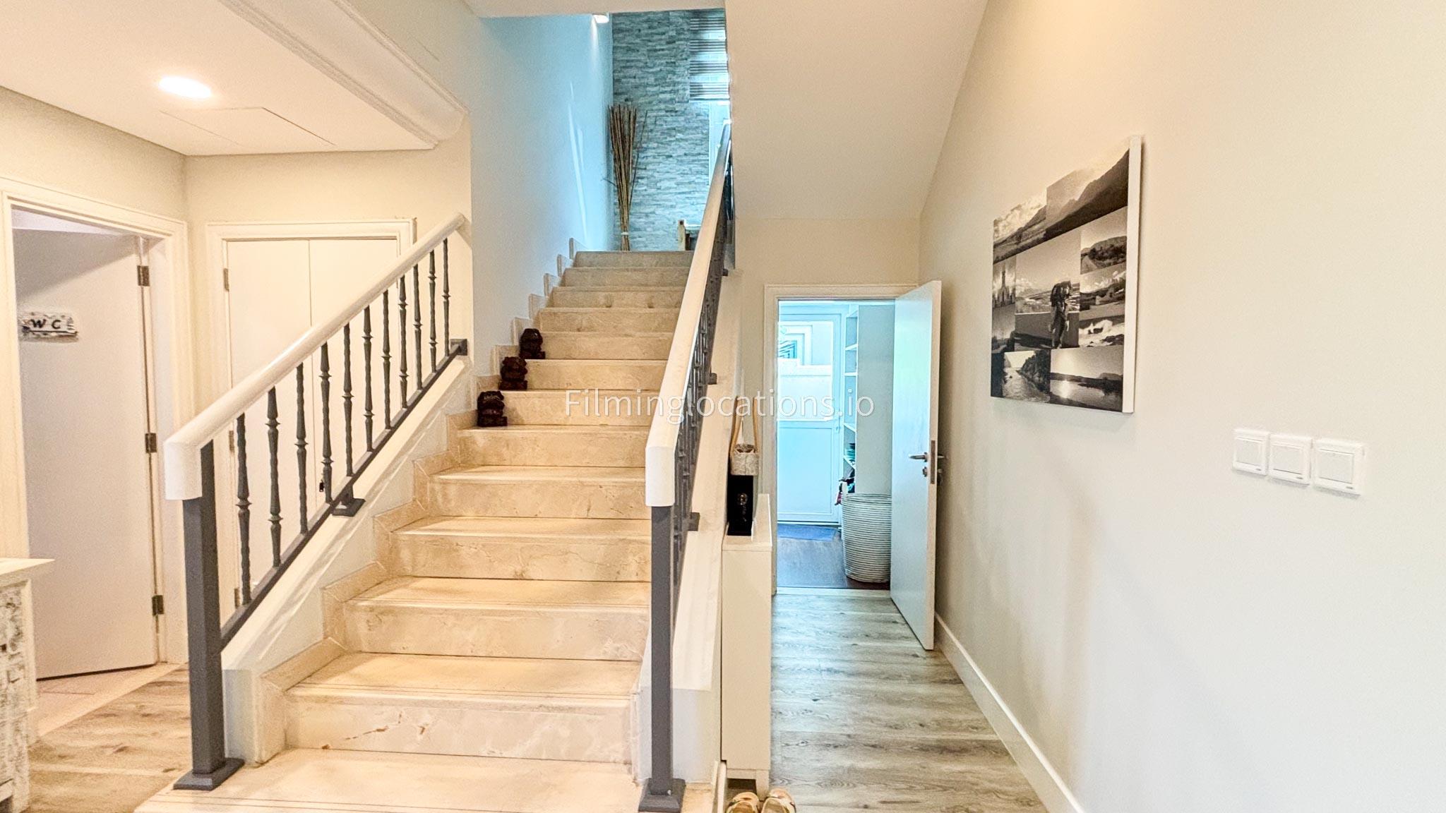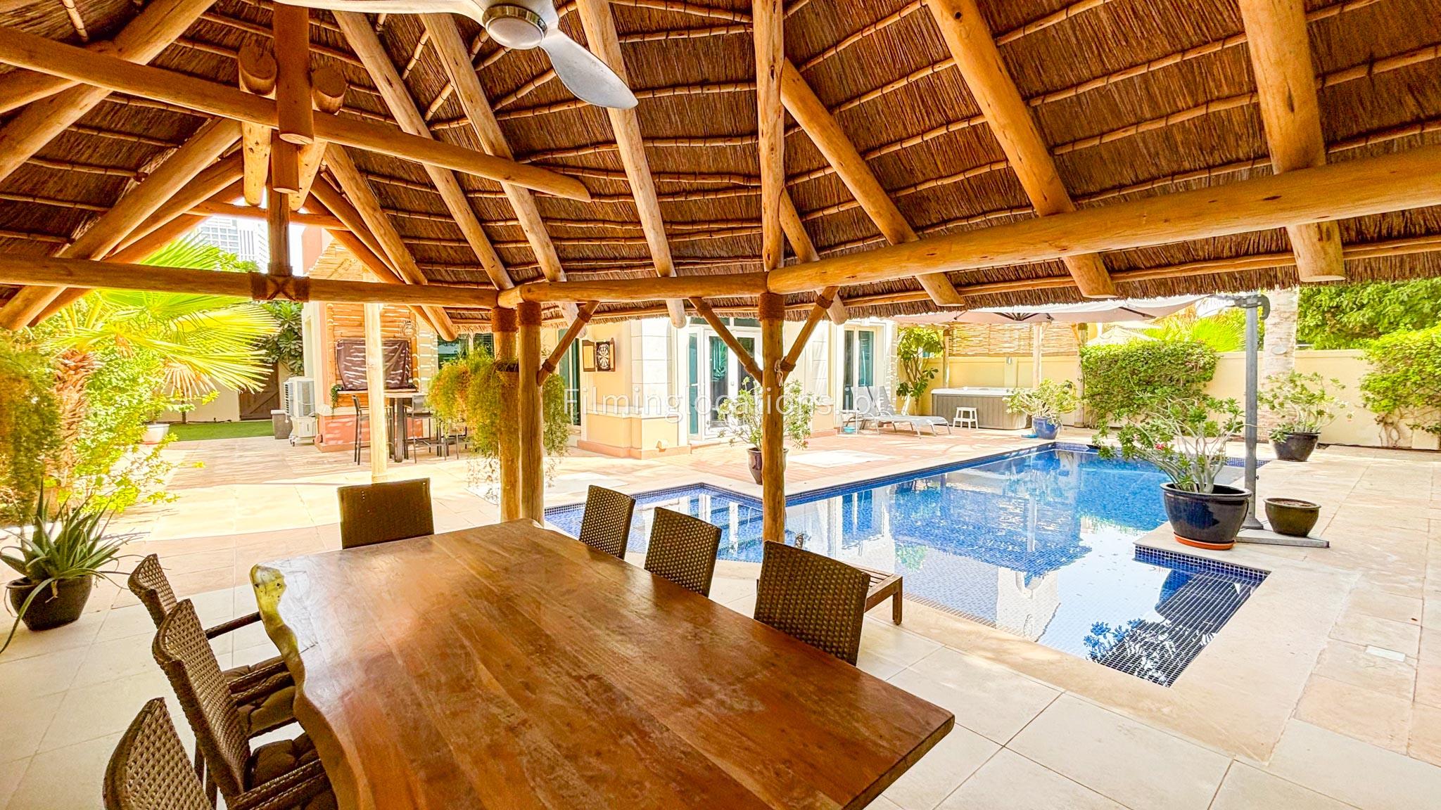 Our modern villa is perfect for film shoots, offering a range of great features. The large living room is bright and stylish, ideal for different types of scenes. The open kitchen, with a big island and connected dining area, is great for filming entertaining or family moments. The villa also includes a bar area inside and an outdoor sports bar with a TV for casual, social settings. Outside, there’s a cozy fireplace and a swimming pool, adding to the luxury. With a bedroom on the ground floor, this villa is a flexible and cinematic location for any project.