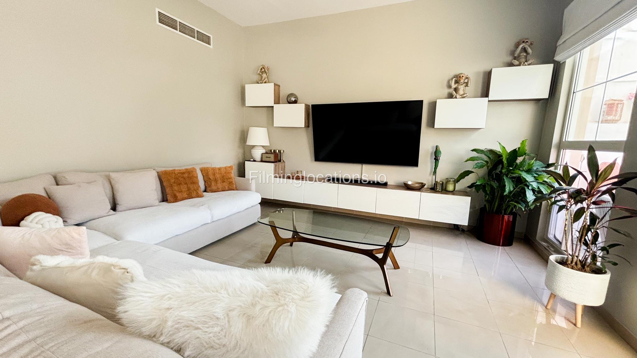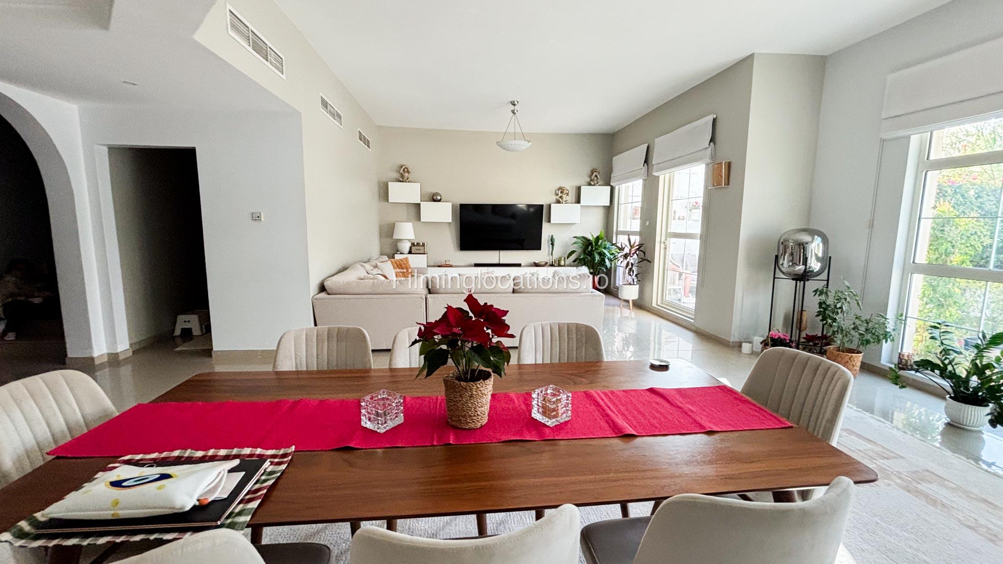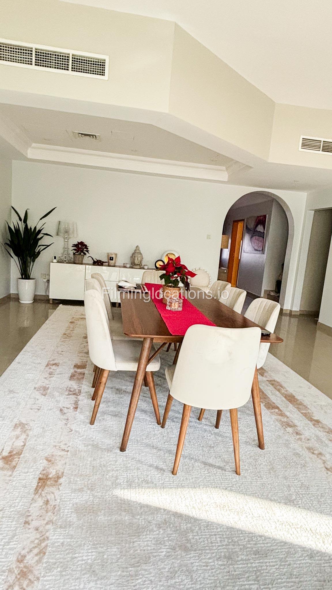 Our modern four-bedroom villa is a perfect location for film, TV, or fashion shoots. Located in the heart of Dubai, the villa offers a stunning skyline view and is equipped with high-end amenities such as a spacious open kitchen, large living area, and stylish furniture. The property also includes a private terrace with a garden, providing an excellent backdrop for outdoor shoots. Additionally, it features a balcony with a view of the Burj Khalifa, making it ideal for scenes requiring iconic Dubai scenery. The villa comfortably accommodates up to 50 people, ensuring ample space for production teams and equipment.