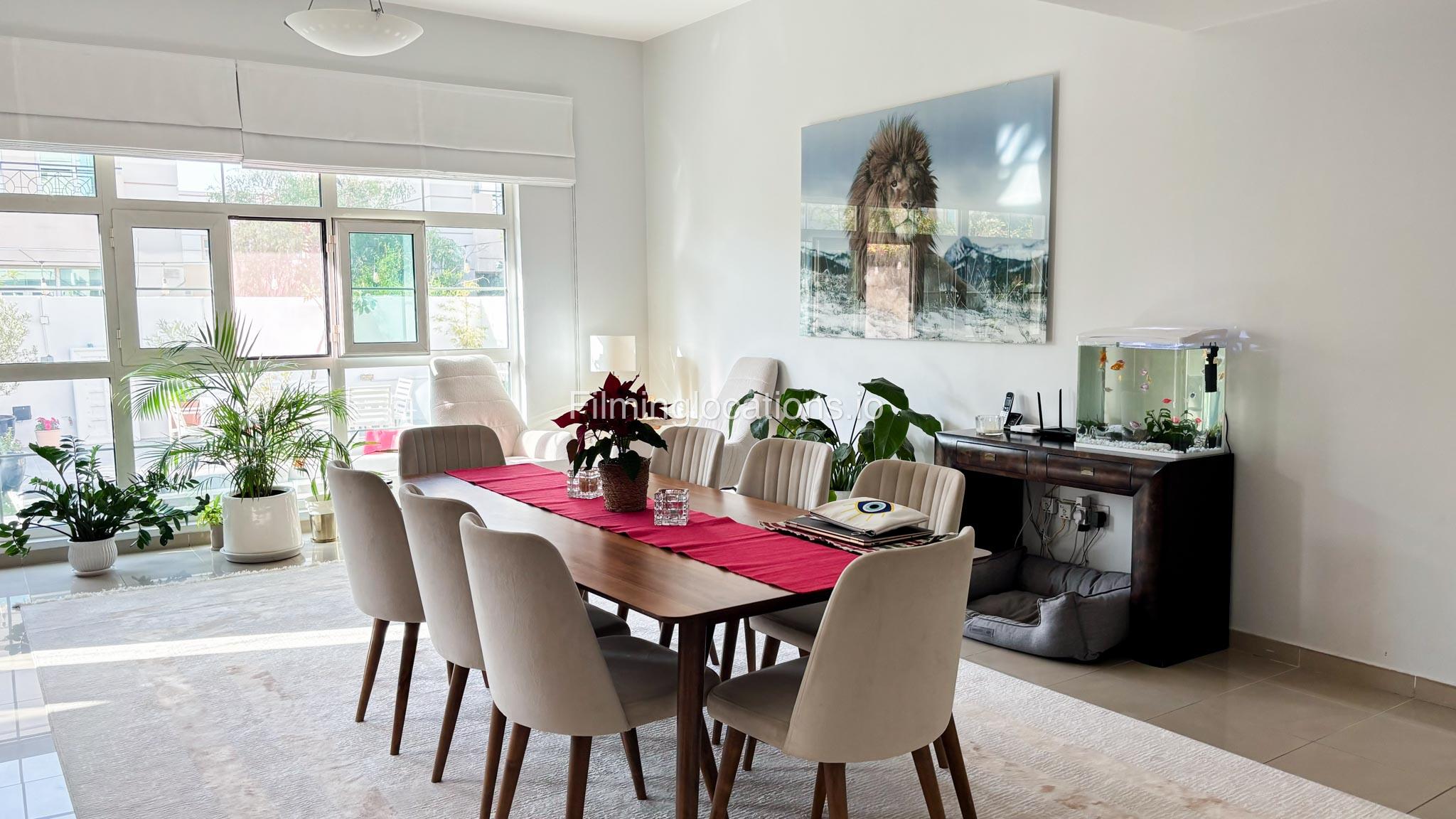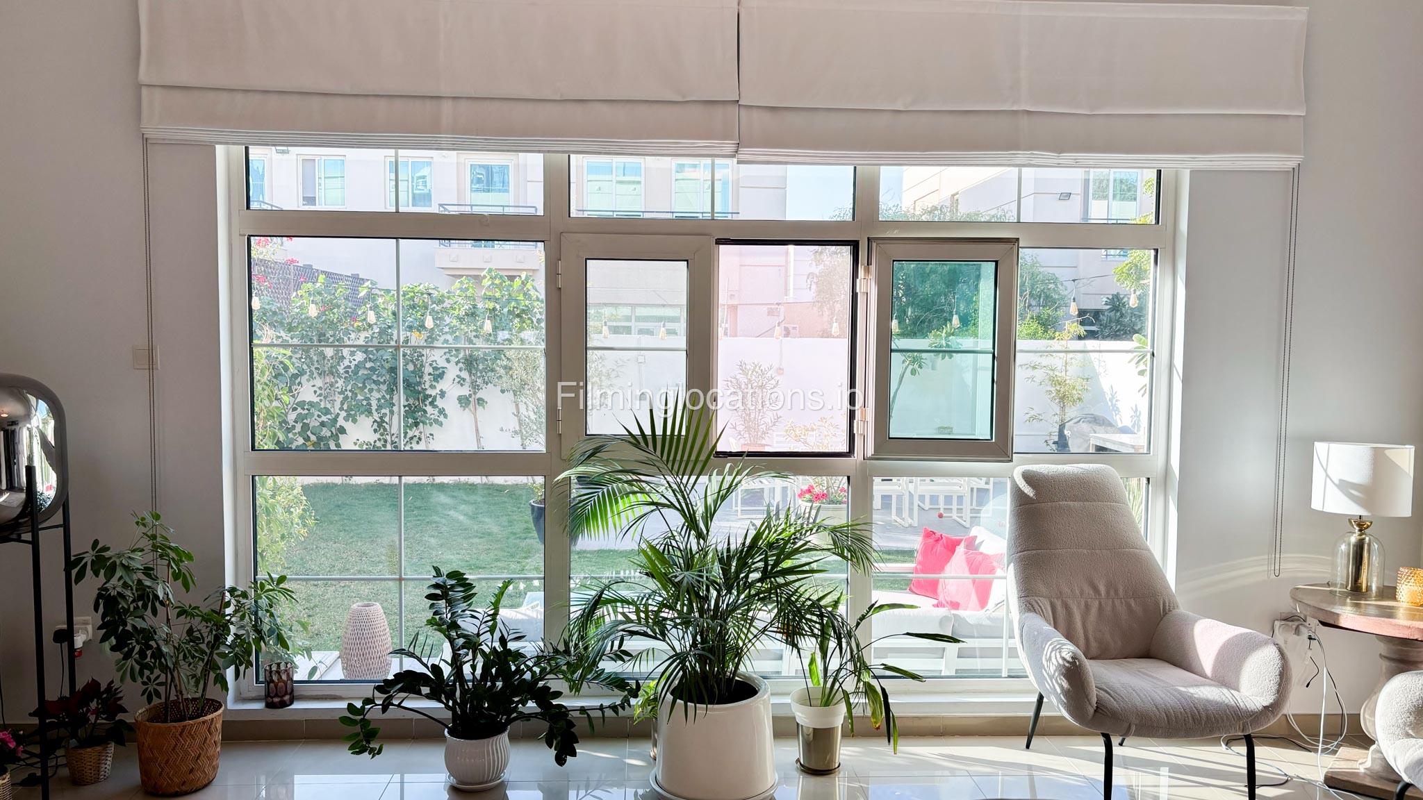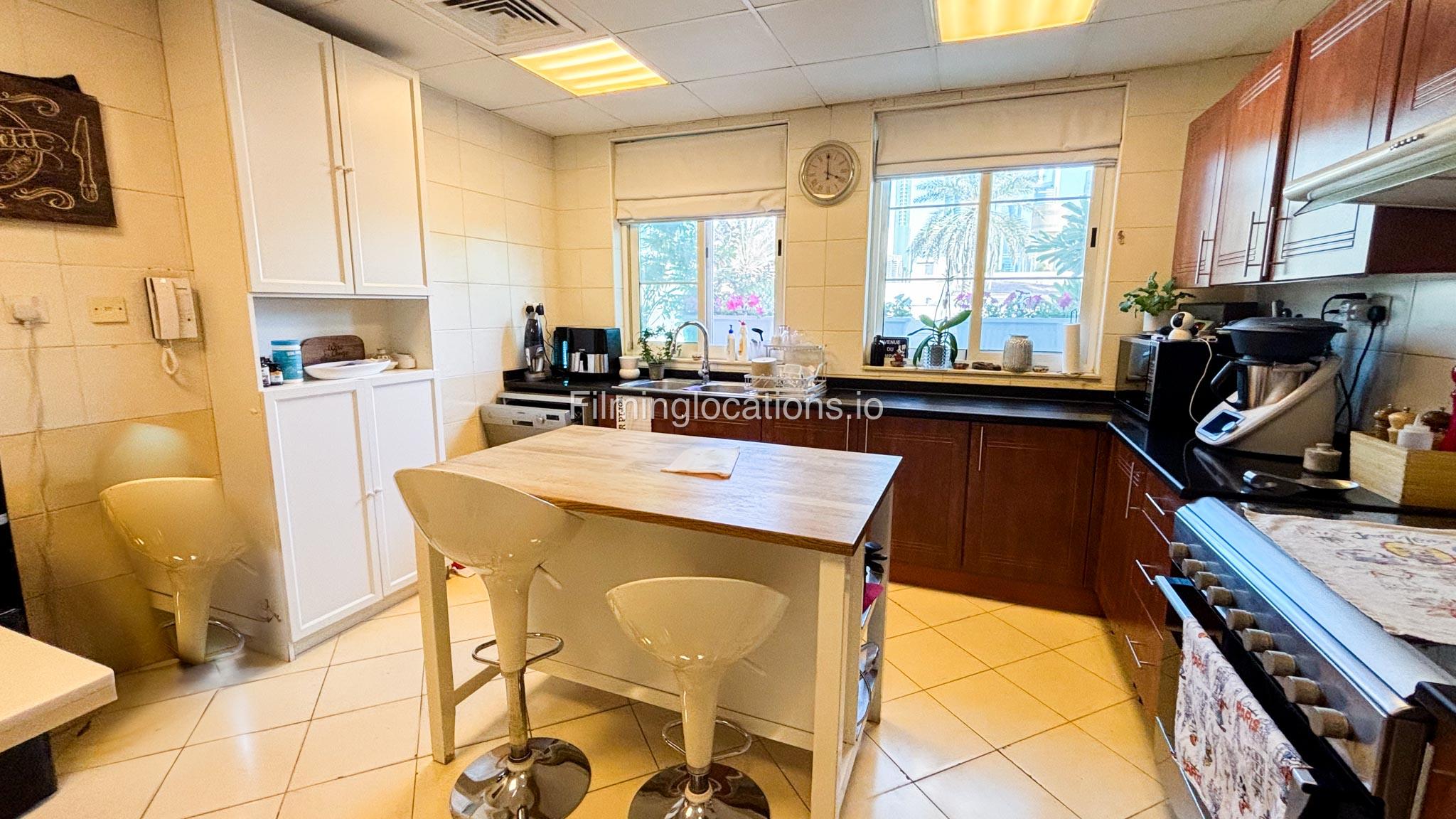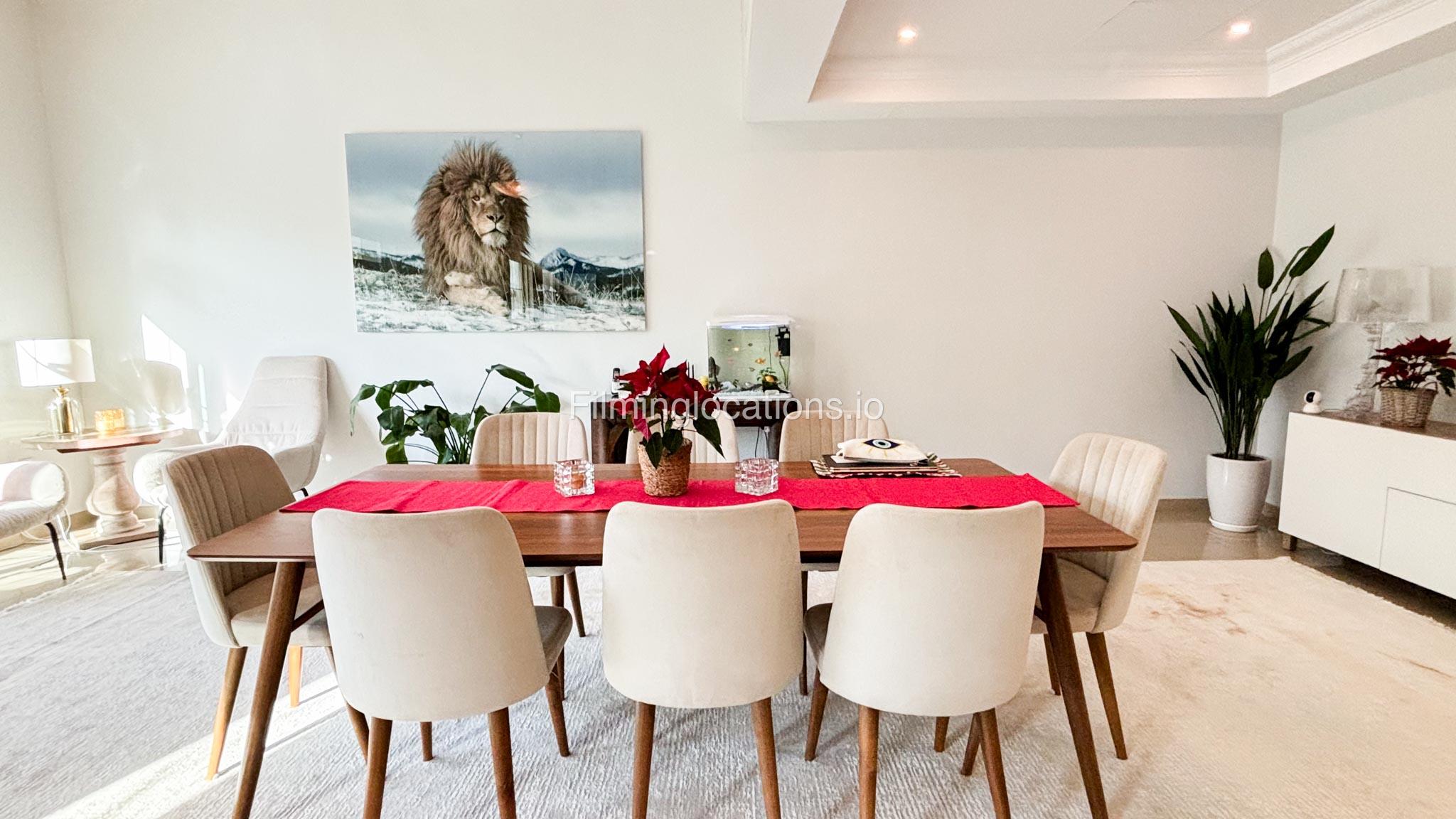 Our modern four-bedroom villa is a perfect location for film, TV, or fashion shoots. Located in the heart of Dubai, the villa offers a stunning skyline view and is equipped with high-end amenities such as a spacious open kitchen, large living area, and stylish furniture. The property also includes a private terrace with a garden, providing an excellent backdrop for outdoor shoots. Additionally, it features a balcony with a view of the Burj Khalifa, making it ideal for scenes requiring iconic Dubai scenery. The villa comfortably accommodates up to 50 people, ensuring ample space for production teams and equipment.